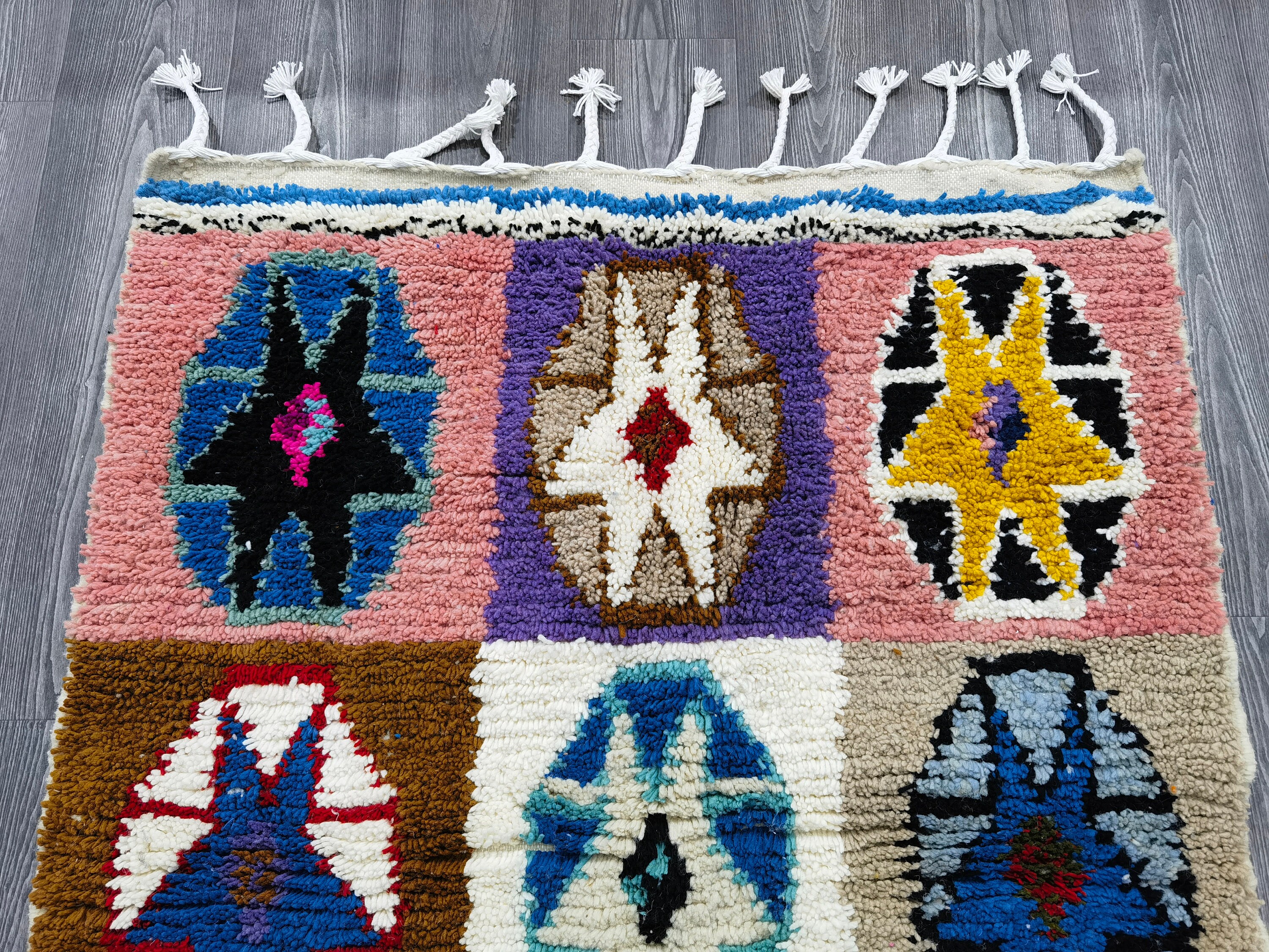 Beni Ourain rugs are perfect for adding a touch of luxury and style to any room in your home. Whether you're looking for an abstract multicolored carpet to spruce up a living room or a Moroccan rug to add some exotic flair to a bedroom, our custom Beni Ourain rugs are sure to please. Plus, with our easy-to-use customization options, you can create a rug that perfectly matches your personal style.