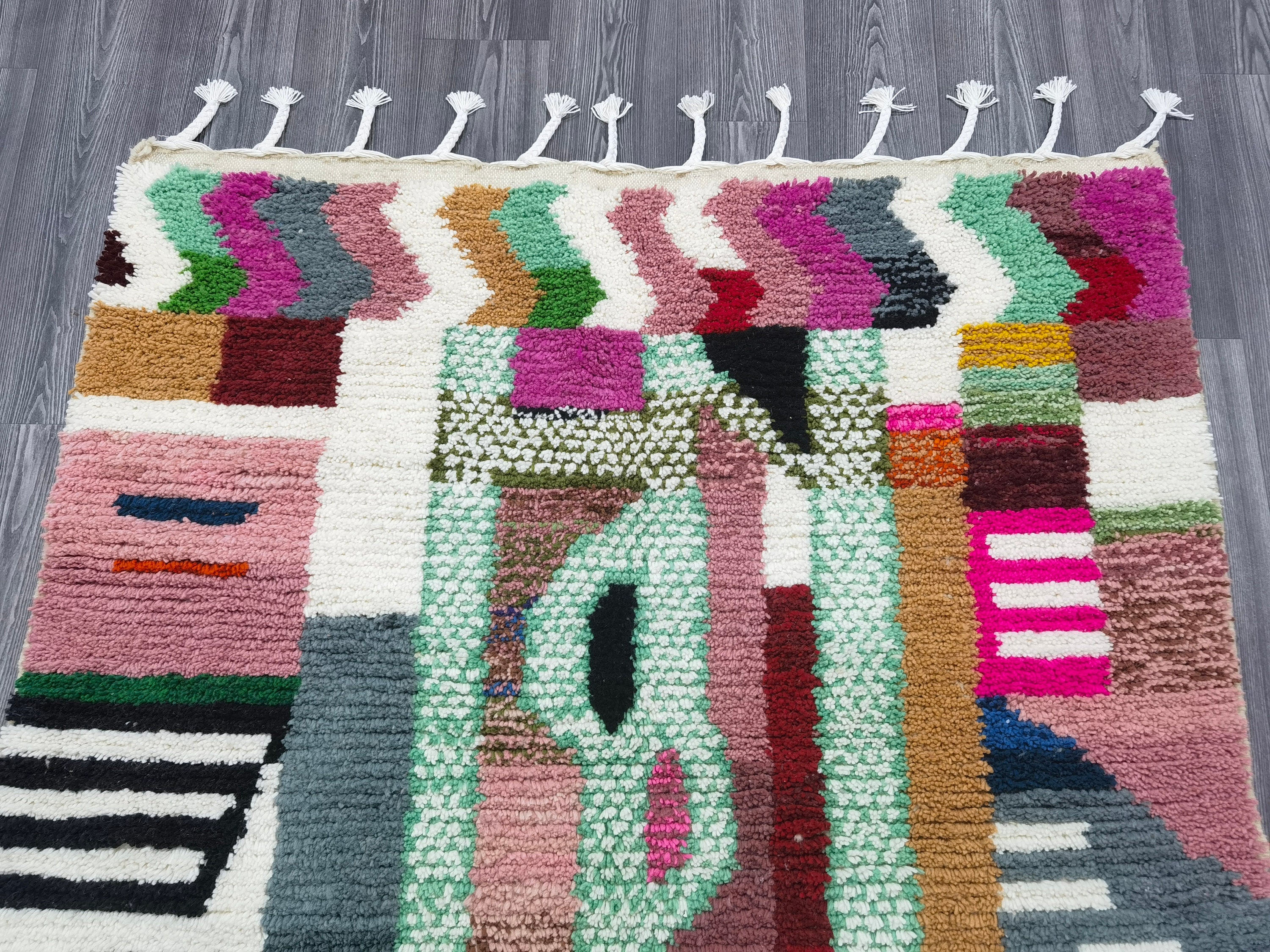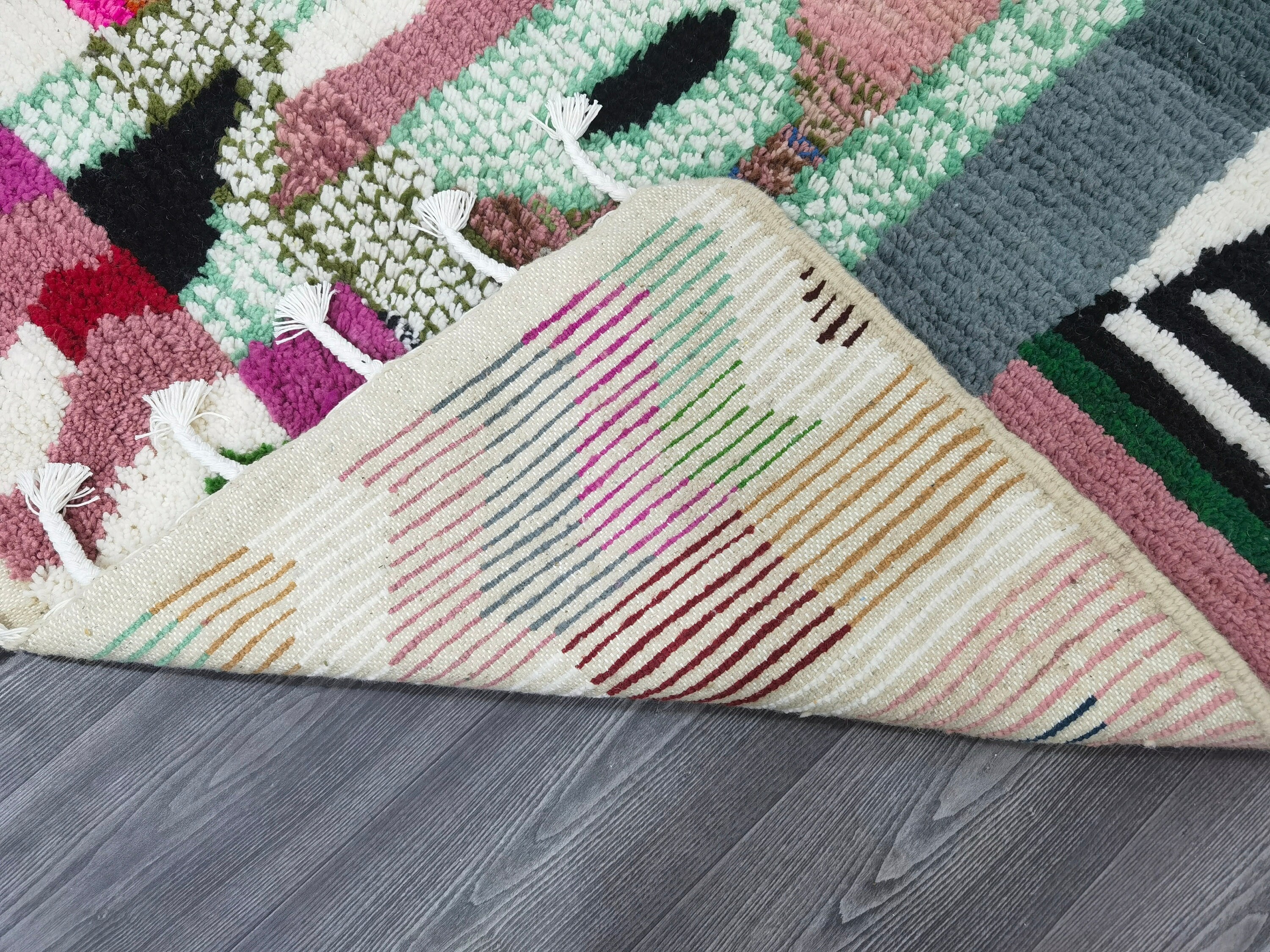 Amazing Moroccan Green Rug - Custom Bohemian Rugs - Wool Rug Pink - Quality Handmade Morrocan Rug - Personalize Gifts For Home Decor