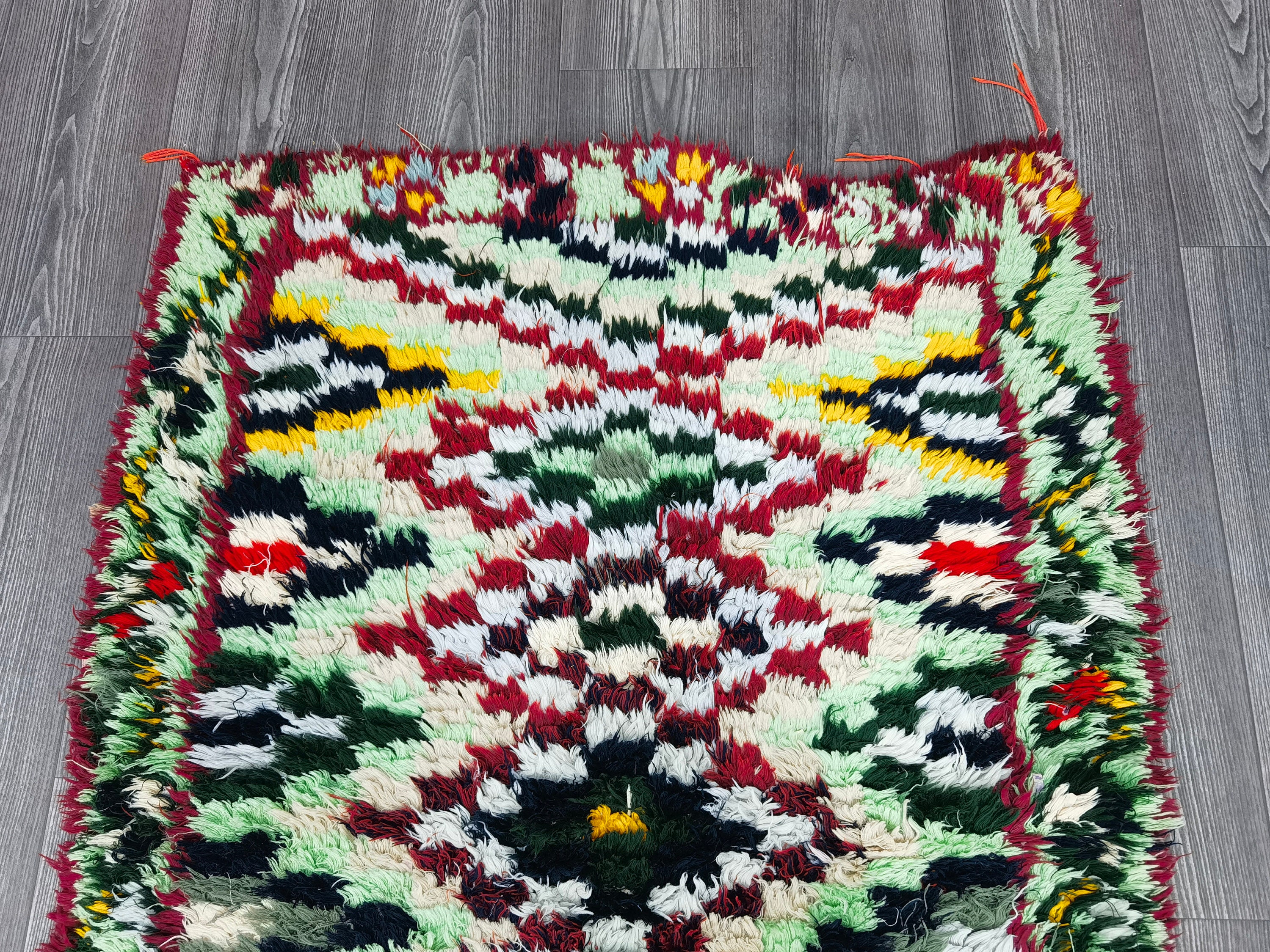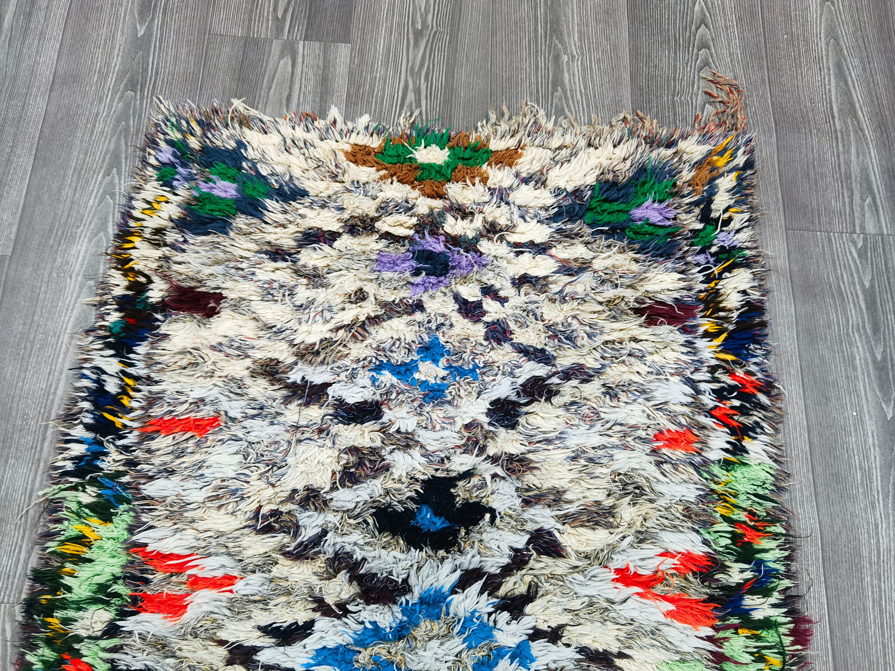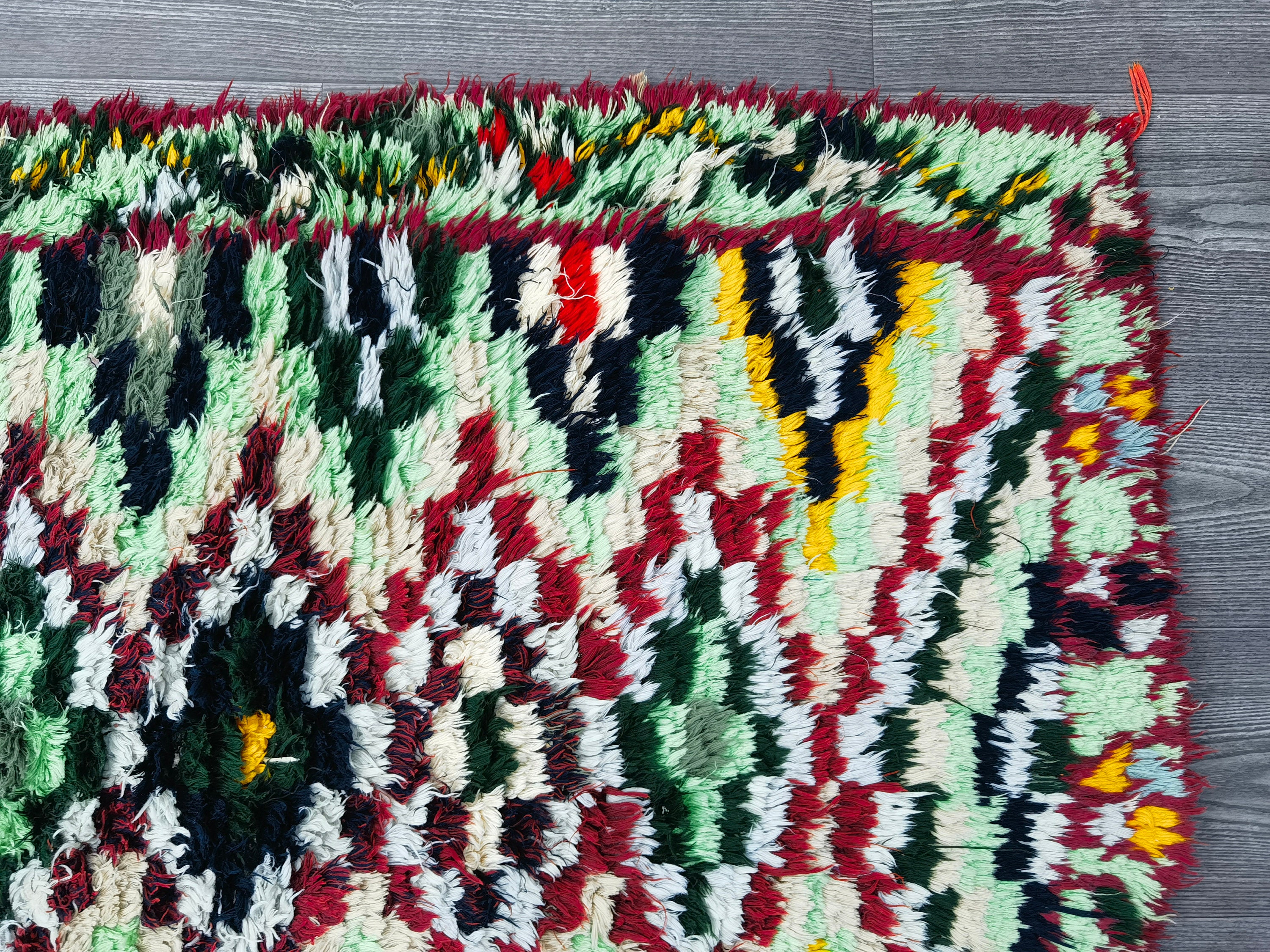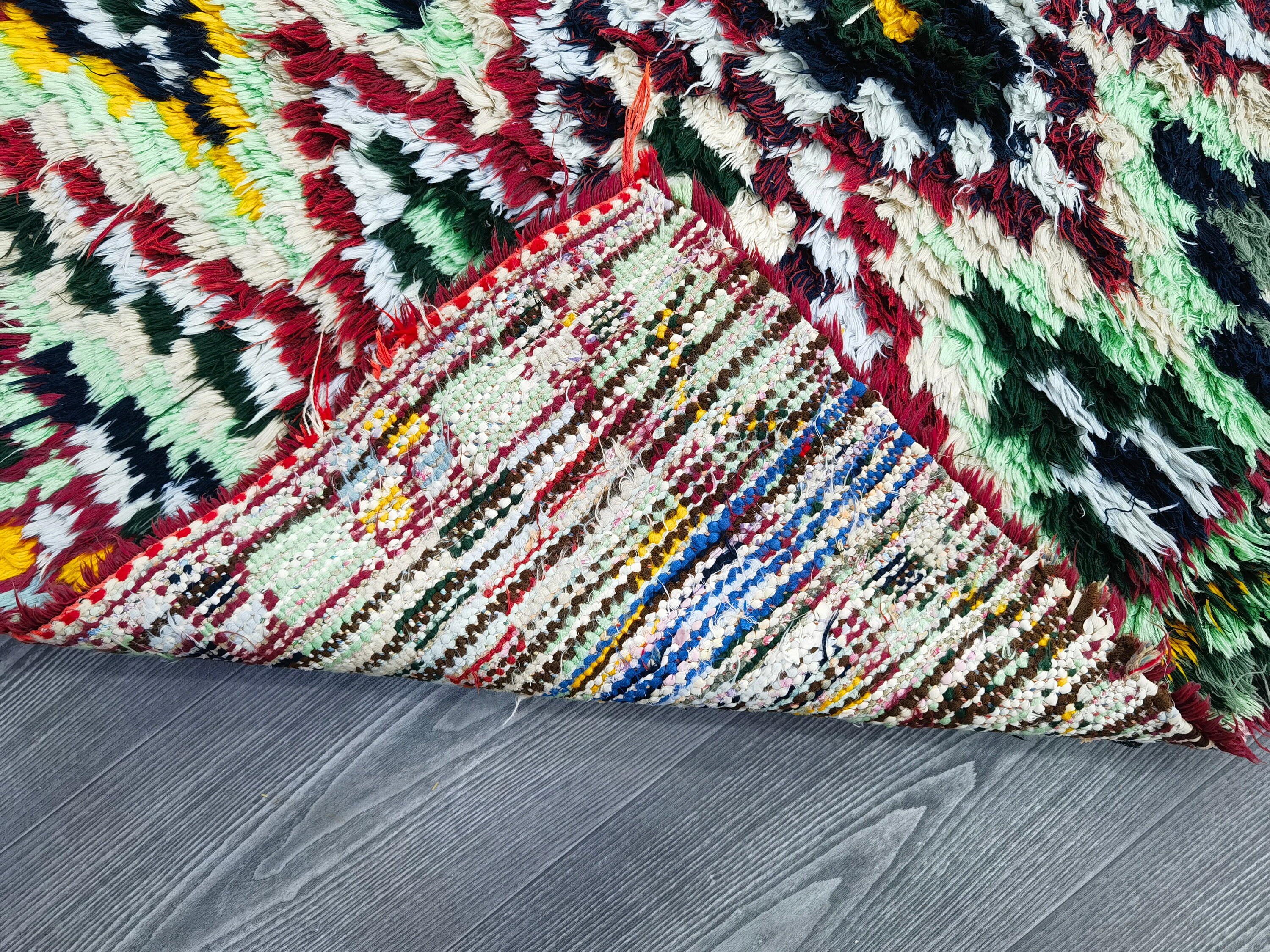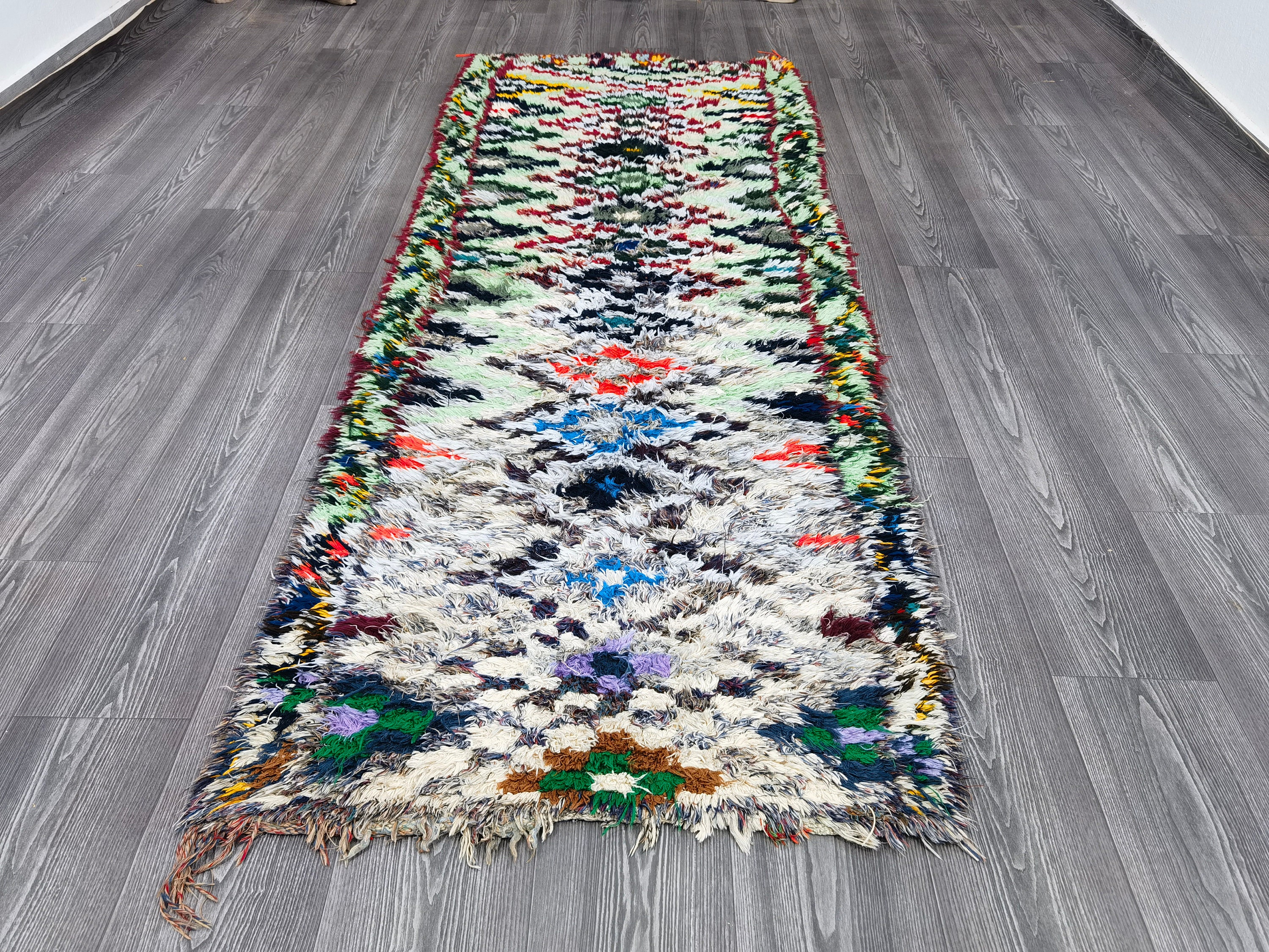Boujaad is a vibrant and colorful wool runner that will add life to any room in your home. Made from 100% wool, this rug is perfect for use in the living room, bedroom, or anywhere you want to add some beautiful Moroccan flair. The soft and fluffy texture makes it comfortable to walk on, and the vivid colors will brighten up any space. Whether you're looking for a traditional shag rug or something a little more bohemian, Boujaad is sure to be a hit with your guests.