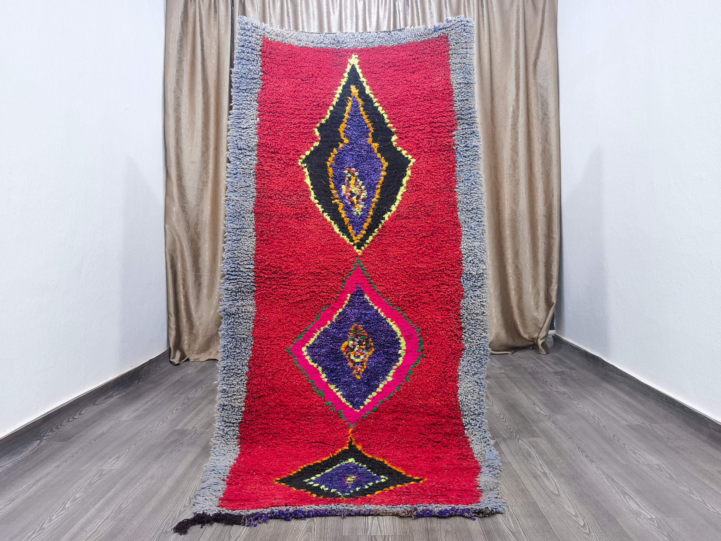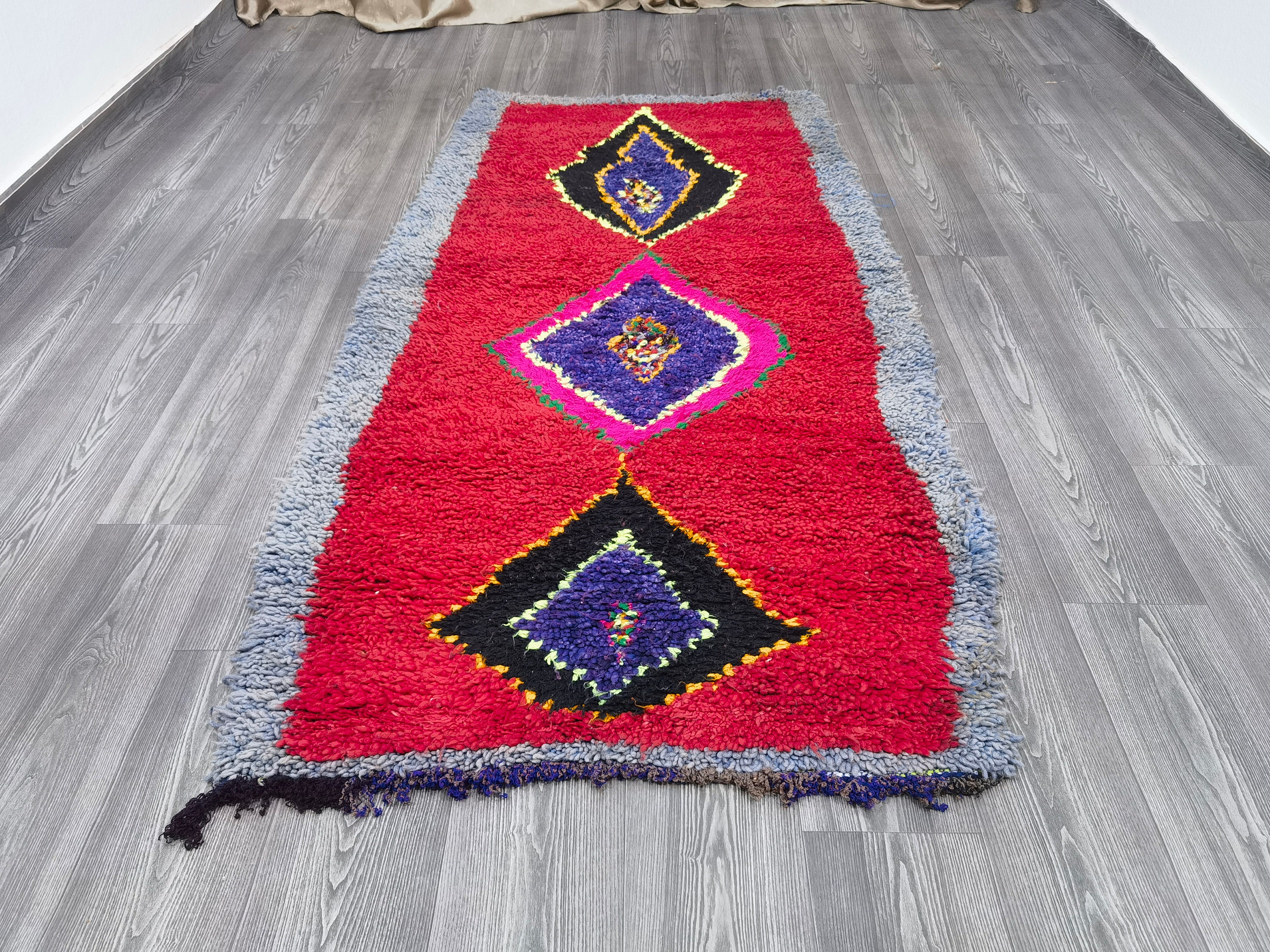 Amazing Beni Ourain Wool Runner, Fabulous Boujaad Runner Rug,Abstract Rug Runner, Boujaad Red Carpet, Tribal Berber rug 3.5x7.2