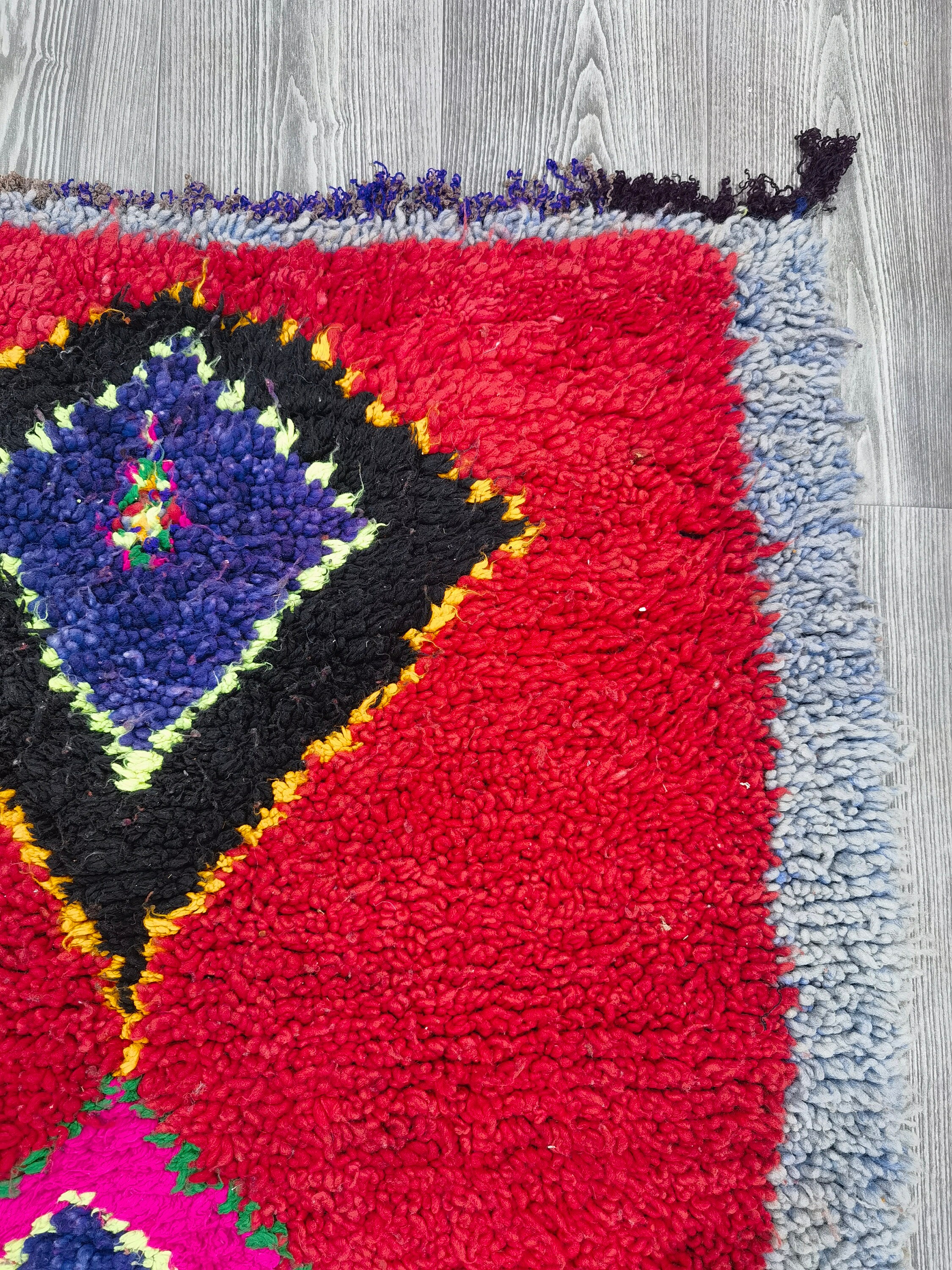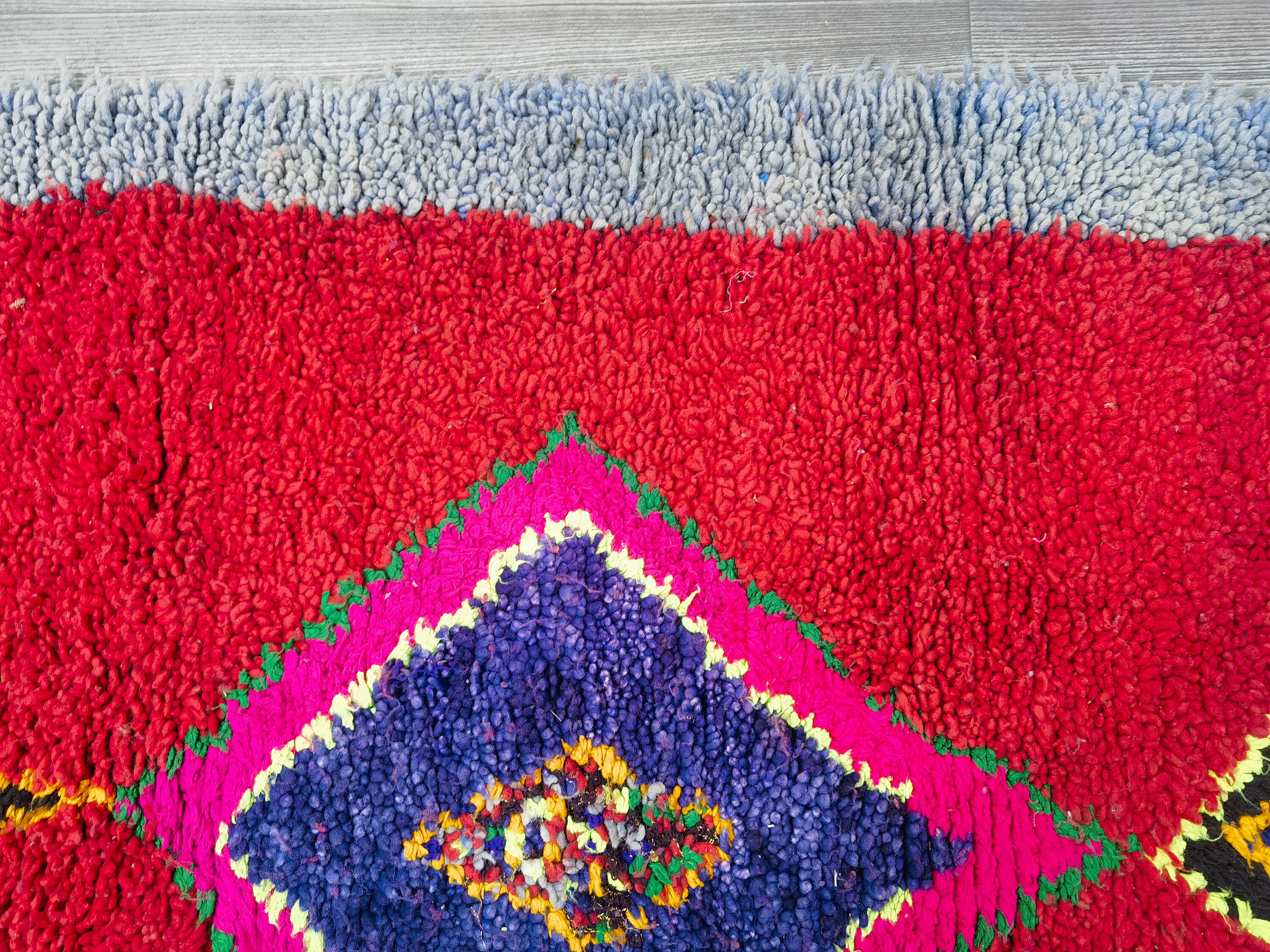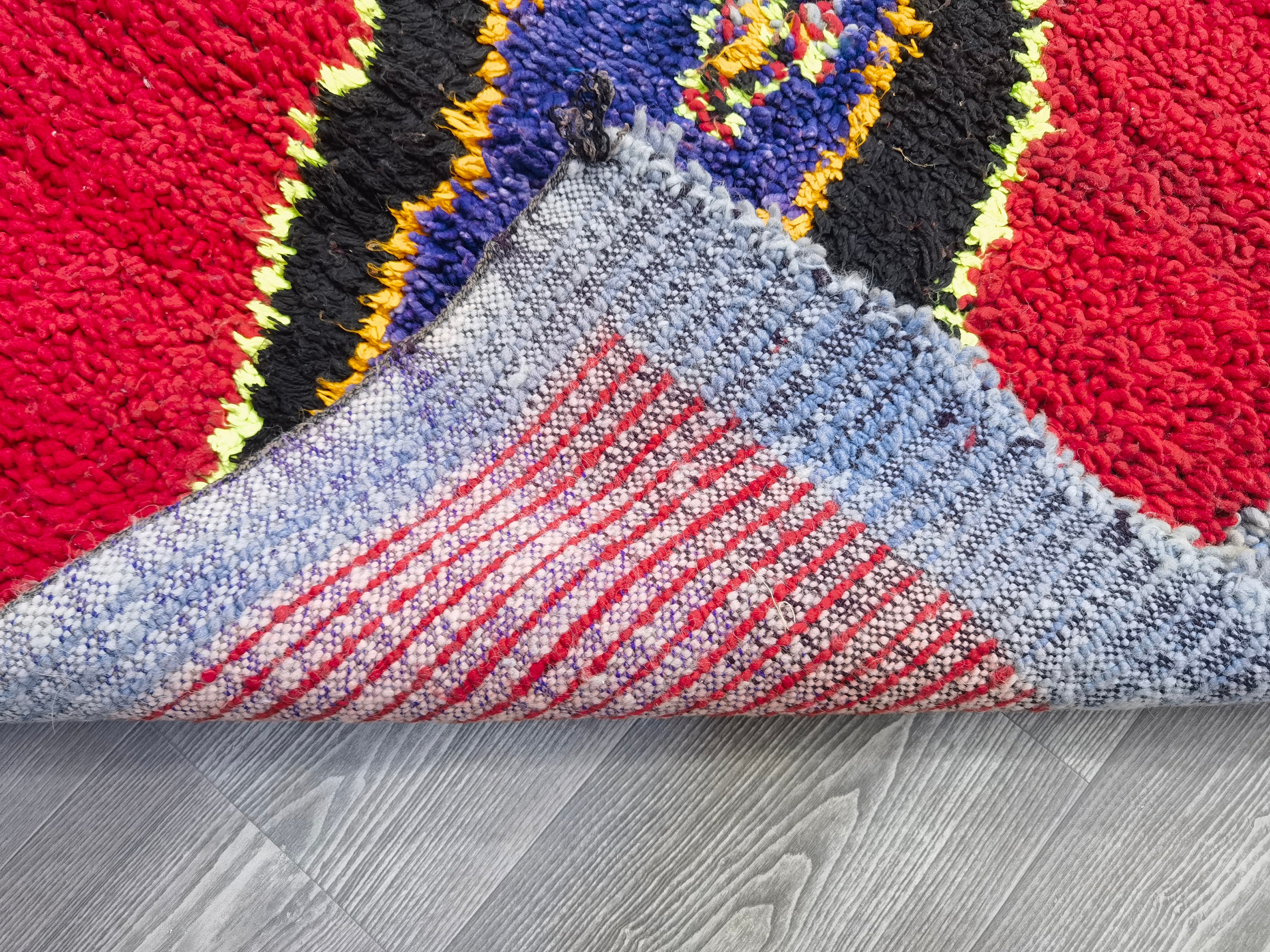 Boujaad is a vibrant and colorful wool rug that will add life to any room in your home. Made from 100% wool, this rug is perfect for use in the living room, bedroom, or anywhere you want to add some beautiful Moroccan flair. The soft and fluffy texture makes it comfortable to walk on, and the vivid colors will brighten up any space. Whether you're looking for a traditional shag rug or something a little more bohemian, Boujaad is sure to be a hit with your guests.