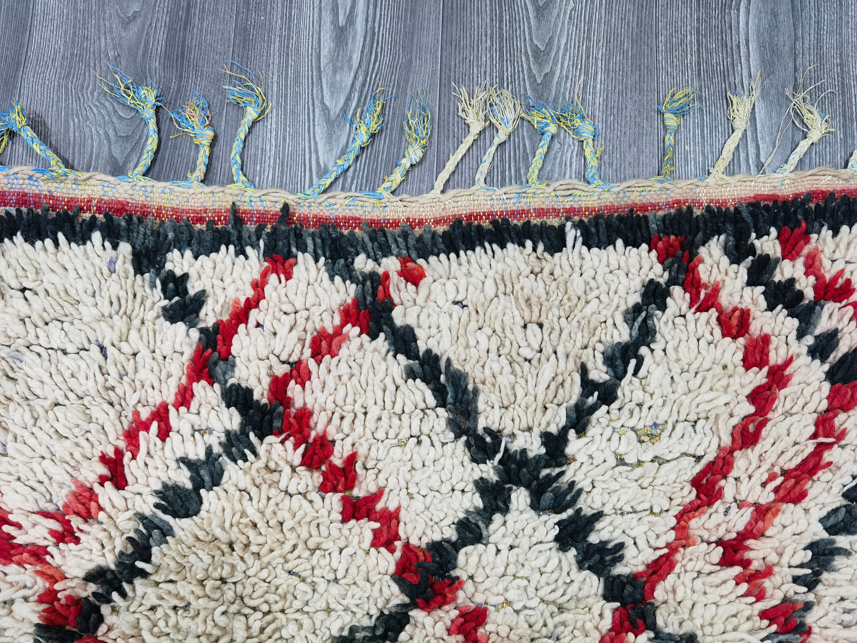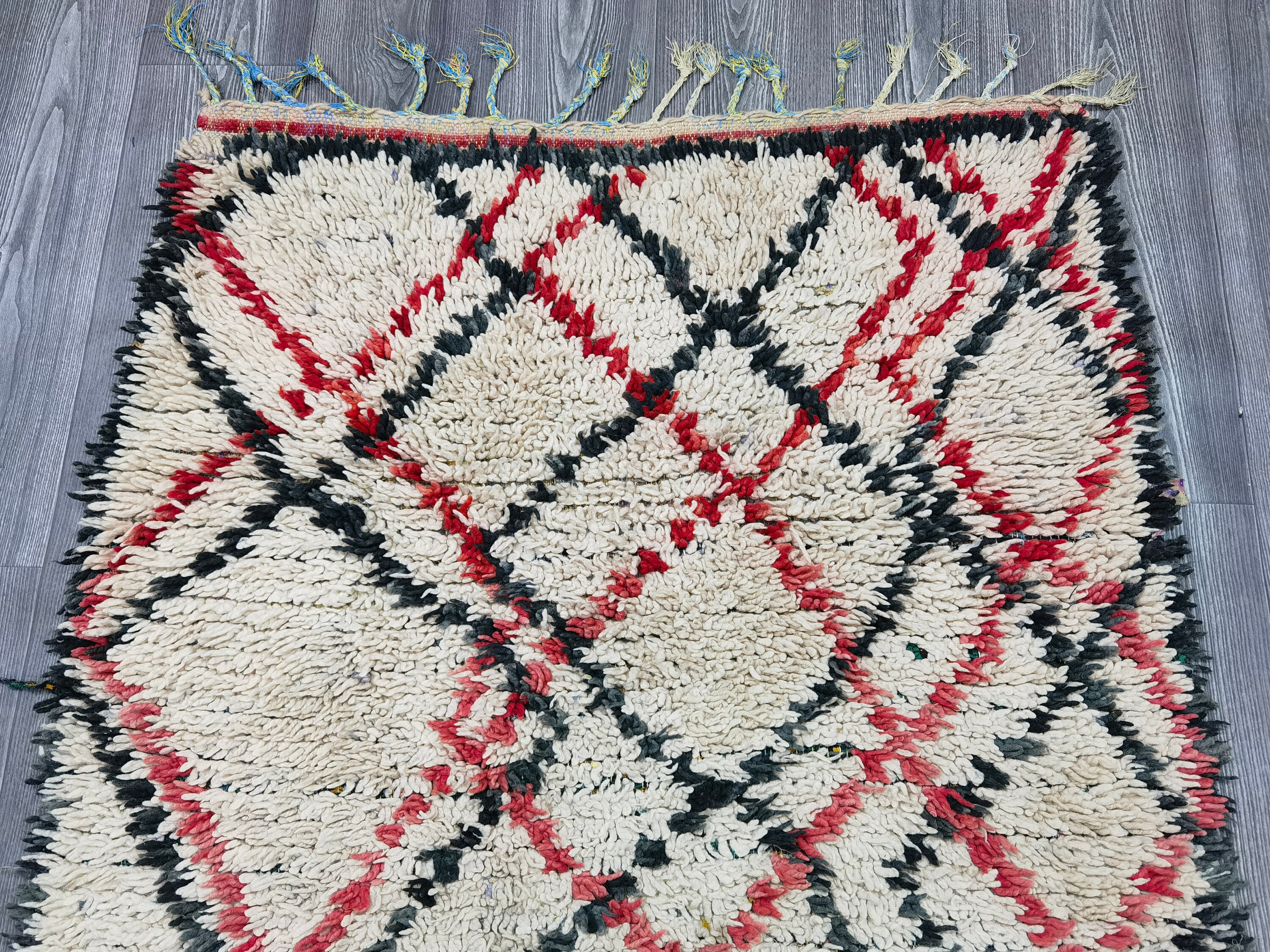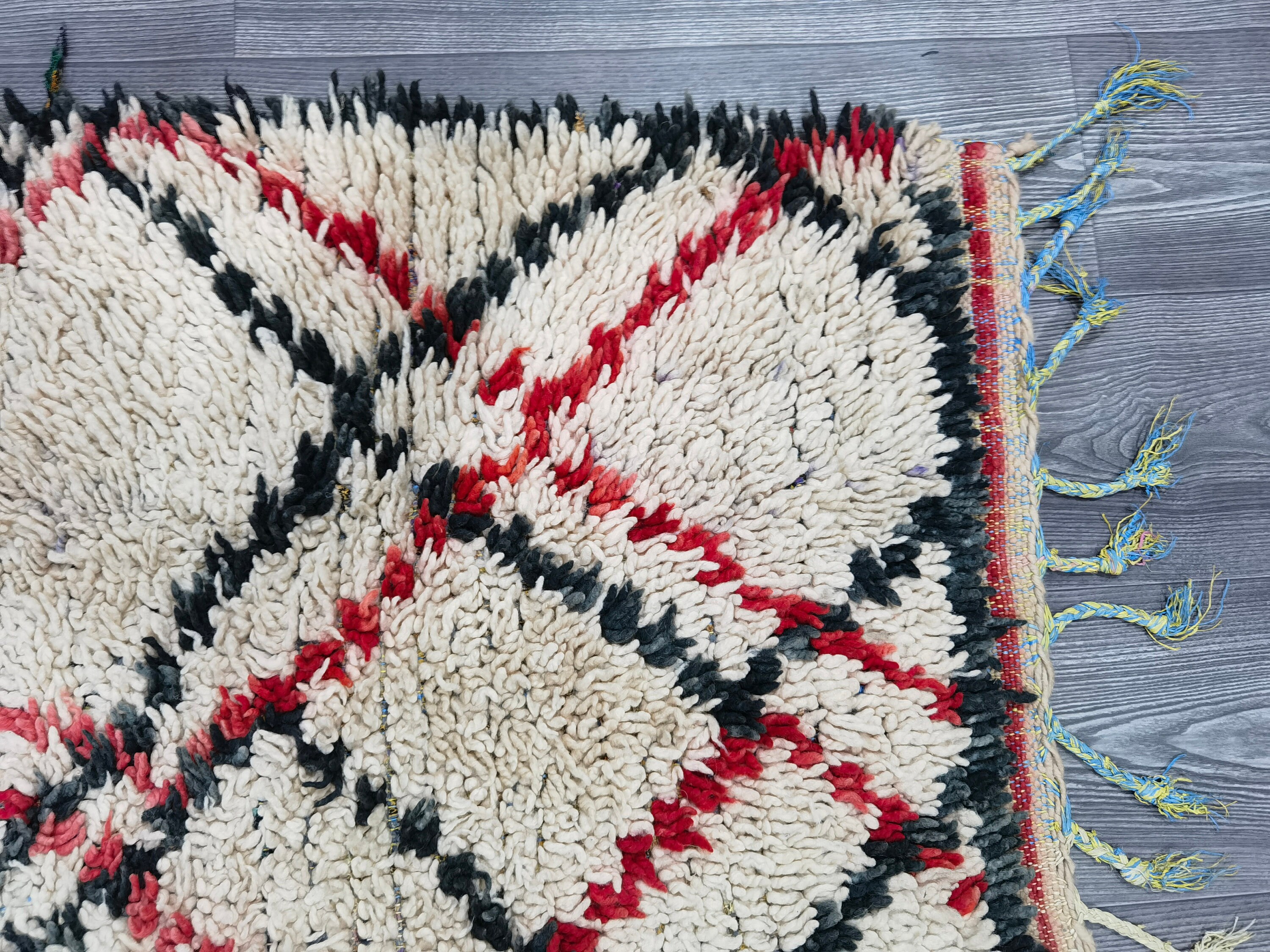 Boujaad is a vibrant and colorful wool rug that will add life to any room in your home. Made from 100% wool, this rug is perfect for use in the living room, bedroom, or anywhere you want to add some beautiful Moroccan flair. The soft and fluffy texture makes it comfortable to walk on, and the vivid colors will brighten up any space. Whether you're looking for a traditional shag rug or something a little more bohemian, Boujaad is sure to be a hit with your guests.