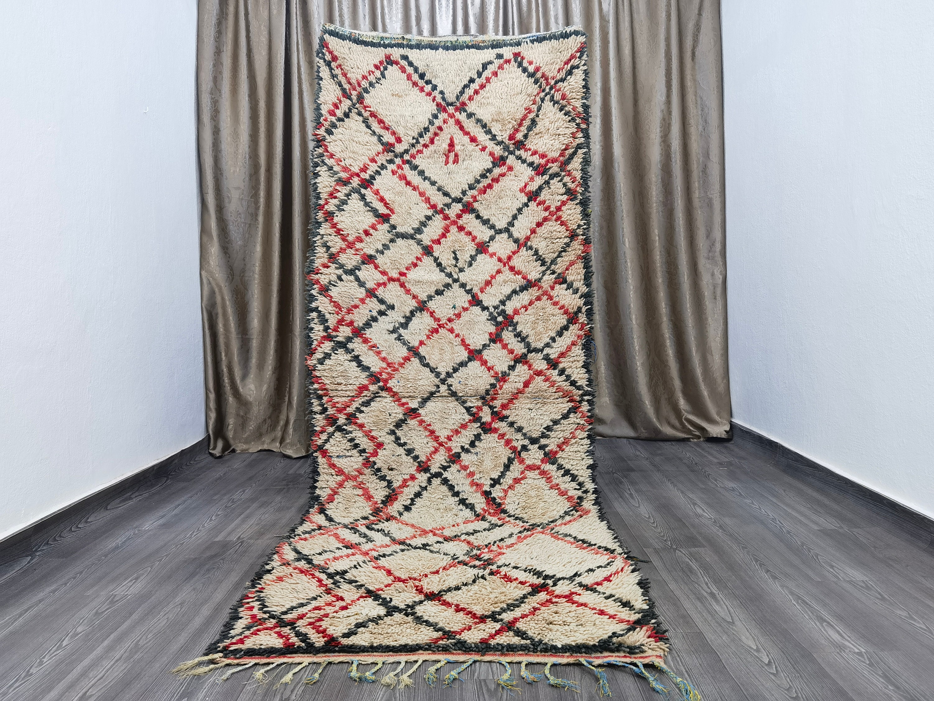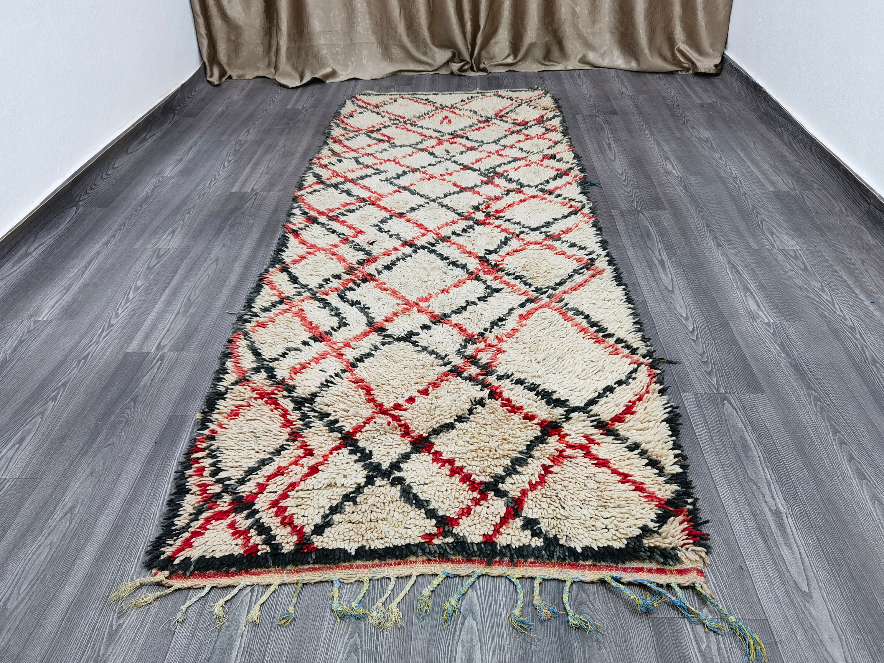 Beni ourain Rug Runner - Azilal Rug Vintage - 3.4x9.5 Moroccan Rug Runner - Vintage Runner Rug - Wool Runner Rug - Handmade Furniture Rug