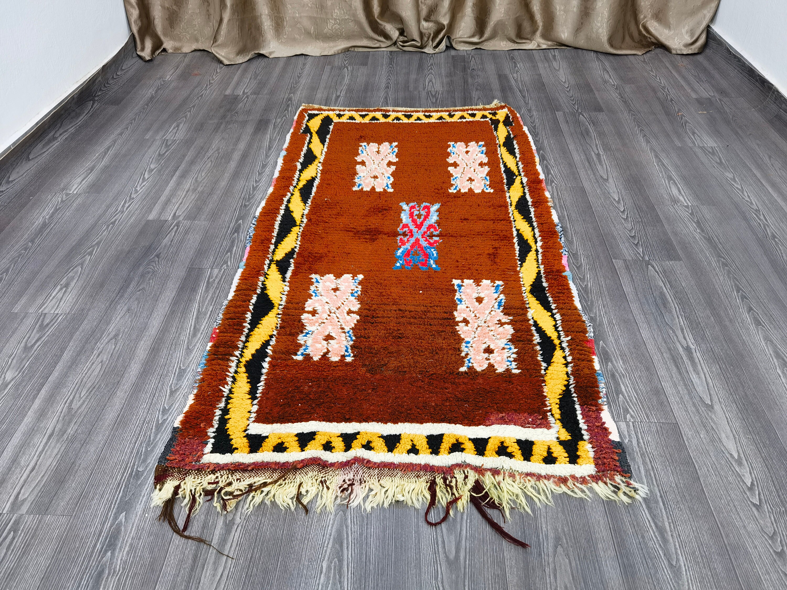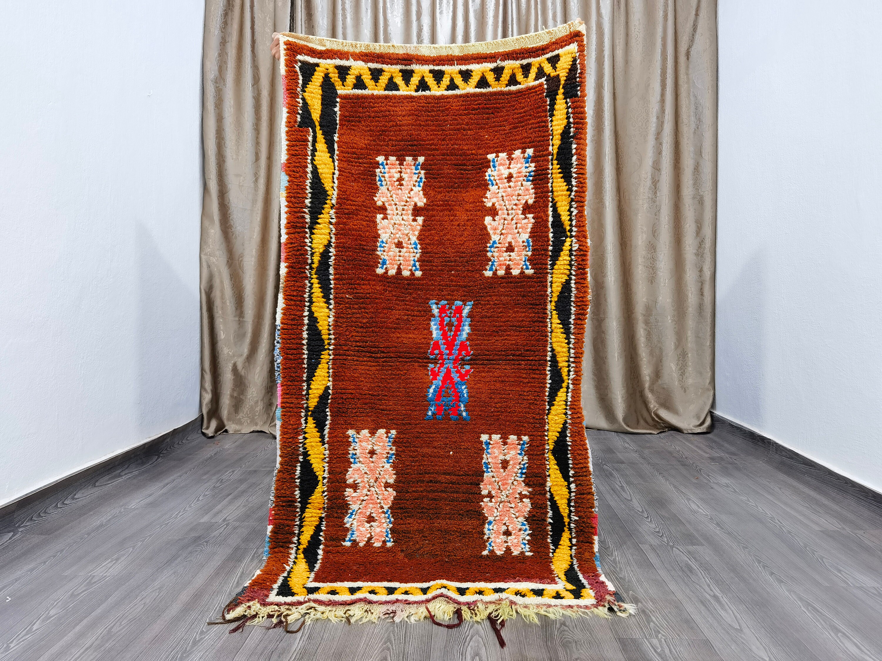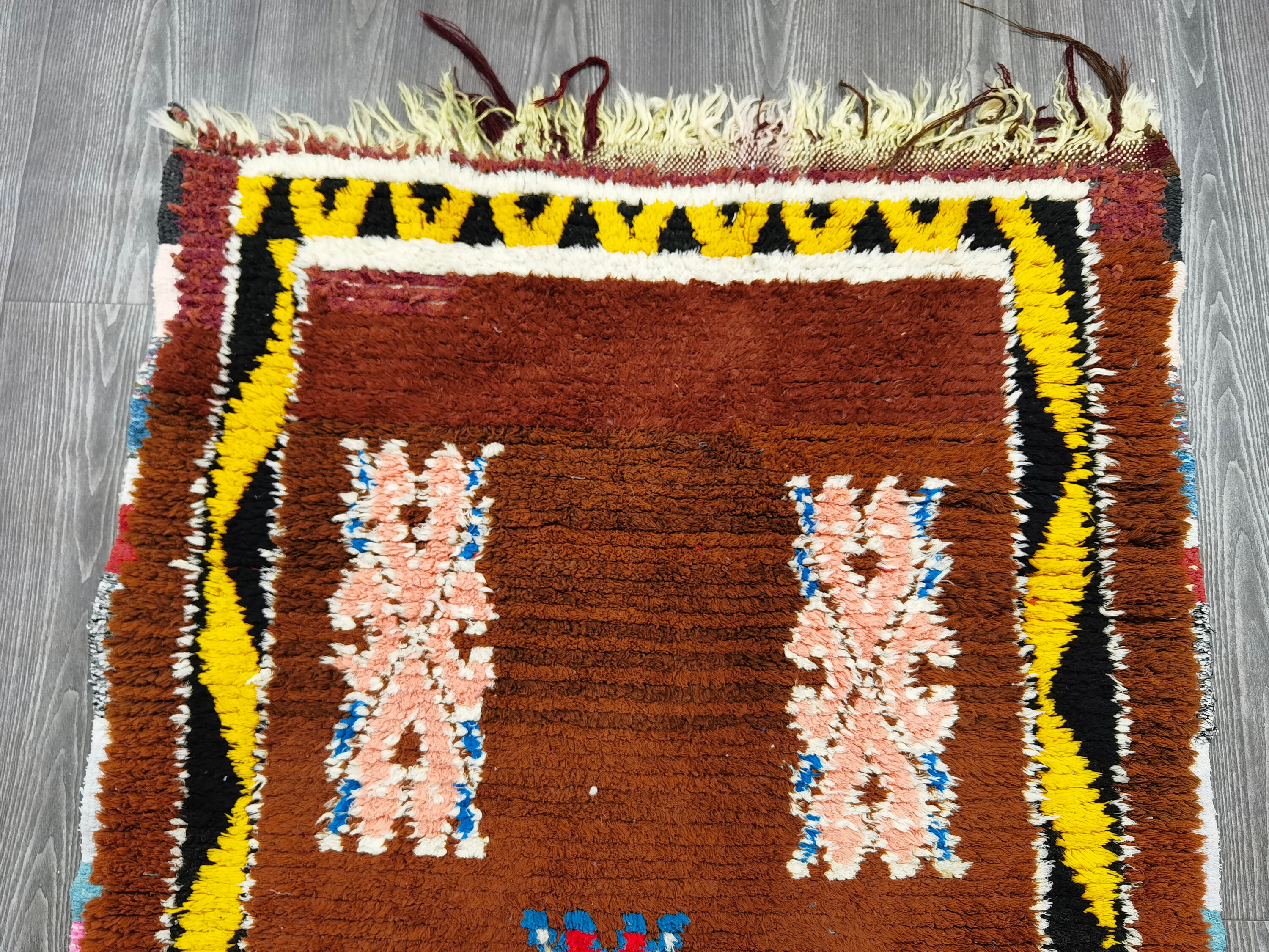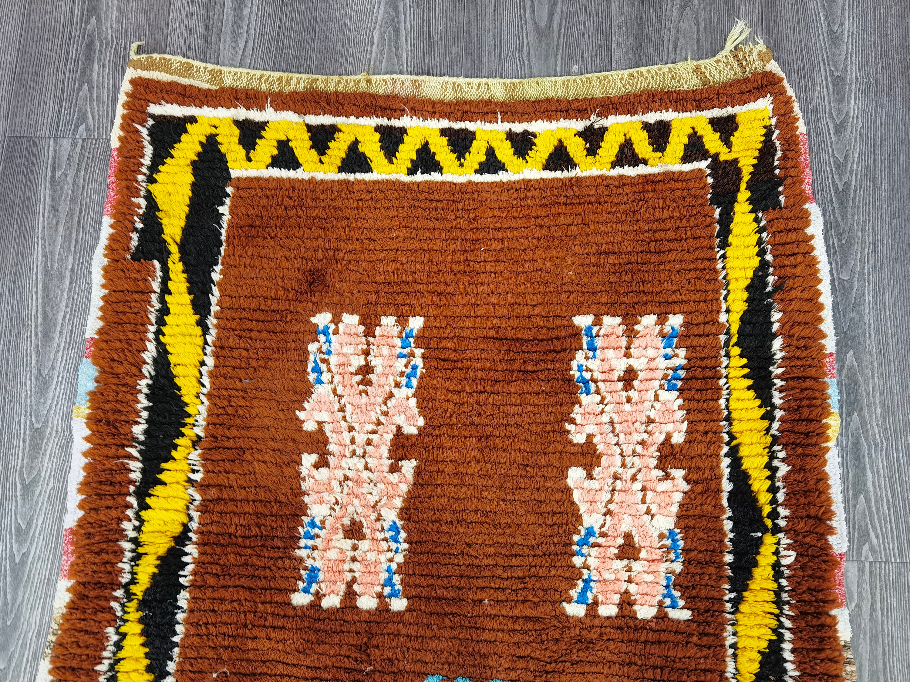 Berber runner rug - Living Room Rug - Brown Abstract Rug - Beniourain Rug - Vintage Morocco runner - Uinique Rug Brown - 175x93 cm