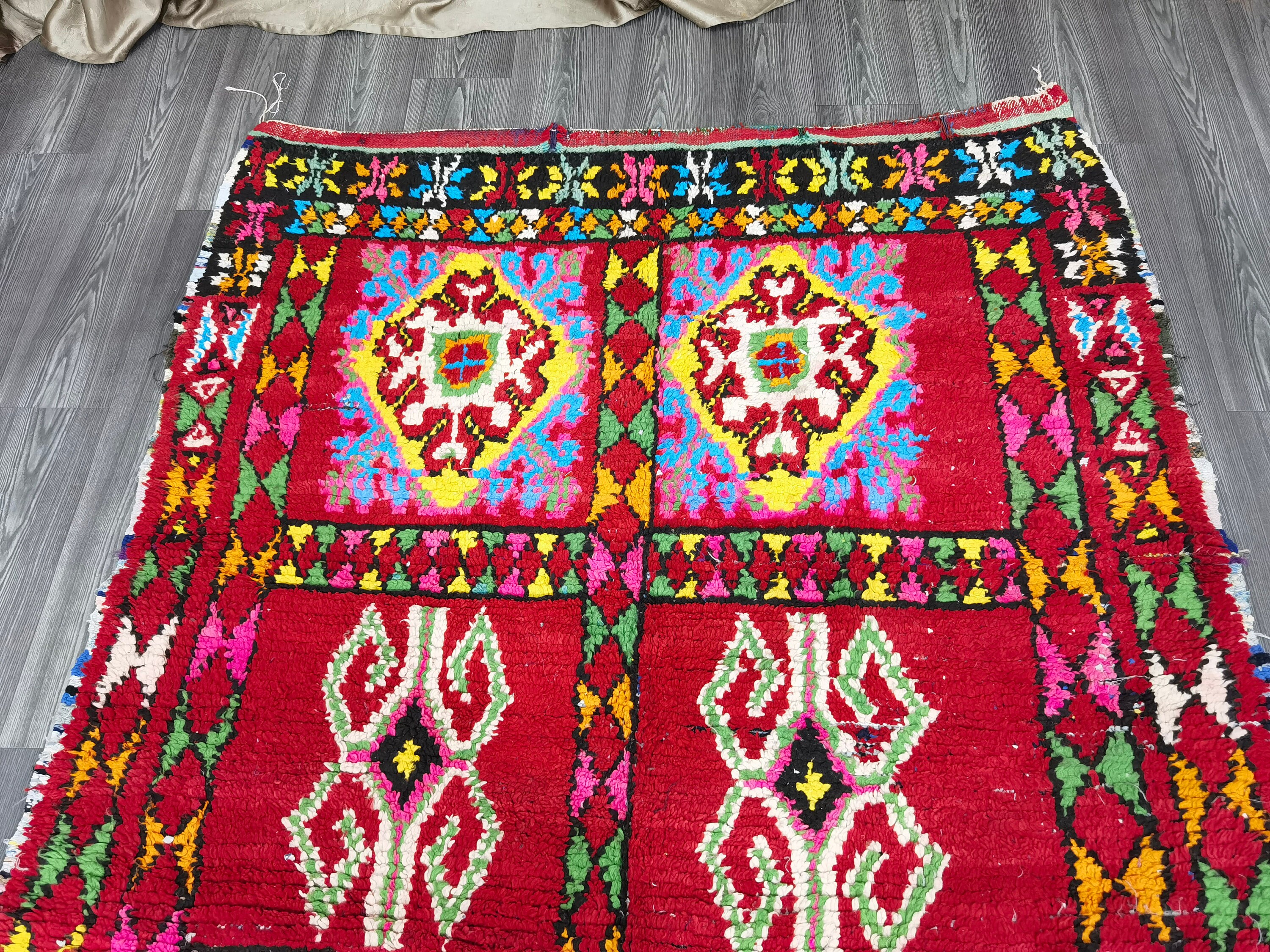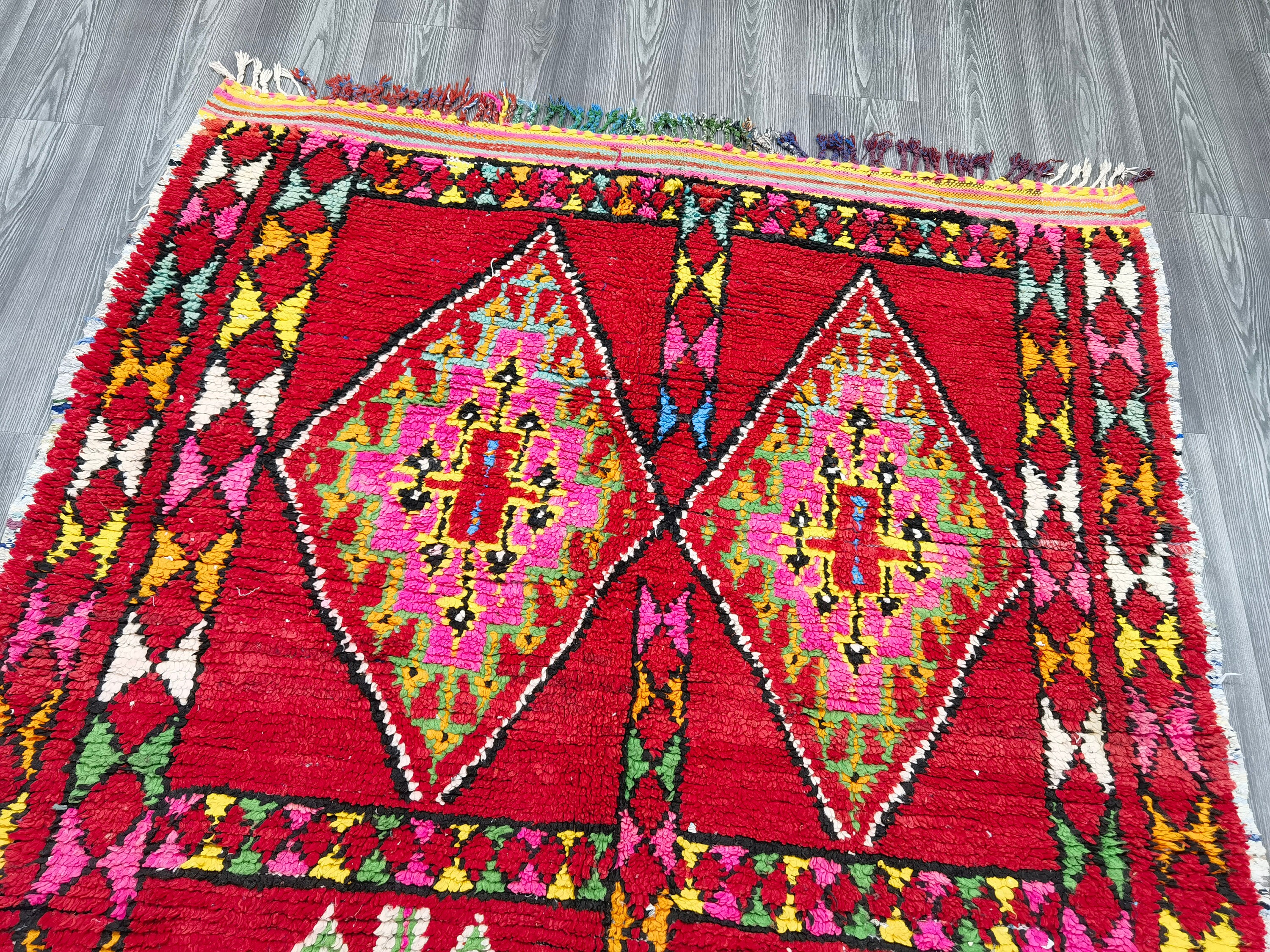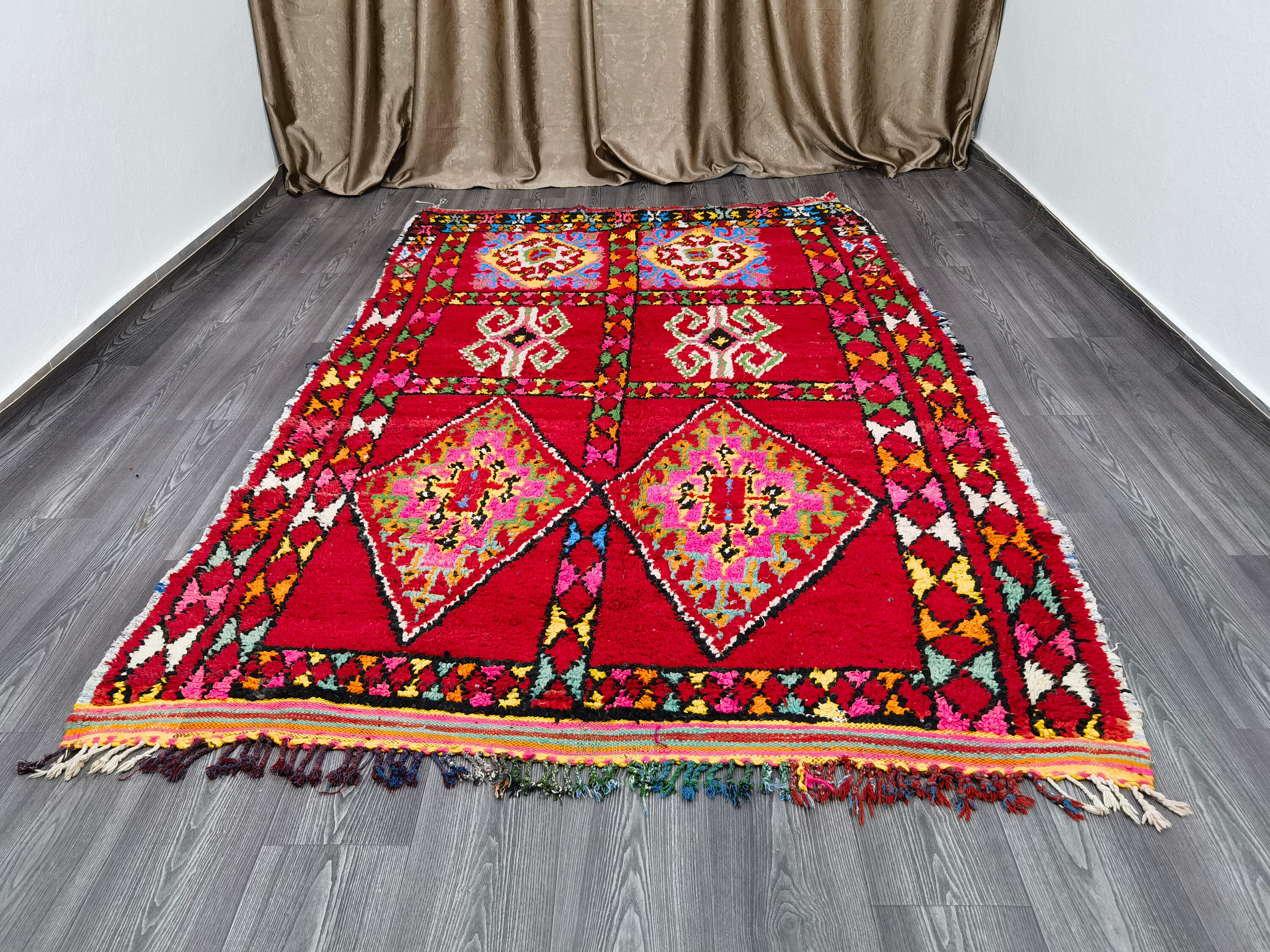 Red Rugs For Living Room 5.5x8.8 ft ( 167 X 269 Cm) - Soft Area Rug - Moroccan Handmade Rug, Tribal Berber Rug, Unique Colorful boujaad Rug
