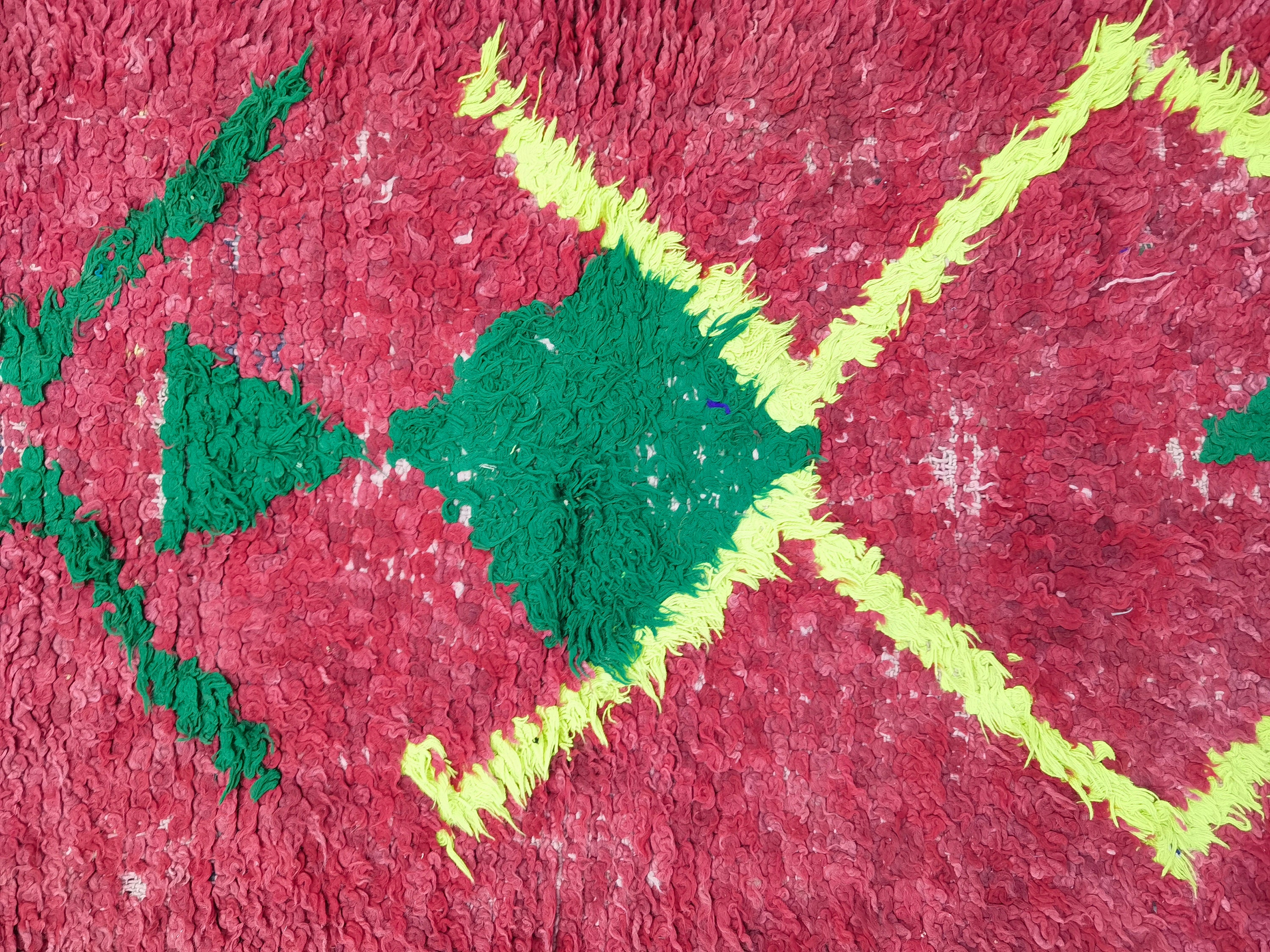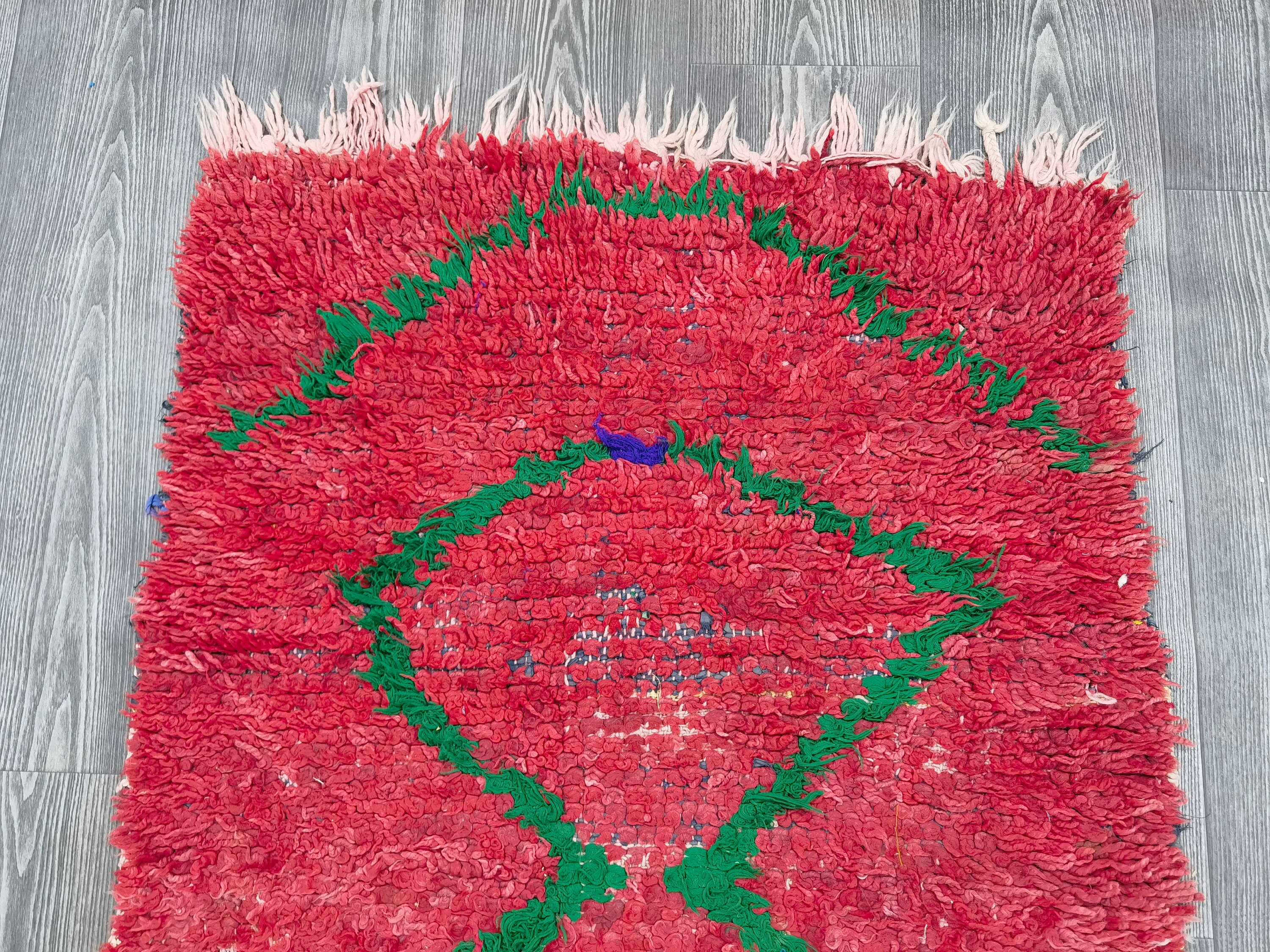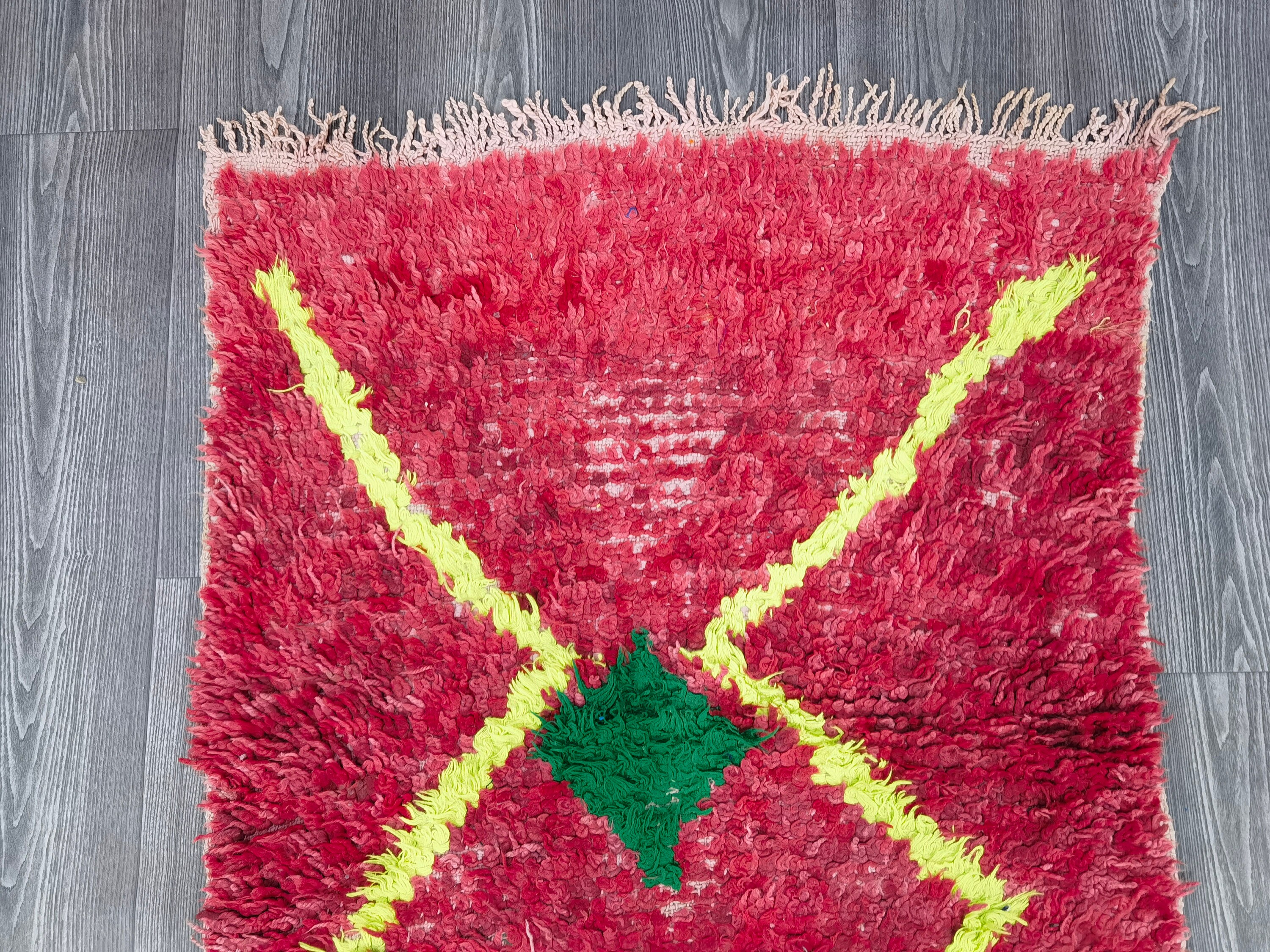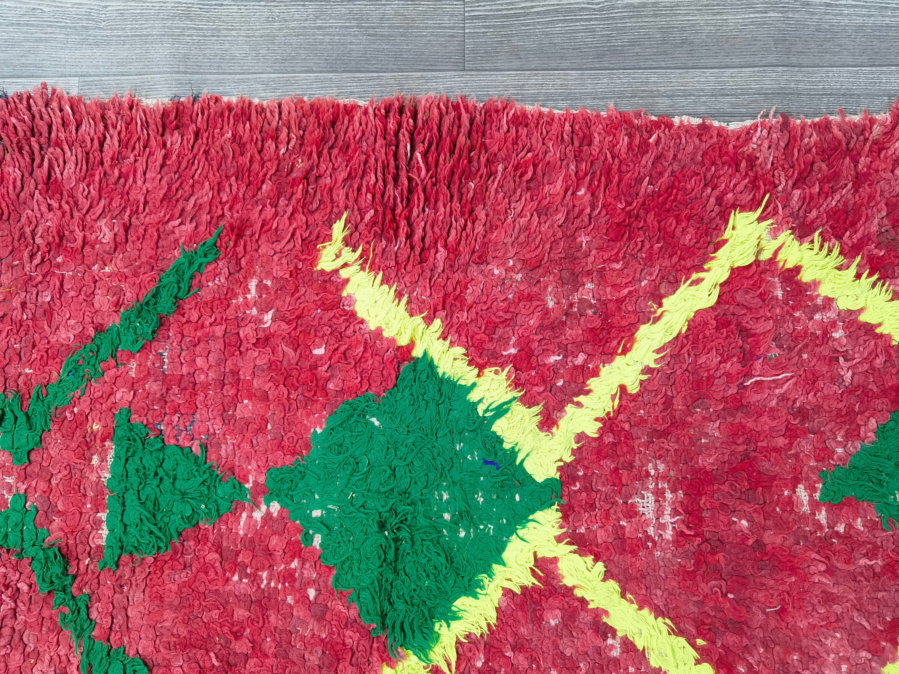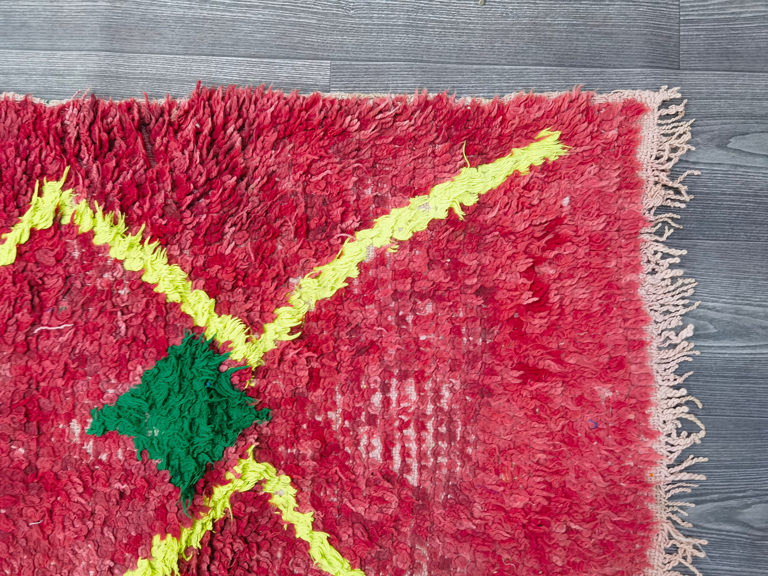 Moroccan Hand Knotted Runner Rug,Green Wool Shaggy Rug,Gorgeous Boujaad Red Rug,Authentic Moroccan Rug, Moroccan Fluffy Rug