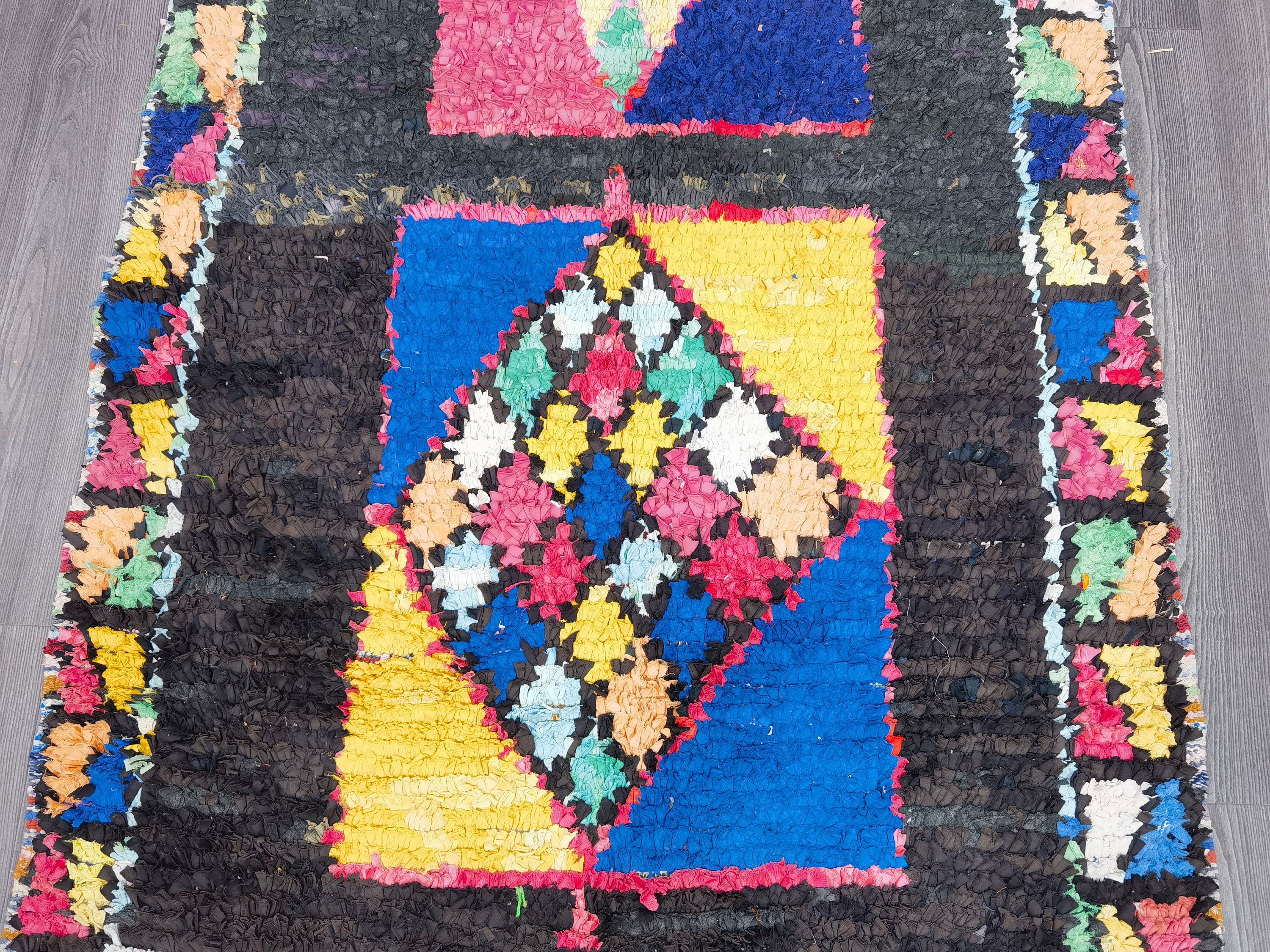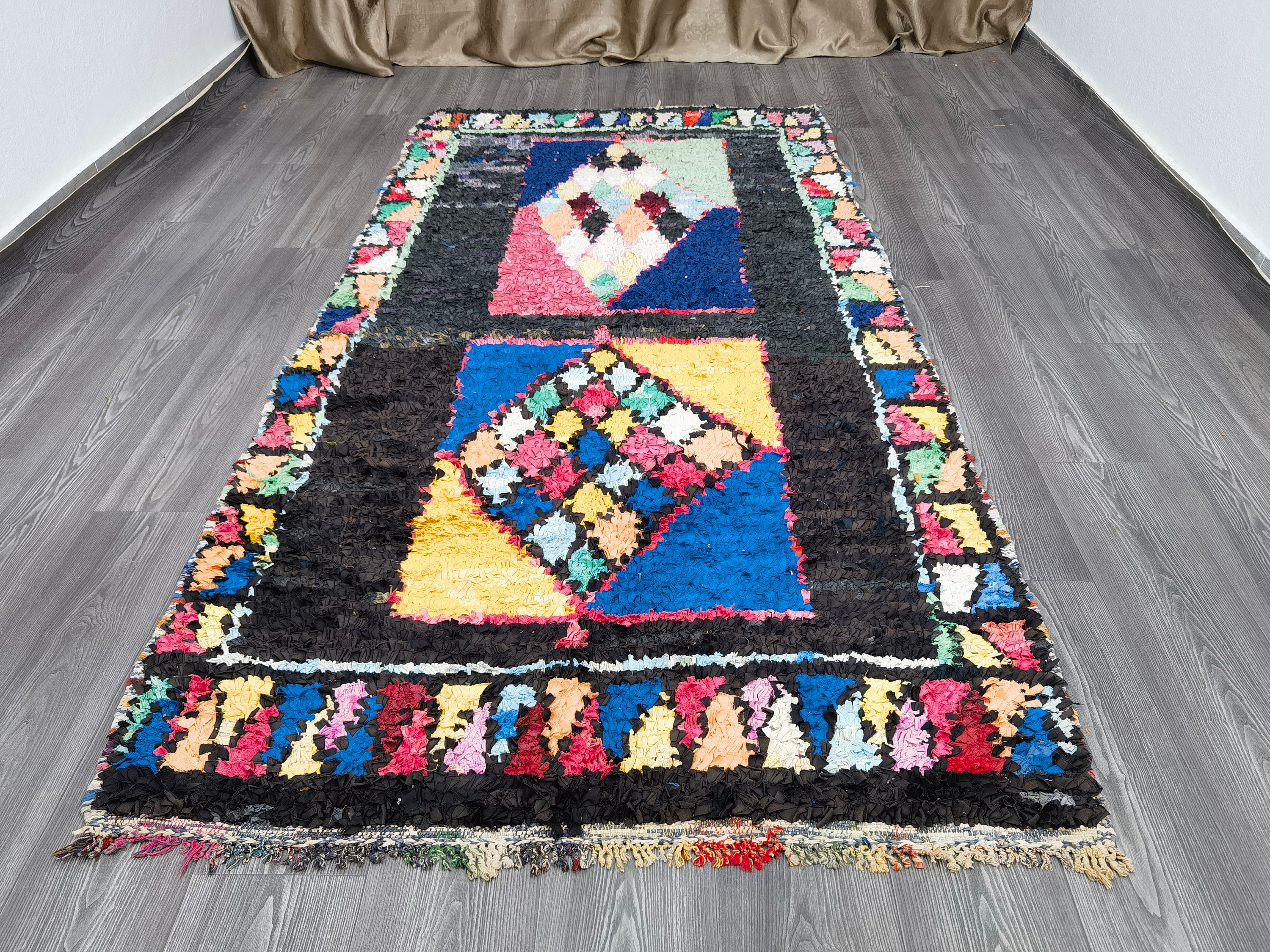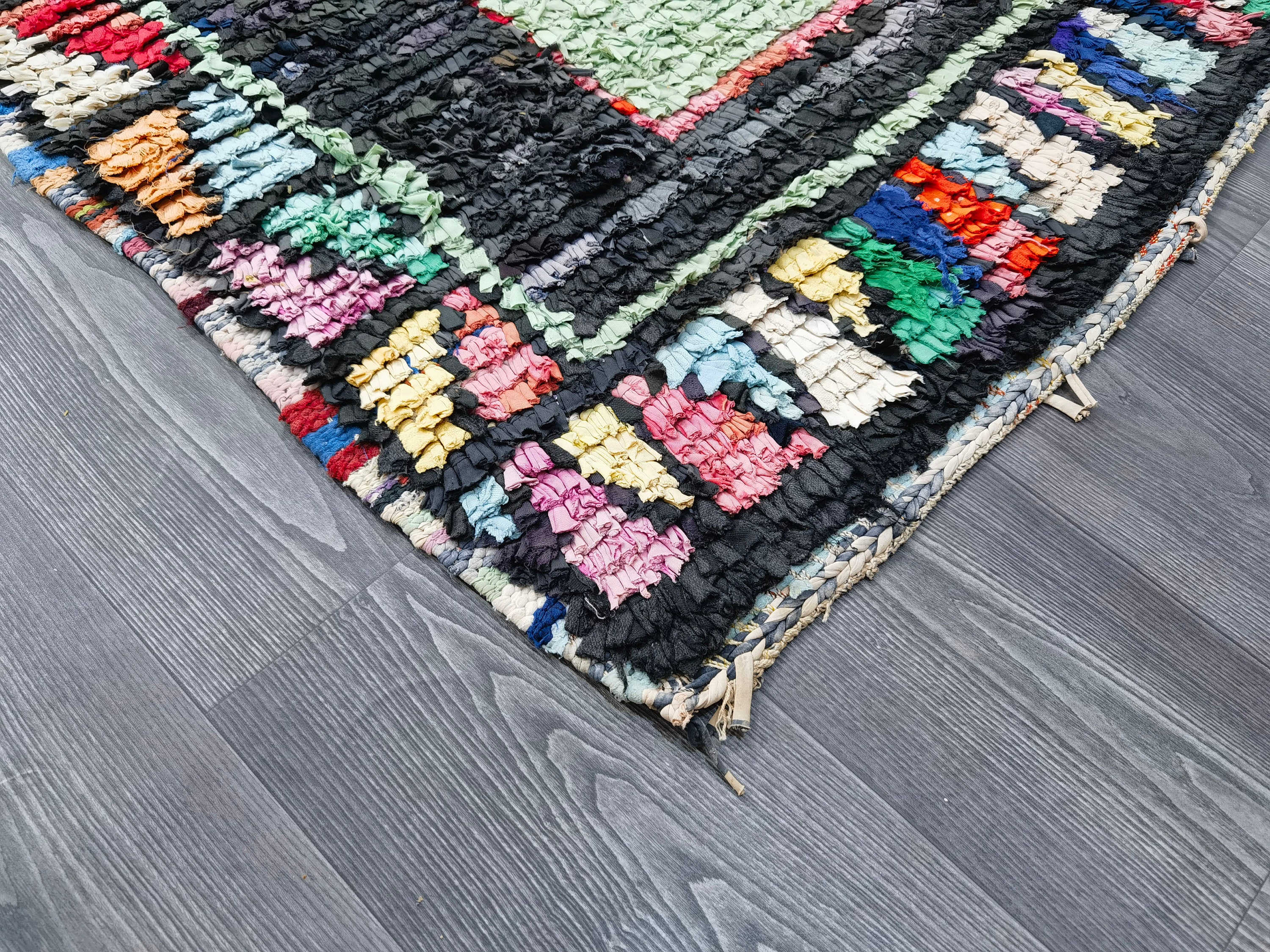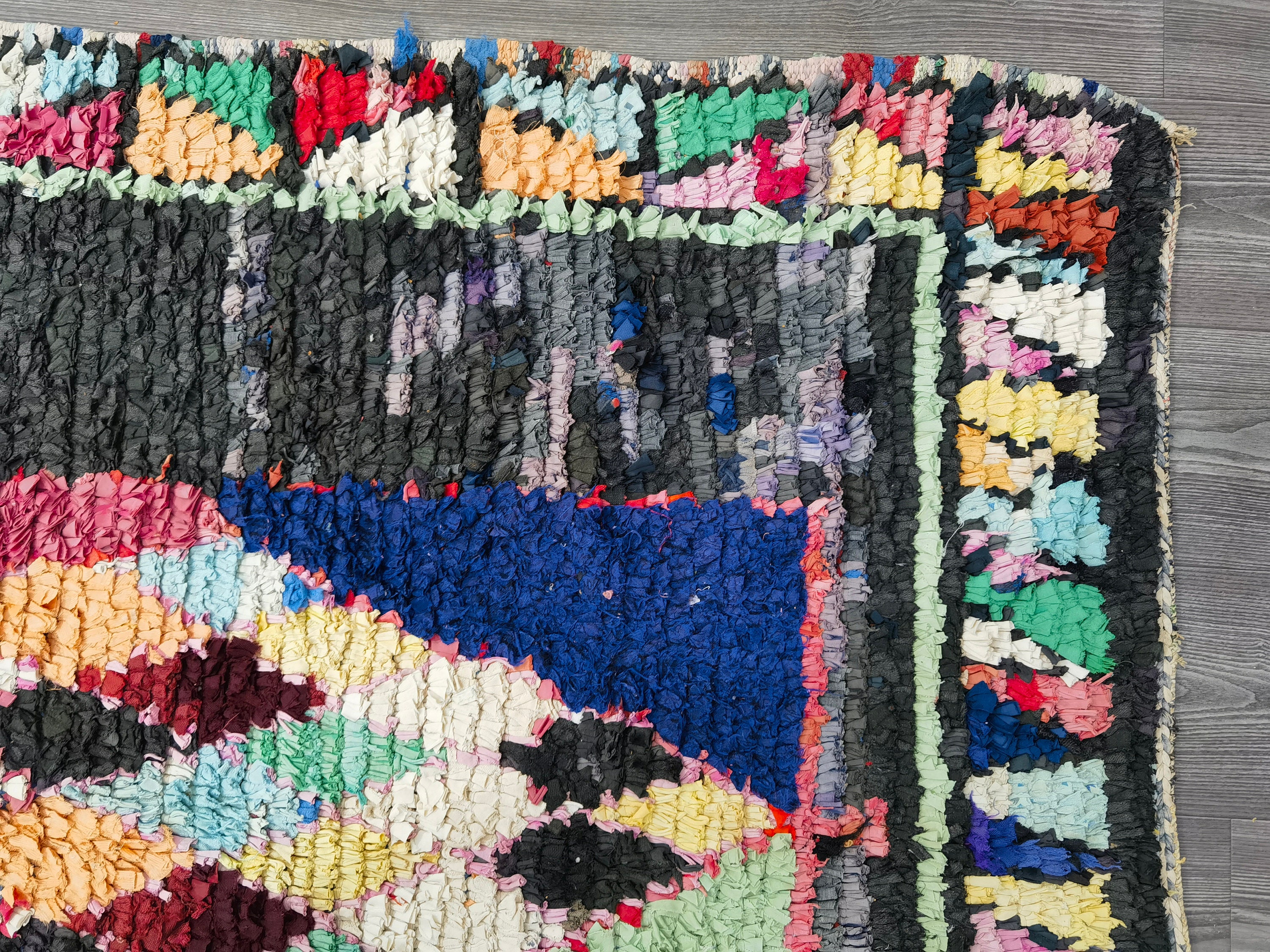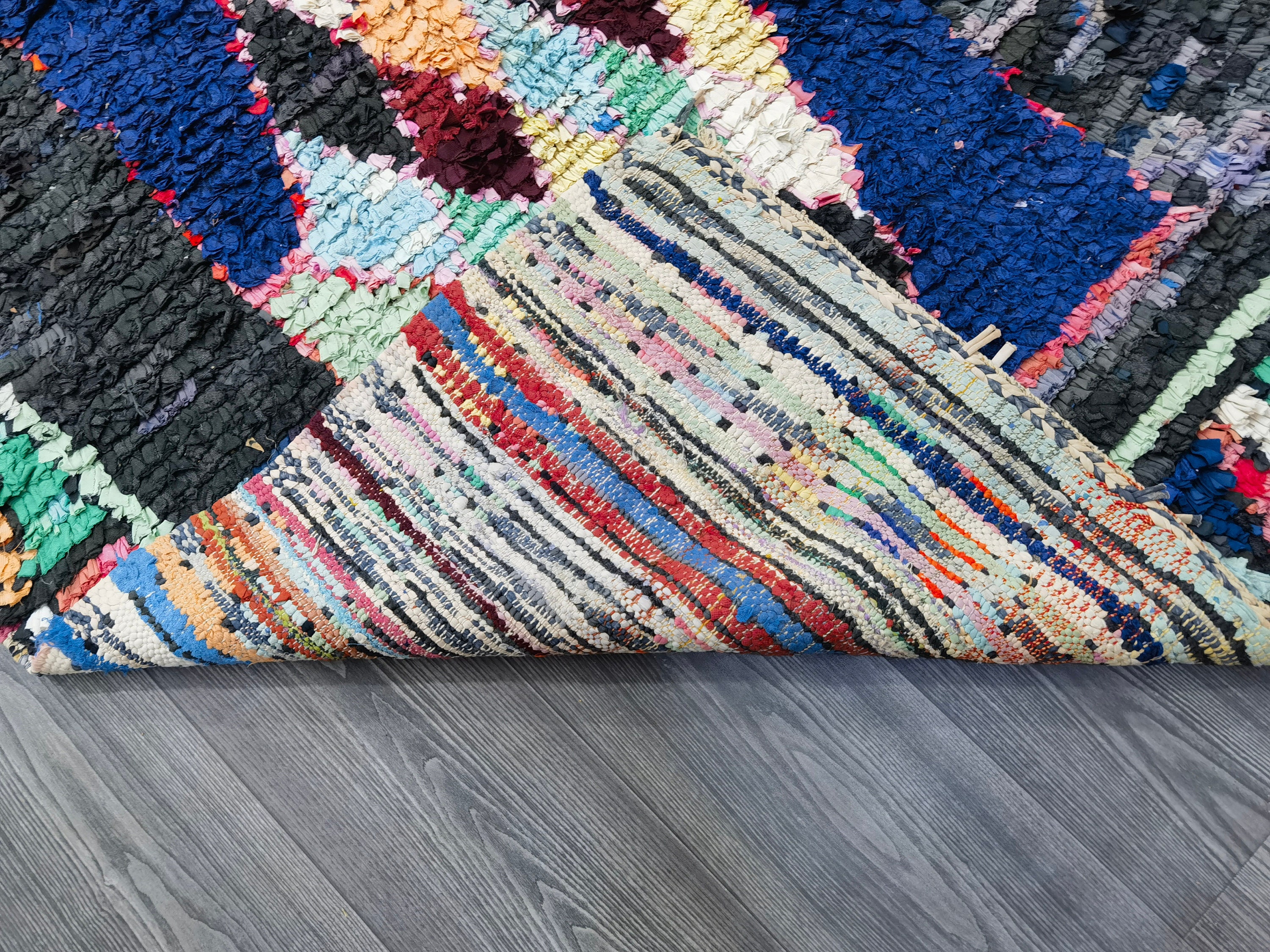 Boujaad Rugs For Living Room, Vintage Boujaad rug, Moroccan Handmade Vintage Boucherouite Rag, Boucherouite Carpet 4.2x8.2 ft (261x127 cm).