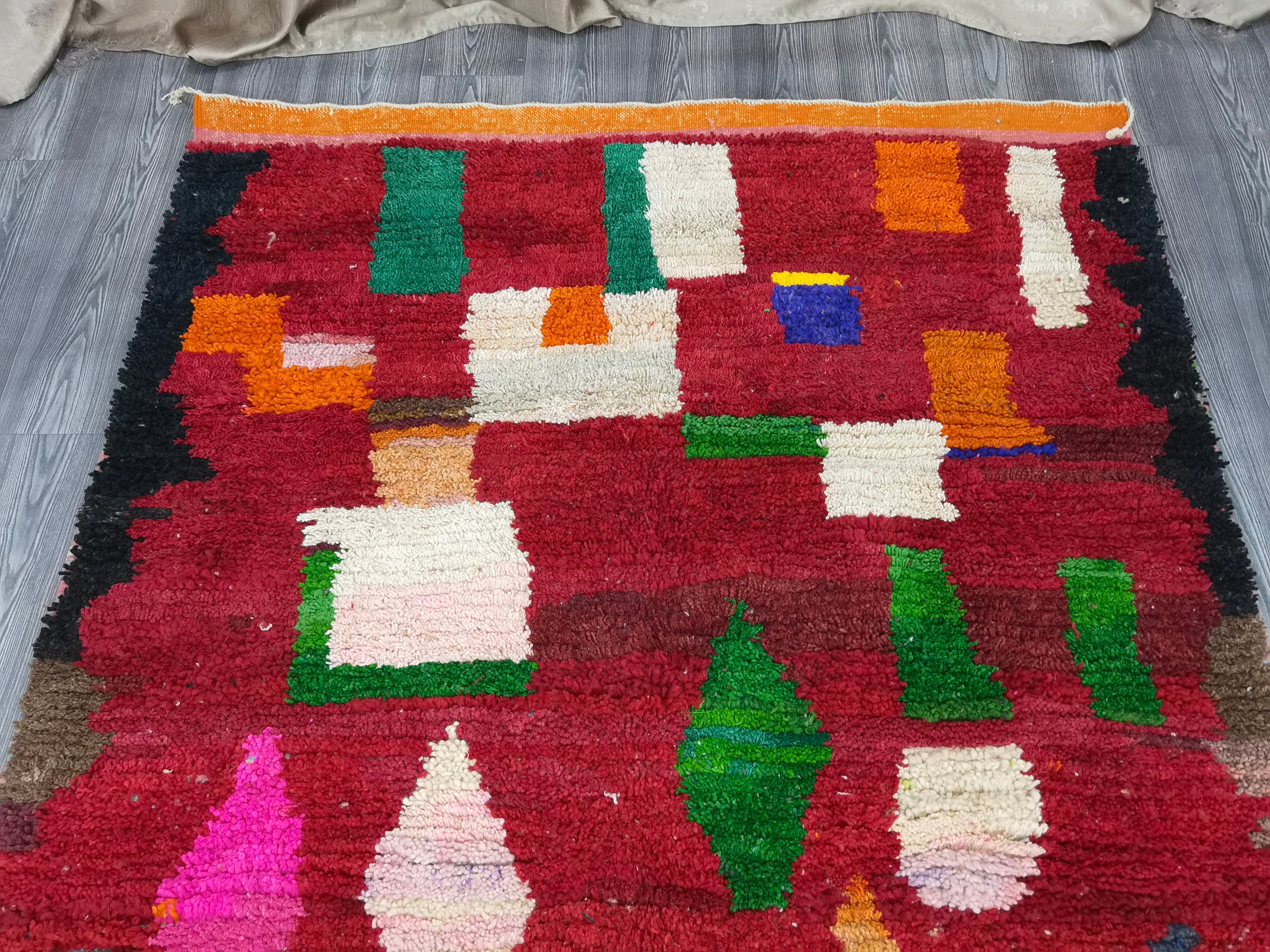 Amazing Moroccan Red Rug - Custom Bohemian Rugs - Unique Geometric Rug - Quality Handmade Morrocan Rug - Custom Rugs For Living Room