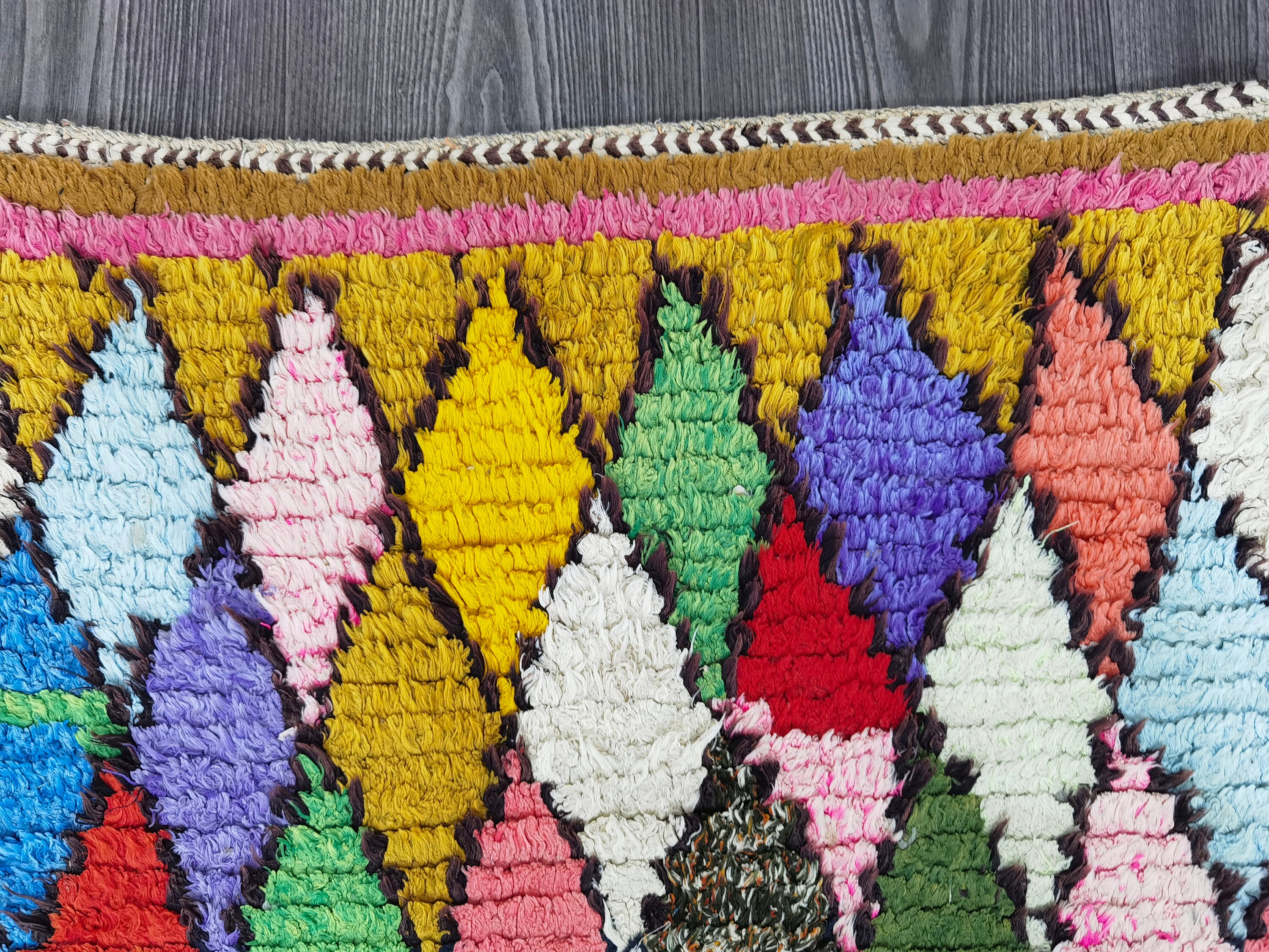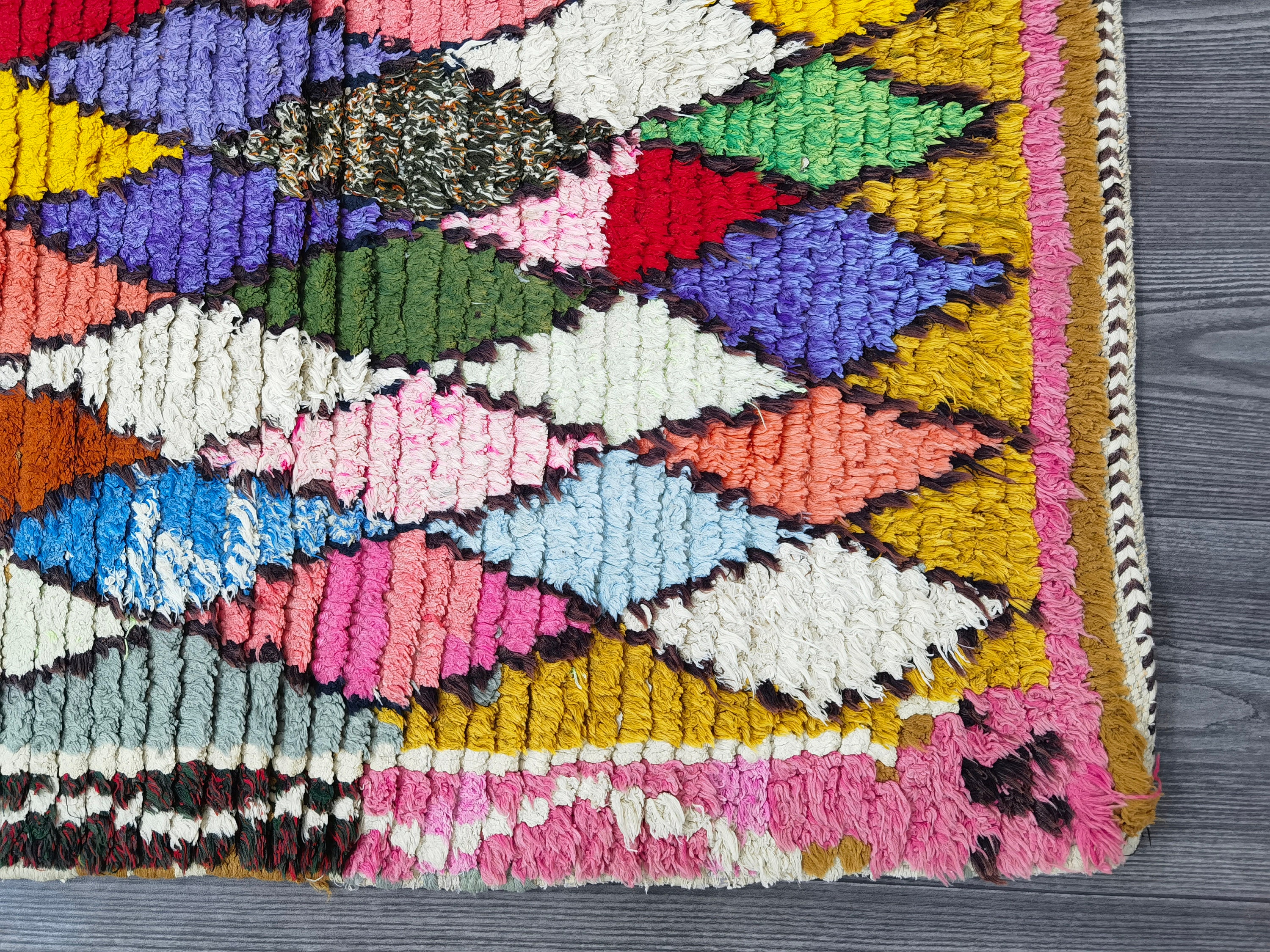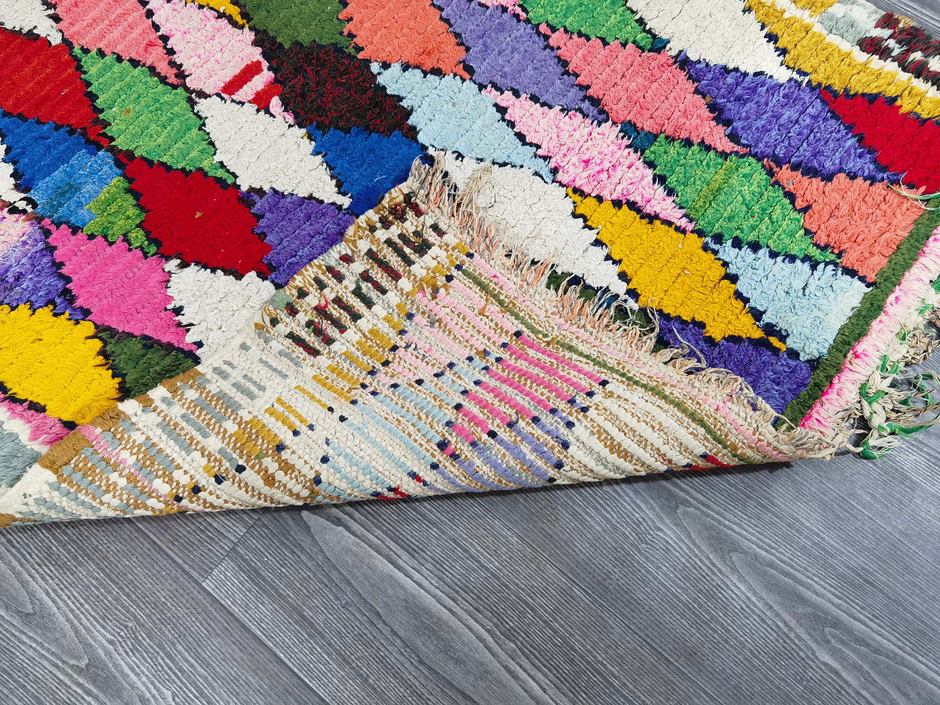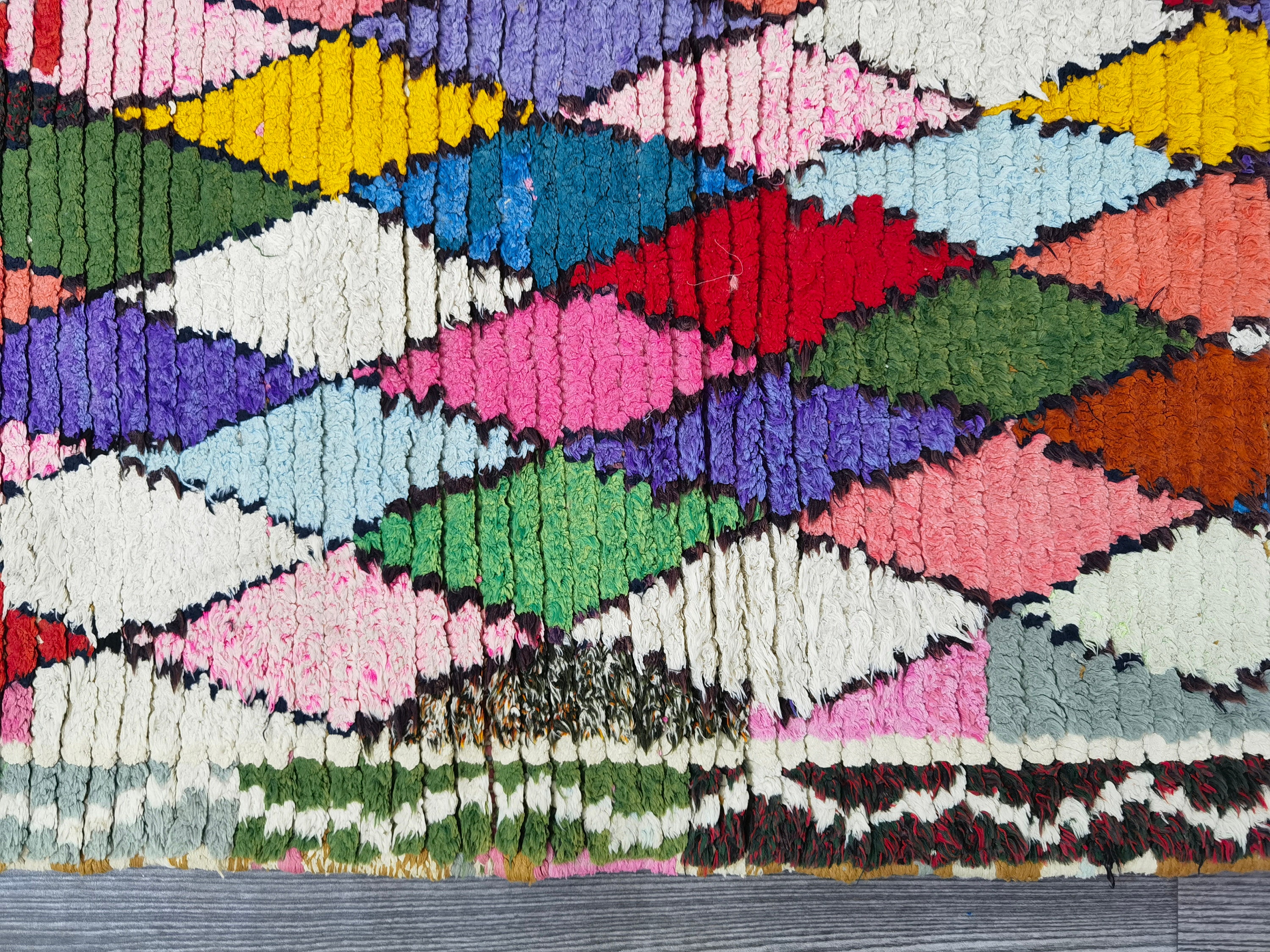 Boujaad is a vibrant and colorful wool runner that will add life to any room in your home. Made from 100% wool, this rug is perfect for use in the living room, bedroom, or anywhere you want to add some beautiful Moroccan flair. The soft and fluffy texture makes it comfortable to walk on, and the vivid colors will brighten up any space. Whether you're looking for a traditional shag rug or something a little more bohemian, Boujaad is sure to be a hit with your guests.