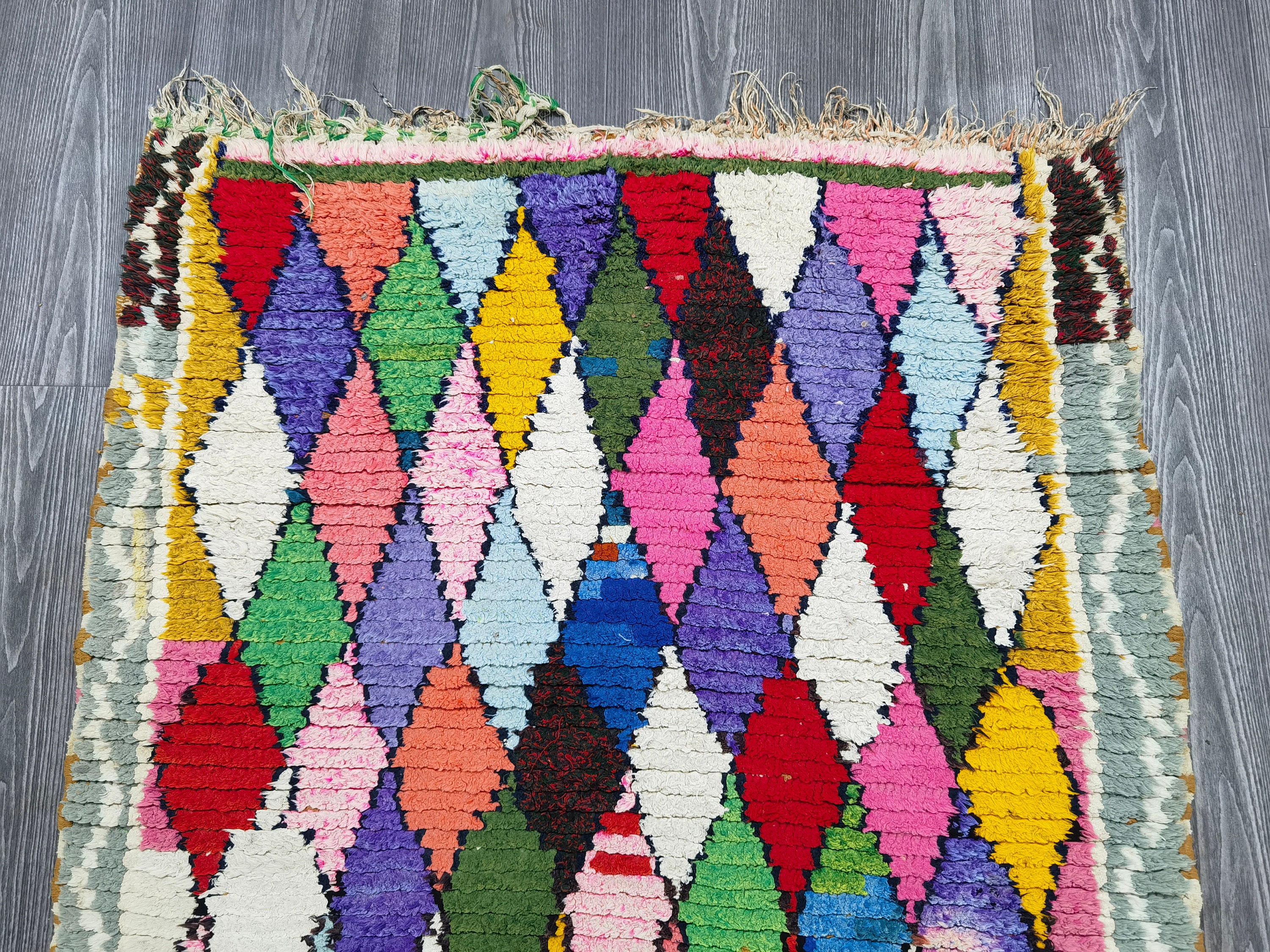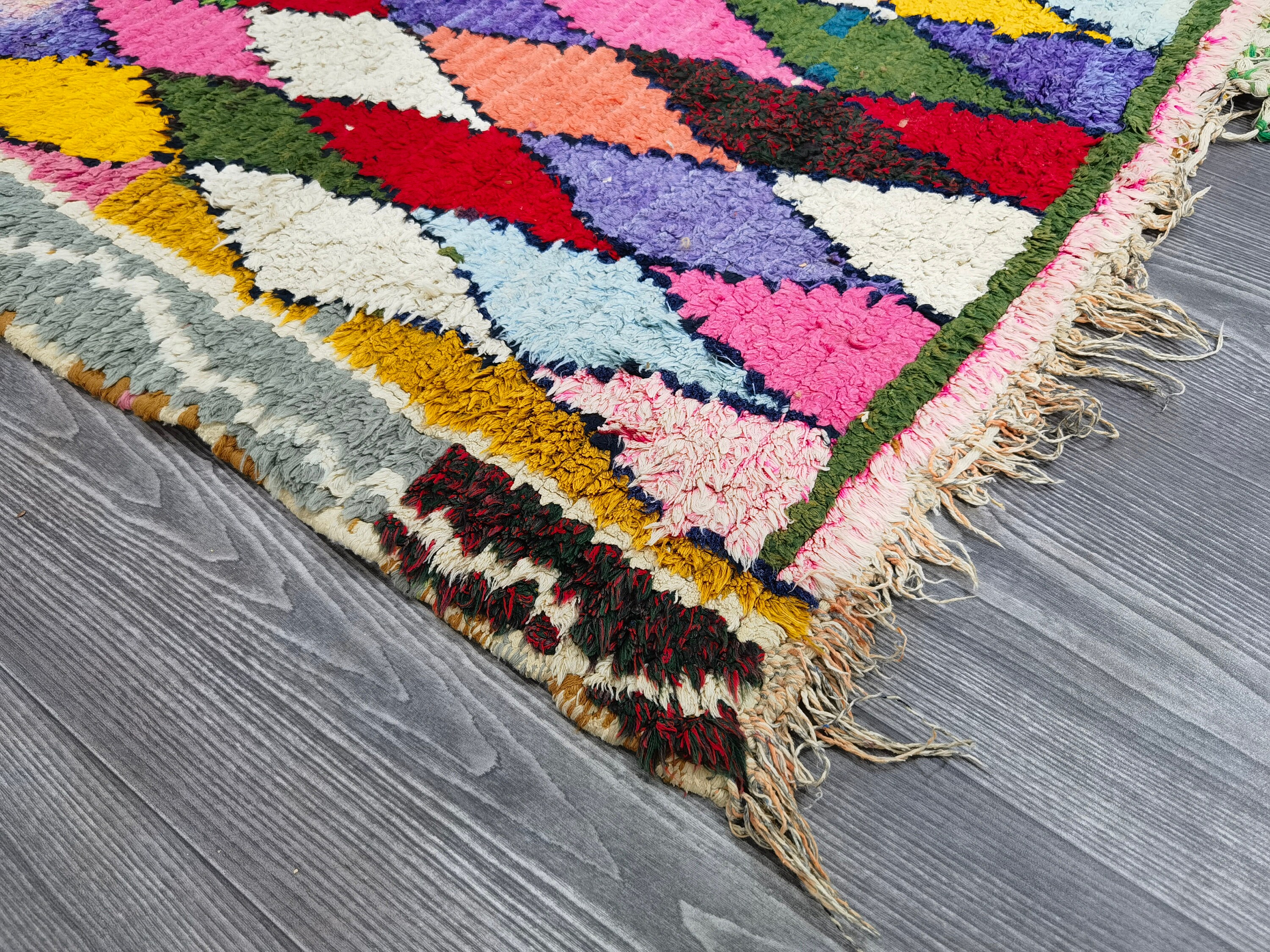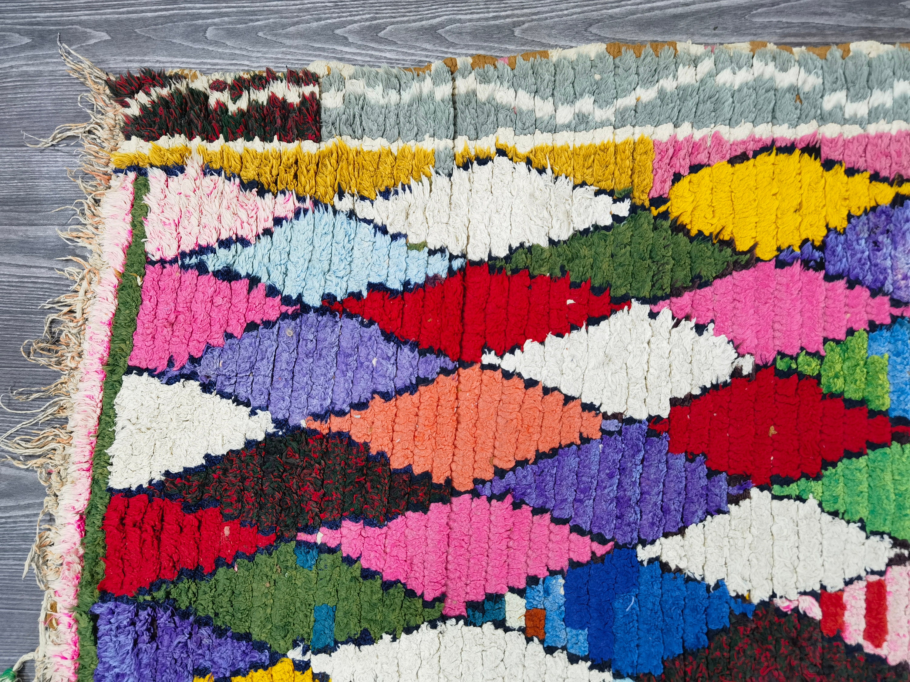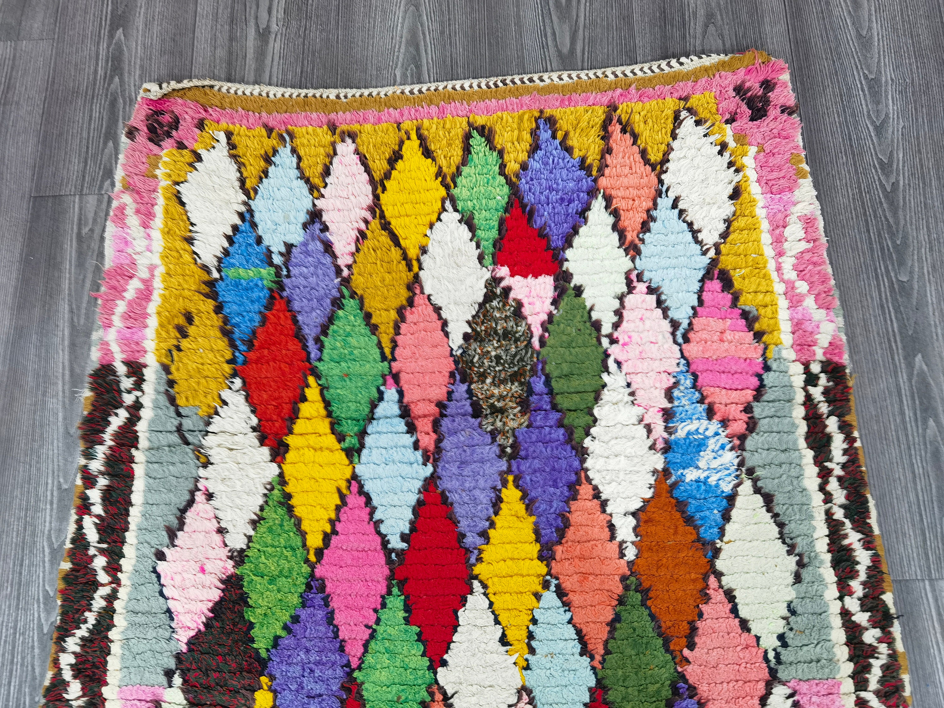 Boujaad is a vibrant and colorful wool runner that will add life to any room in your home. Made from 100% wool, this rug is perfect for use in the living room, bedroom, or anywhere you want to add some beautiful Moroccan flair. The soft and fluffy texture makes it comfortable to walk on, and the vivid colors will brighten up any space. Whether you're looking for a traditional shag rug or something a little more bohemian, Boujaad is sure to be a hit with your guests.