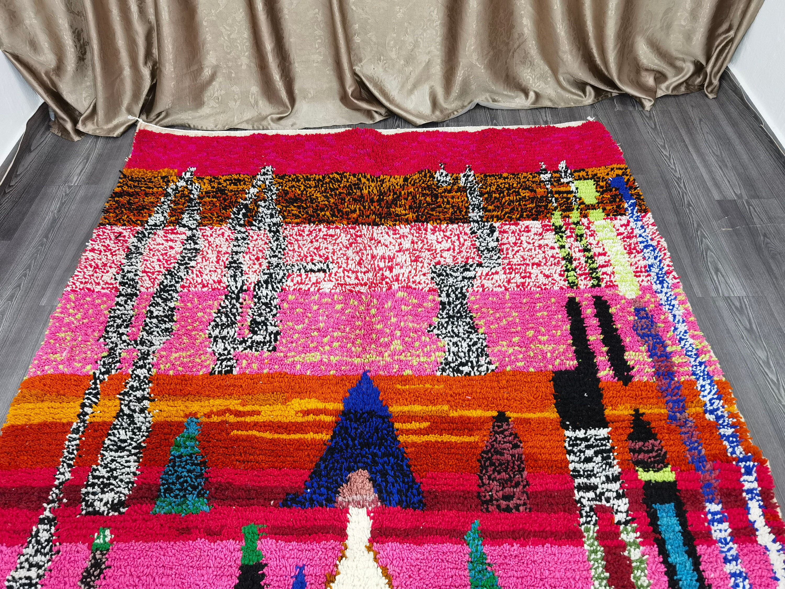 Amazing Moroccan Pink Rug - Multicolored Rug For Living Room - Moroccan Pink rug - Moroccan Berber Traditional Carpet - Moroccan Wool Rug