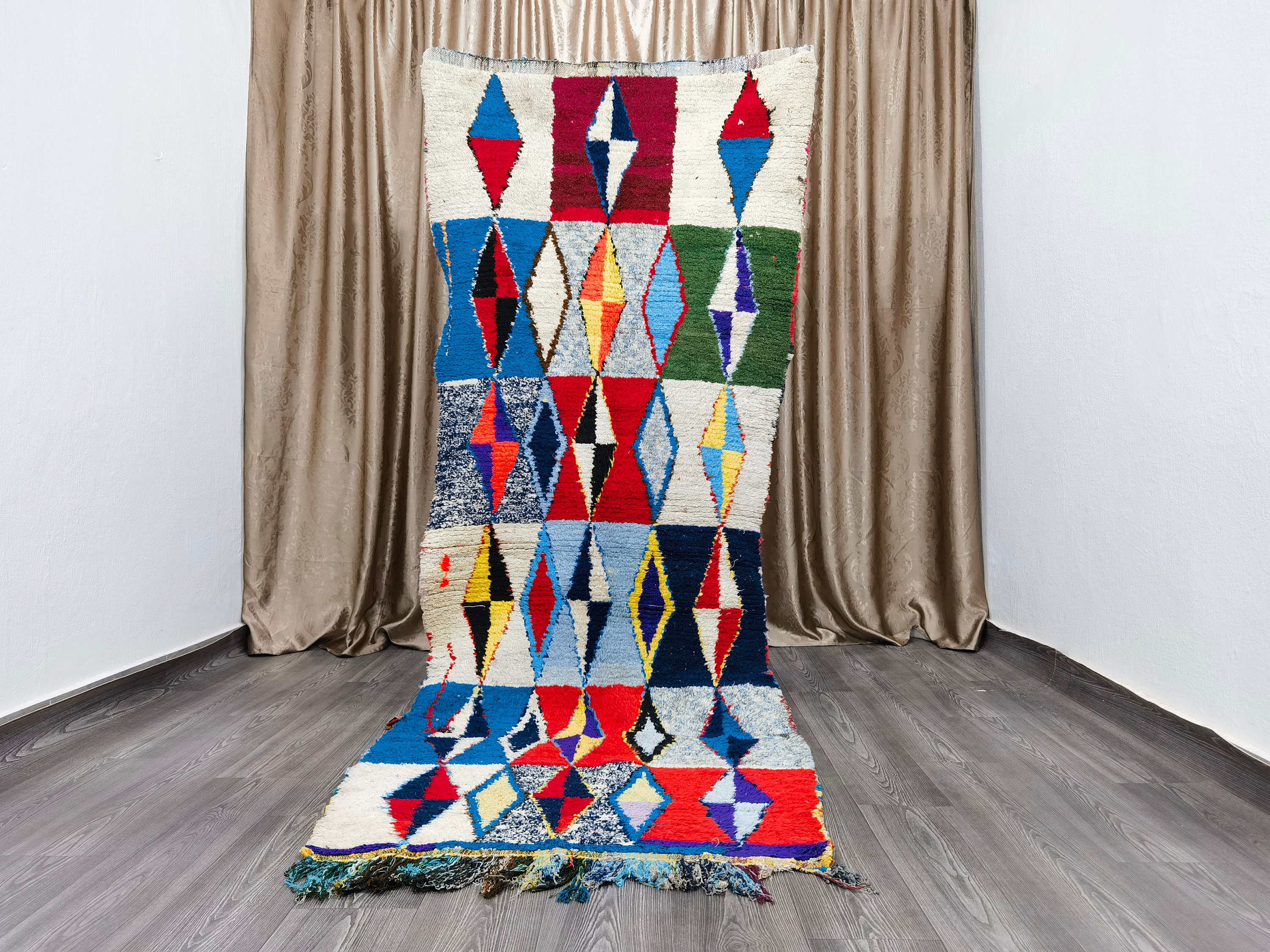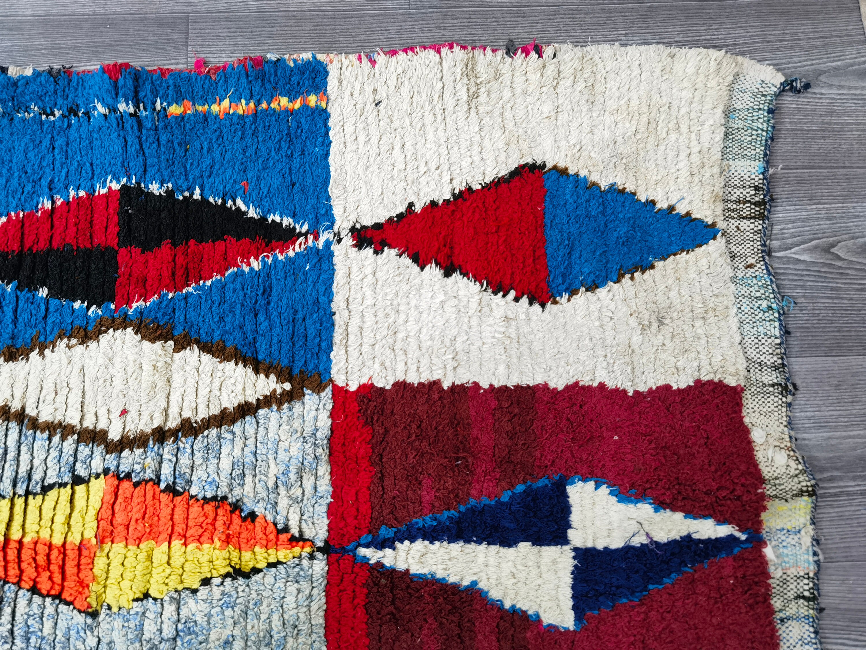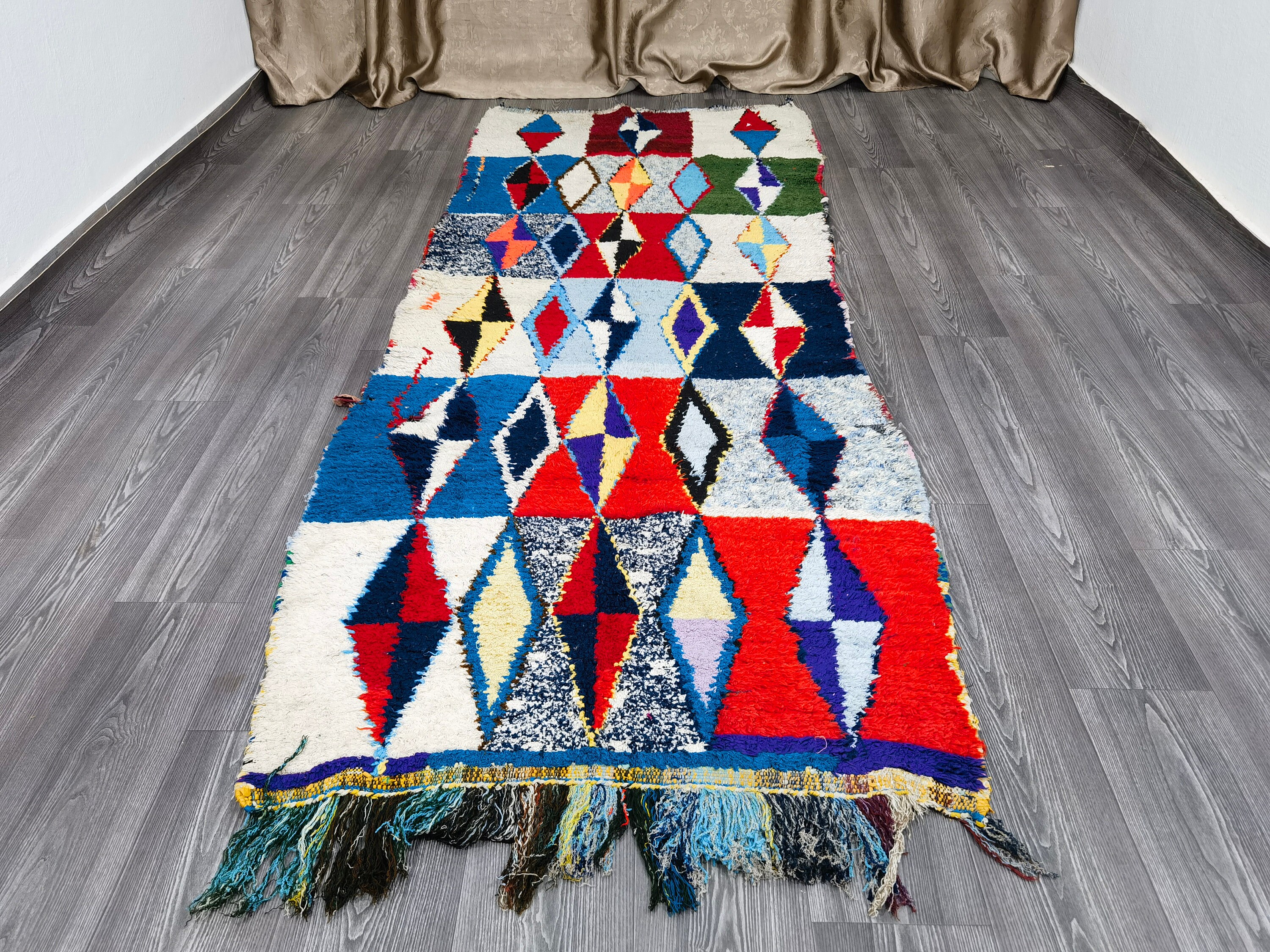 Boujaad is a vibrant and colorful wool runner that will add life to any room in your home. Made from 100% wool, this rug is perfect for use in the living room, bedroom, or anywhere you want to add some beautiful Moroccan flair. The soft and fluffy texture makes it comfortable to walk on, and the vivid colors will brighten up any space. Whether you're looking for a traditional shag rug or something a little more bohemian, Boujaad is sure to be a hit with your guests.