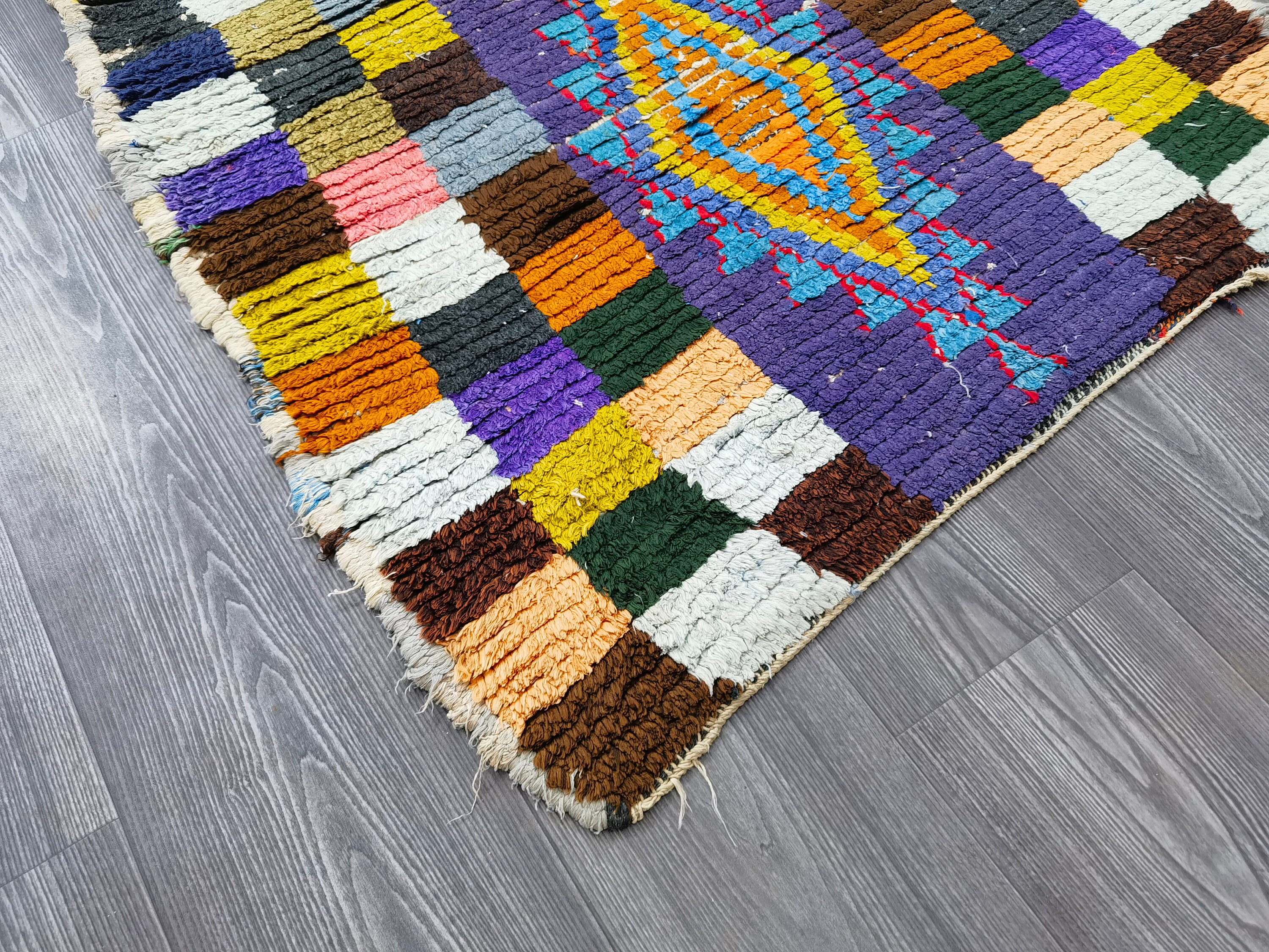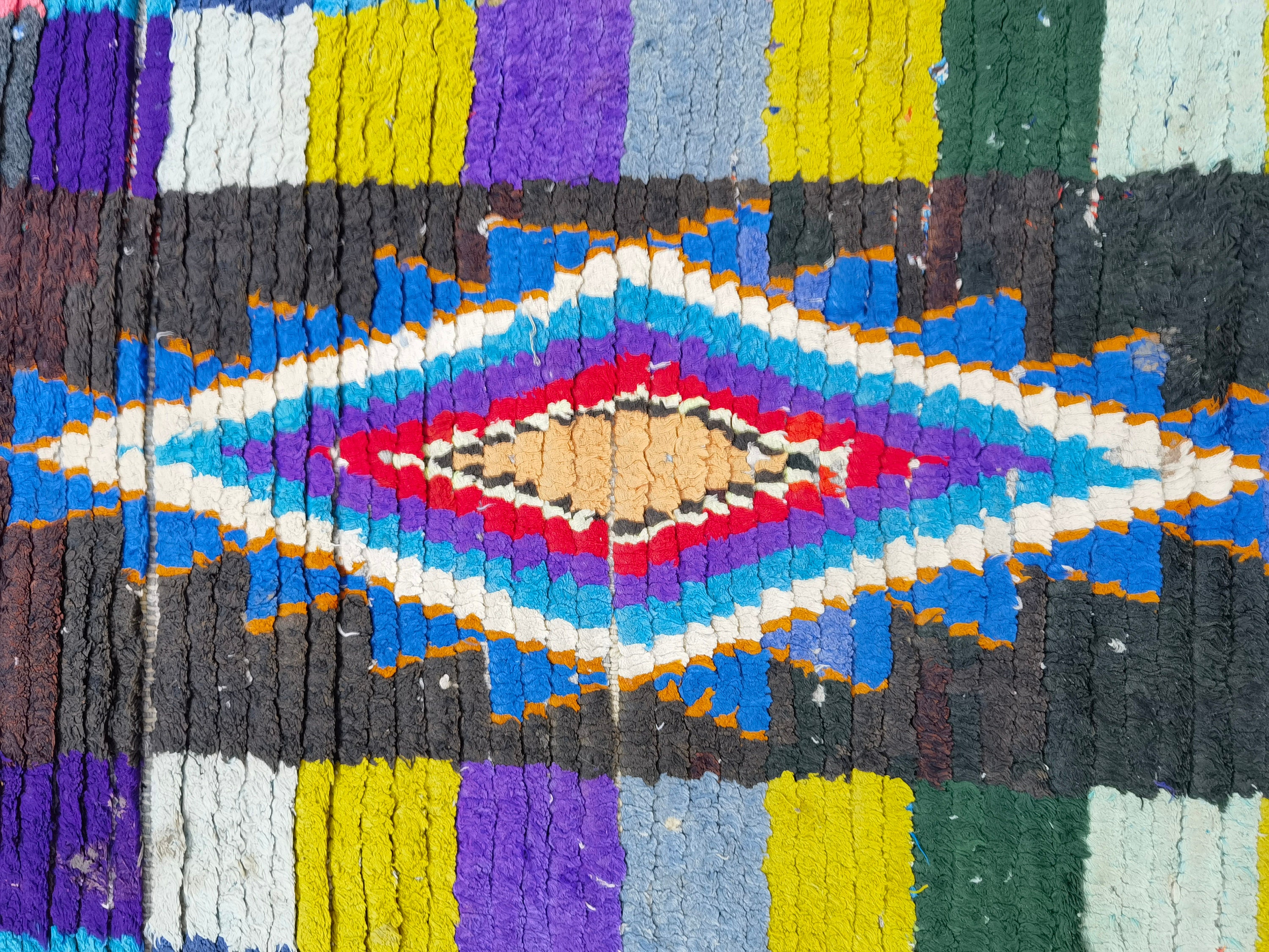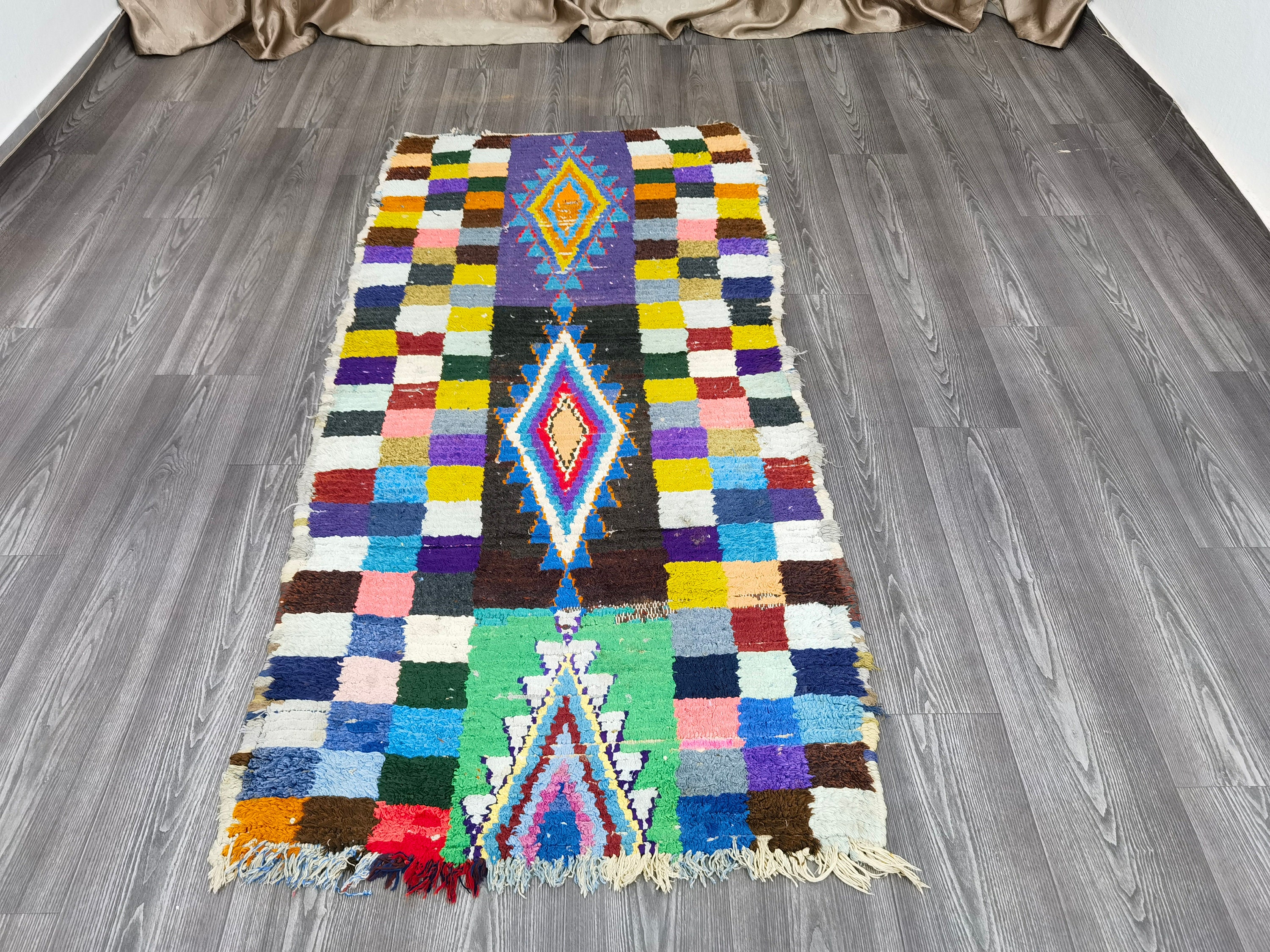 This unique Handwoven Moroccan Boujaad wool rug is one of a kind. A unique rare artistic handmade art, a beautiful combination of colors. which makes it the best choice whether for your house or your showroom. The famous Boujaad rug is now on the cover of the world’s leading home decoration magazines. This rug with character goes perfectly with all interior styles, Bohemian, Modern, Minimalist, Scandinavian, Traditional, which makes it the best choice for your needs.