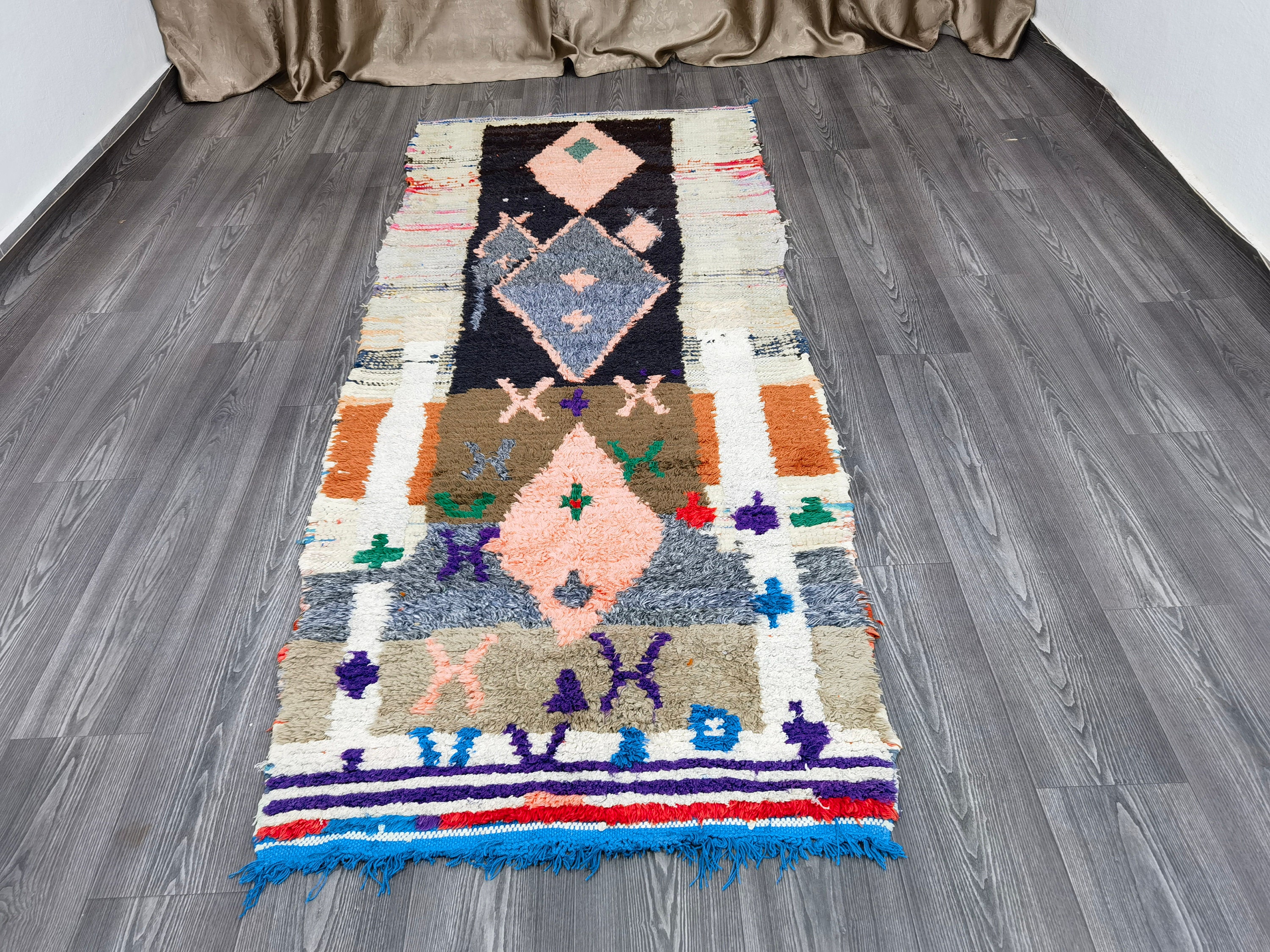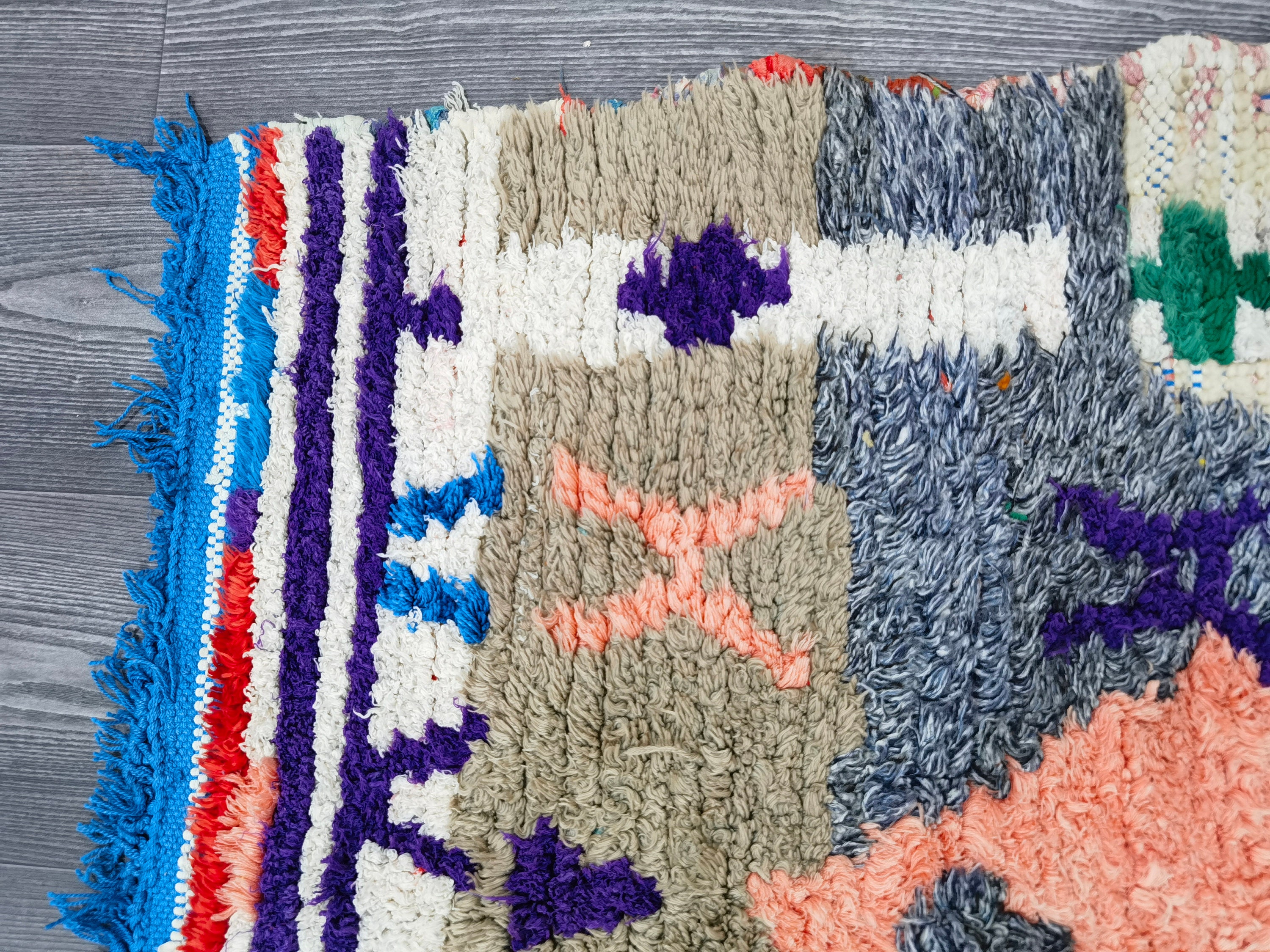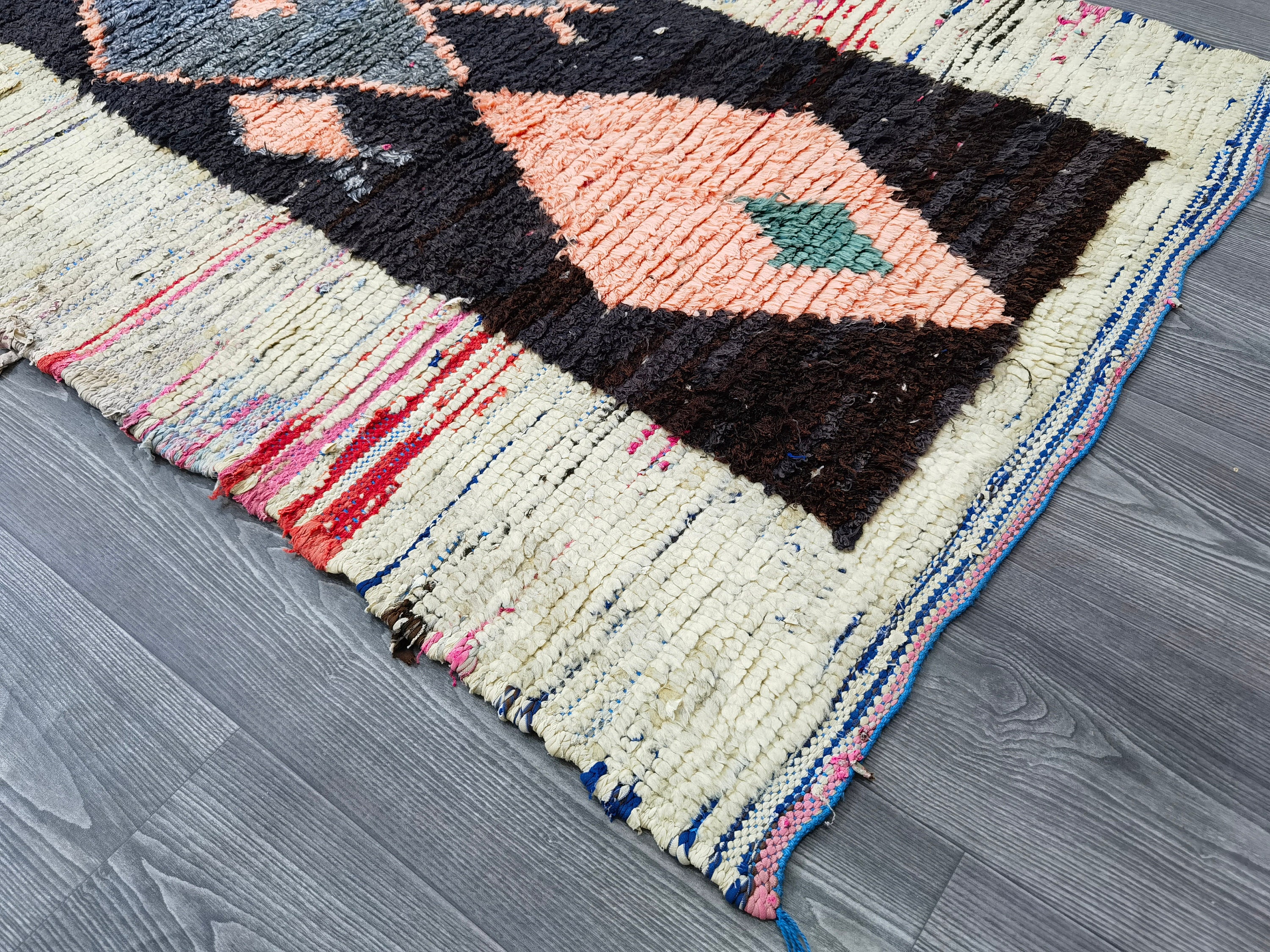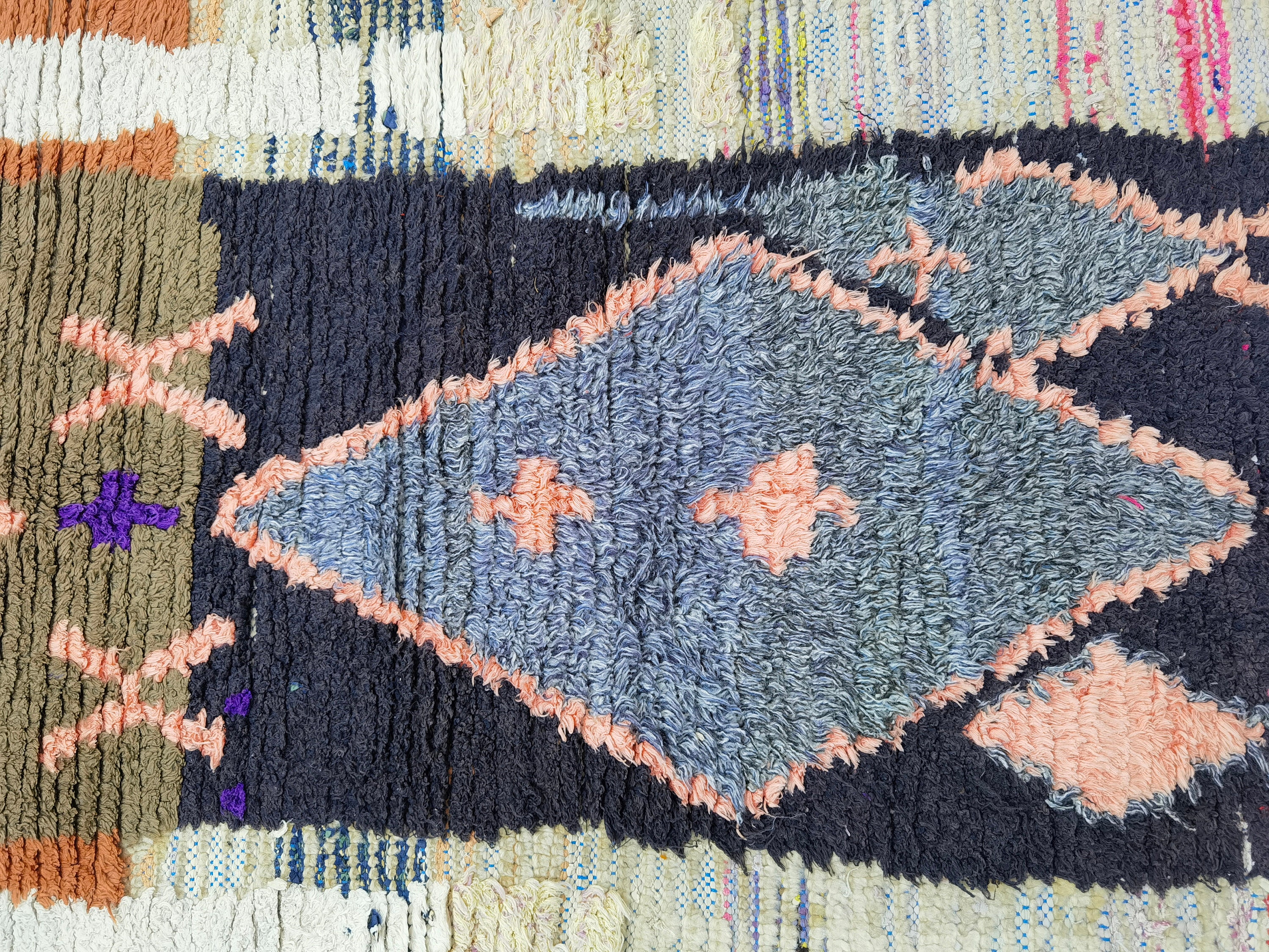 This unique Handwoven Moroccan Boujaad wool rug is one of a kind. A unique rare artistic handmade art, a beautiful combination of colors. which makes it the best choice whether for your house or your showroom. The famous Boujaad rug is now on the cover of the world’s leading home decoration magazines. This rug with character goes perfectly with all interior styles, Bohemian, Modern, Minimalist, Scandinavian, Traditional, which makes it the best choice for your needs.