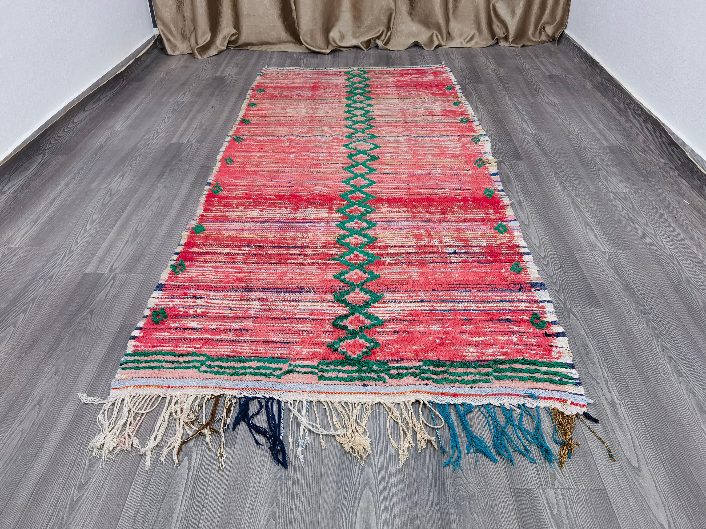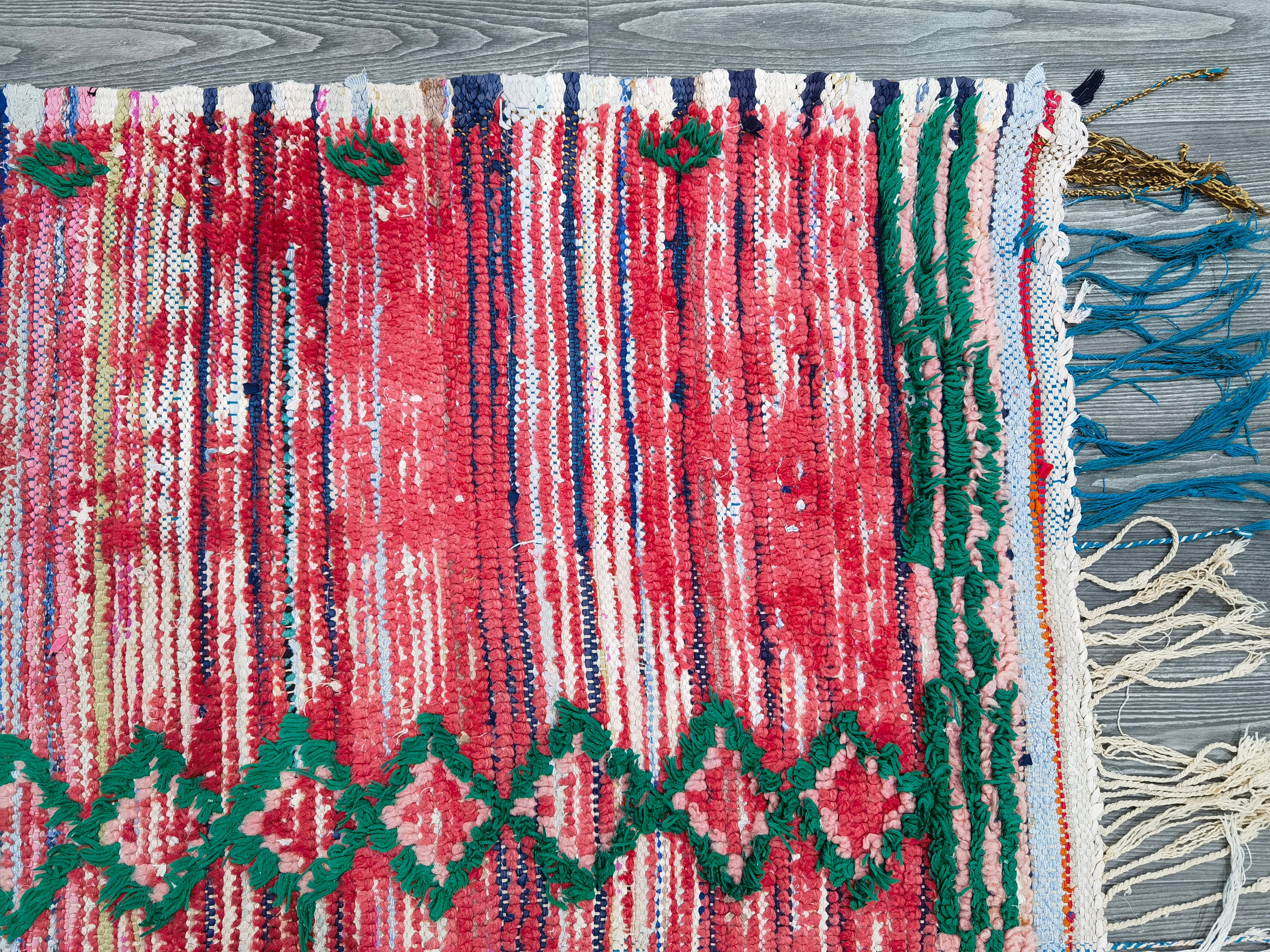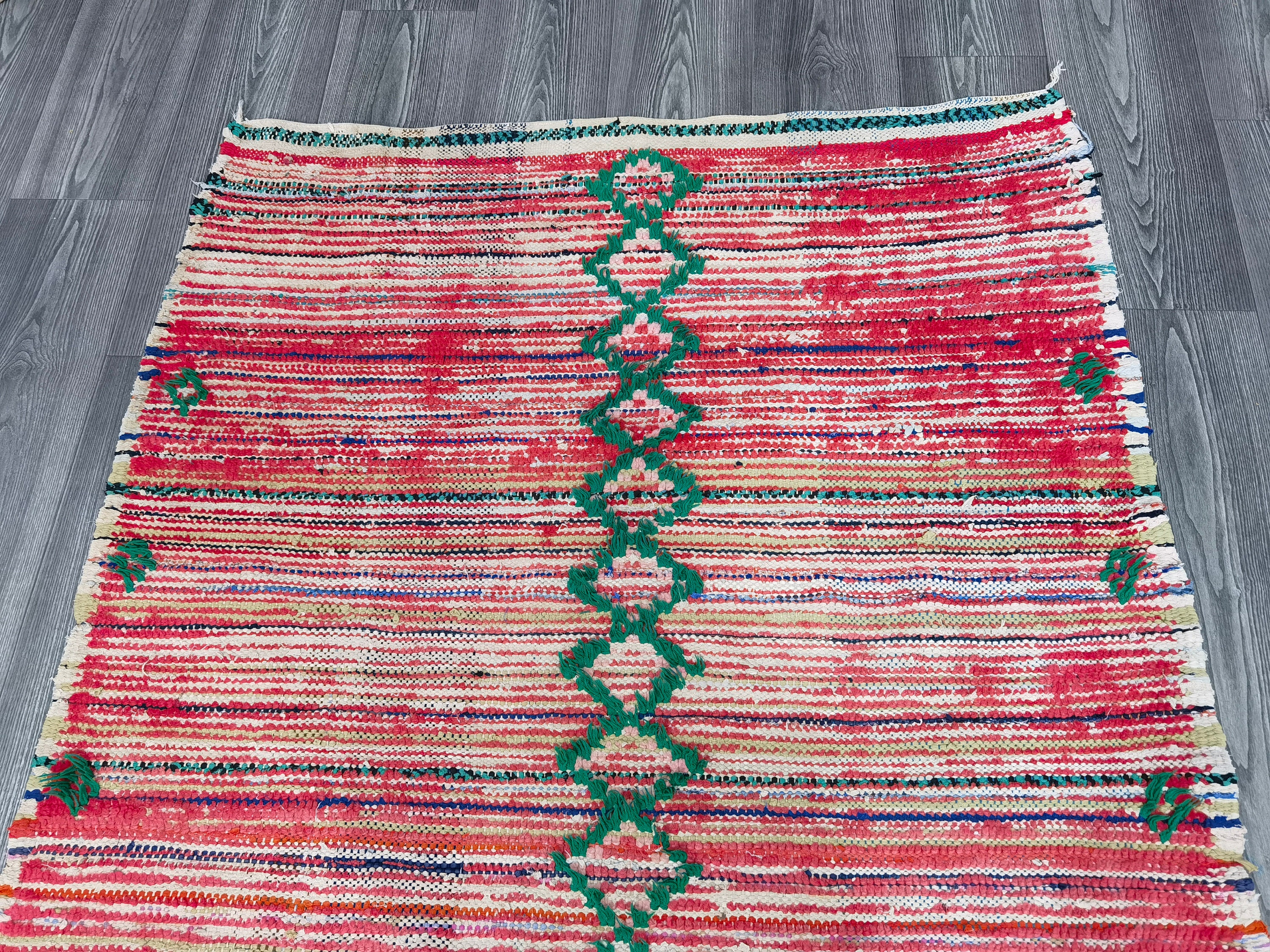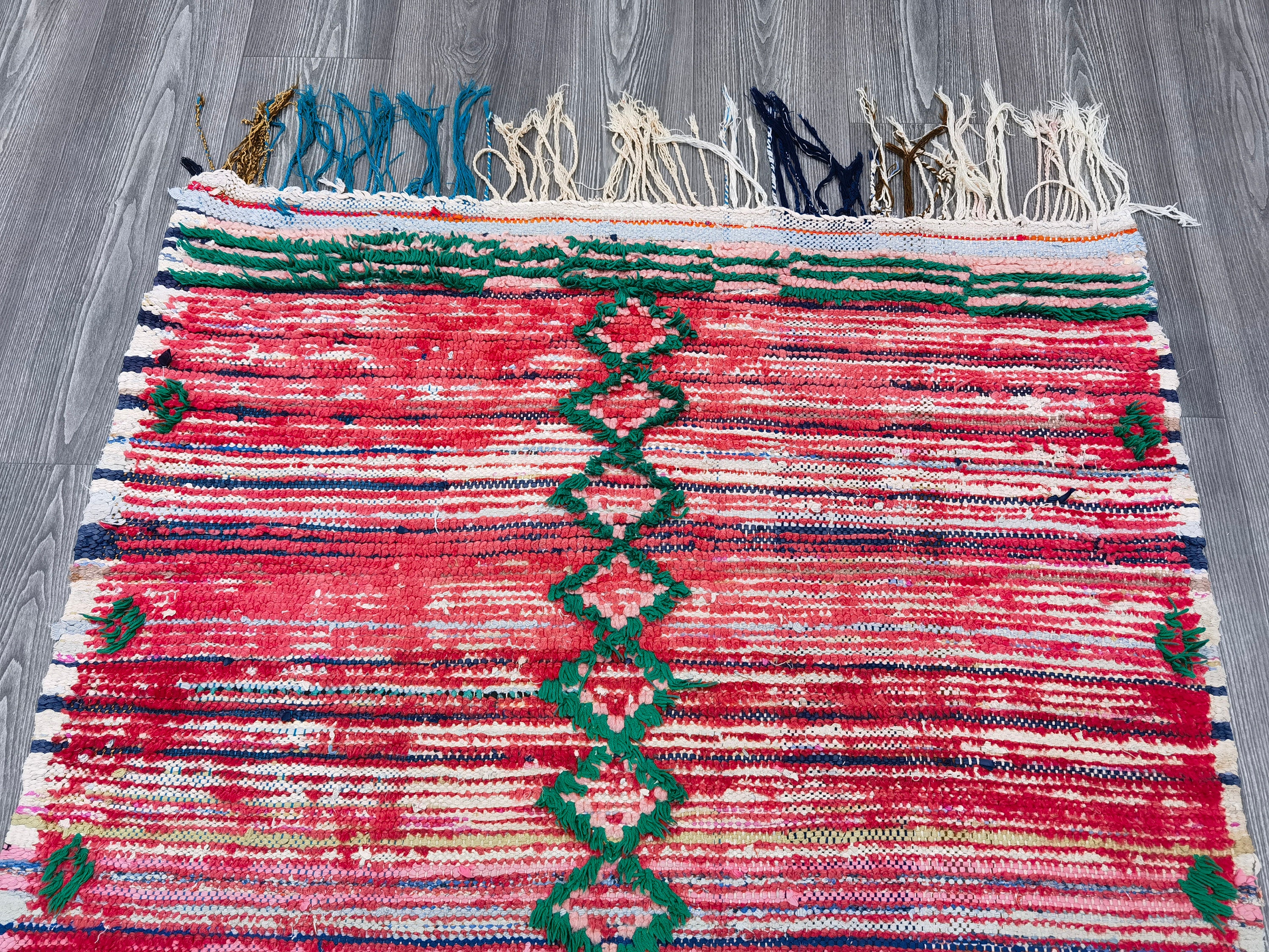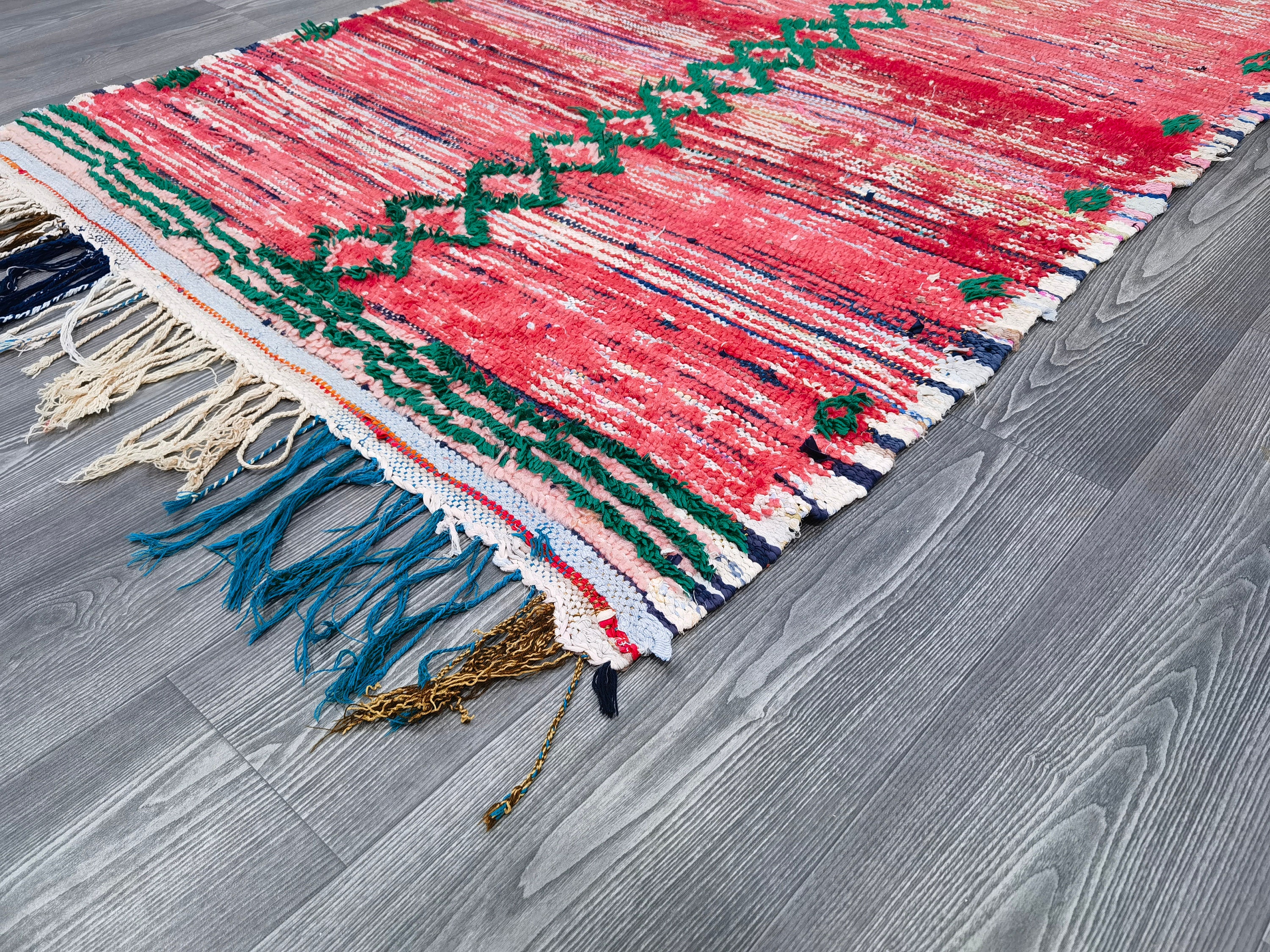 Colorful Bohemian Runner Rug - wool shaggy rug - Red berber rug - beni ourain rug - boho area rug - runner handmad rug - red rugs 4x9 ft