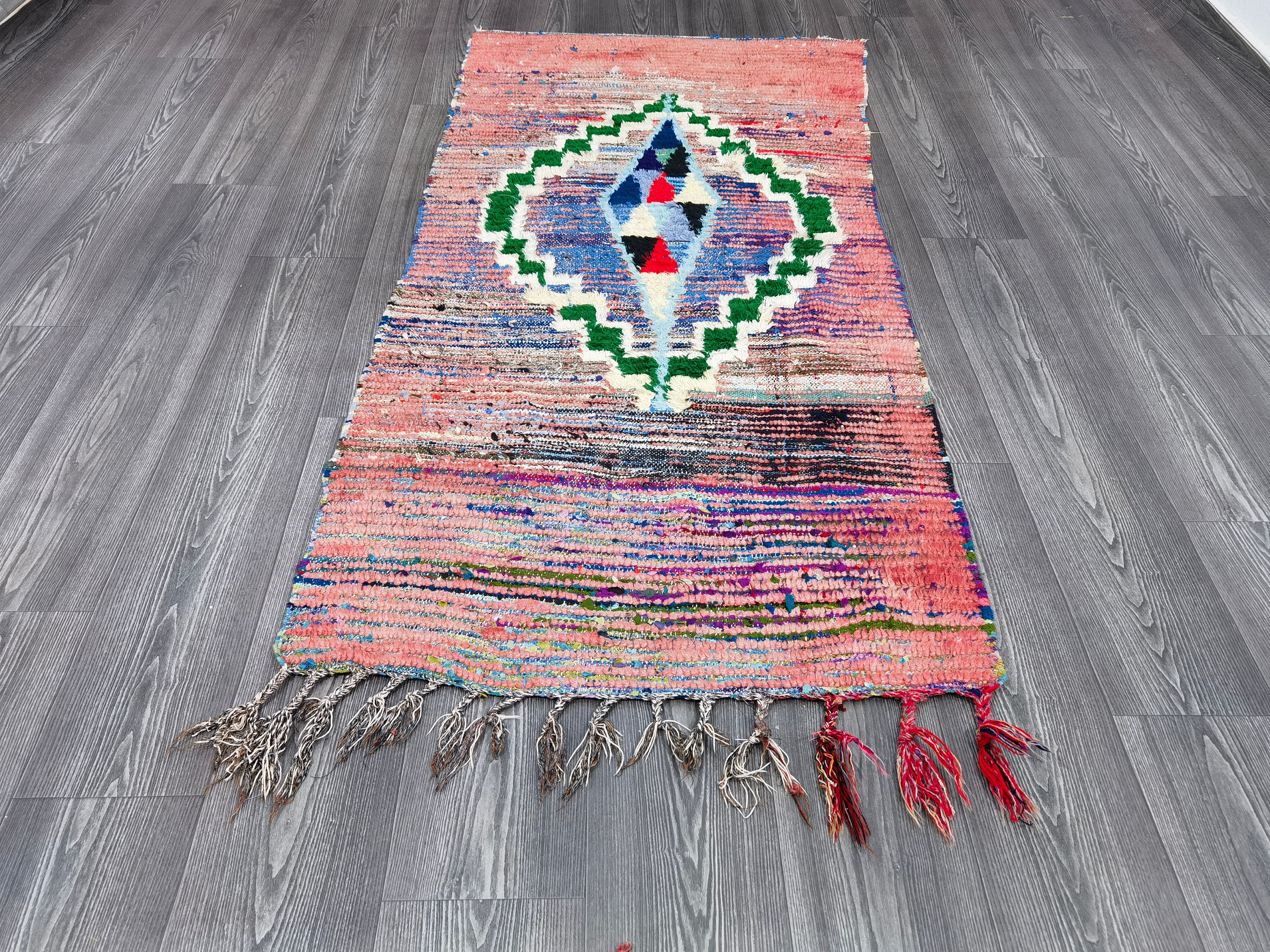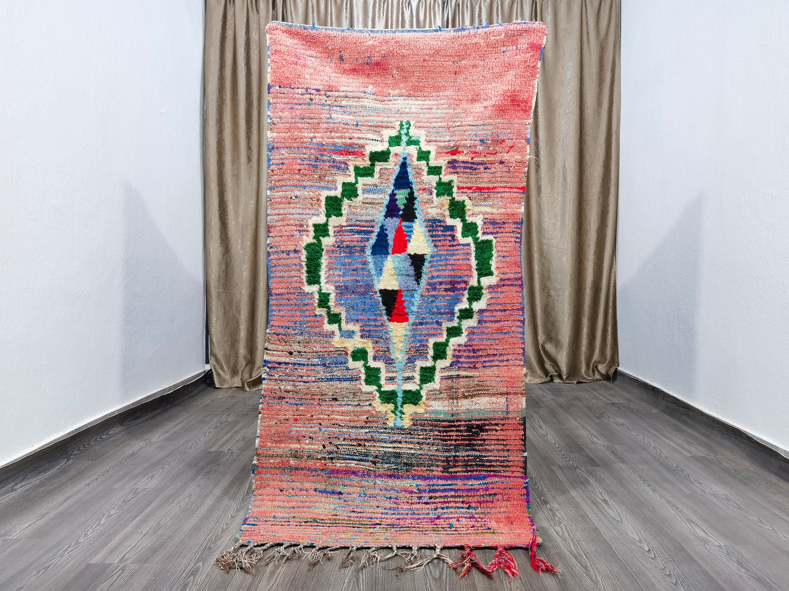 2.8x6 Ft - Berber Moroccan Area Rug - Colorful Vintage Moroccan Area Rug - Moroccan Bohemian Shag Rug .