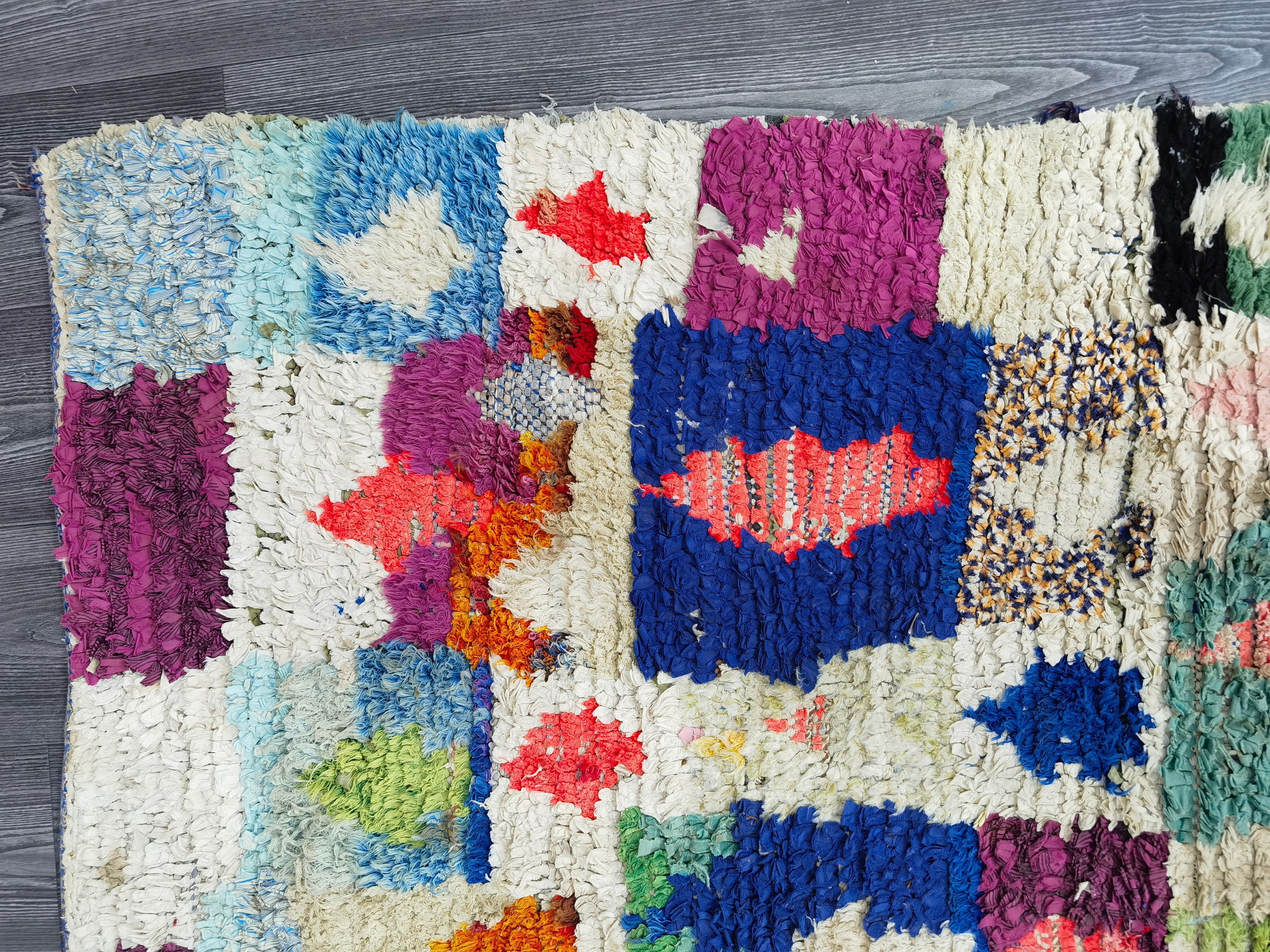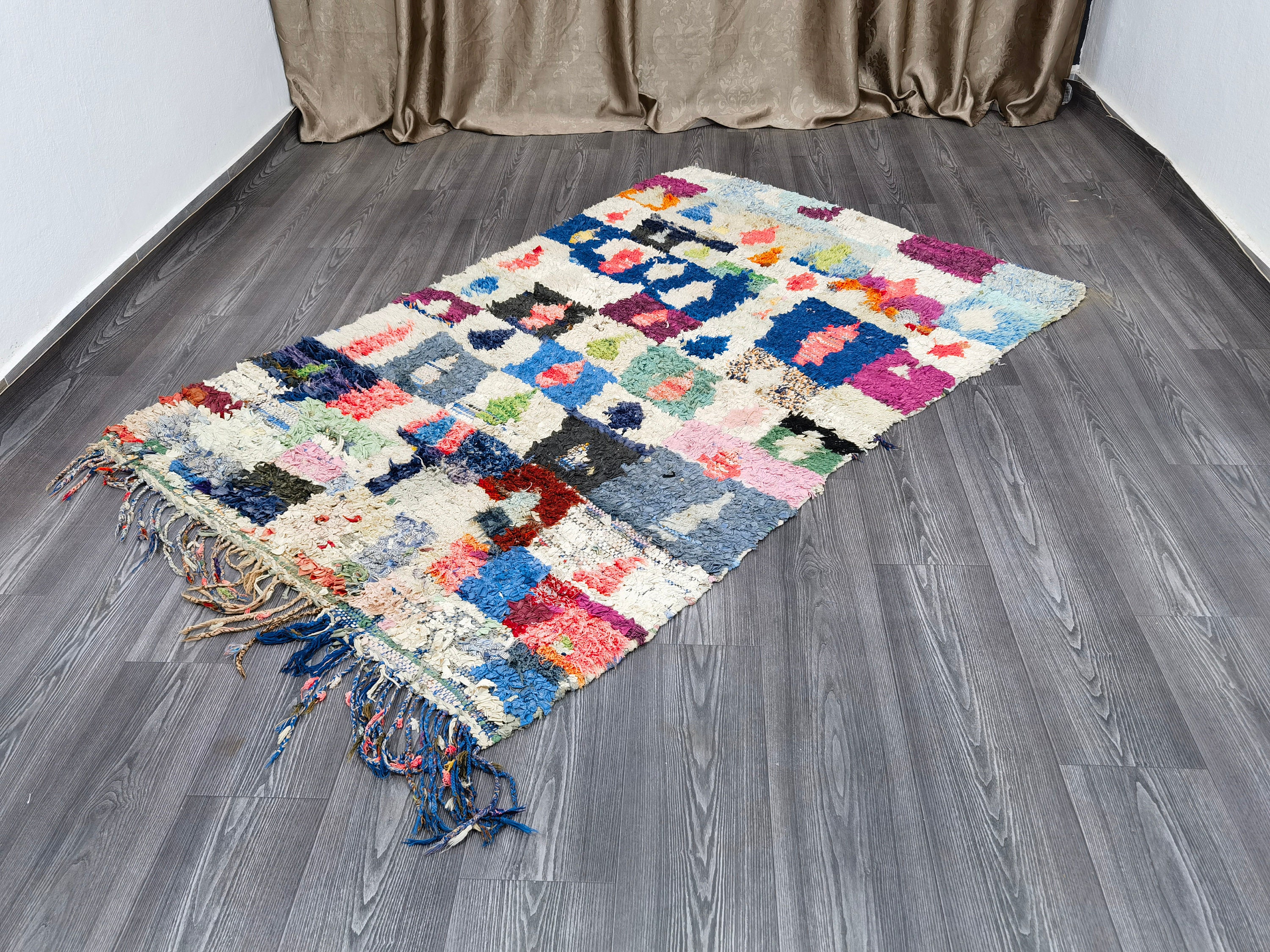 Amazing Vintage Moroccan Boujad Rug 4x6.4 ft - Rugs for Living Room , Woven Azilal Rugs, Unique Geometric Rug - Berber woven area rug