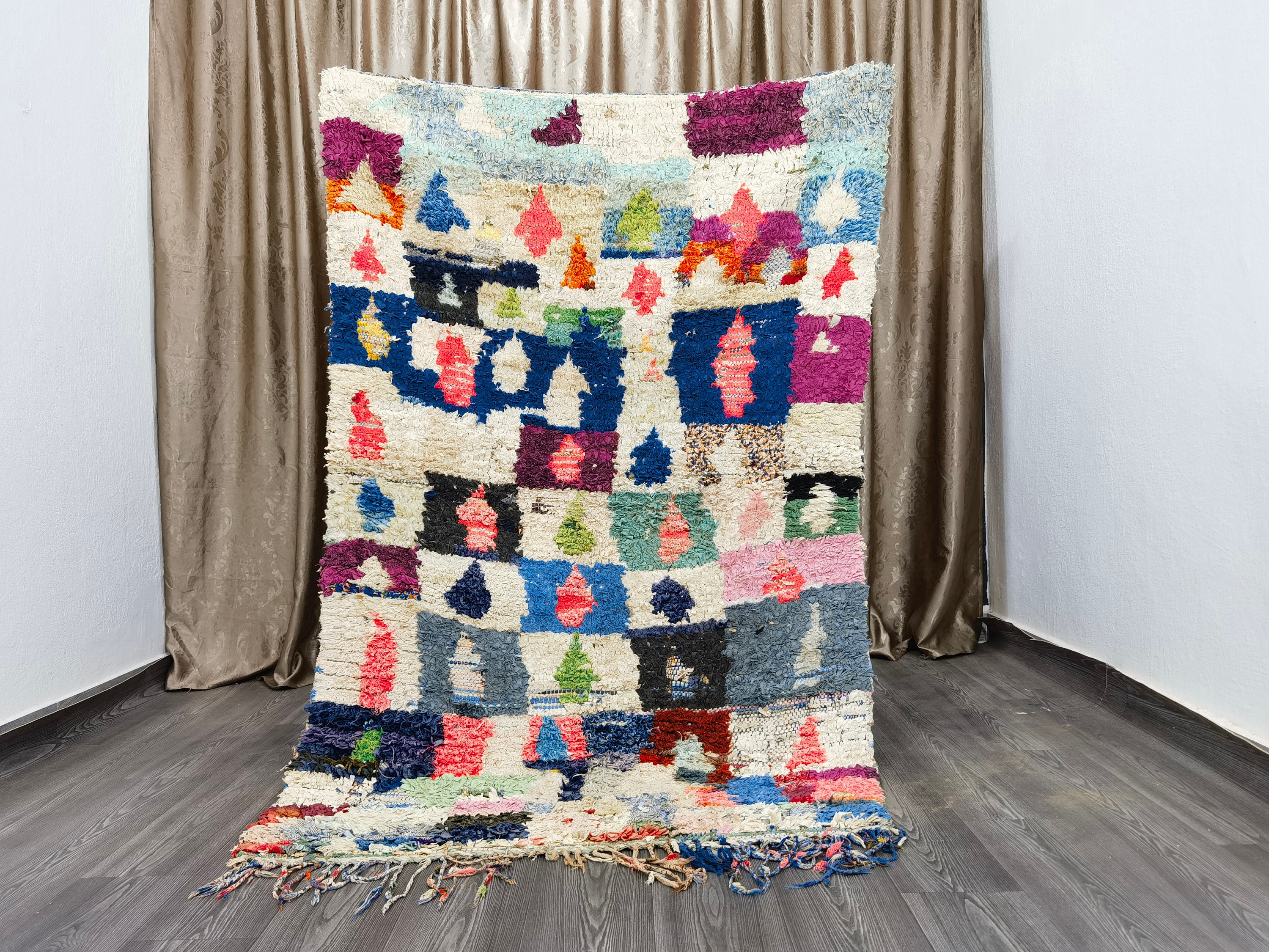 Boujaad is a vibrant and colorful wool rug that will add life to any room in your home. Made from 100% wool, this rug is perfect for use in the living room, bedroom, or anywhere you want to add some beautiful Moroccan flair. The soft and fluffy texture makes it comfortable to walk on, and the vivid colors will brighten up any space. Whether you're looking for a traditional shag rug or something a little more bohemian, Boujaad is sure to be a hit with your guests.