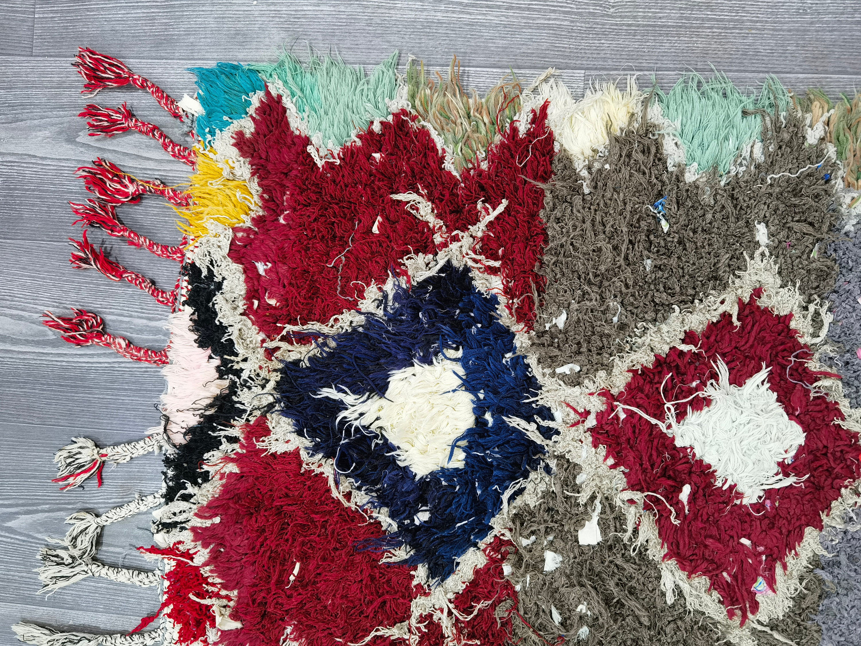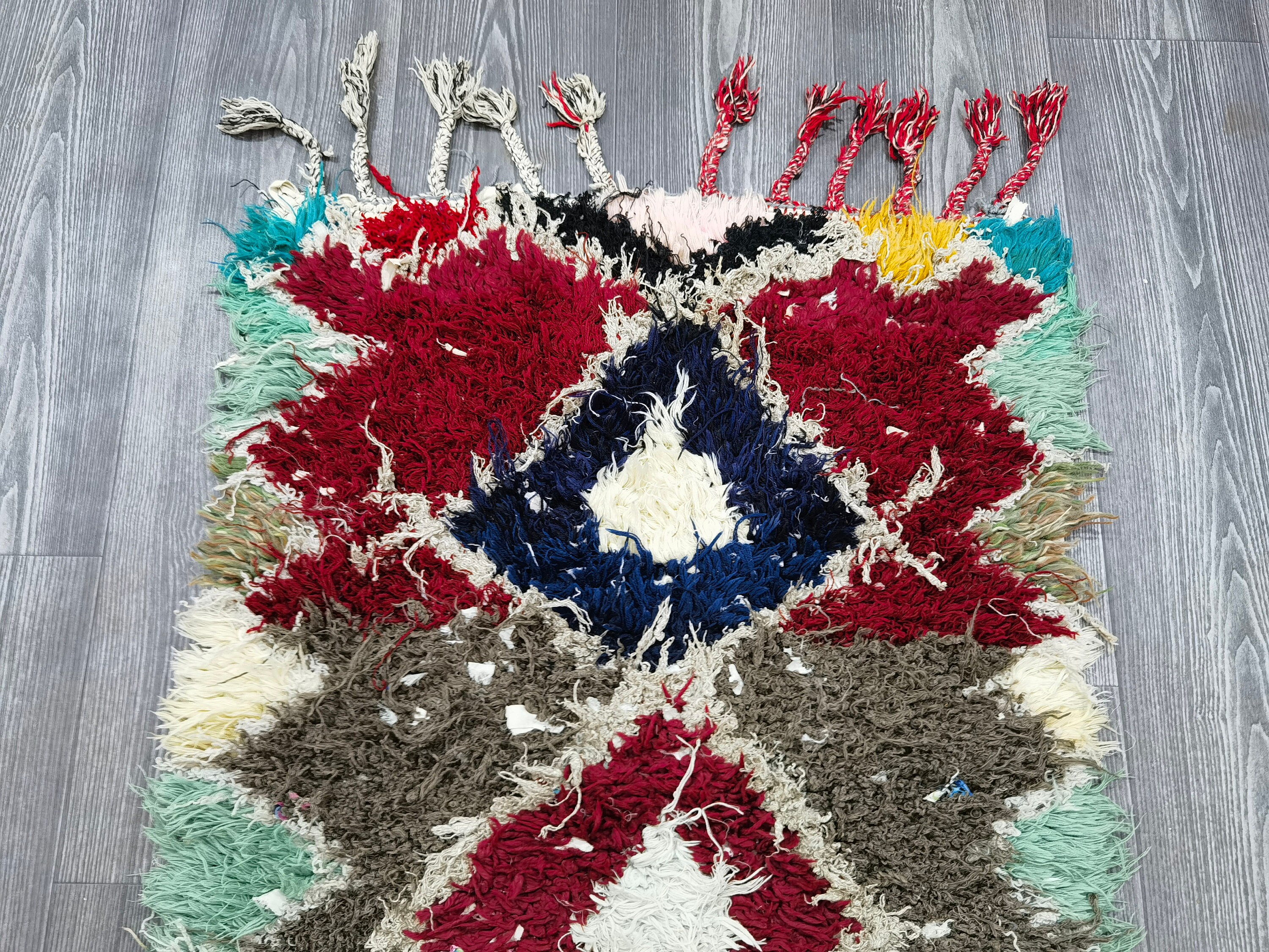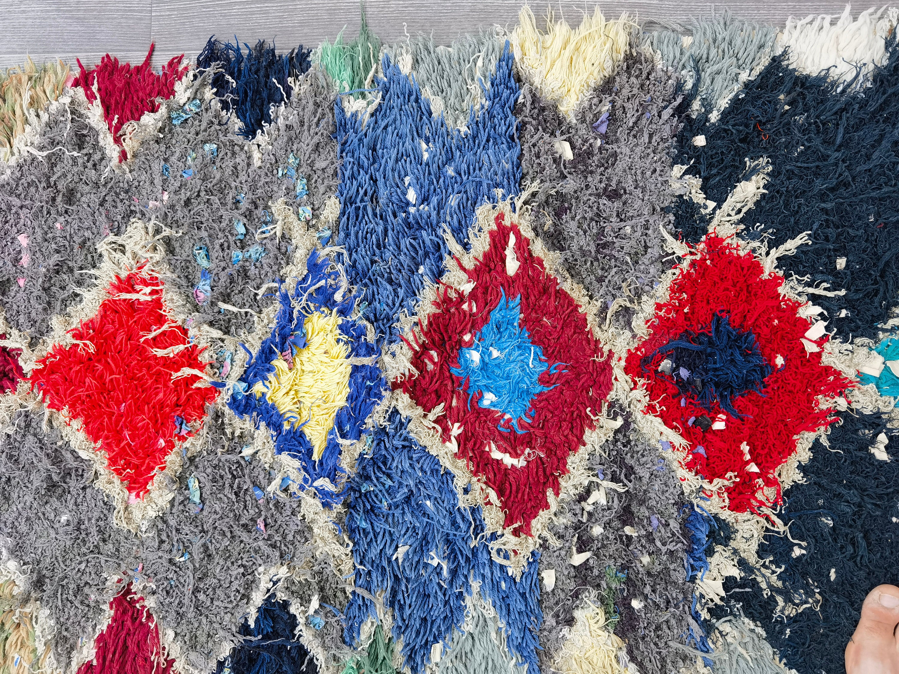 Boujaad is a vibrant and colorful wool runner that will add life to any room in your home. Made from 100% wool, this rug is perfect for use in the living room, bedroom, or anywhere you want to add some beautiful Moroccan flair. The soft and fluffy texture makes it comfortable to walk on, and the vivid colors will brighten up any space. Whether you're looking for a traditional shag rug or something a little more bohemian, Boujaad is sure to be a hit with your guests.