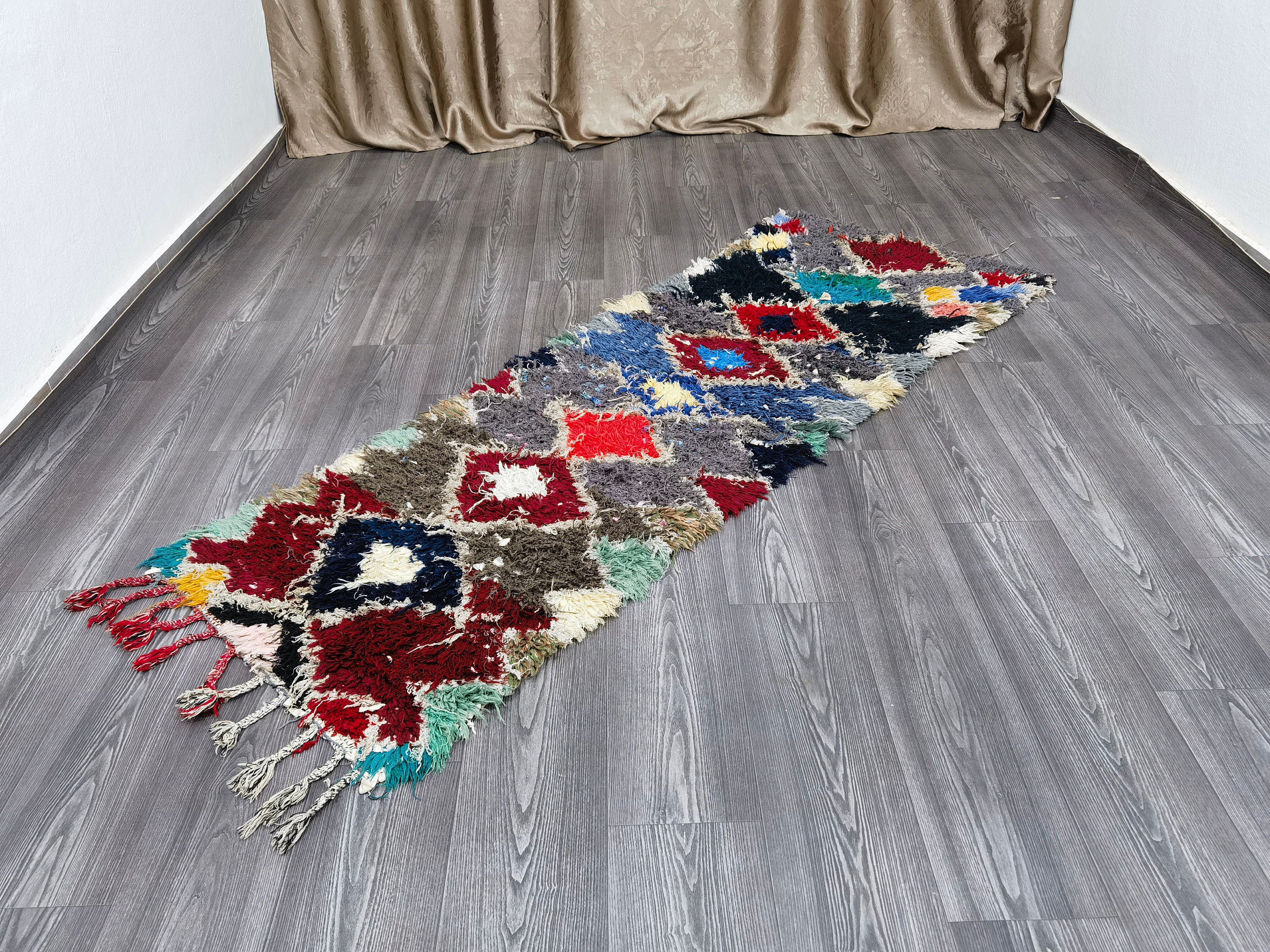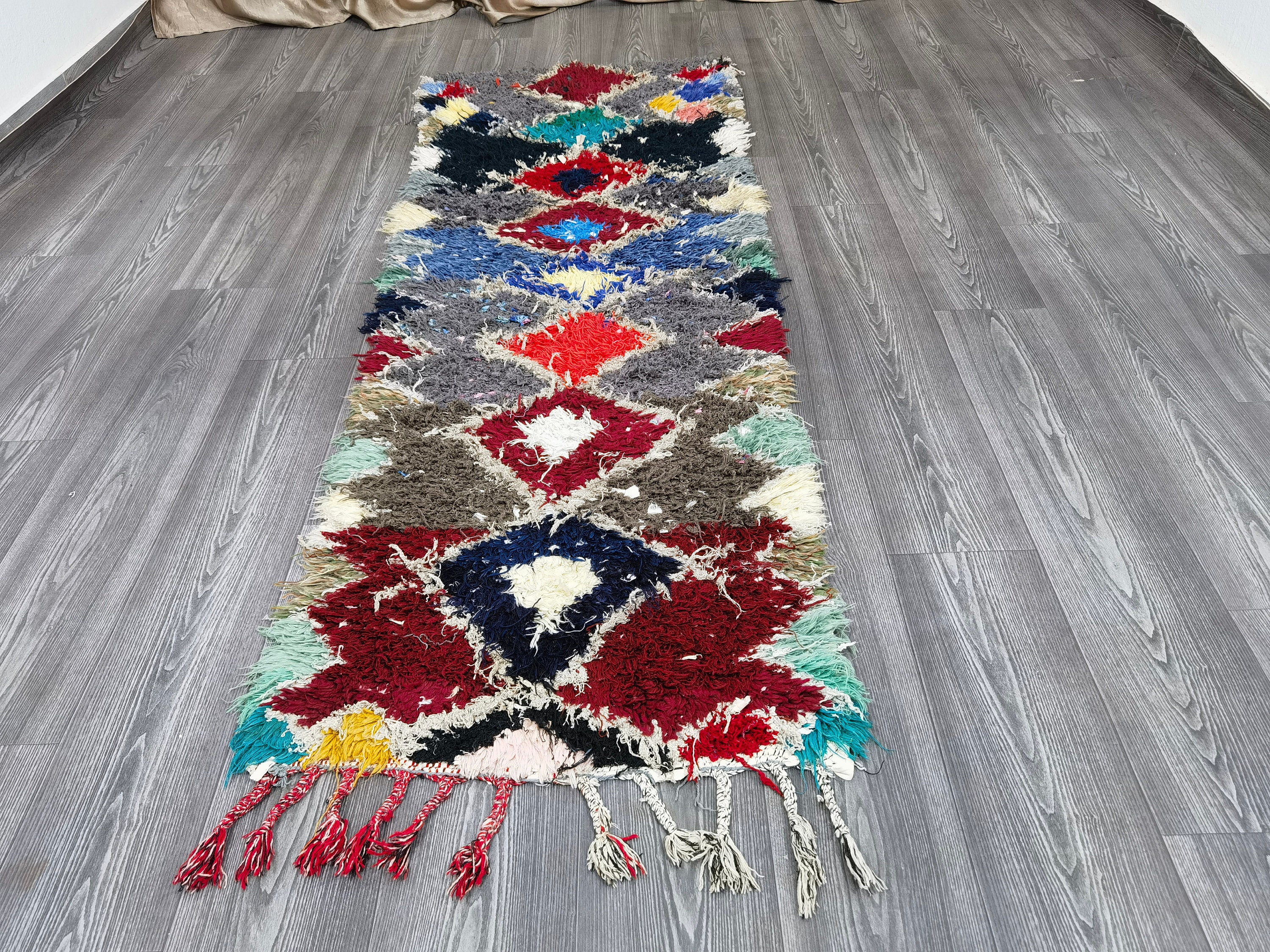 Gorgeous Moroccan Boujaad Runner Rug - Colorful Runner Rug - Authentic boujaad runner rug - Berber Runner Carpet - 2.2x6.9 Ft / 66X210 cm .
