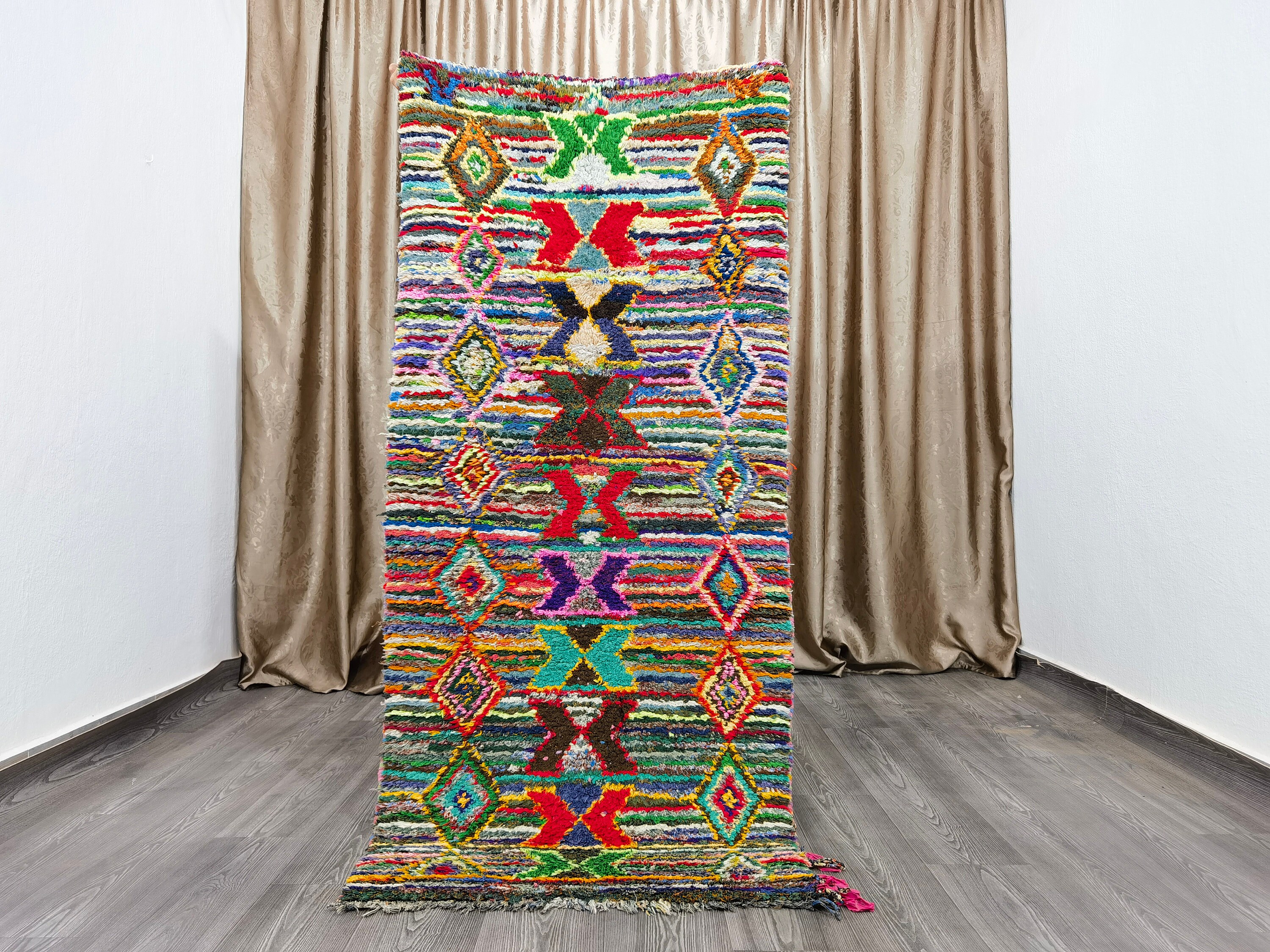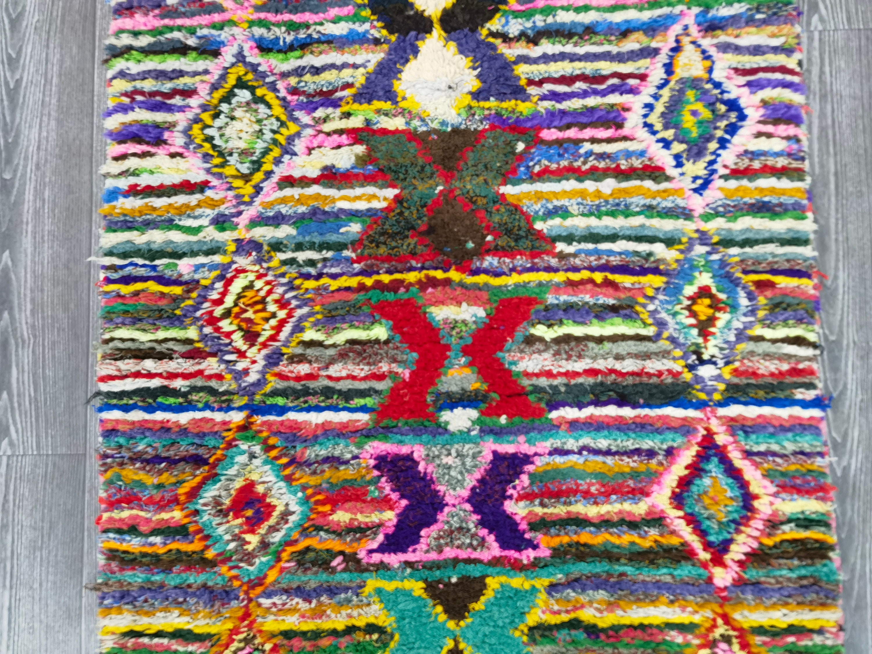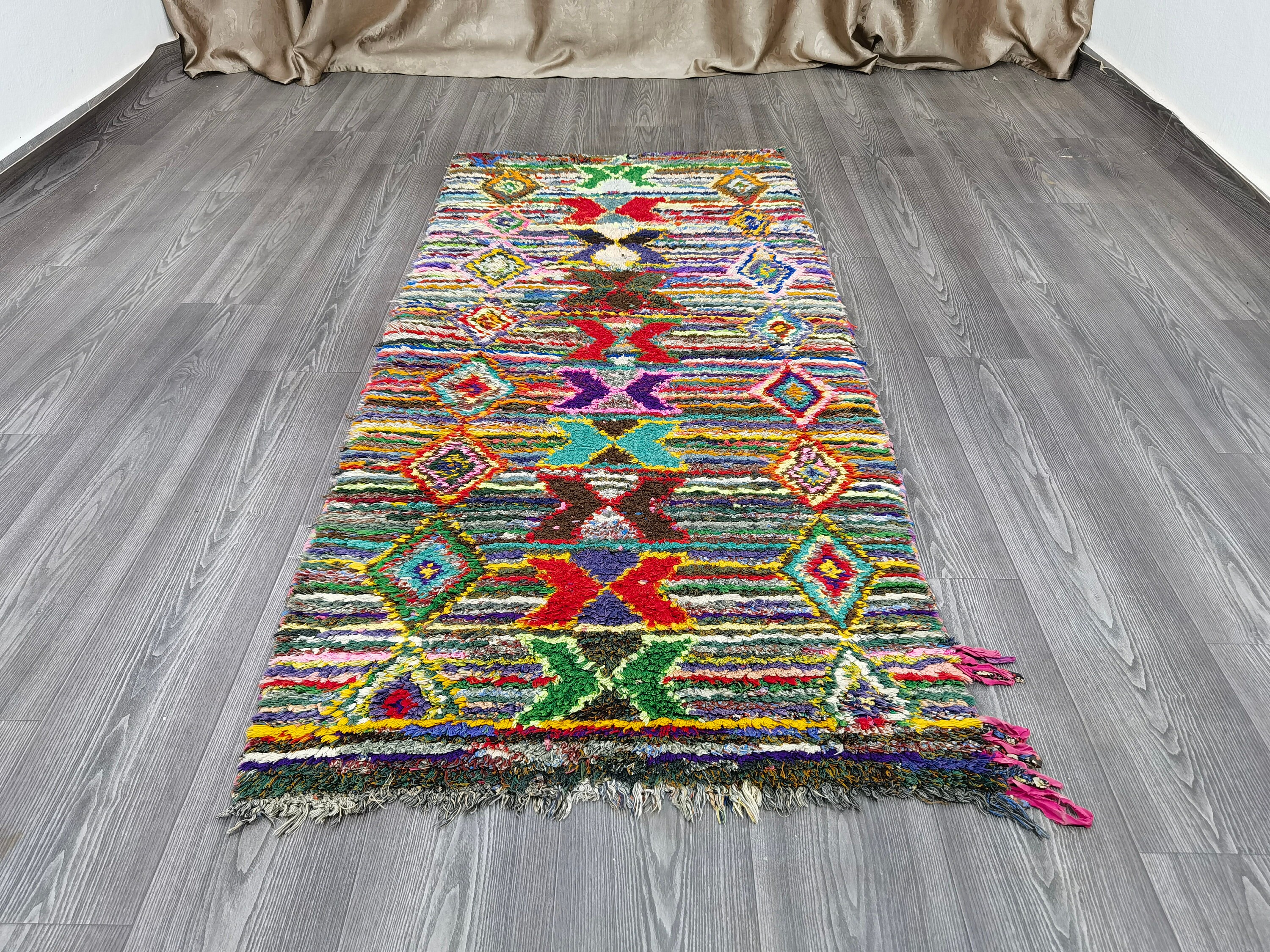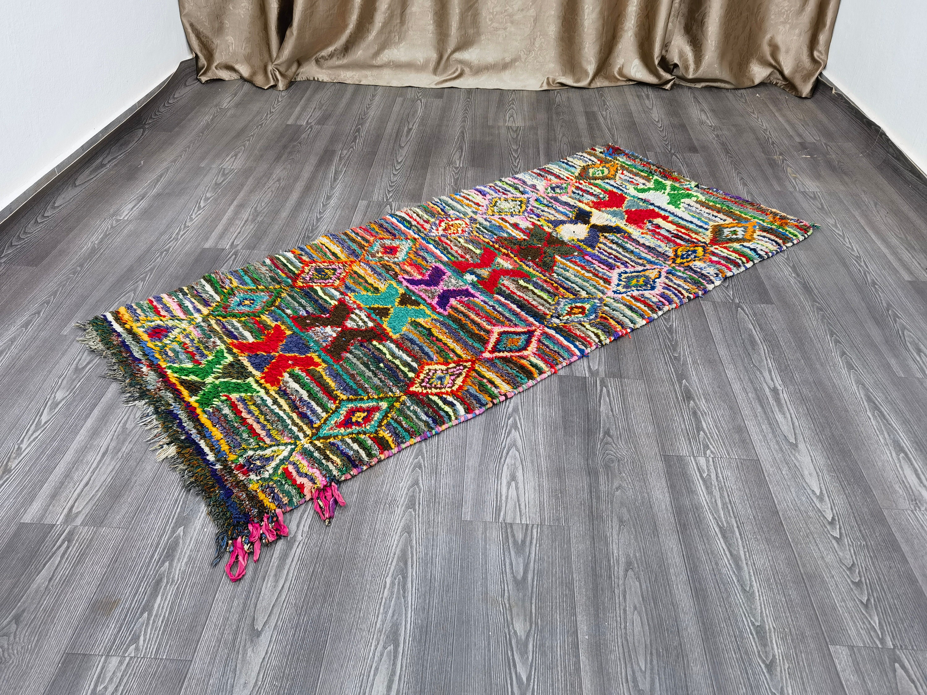 Boujaad is a vibrant and colorful wool runner that will add life to any room in your home. Made from 100% wool, this rug is perfect for use in the living room, bedroom, or anywhere you want to add some beautiful Moroccan flair. The soft and fluffy texture makes it comfortable to walk on, and the vivid colors will brighten up any space. Whether you're looking for a traditional shag rug or something a little more bohemian, Boujaad is sure to be a hit with your guests.