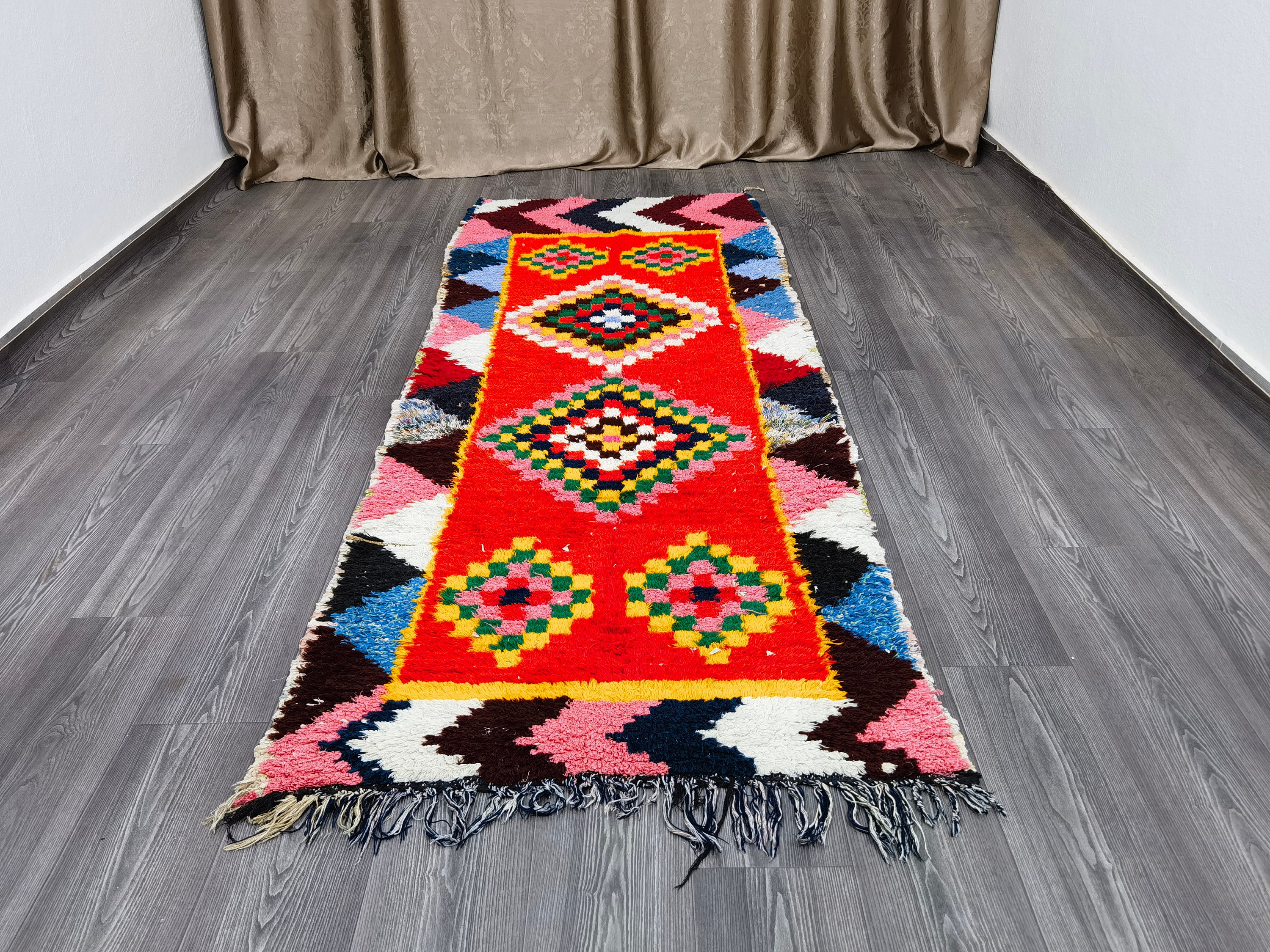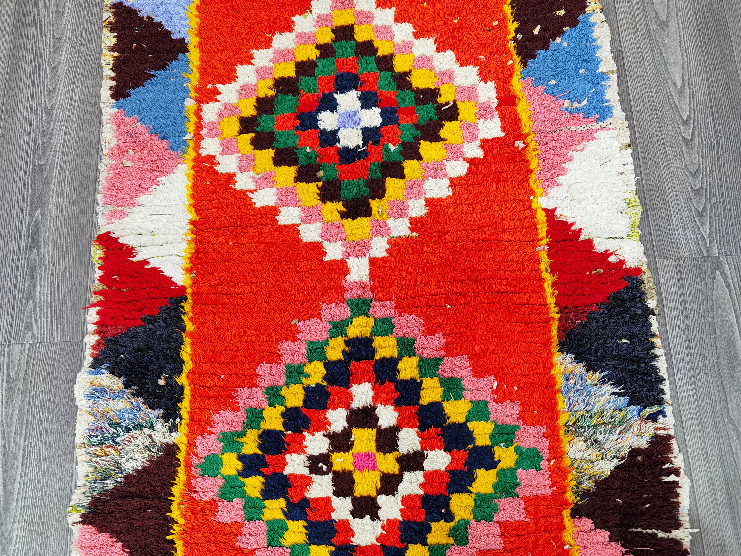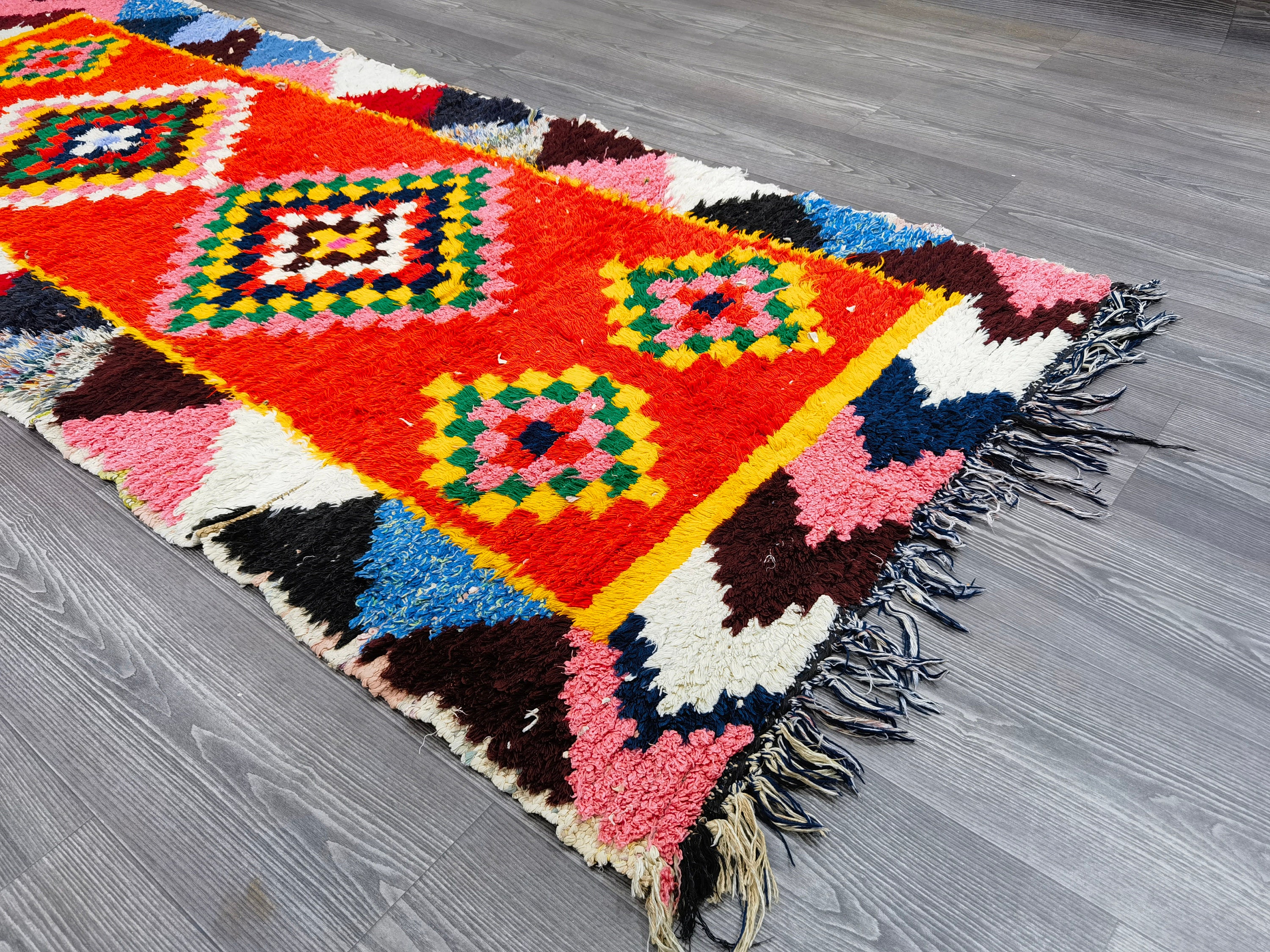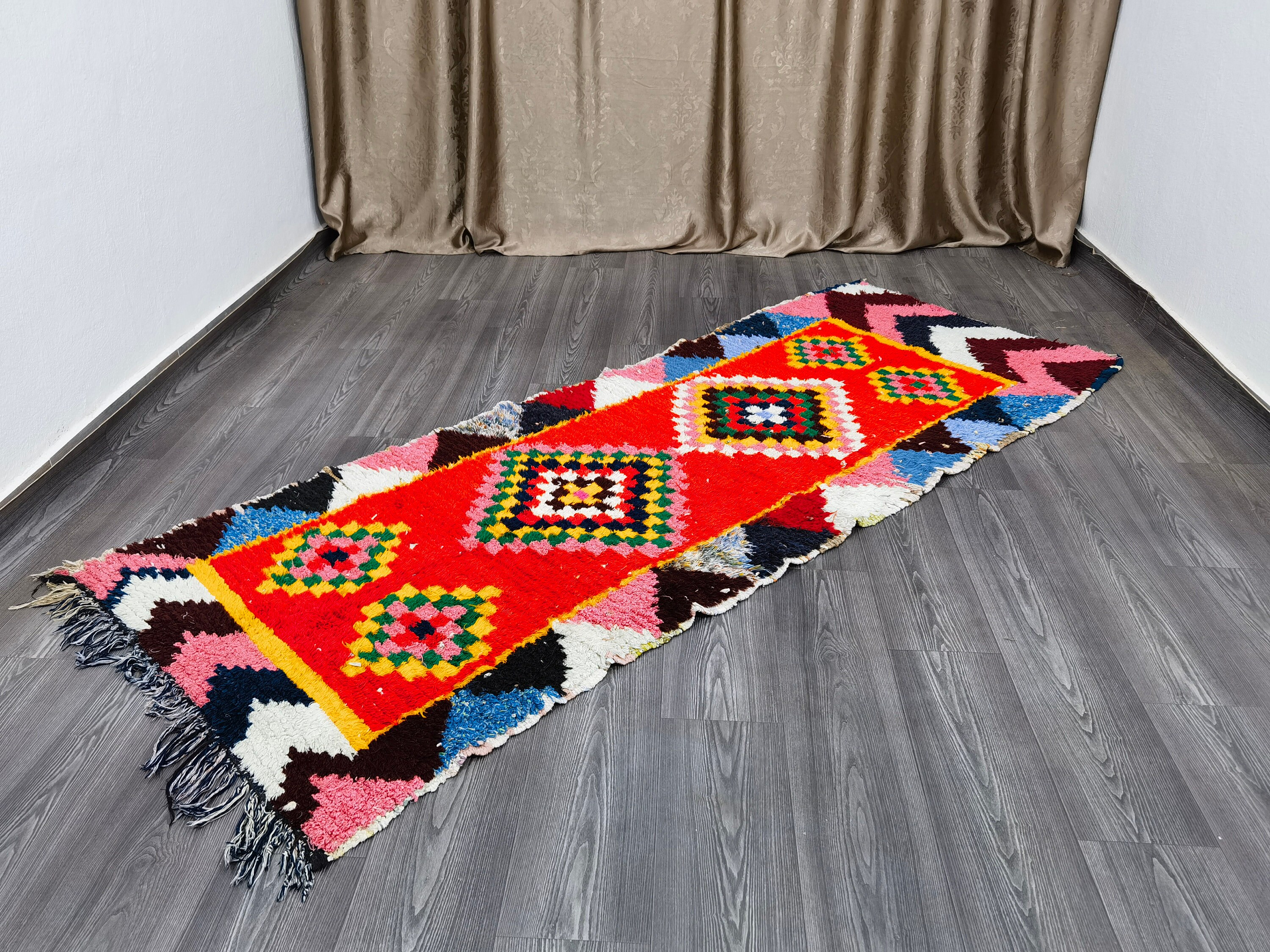 Orange Runner Rugs, moroccan rug, Boujaad Rug Runner , Unique Runner Rugs , Orange Hallway Rug, Colorful Berber Runner Rug 3x8 Ft