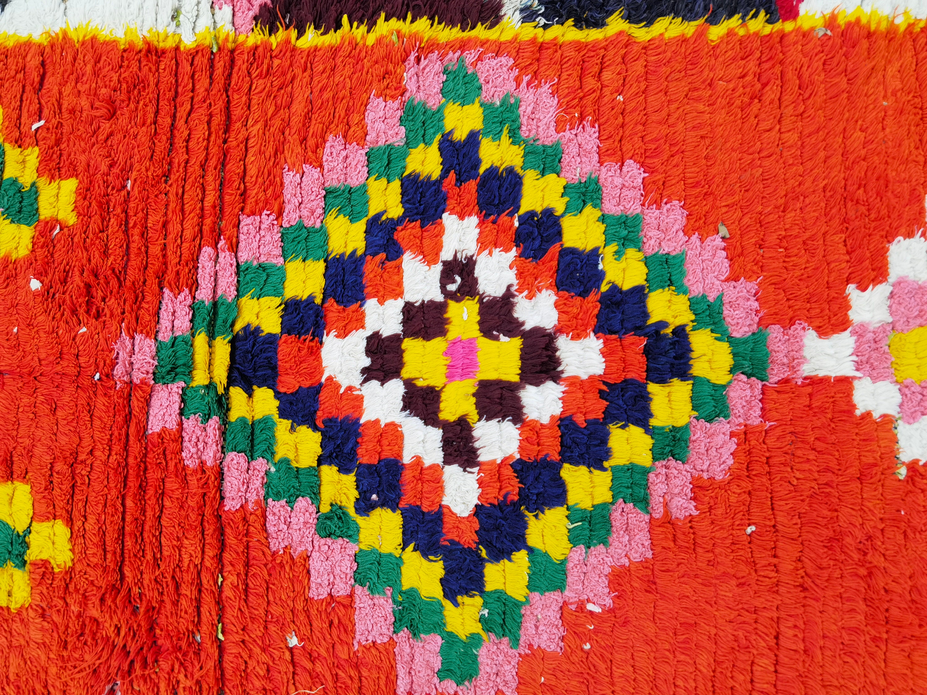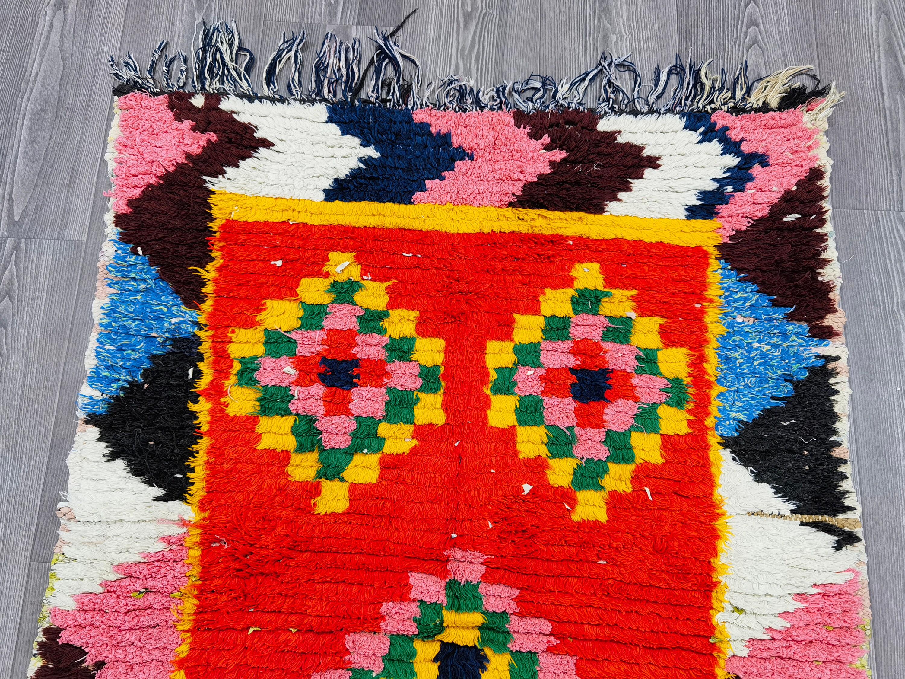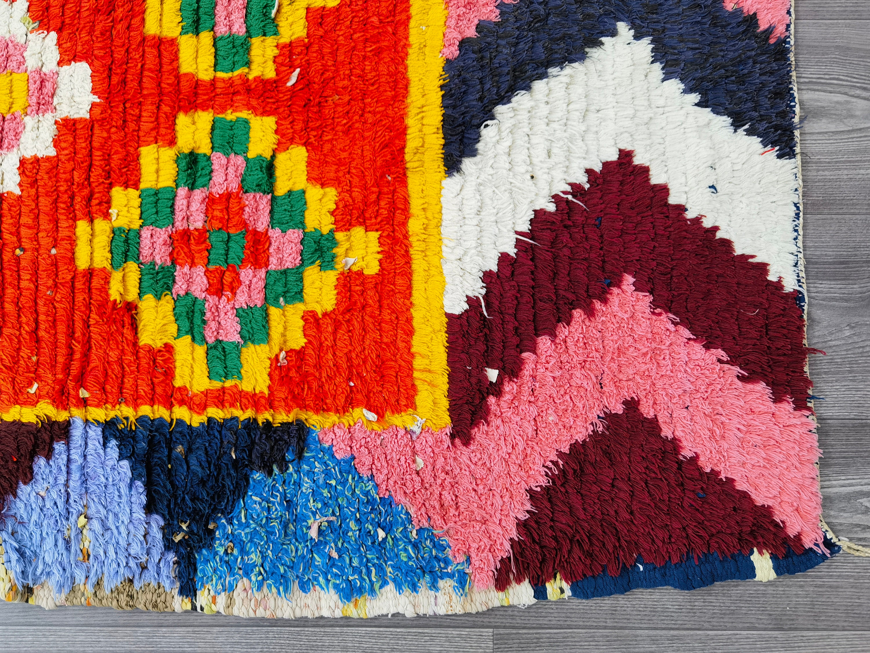 Boujaad is a vibrant and colorful wool runner that will add life to any room in your home. Made from 100% wool, this rug is perfect for use in the living room, bedroom, or anywhere you want to add some beautiful Moroccan flair. The soft and fluffy texture makes it comfortable to walk on, and the vivid colors will brighten up any space. Whether you're looking for a traditional shag rug or something a little more bohemian, Boujaad is sure to be a hit with your guests.