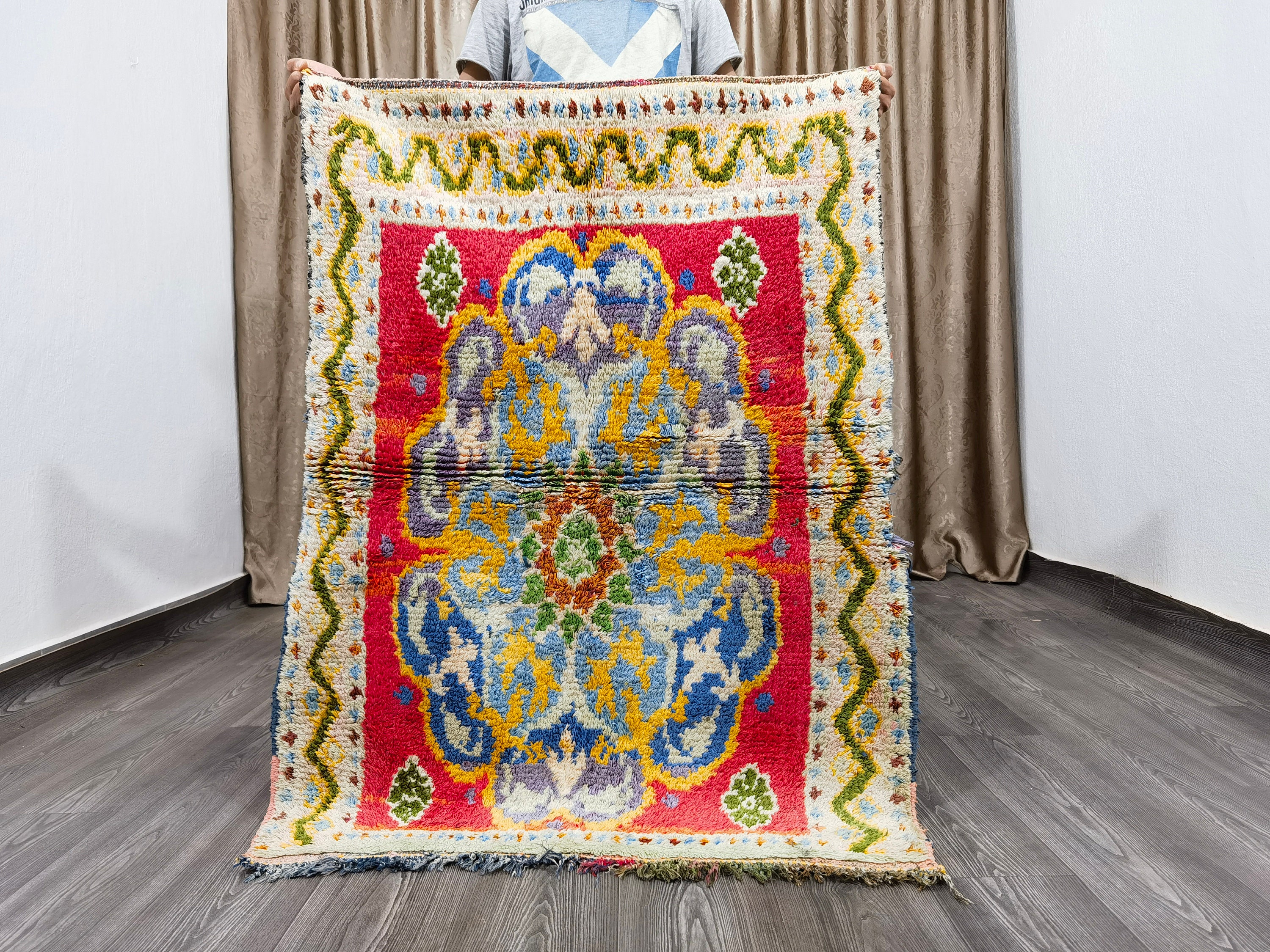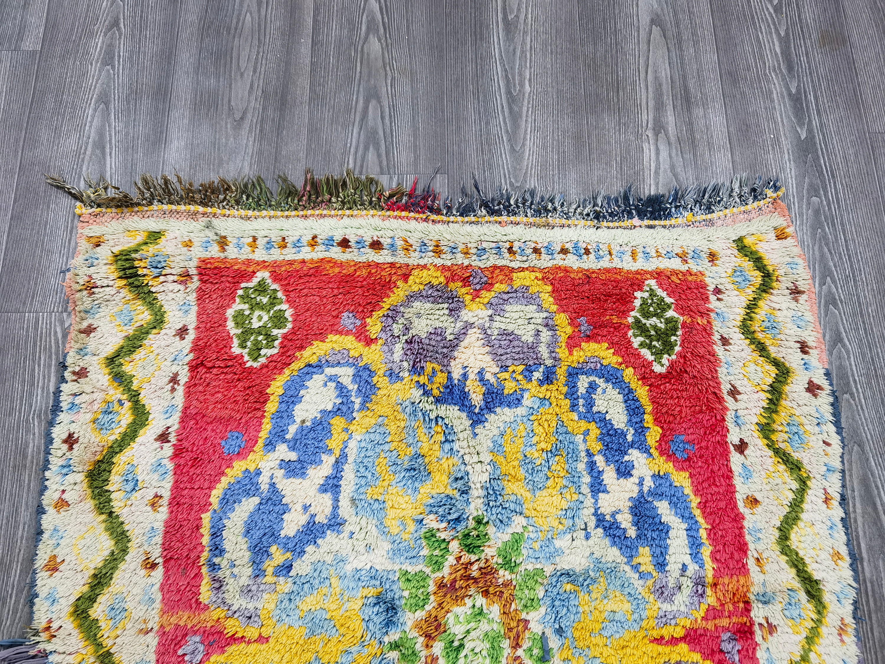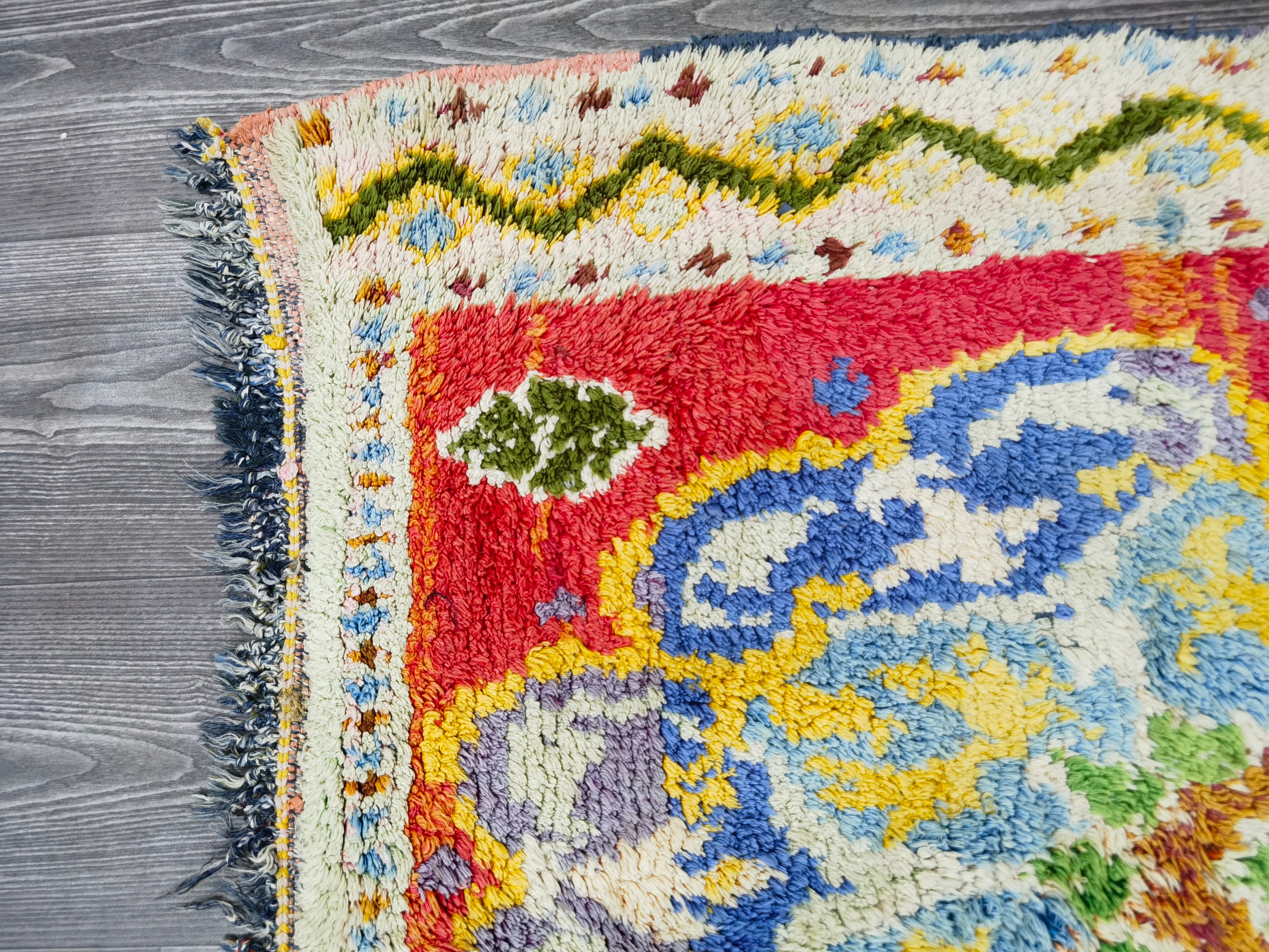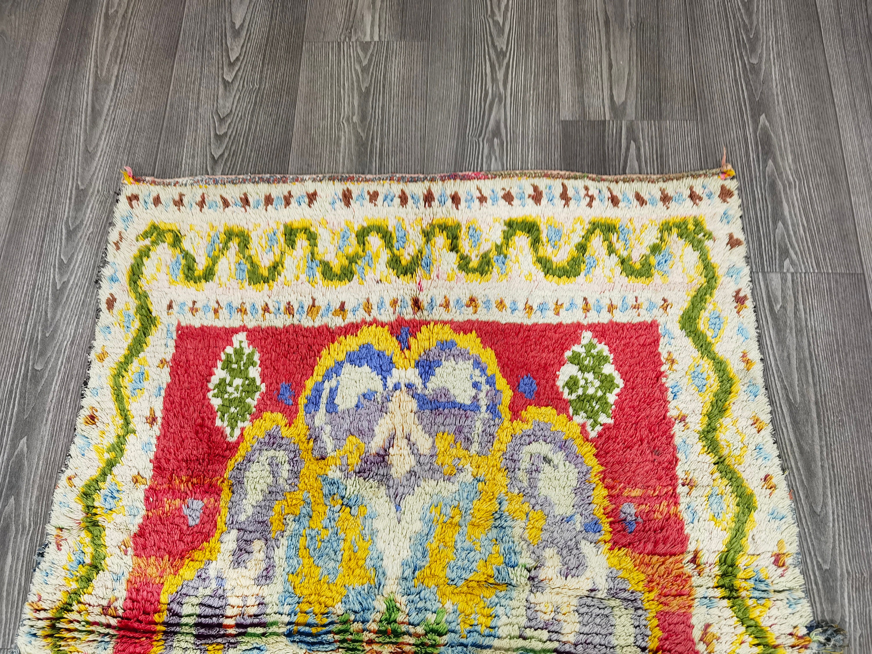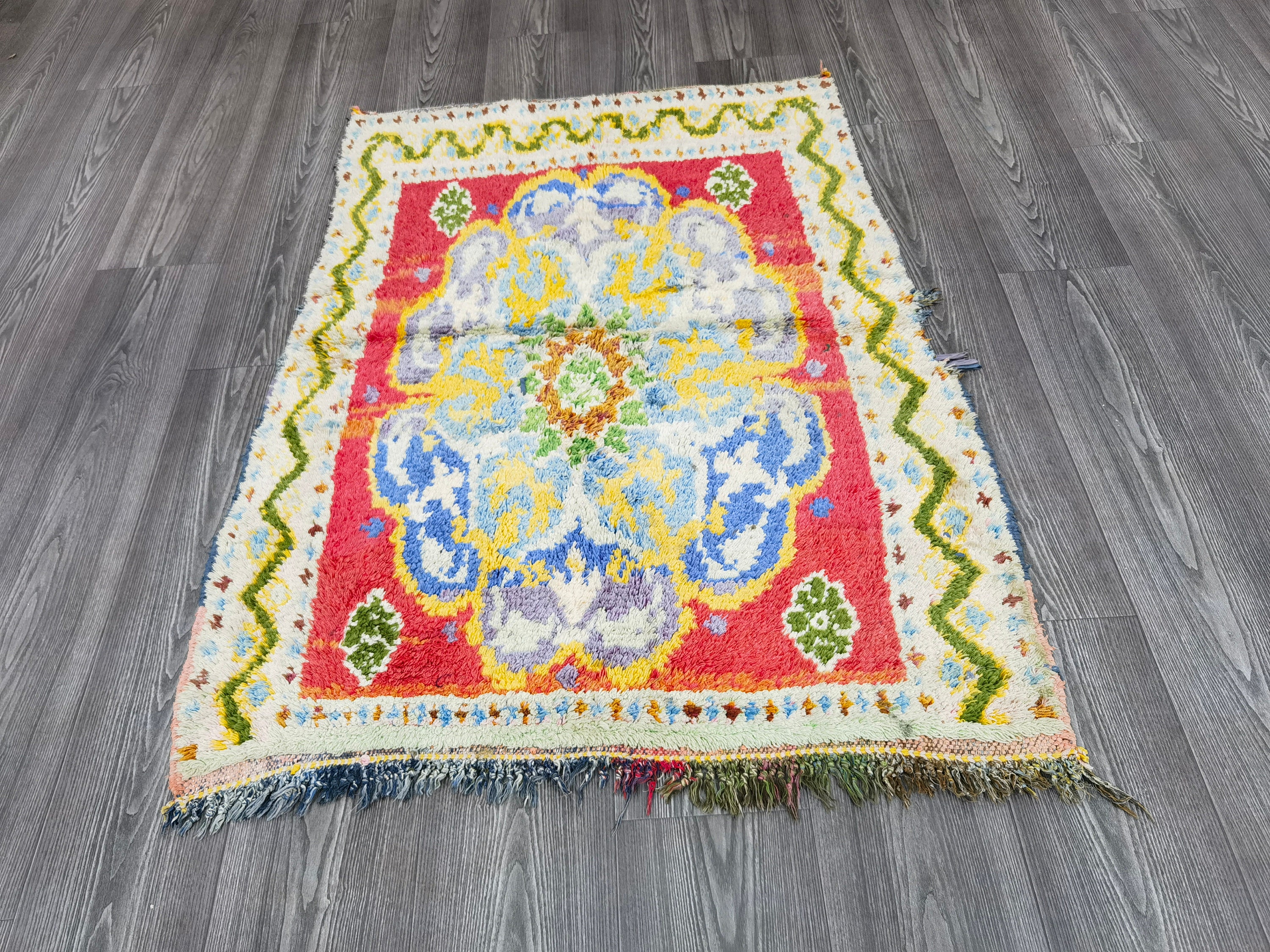 Vintage Boujaad Rug: 3x4.1 ft Authentic Moroccan Hand-Knotted Shag