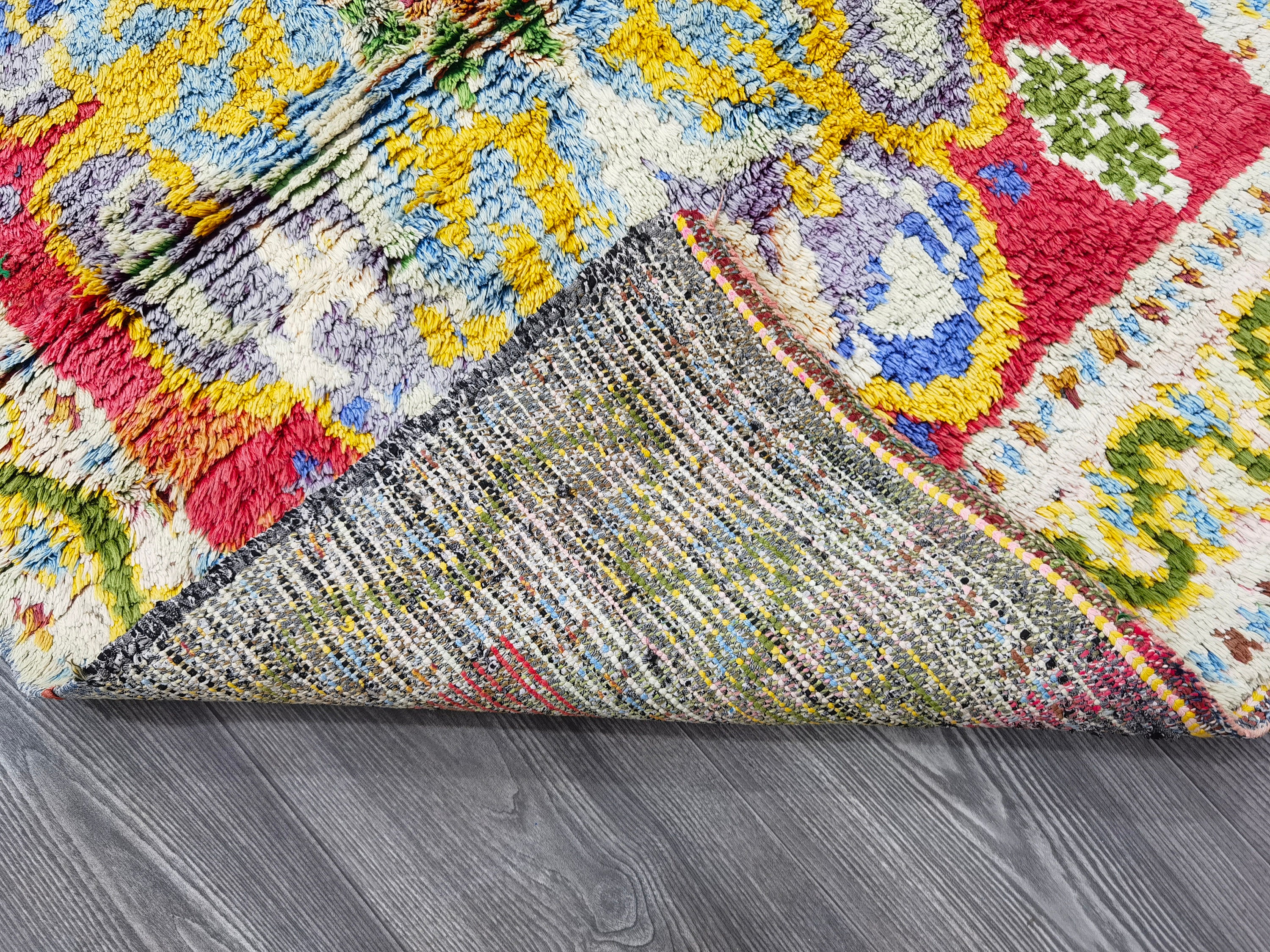Boujaad is a vibrant and colorful wool runner that will add life to any room in your home. Made from 100% wool, this rug is perfect for use in the living room, bedroom, or anywhere you want to add some beautiful Moroccan flair. The soft and fluffy texture makes it comfortable to walk on, and the vivid colors will brighten up any space. Whether you're looking for a traditional shag rug or something a little more bohemian, Boujaad is sure to be a hit with your guests.