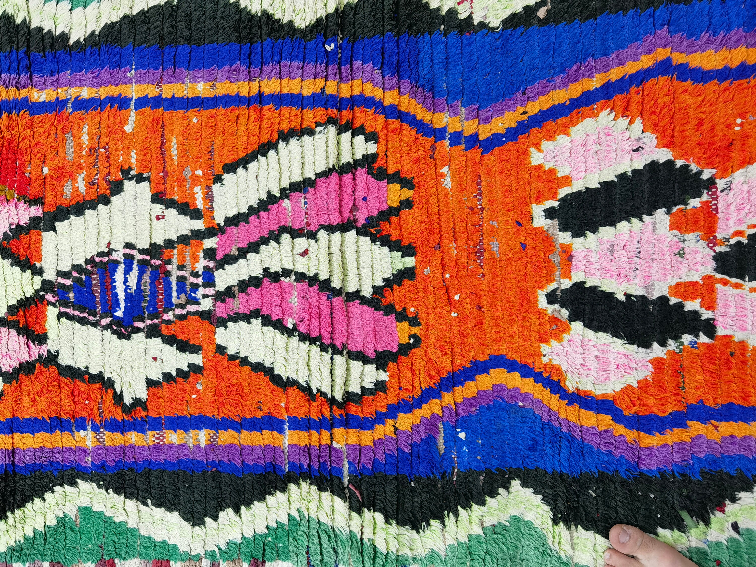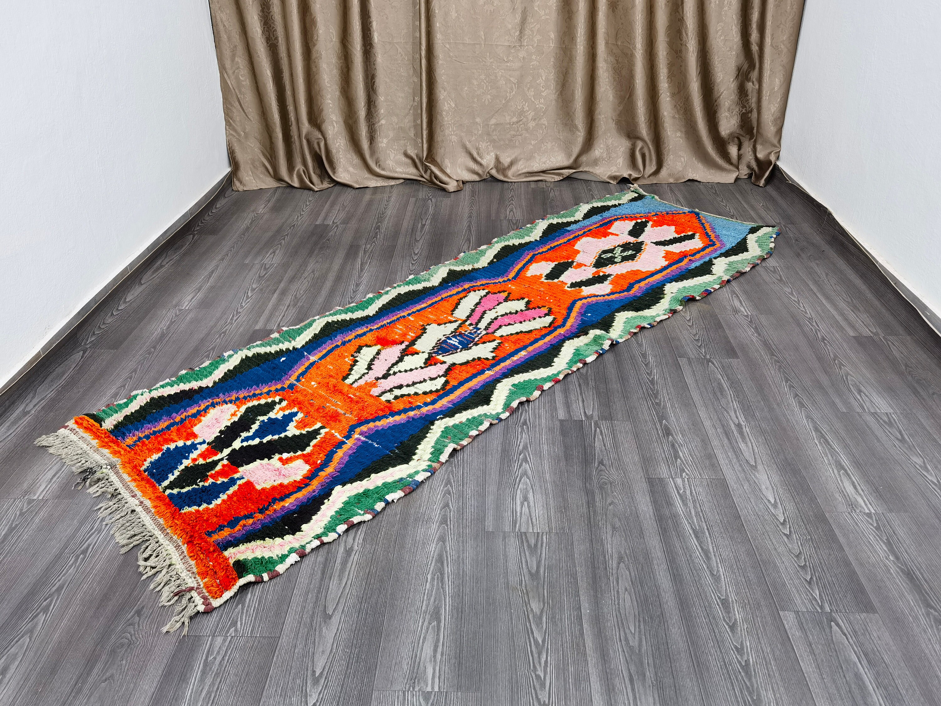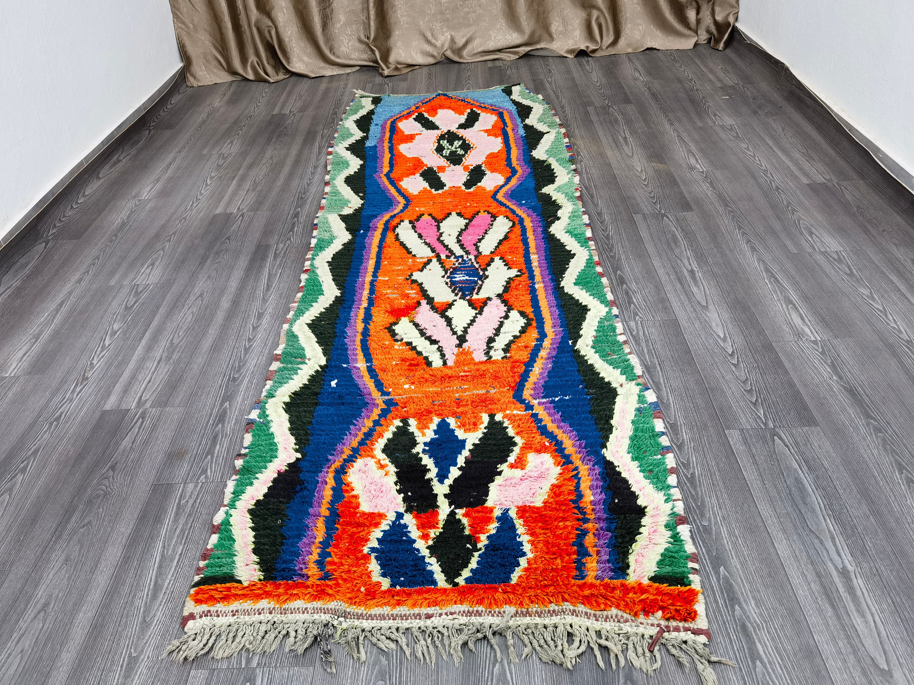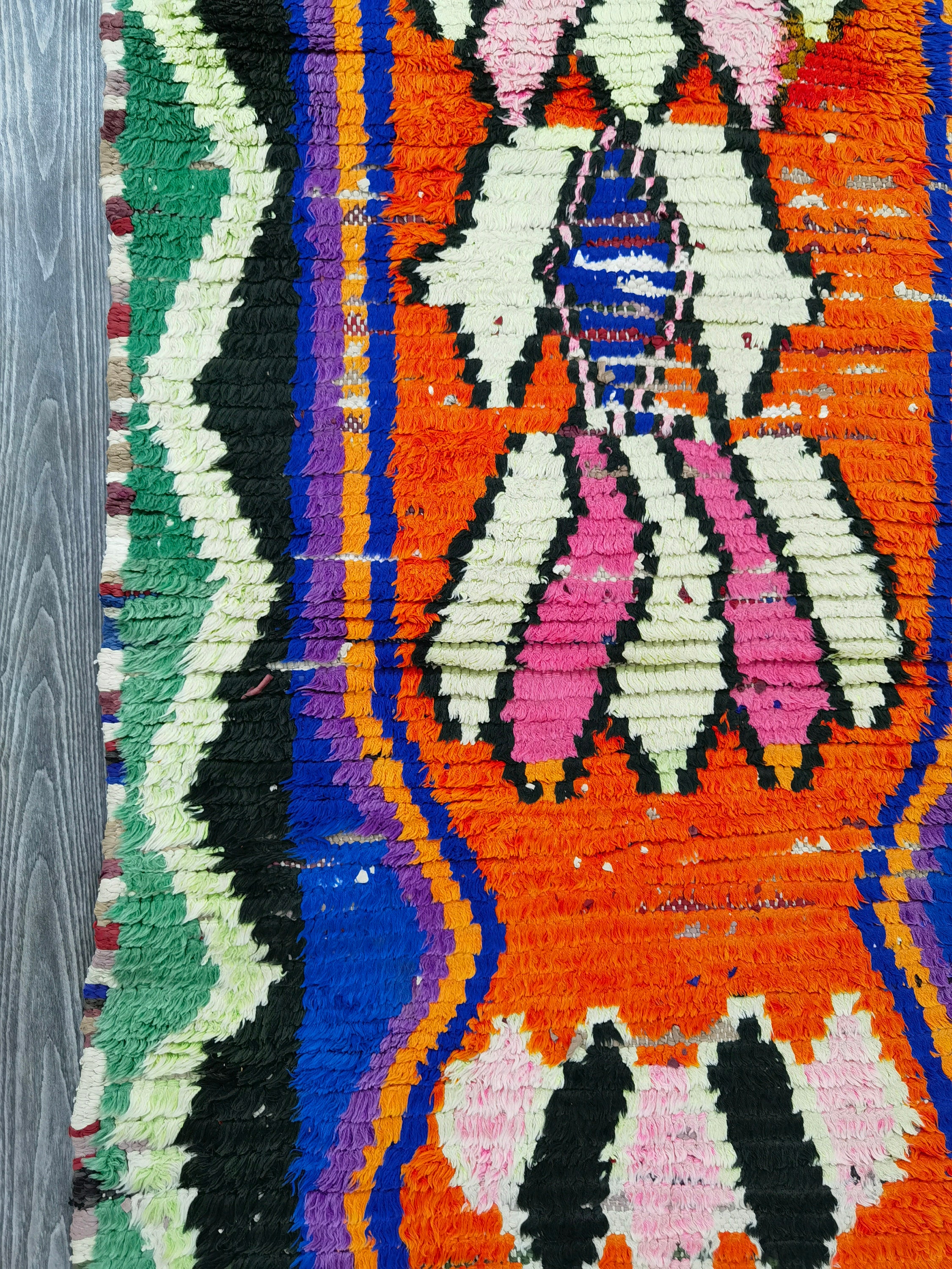Beni ourain is a vibrant and colorful wool runner that will add life to any room in your home. Made from 100% wool, this rug is perfect for use in the living room, bedroom, or anywhere you want to add some beautiful Moroccan flair. The soft and fluffy texture makes it comfortable to walk on, and the vivid colors will brighten up any space. Whether you're looking for a traditional shag rug or something a little more bohemian, Boujaad is sure to be a hit with your guests.