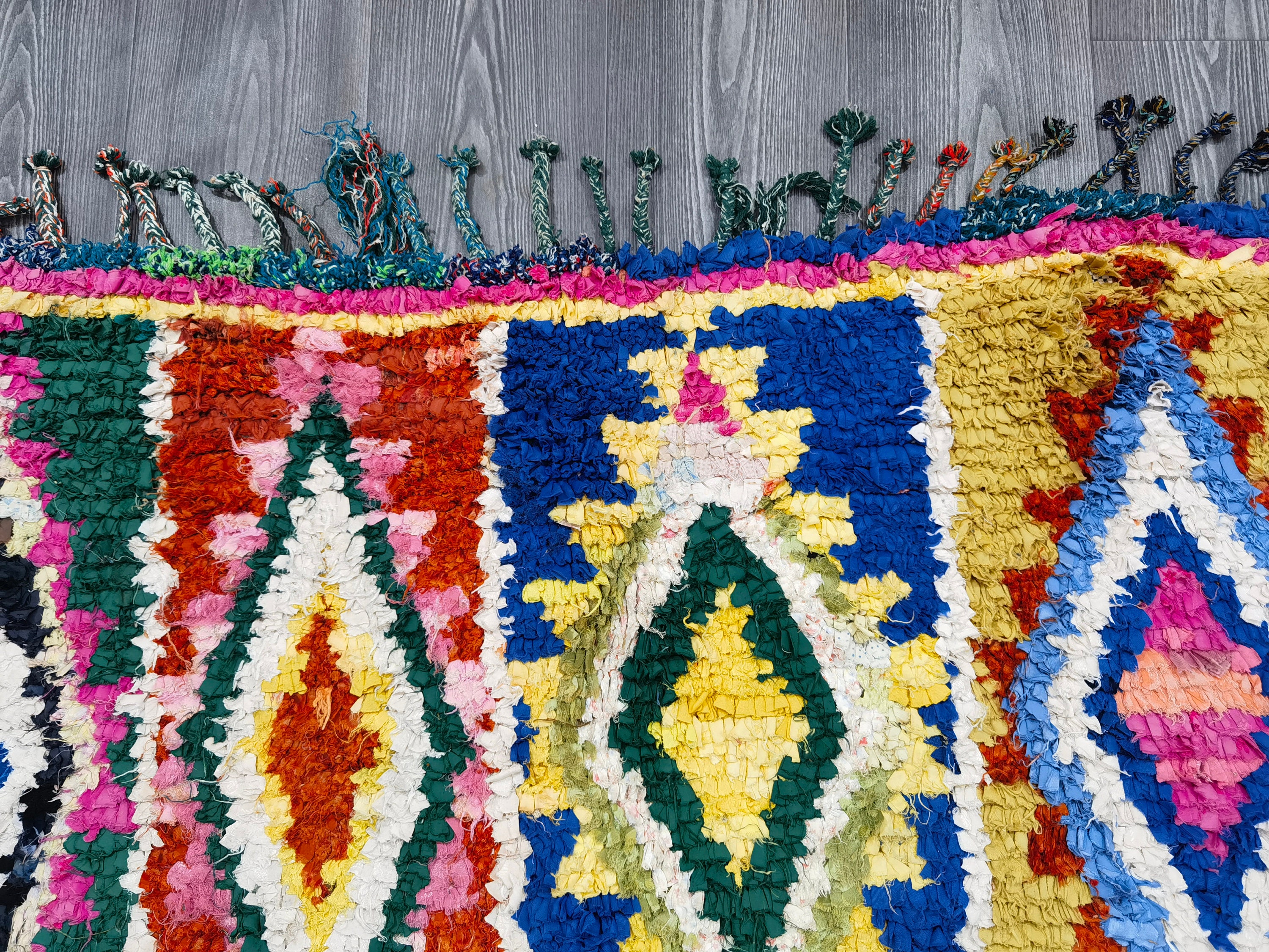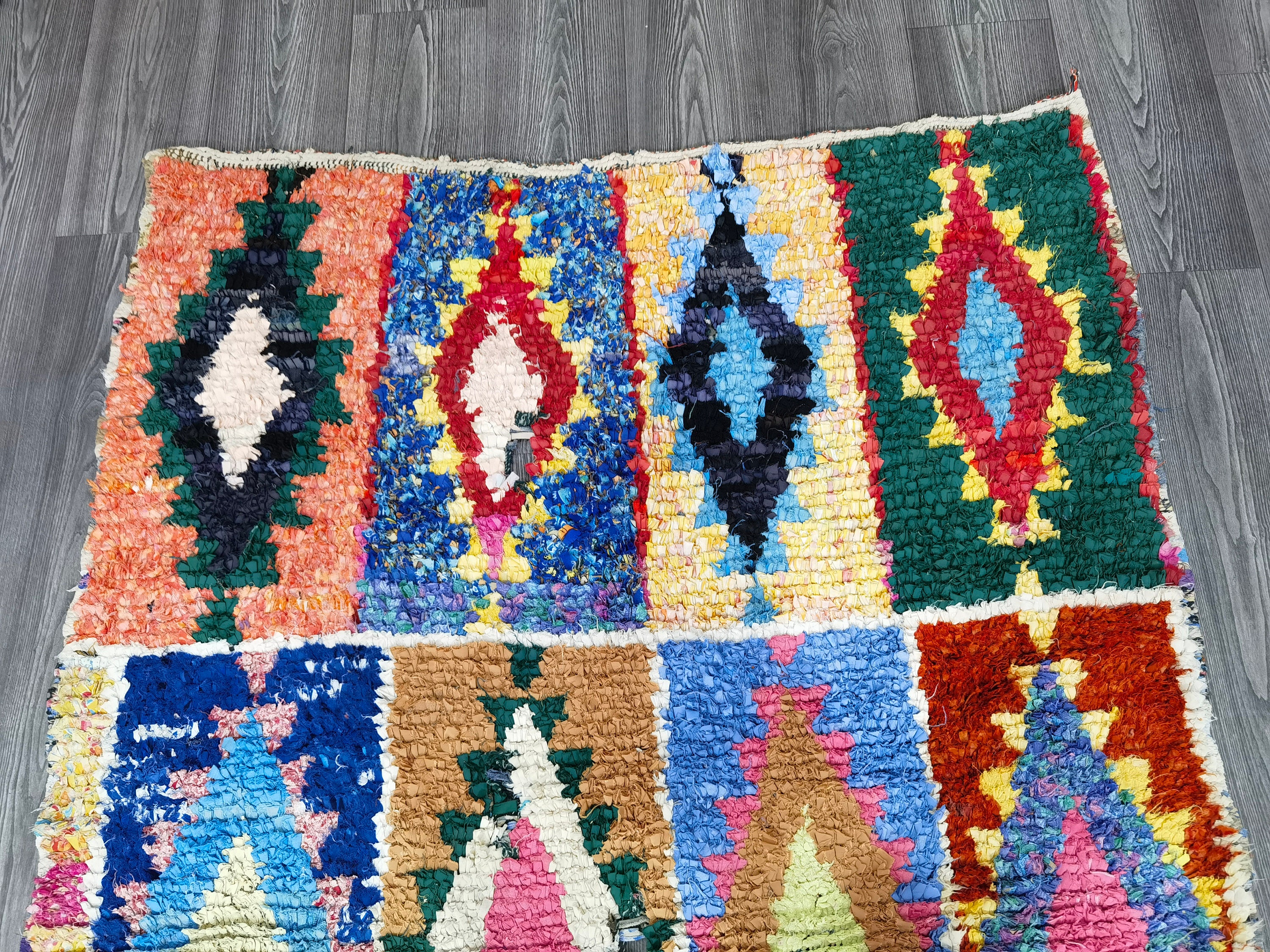 Boucherouite runner rug, Moroccan Vintage rug, Colorful Runner rug, Traditional runner rug, Morocco runner rug 4.3x6.9 FT ( 130 X 210 Cm) .