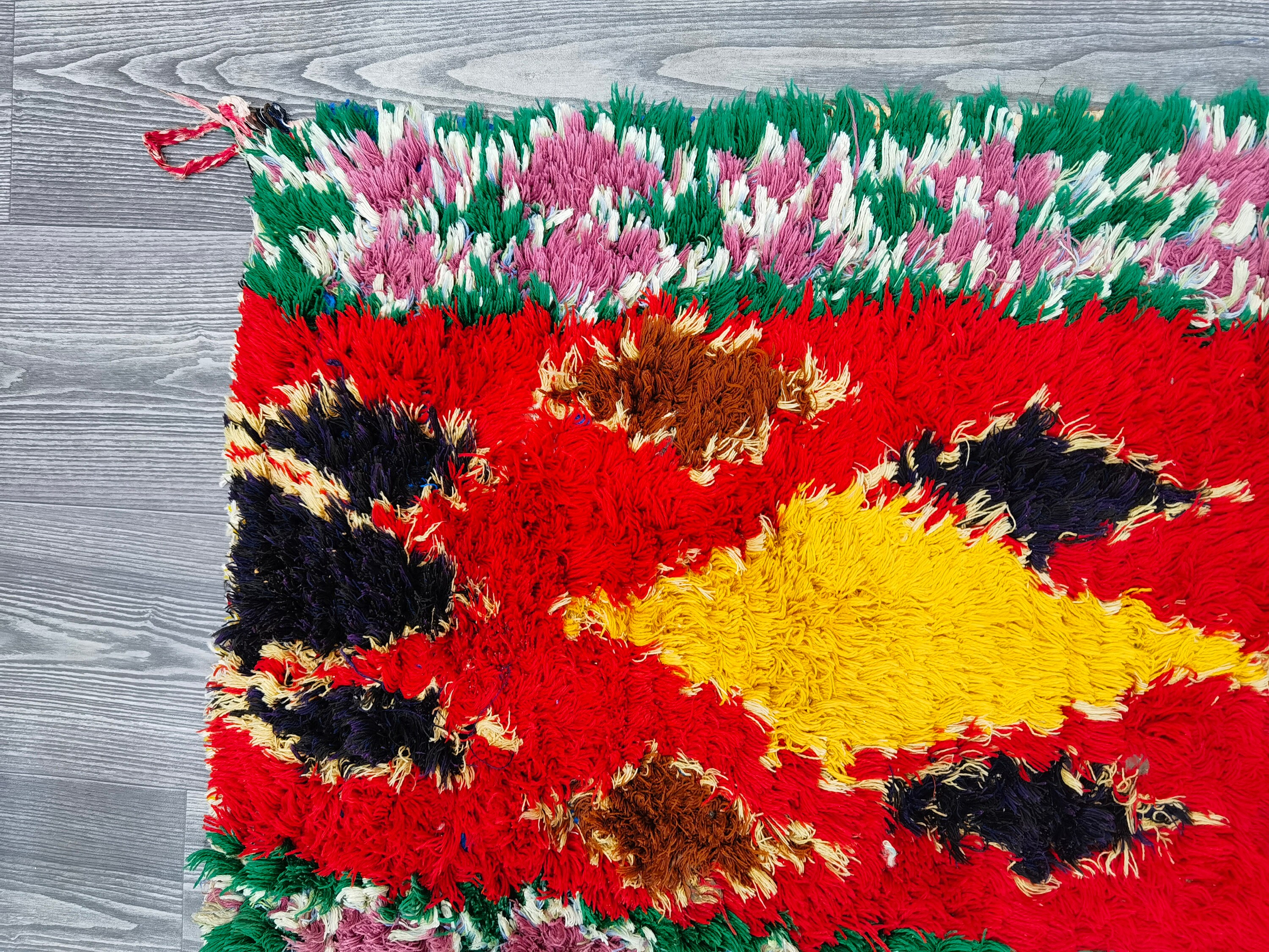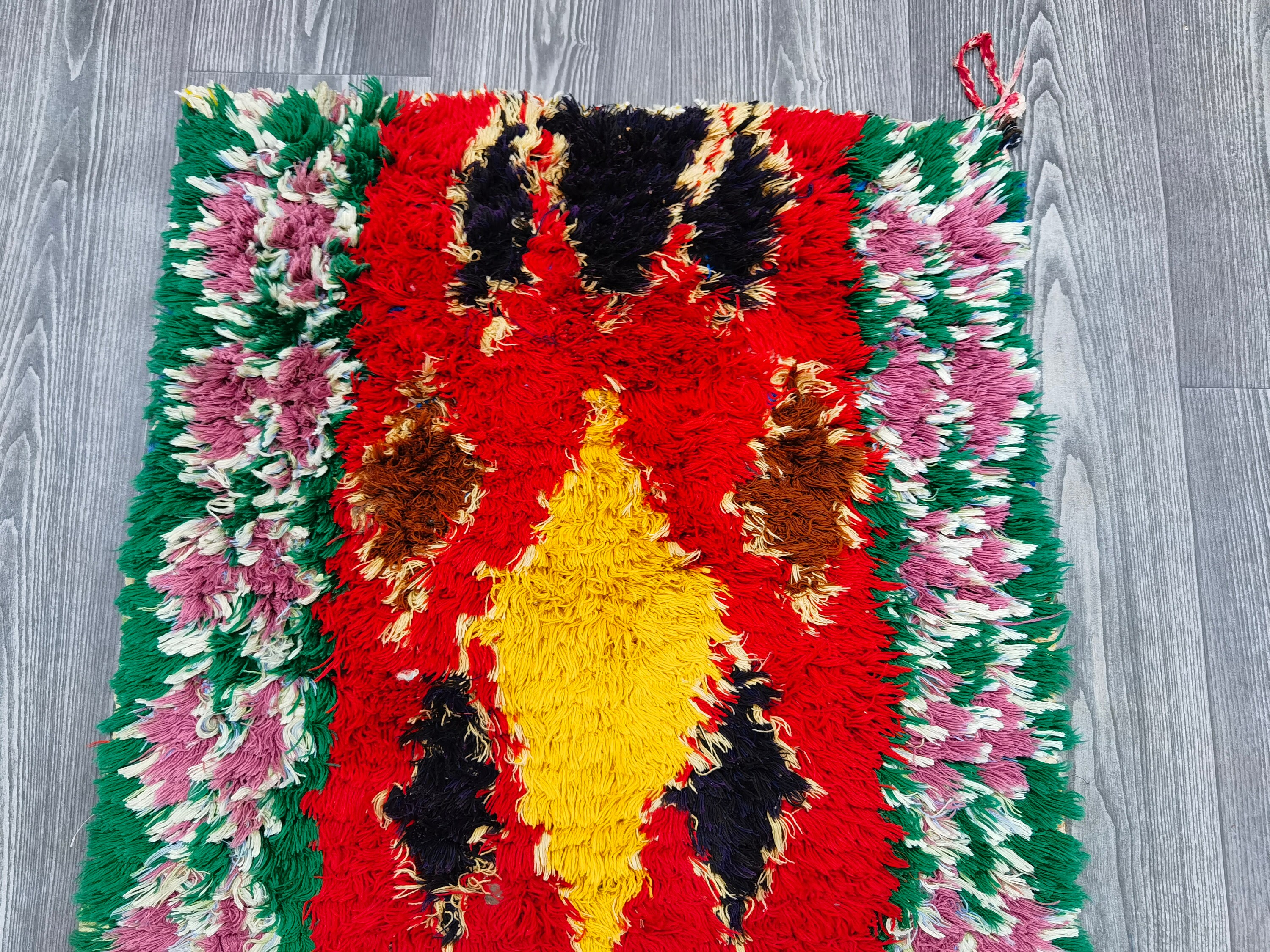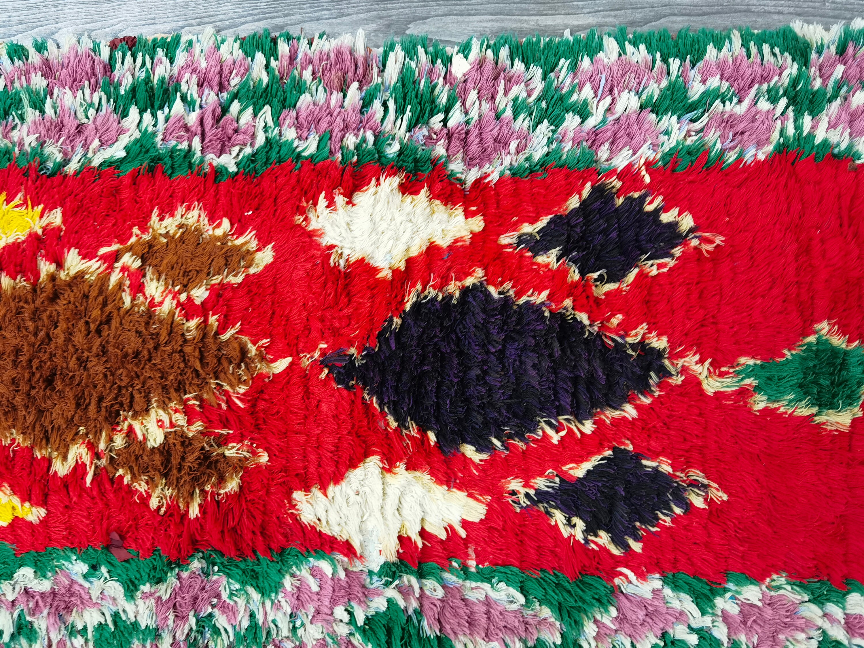 Boujaad is a vibrant and colorful wool runner that will add life to any room in your home. Made from 100% wool, this rug is perfect for use in the living room, bedroom, or anywhere you want to add some beautiful Moroccan flair. The soft and fluffy texture makes it comfortable to walk on, and the vivid colors will brighten up any space. Whether you're looking for a traditional shag rug or something a little more bohemian, Boujaad is sure to be a hit with your guests.