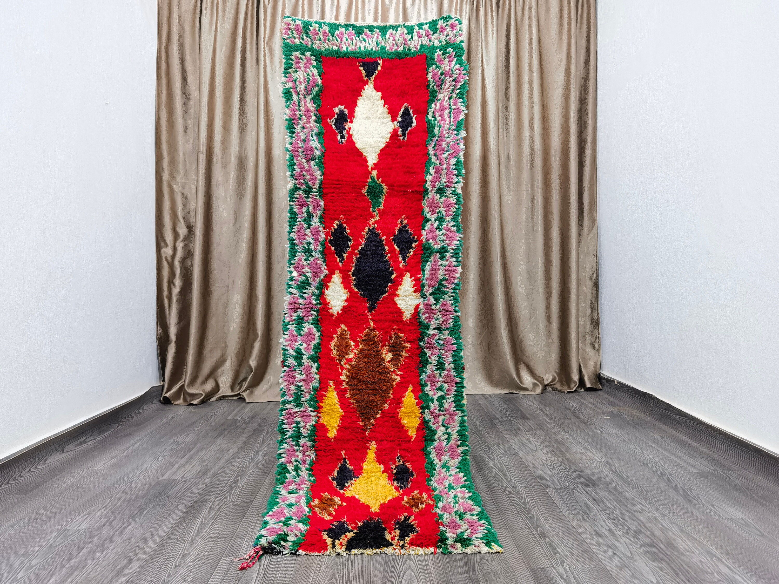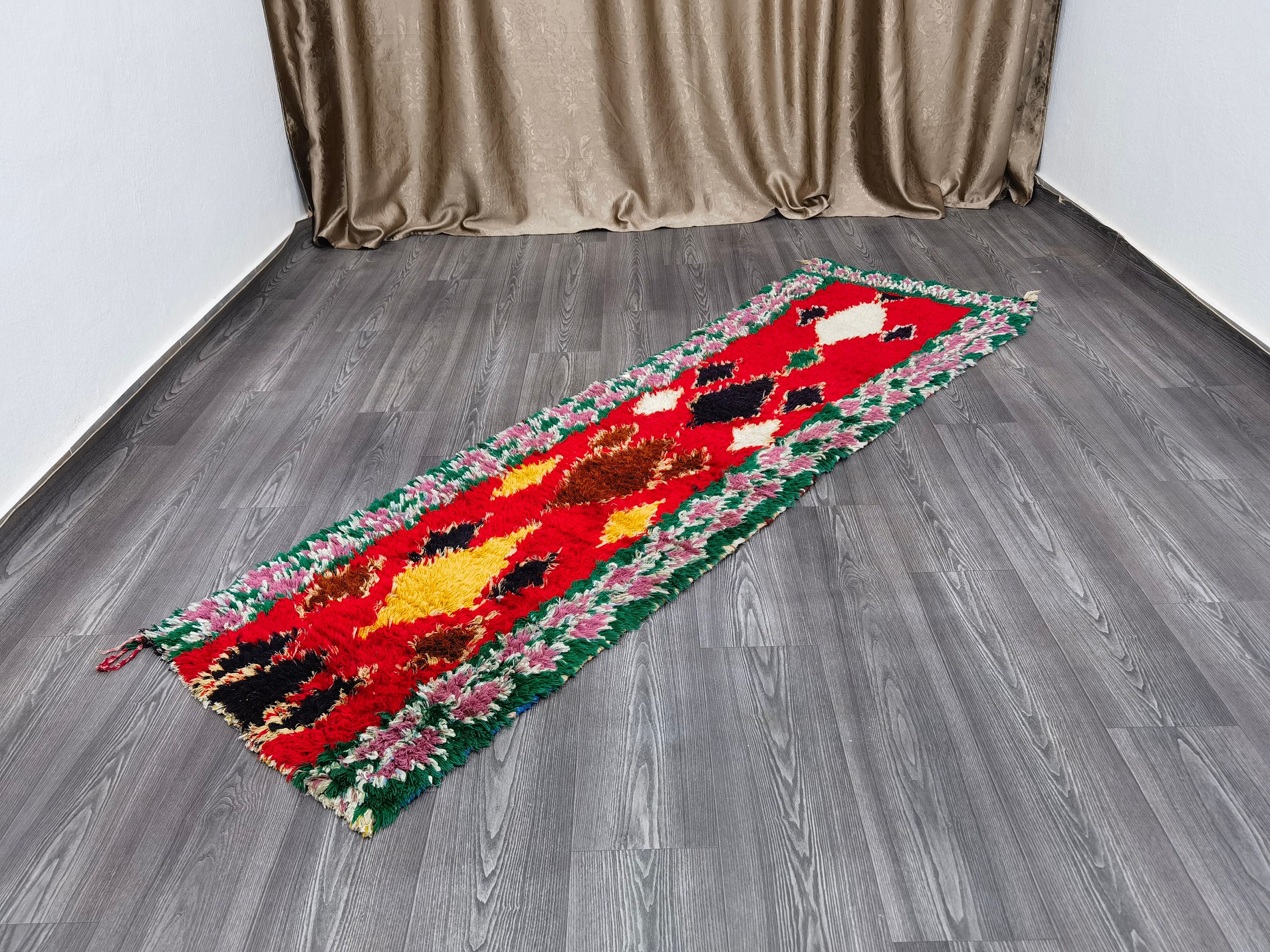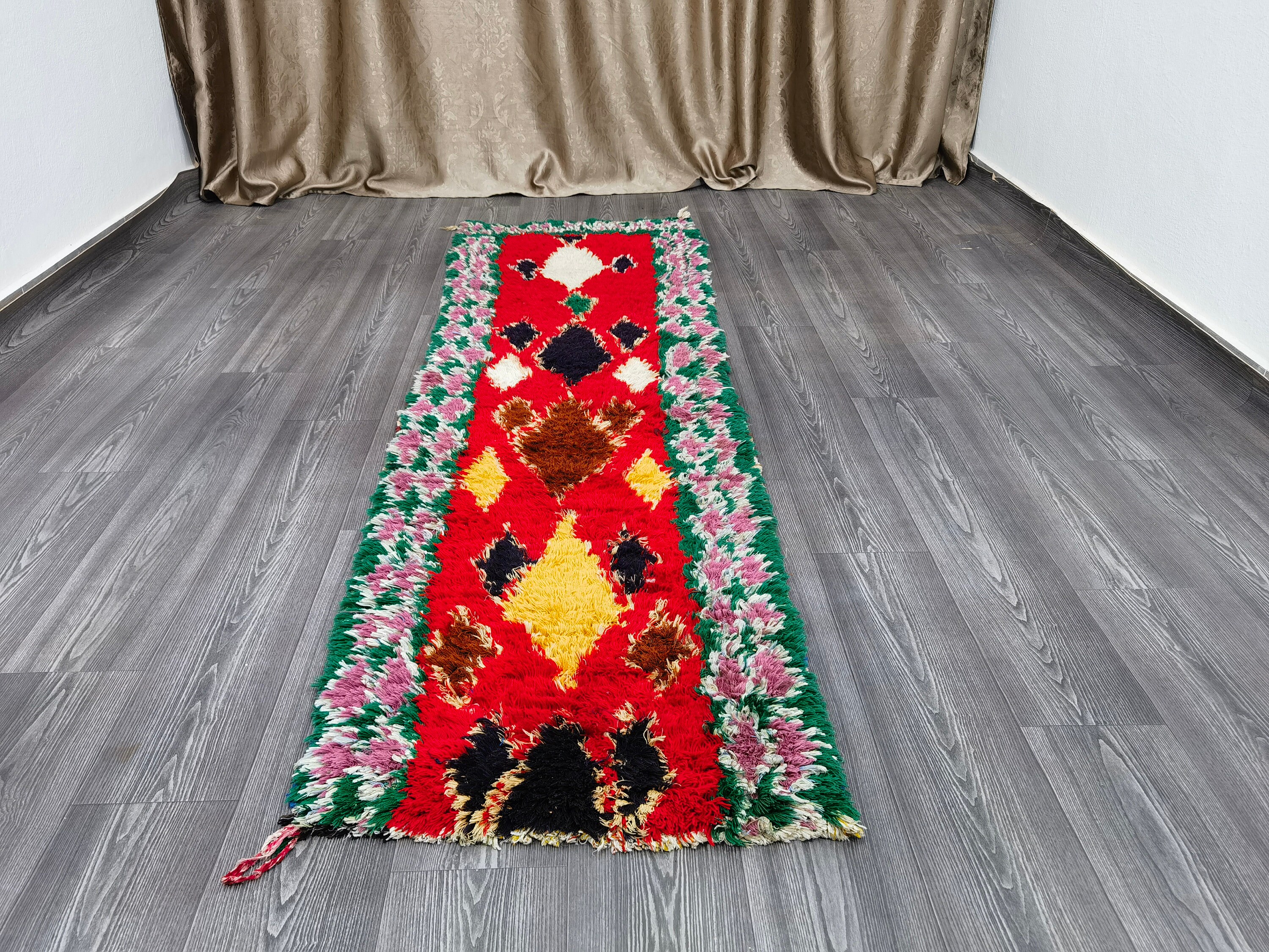 Moroccan Vintage Rug, Berber Runner rug, entryway rug, Azilal Runner Rug, Hallway runner rug ,Boujad runner rug , Berber Carpets 2.2x7.5 Ft