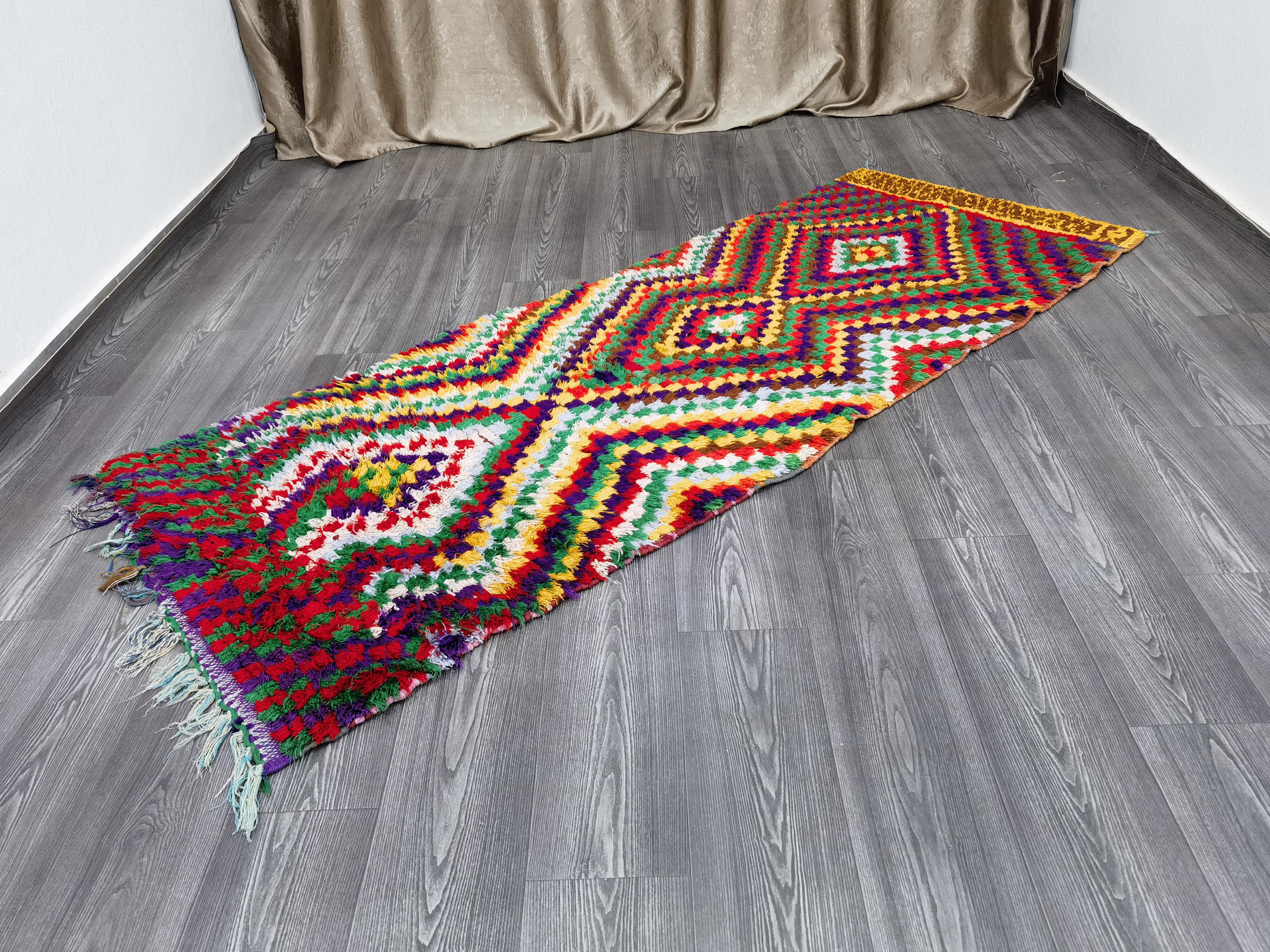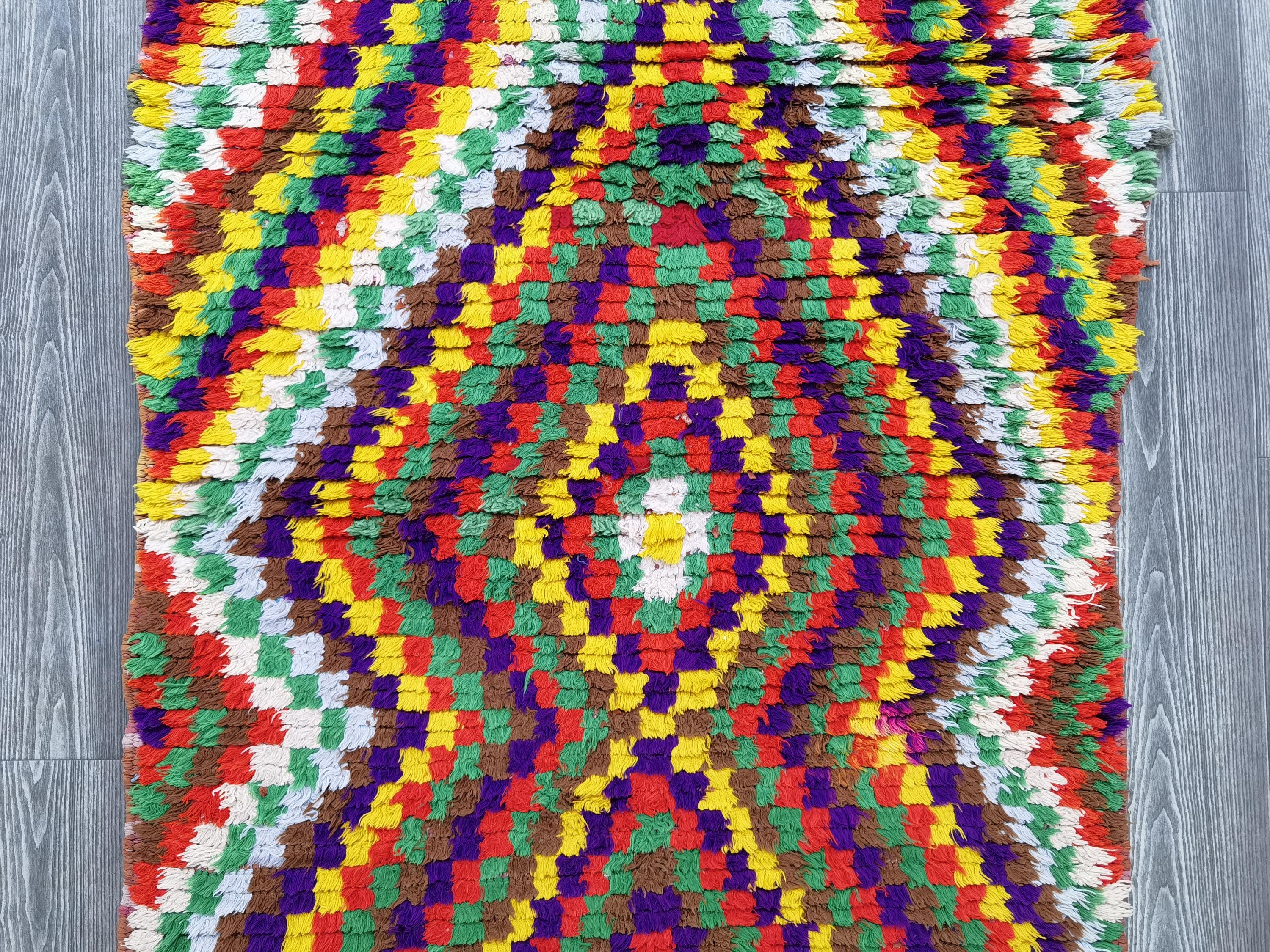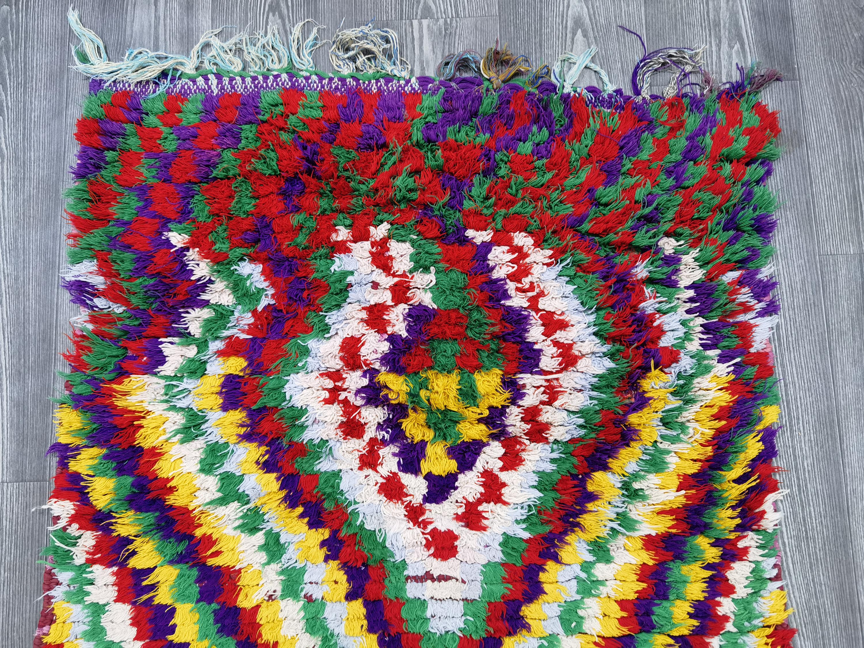 Boucherouite Rug, Colorful Area Rug, Berber Floor Rug, Room Rug Vintage