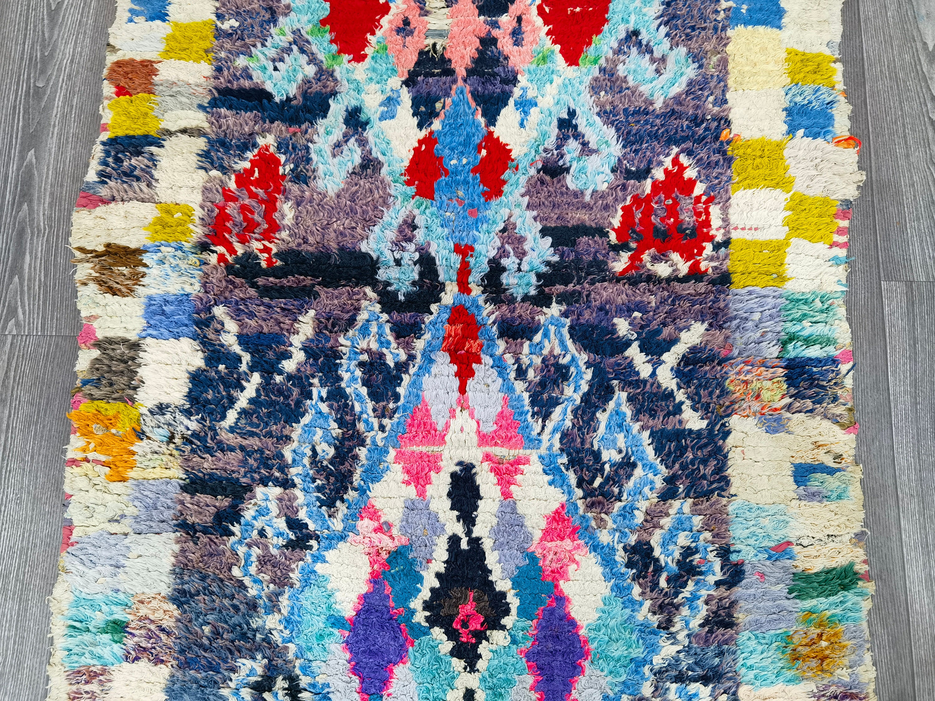 Boujaad is a vibrant and colorful wool runner that will add life to any room in your home. Made from 100% wool, this rug is perfect for use in the living room, bedroom, or anywhere you want to add some beautiful Moroccan flair. The soft and fluffy texture makes it comfortable to walk on, and the vivid colors will brighten up any space. Whether you're looking for a traditional shag rug or something a little more bohemian, Boujaad is sure to be a hit with your guests.