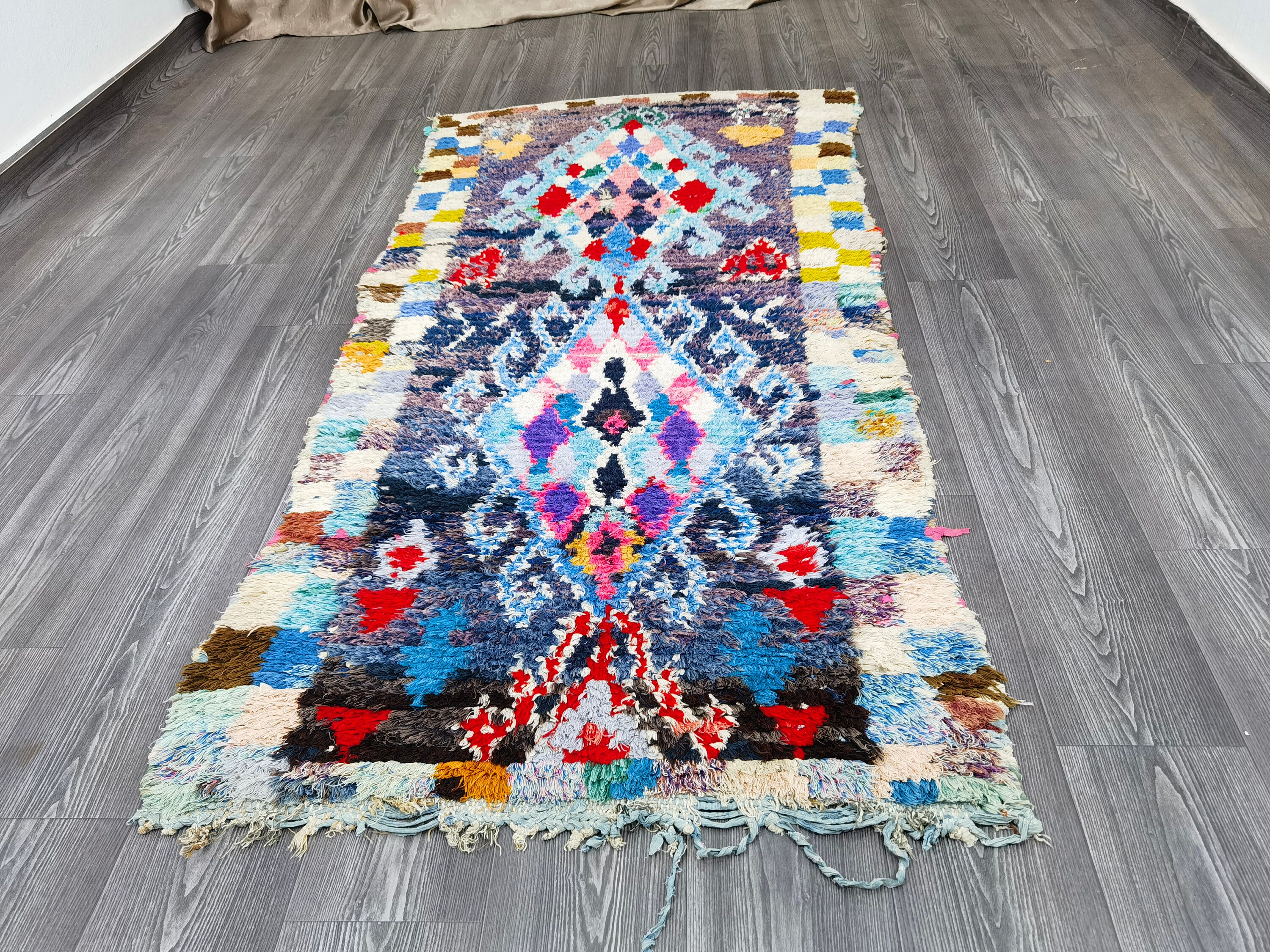 Blue Moroccan Runner Rug, Moroccan Handmade Runner Rug, Authentic Moroccan Rug, Berber Blue rug - Blue Morrocan Rug 3.1x6.7 Ft 95 205 cm .