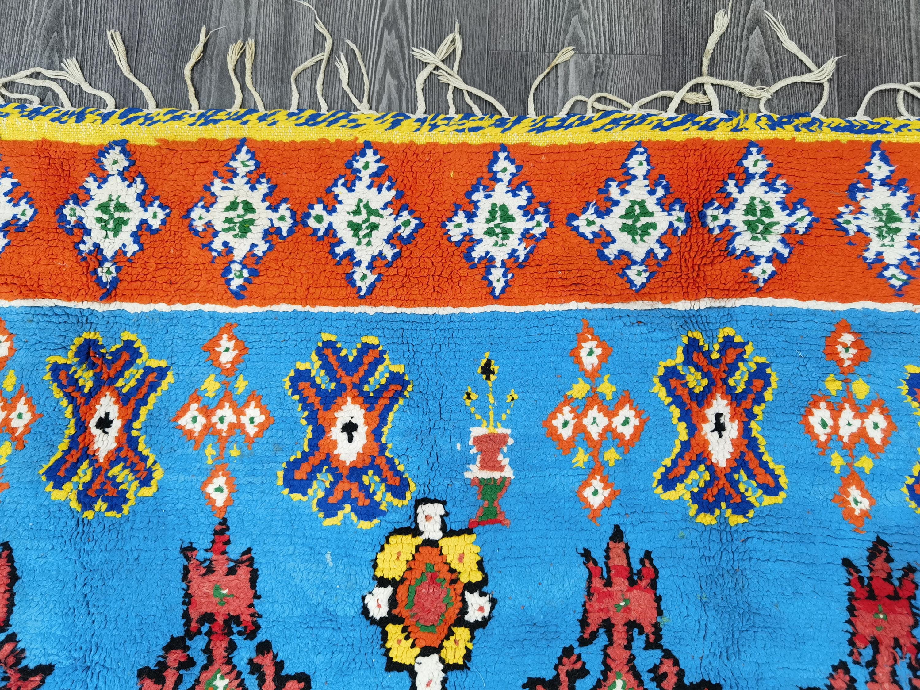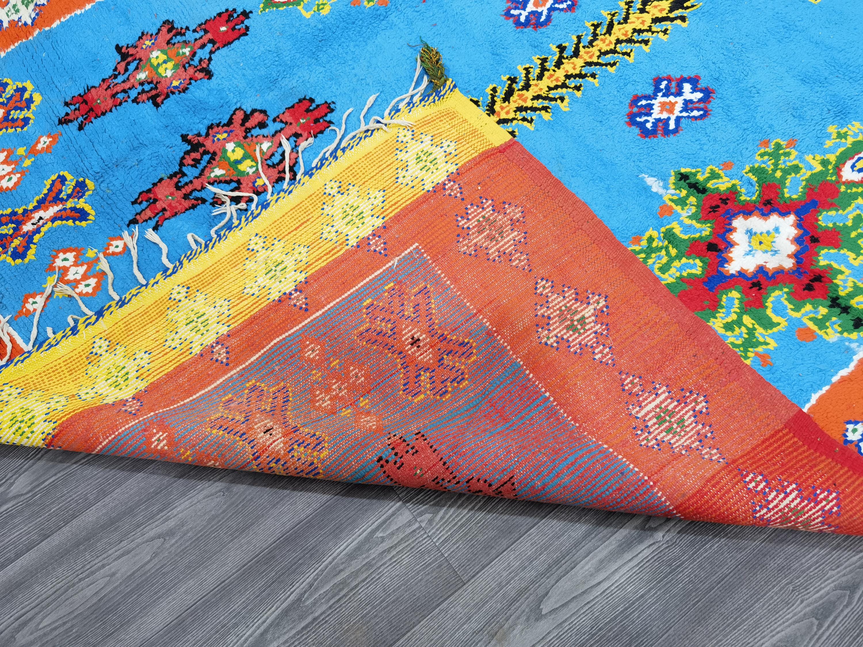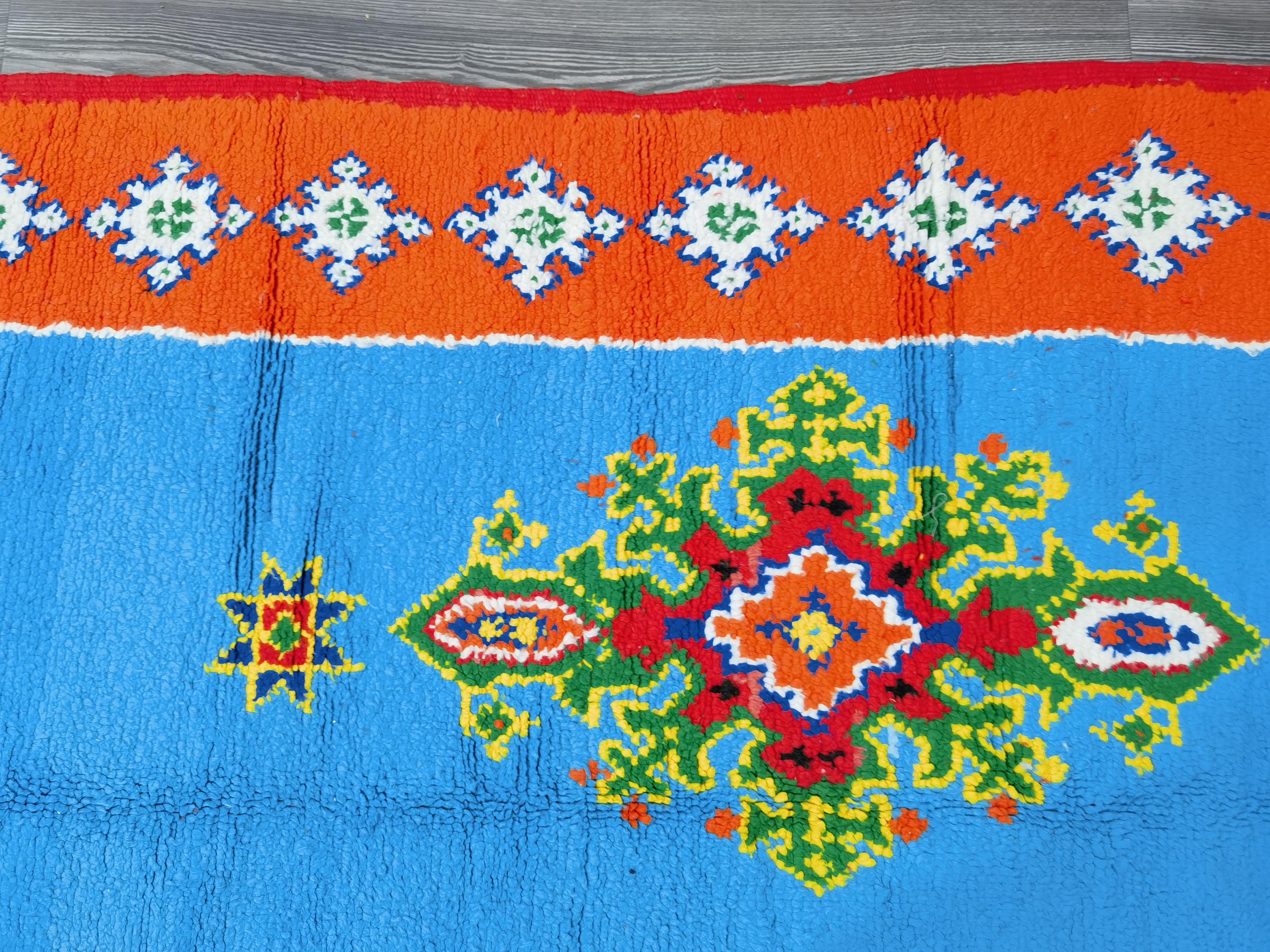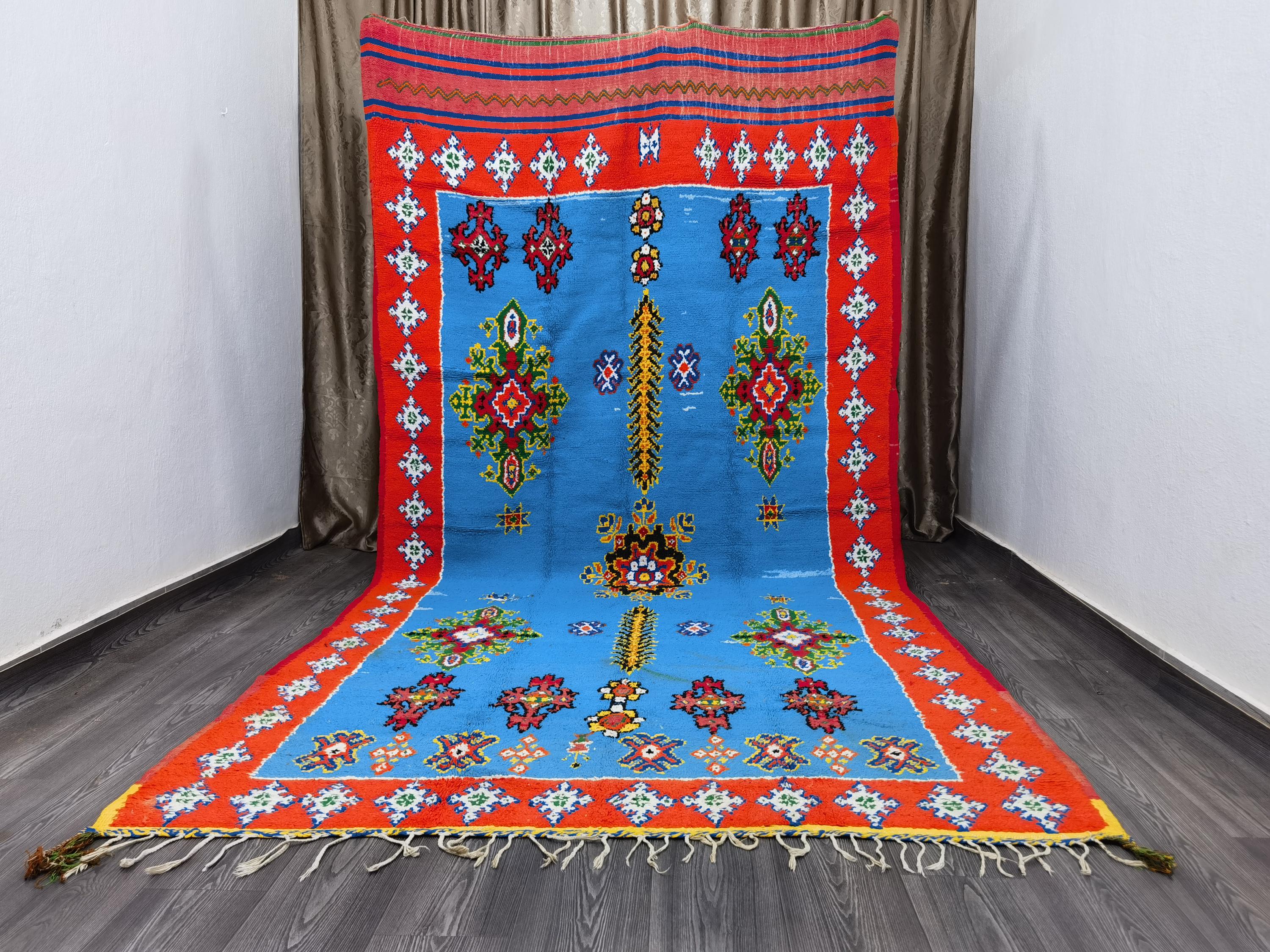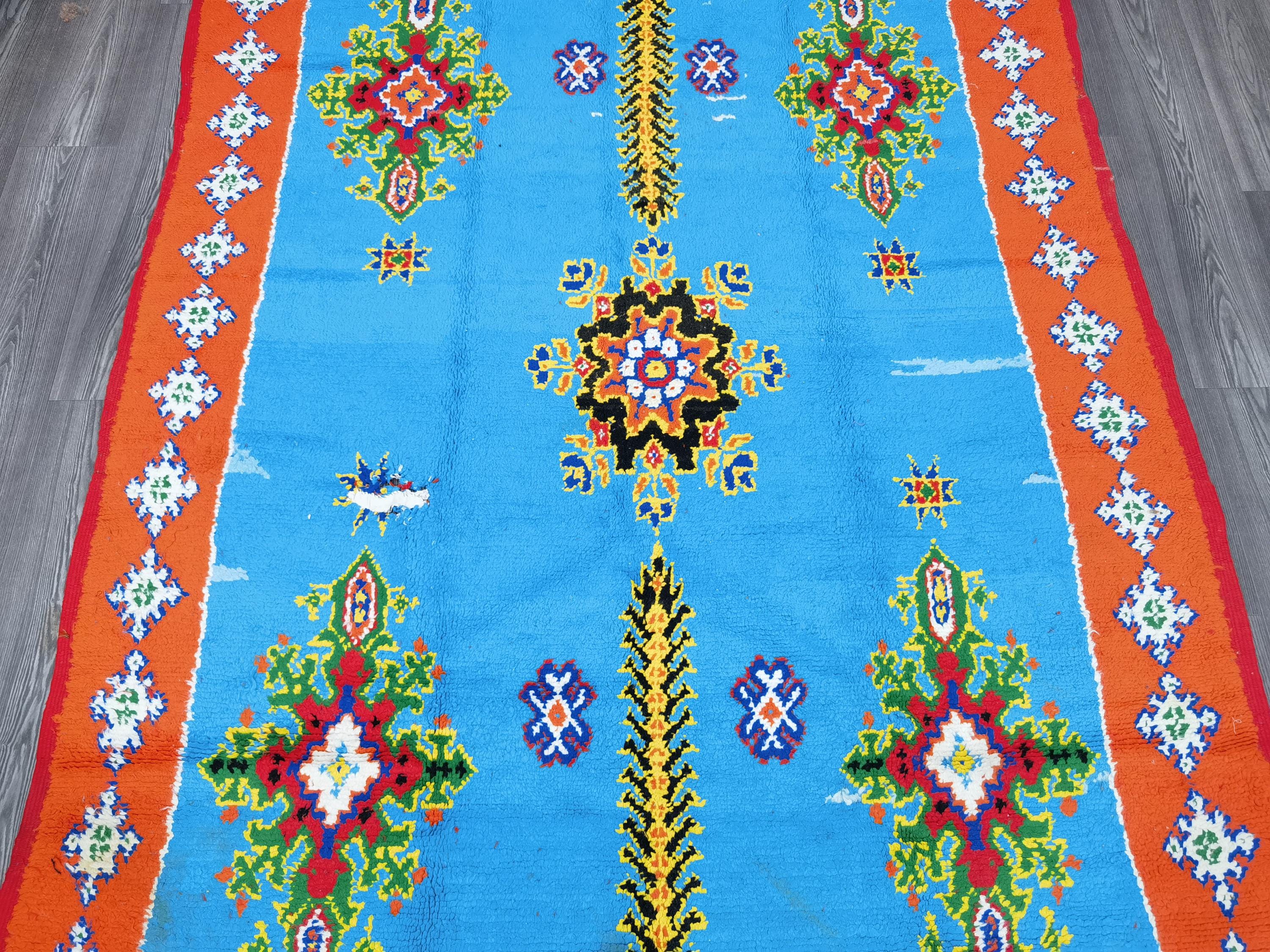 Blue Rugs For Living Room 6x12.3 ft ( 185 X 375 Cm) - Soft Area Rug - Moroccan Handmade Rug, Tribal Berber Rug, Unique Colorful boujaad Rug