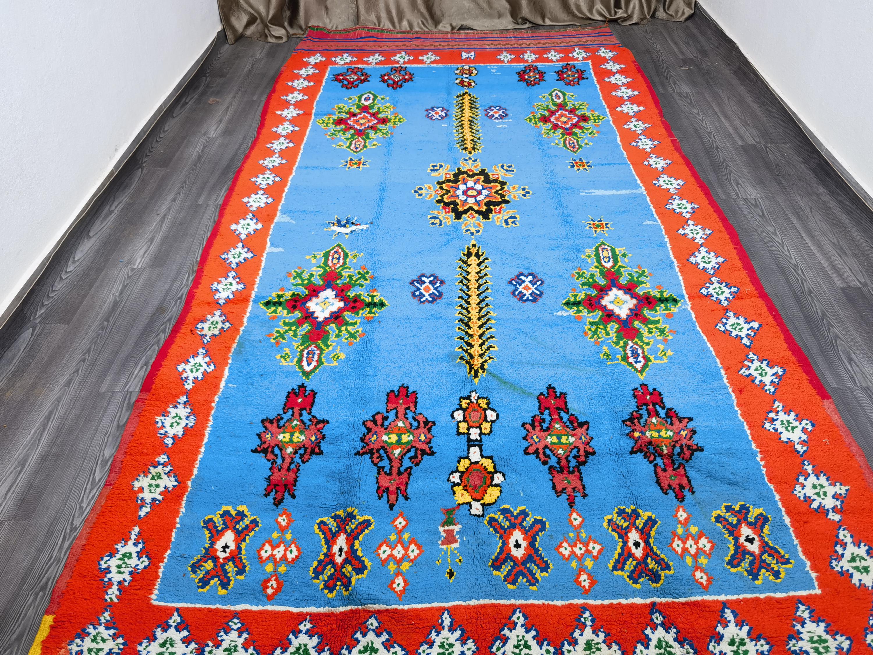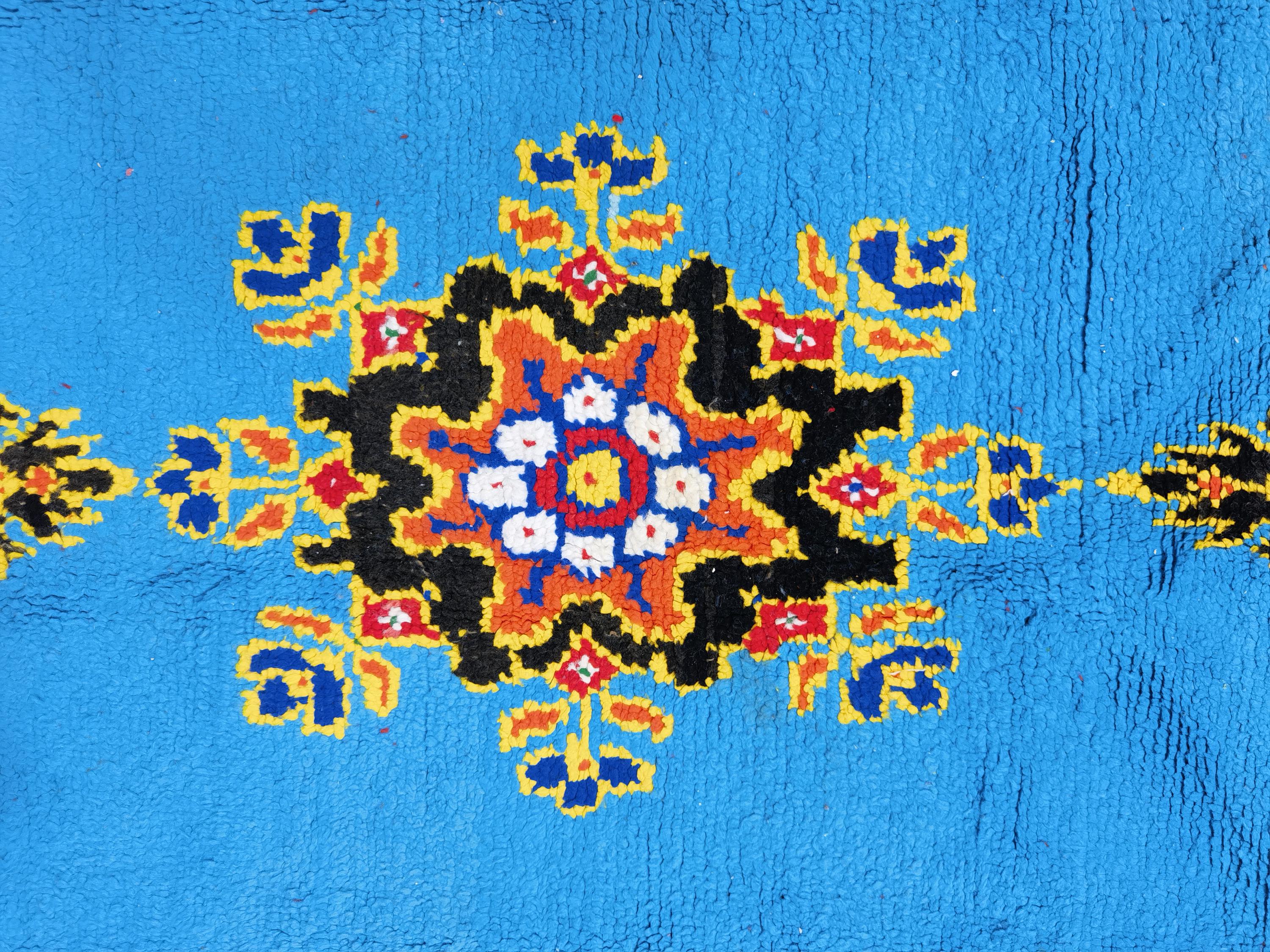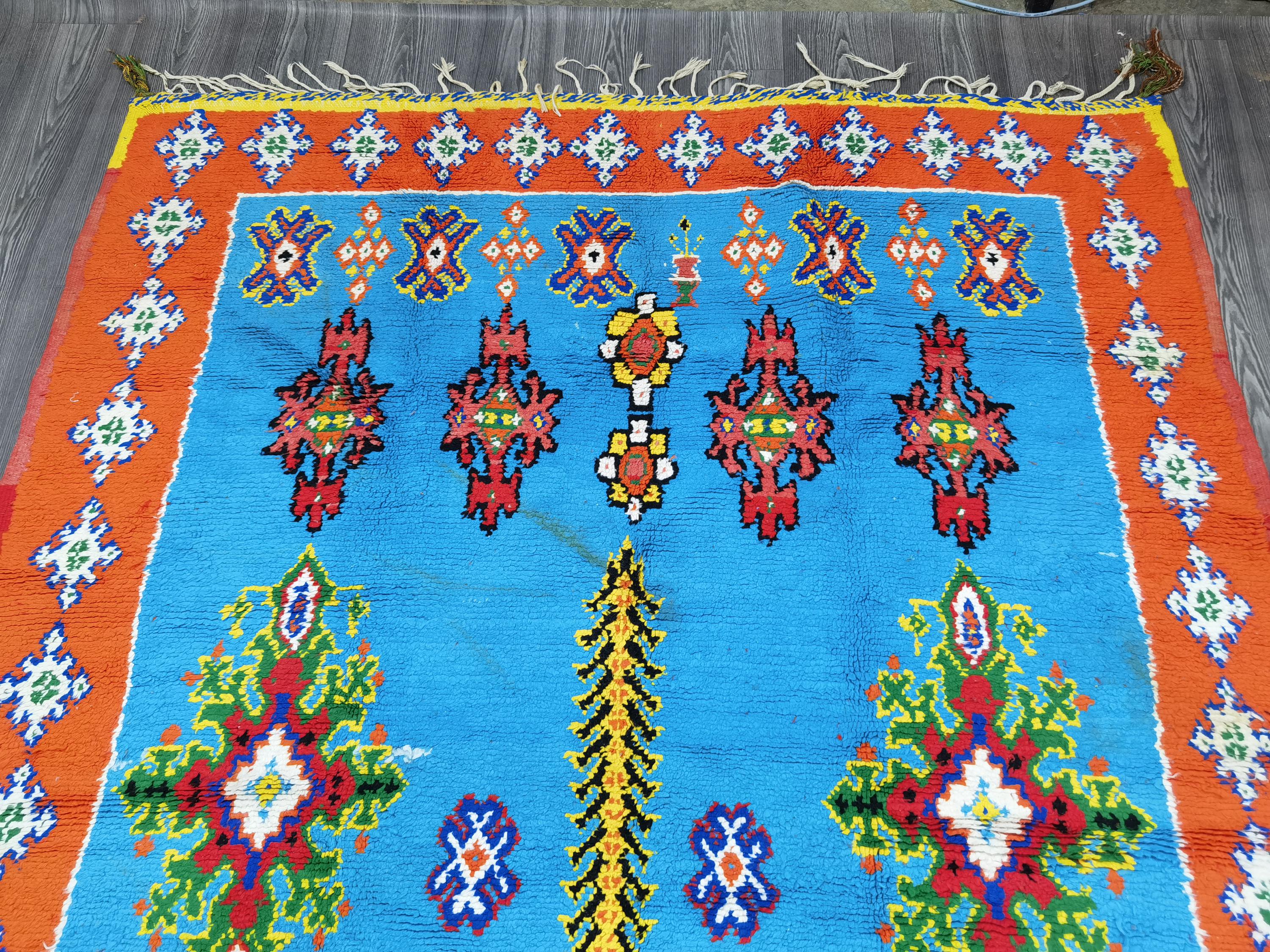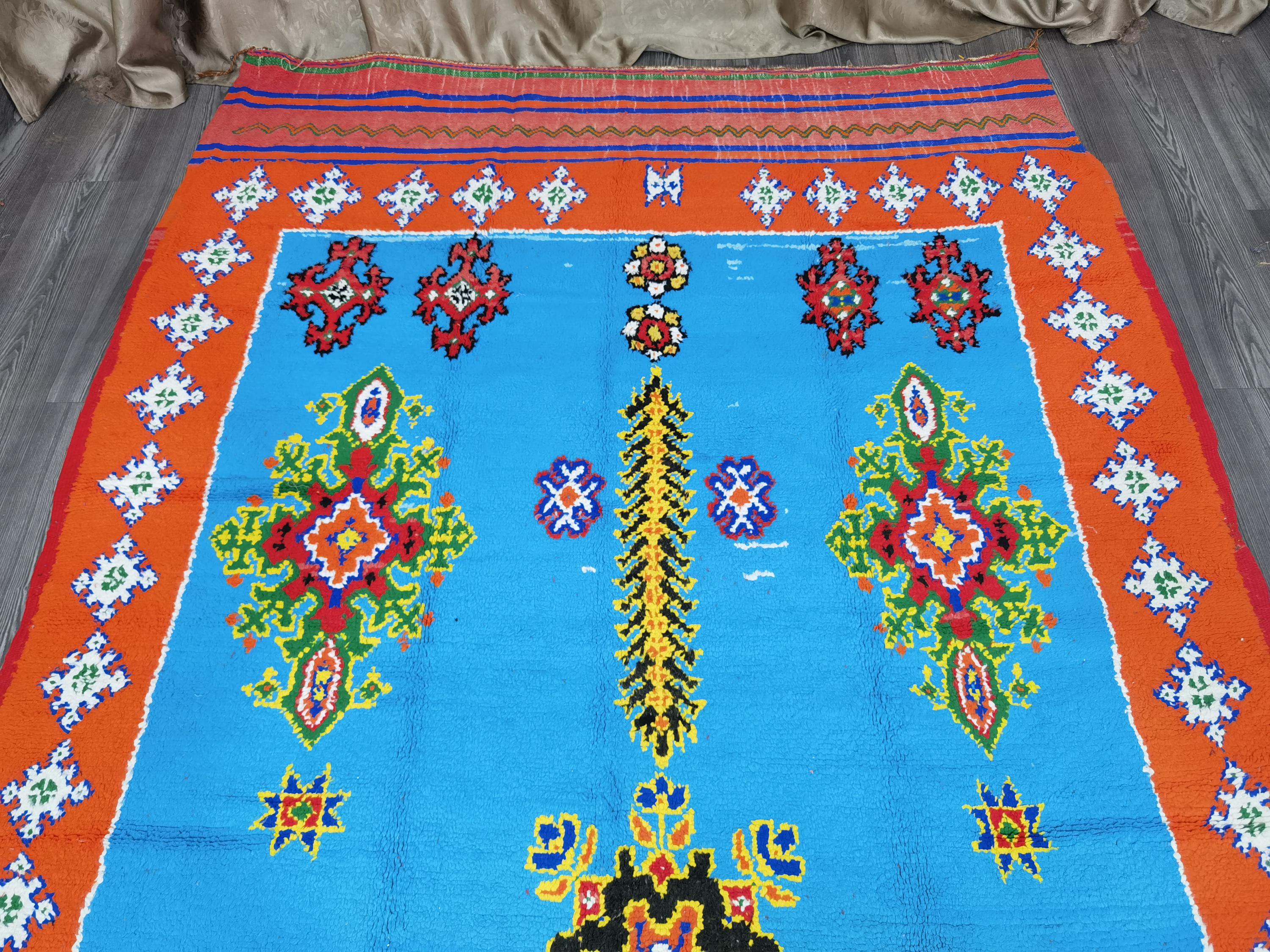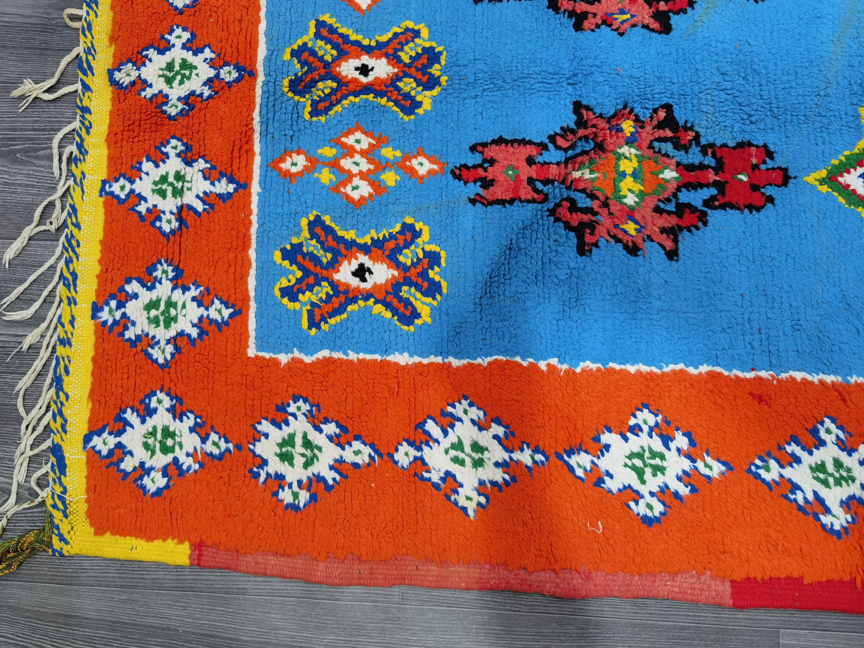Blue Rugs For Living Room 6x12.3 ft ( 185 X 375 Cm) - Soft Area Rug - Moroccan Handmade Rug, Tribal Berber Rug, Unique Colorful boujaad Rug
