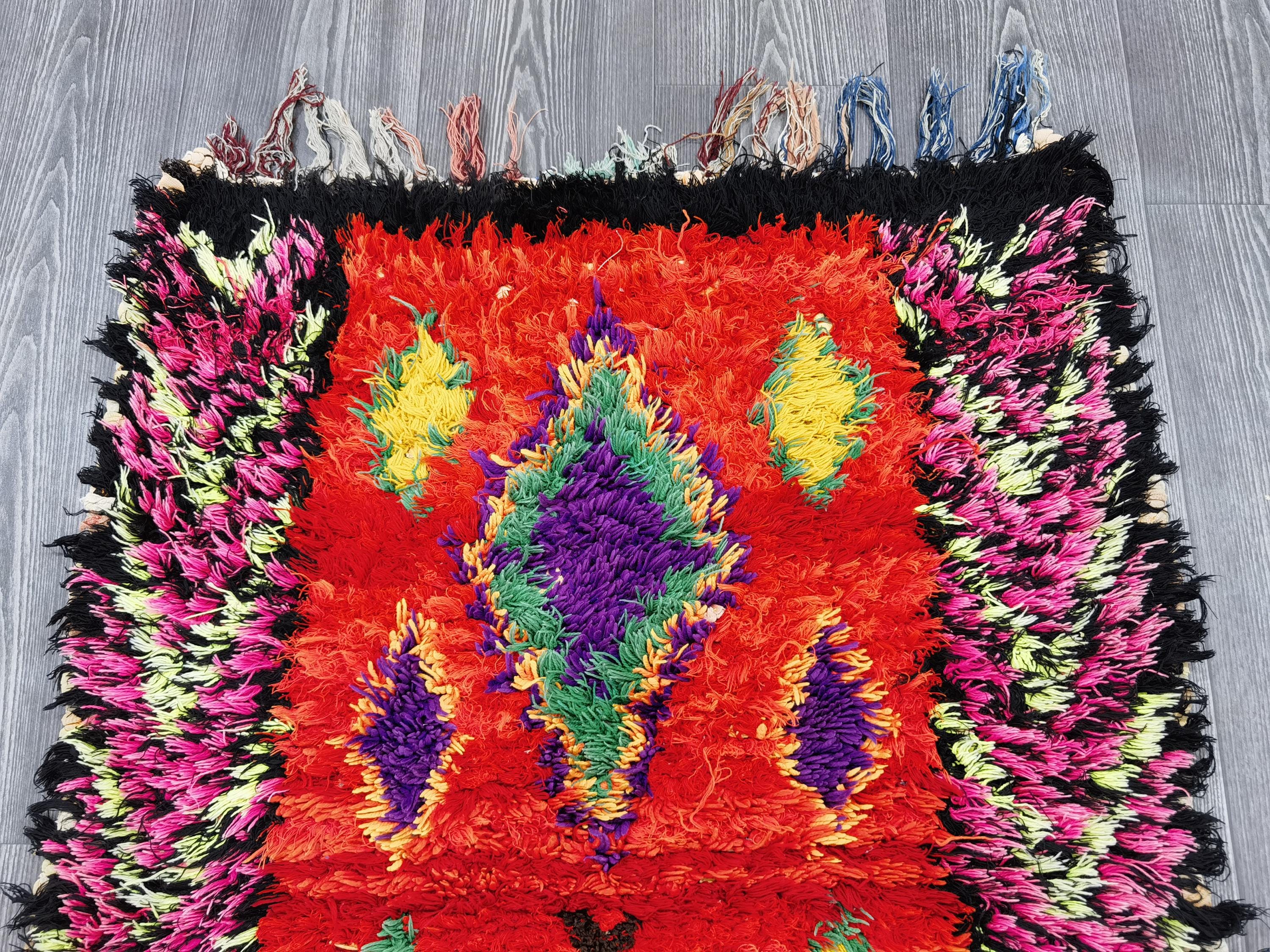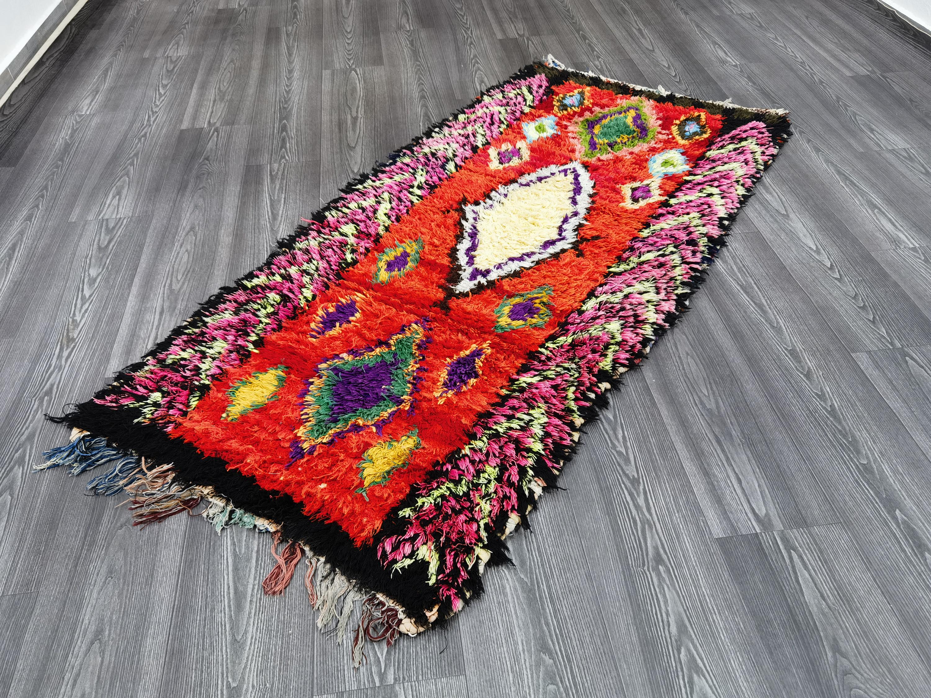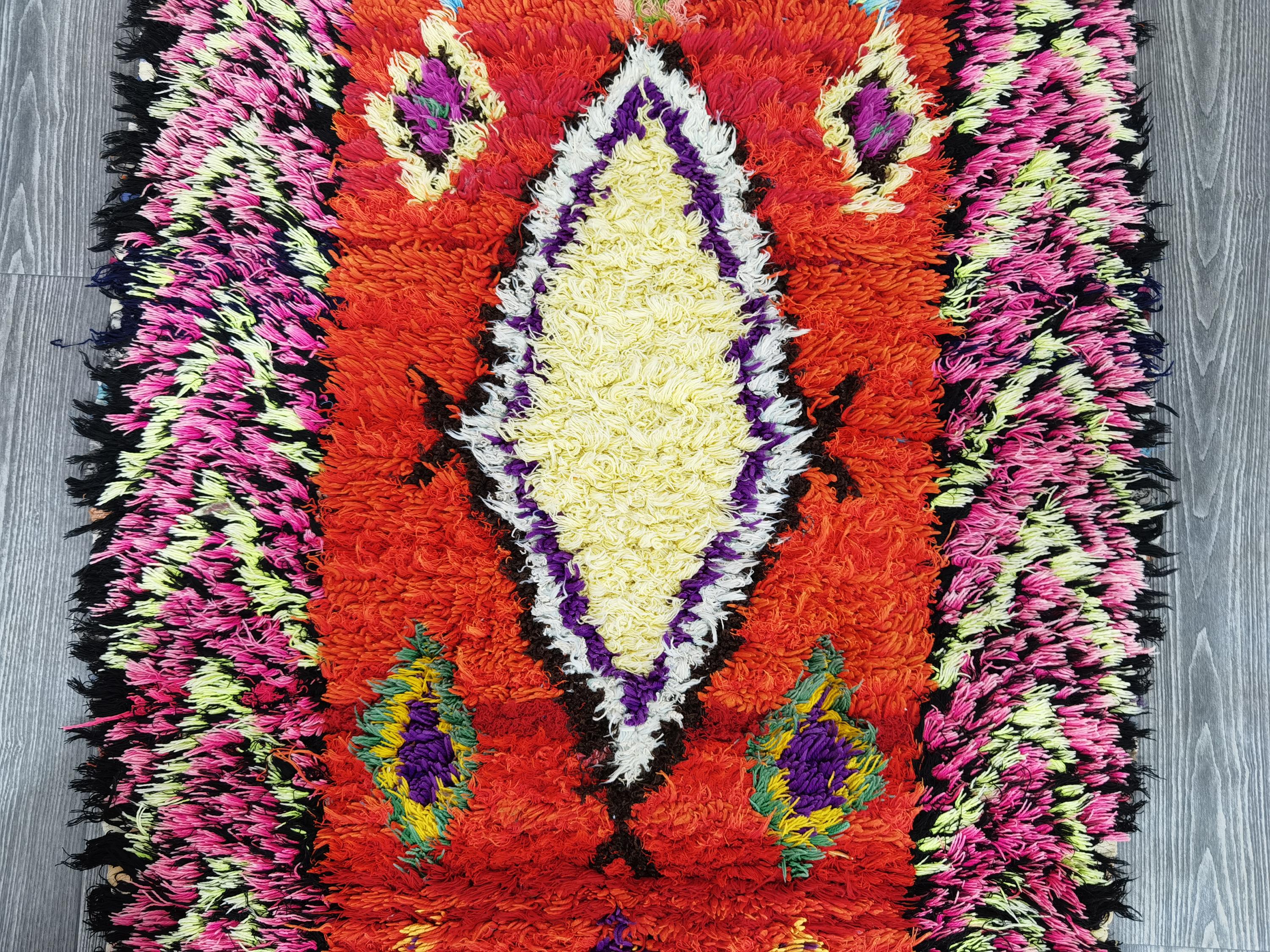 Boujaad is a vibrant and colorful wool runner that will add life to any room in your home. Made from 100% wool, this rug is perfect for use in the living room, bedroom, or anywhere you want to add some beautiful Moroccan flair. The soft and fluffy texture makes it comfortable to walk on, and the vivid colors will brighten up any space. Whether you're looking for a traditional shag rug or something a little more bohemian, Boujaad is sure to be a hit with your guests.