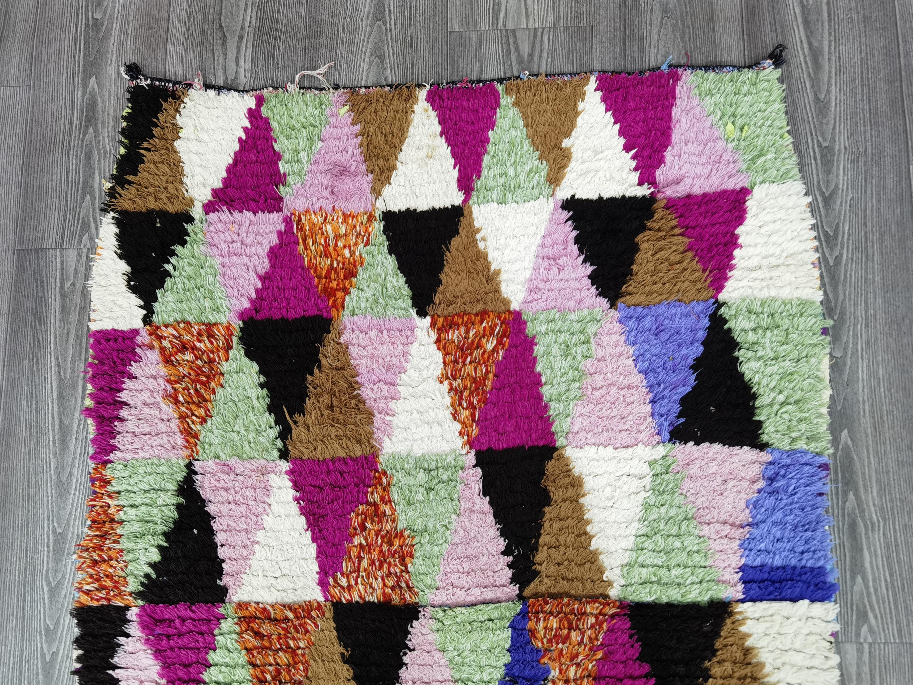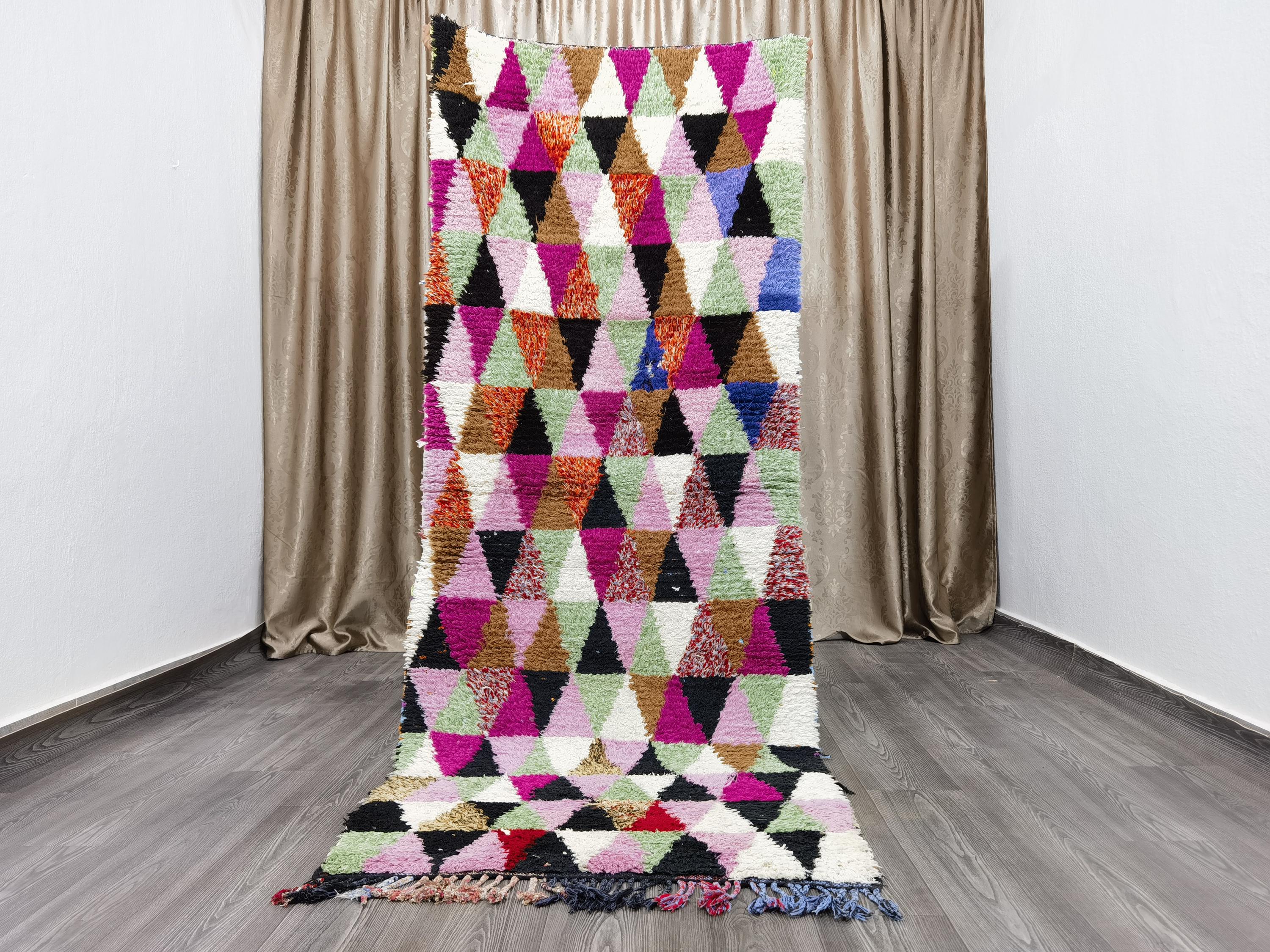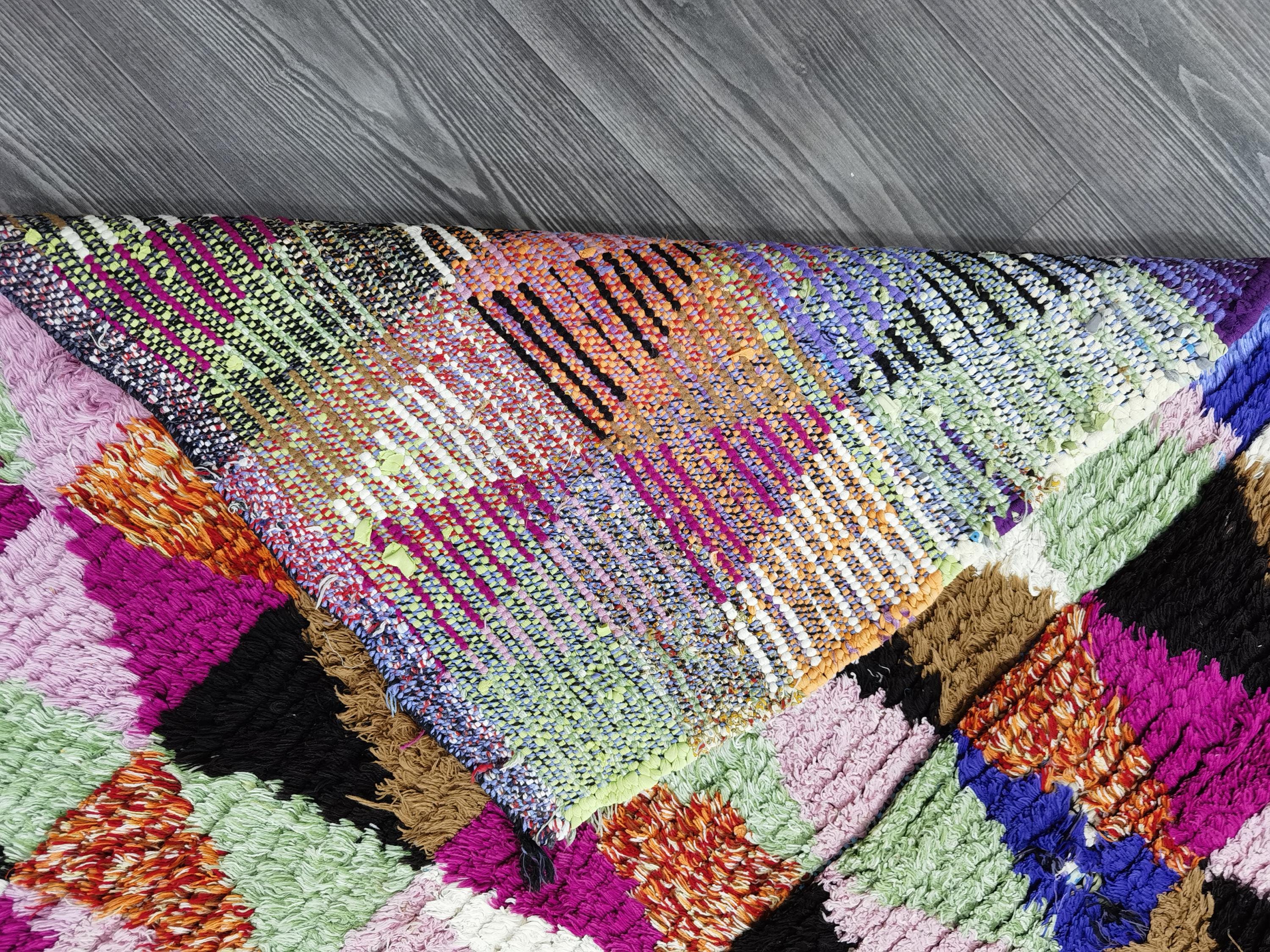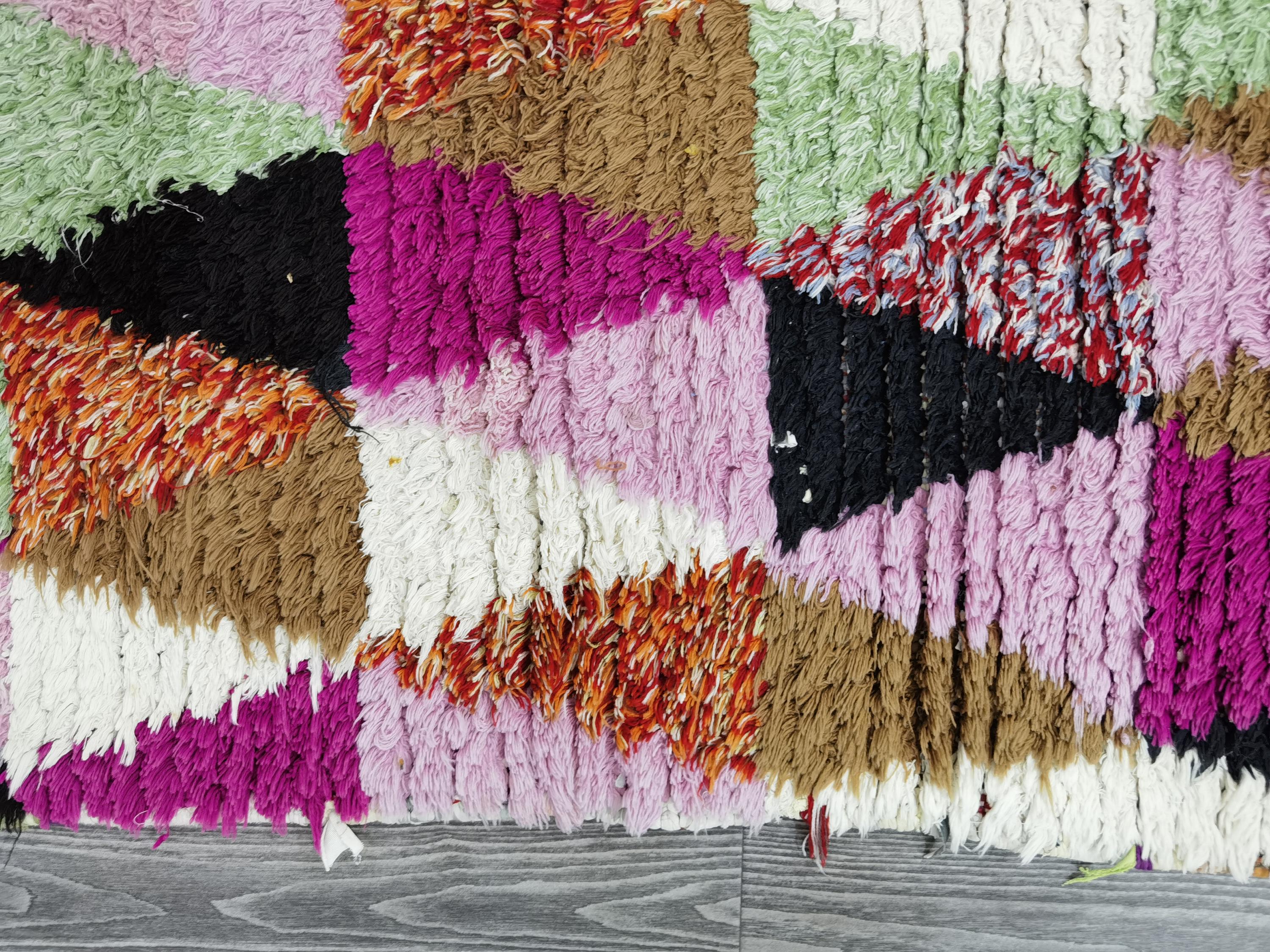 This unique Handwoven Moroccan Boujaad wool rug is one of a kind. A unique rare artistic handmade art, a beautiful combination of colors. which makes it the best choice whether for your house or your showroom. The famous Boujaad rug is now on the cover of the world’s leading home decoration magazines. This rug with character goes perfectly with all interior styles, Bohemian, Modern, Minimalist, Scandinavian, Traditional, which makes it the best choice for your needs.