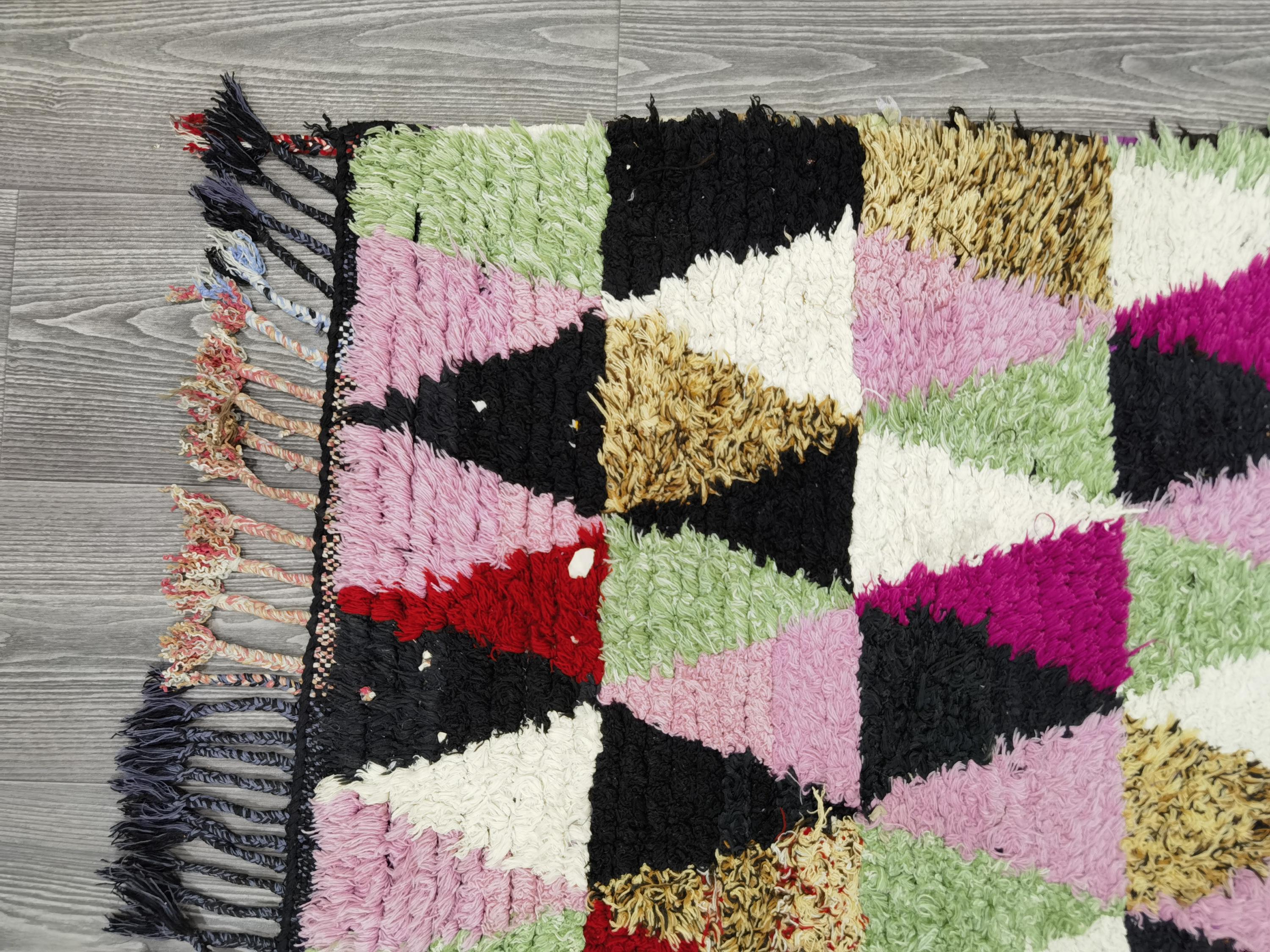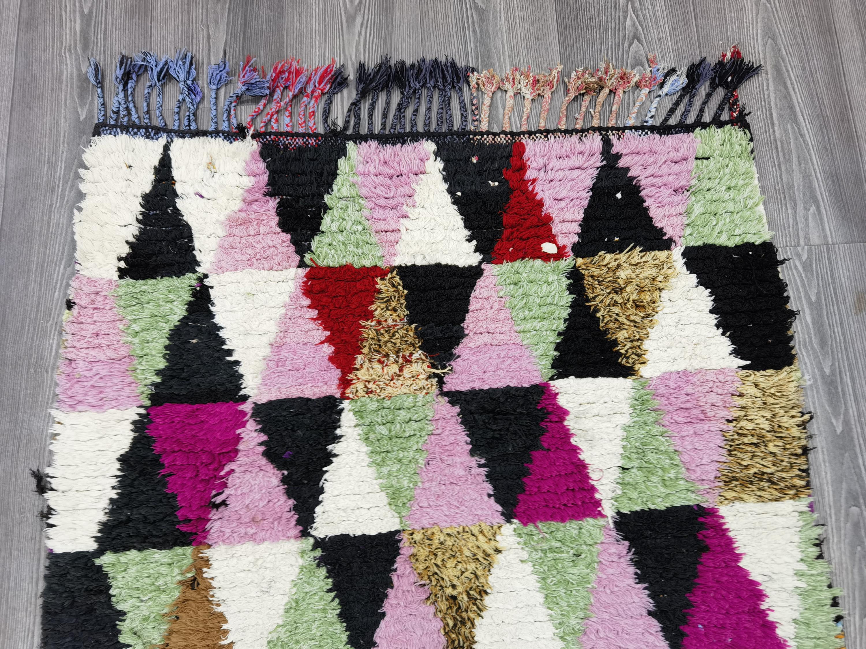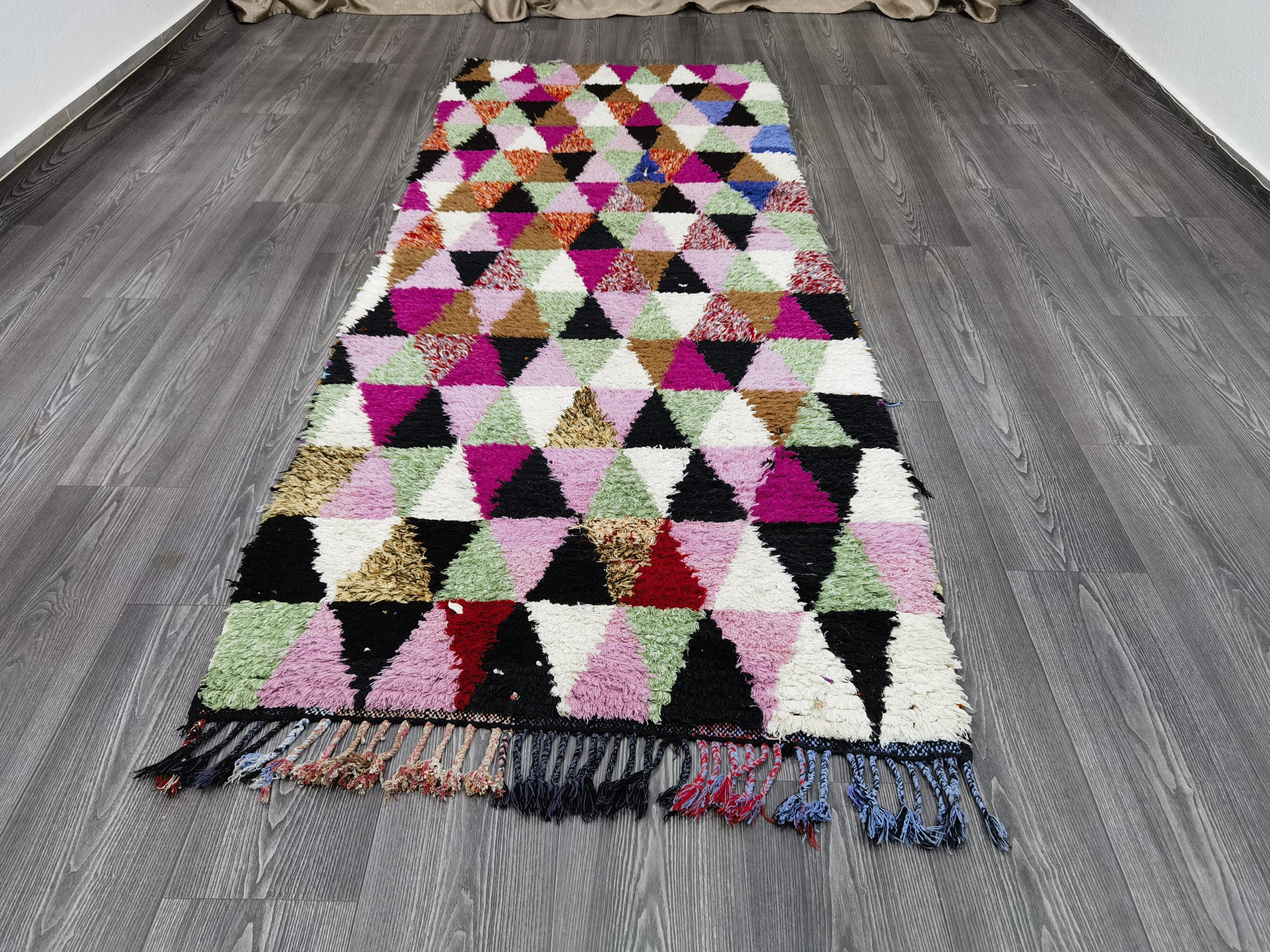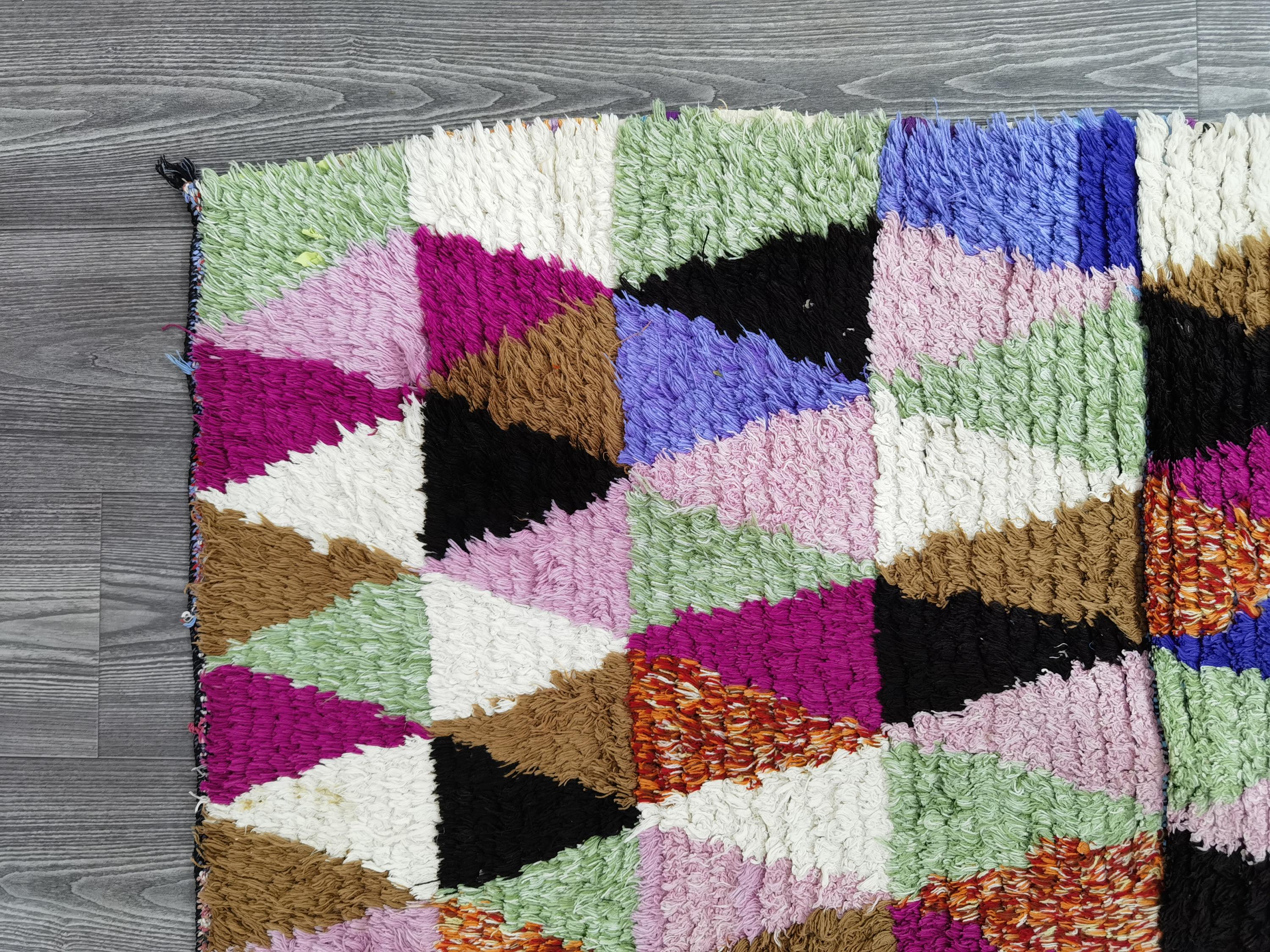 This unique Handwoven Moroccan Boujaad wool rug is one of a kind. A unique rare artistic handmade art, a beautiful combination of colors. which makes it the best choice whether for your house or your showroom. The famous Boujaad rug is now on the cover of the world’s leading home decoration magazines. This rug with character goes perfectly with all interior styles, Bohemian, Modern, Minimalist, Scandinavian, Traditional, which makes it the best choice for your needs.