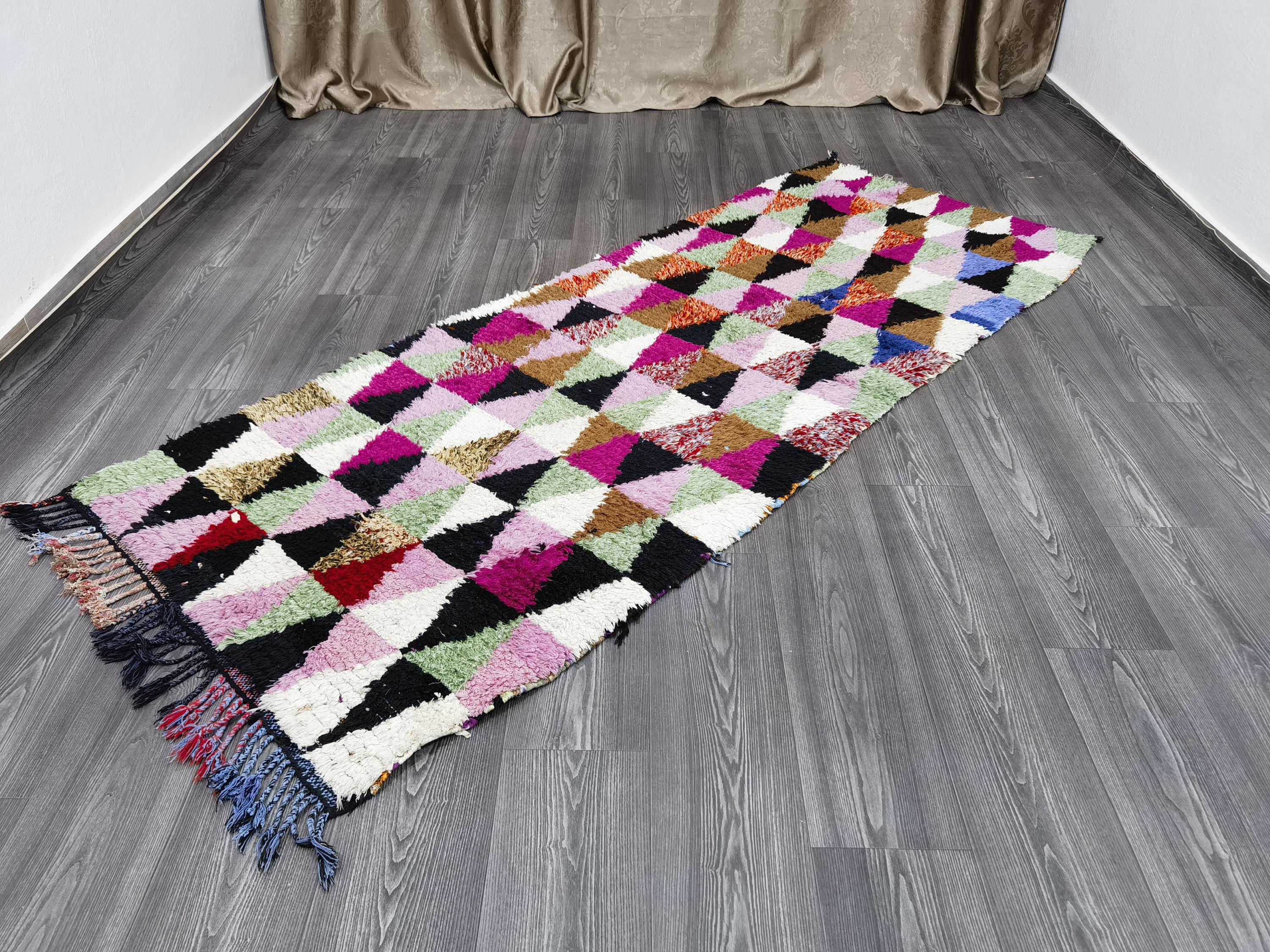 Handwoven Wool Rug Runner – Colorful Geometric Moroccan Hallway Rug