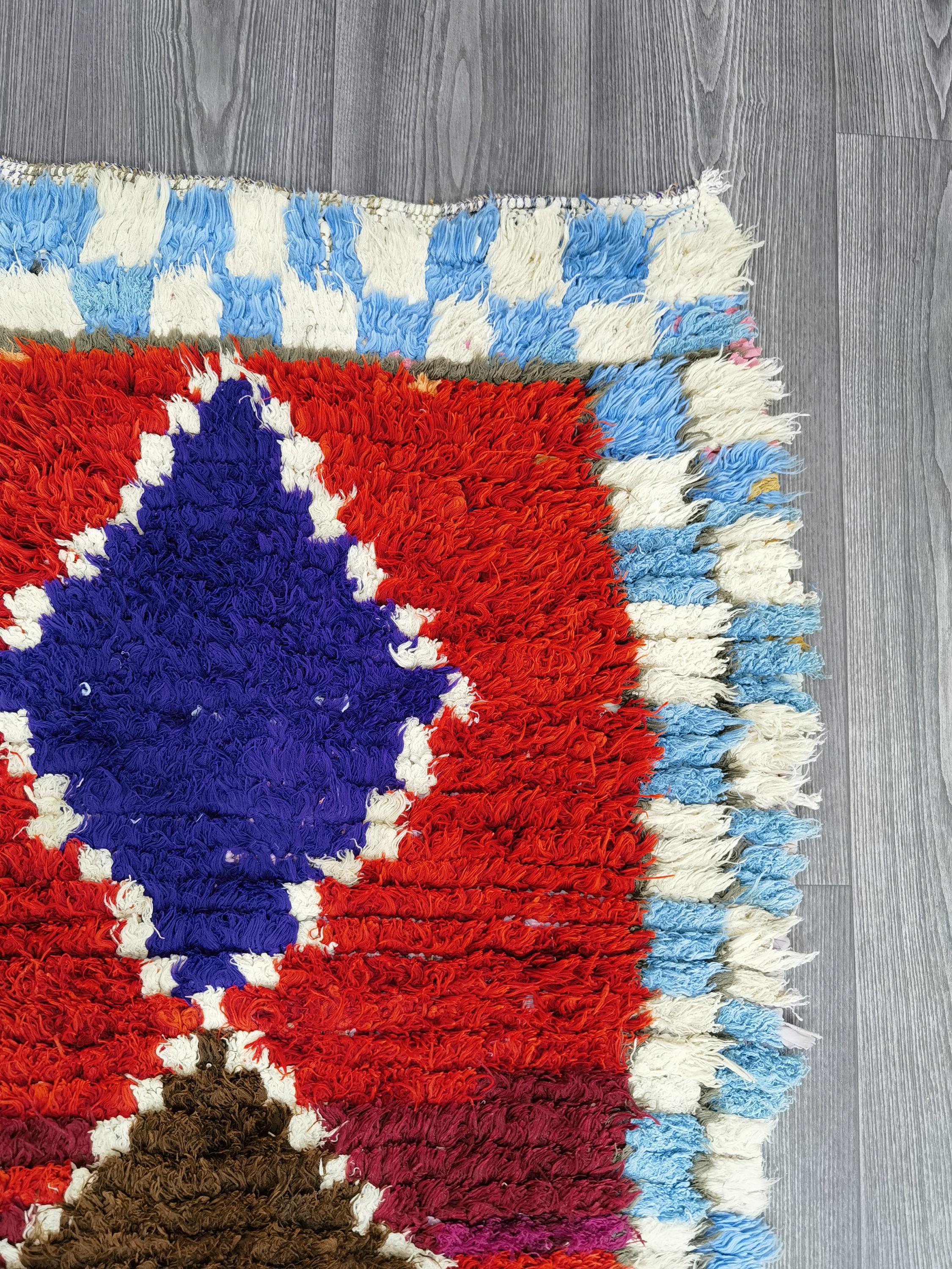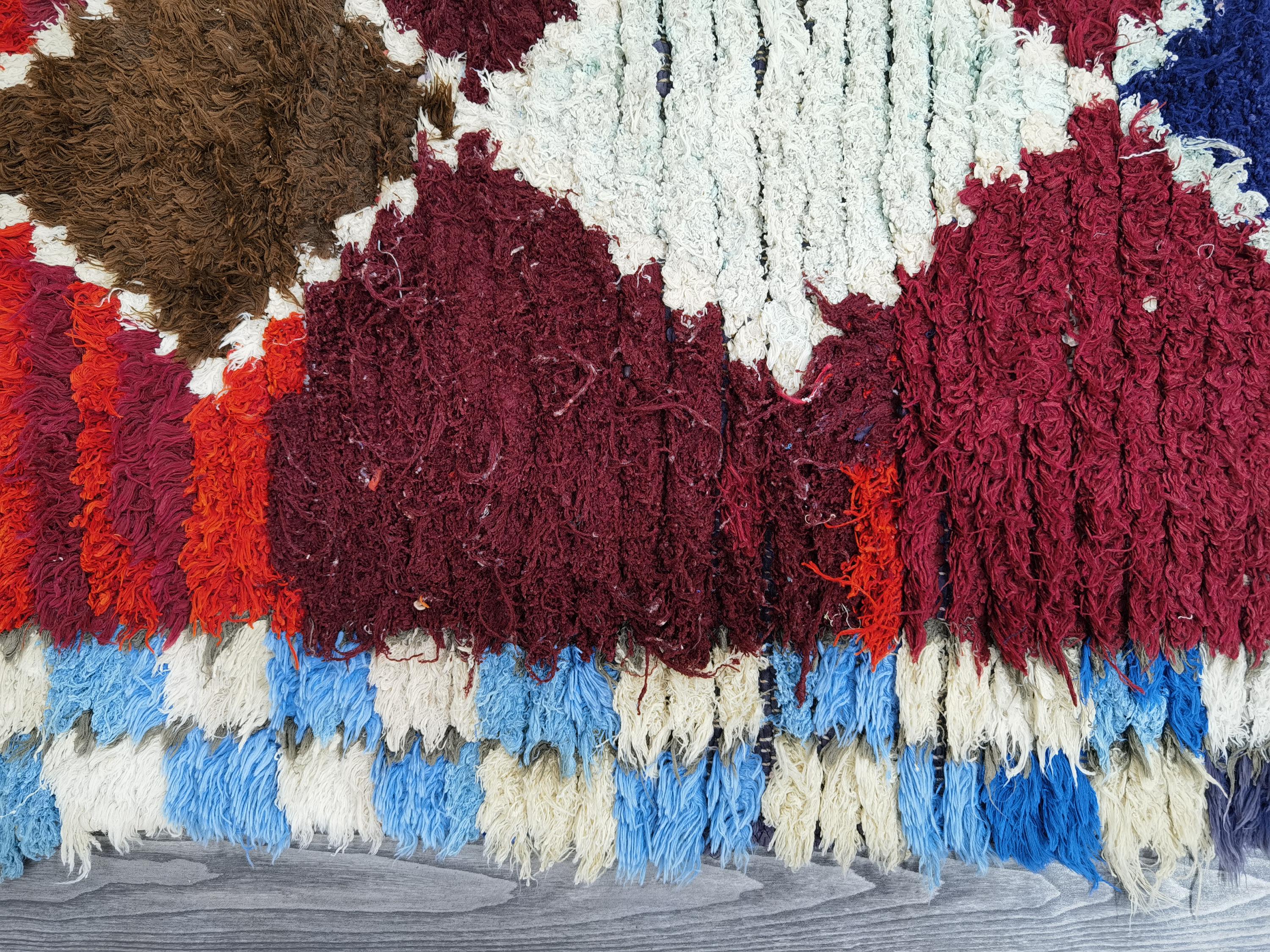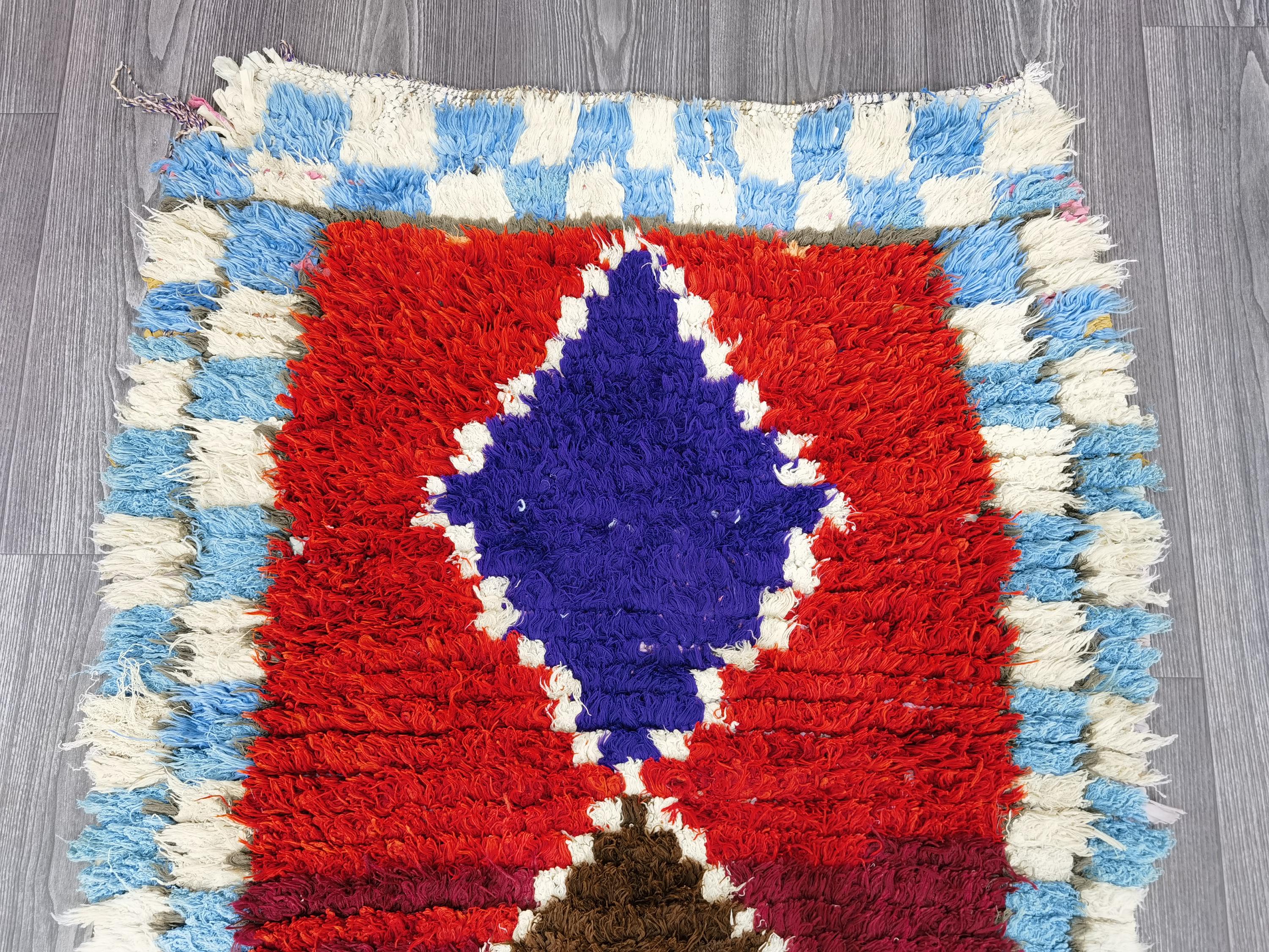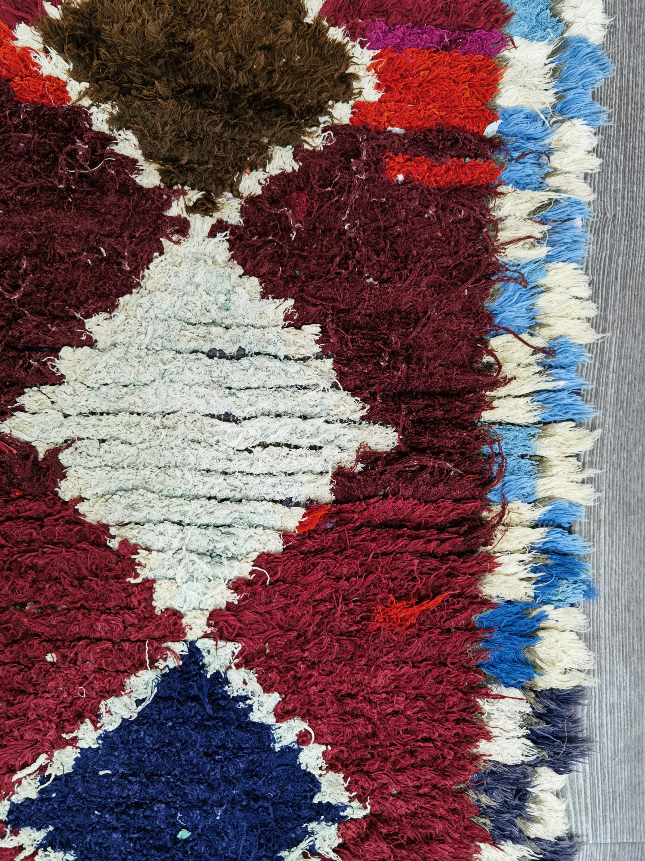 Boujaad is a vibrant and colorful wool runner that will add life to any room in your home. Made from 100% wool, this rug is perfect for use in the living room, bedroom, or anywhere you want to add some beautiful Moroccan flair. The soft and fluffy texture makes it comfortable to walk on, and the vivid colors will brighten up any space. Whether you're looking for a traditional shag rug or something a little more bohemian, Boujaad is sure to be a hit with your guests.
