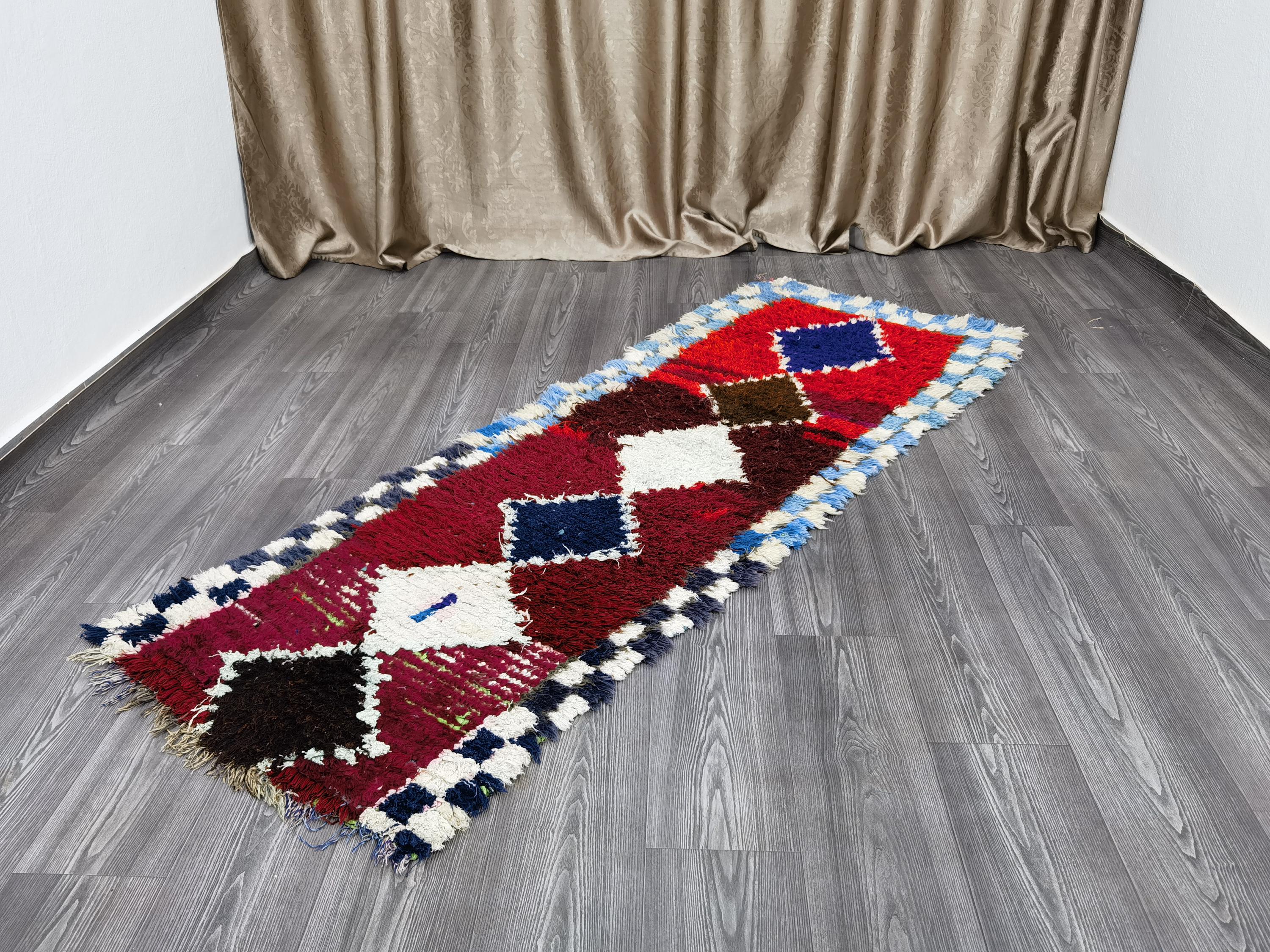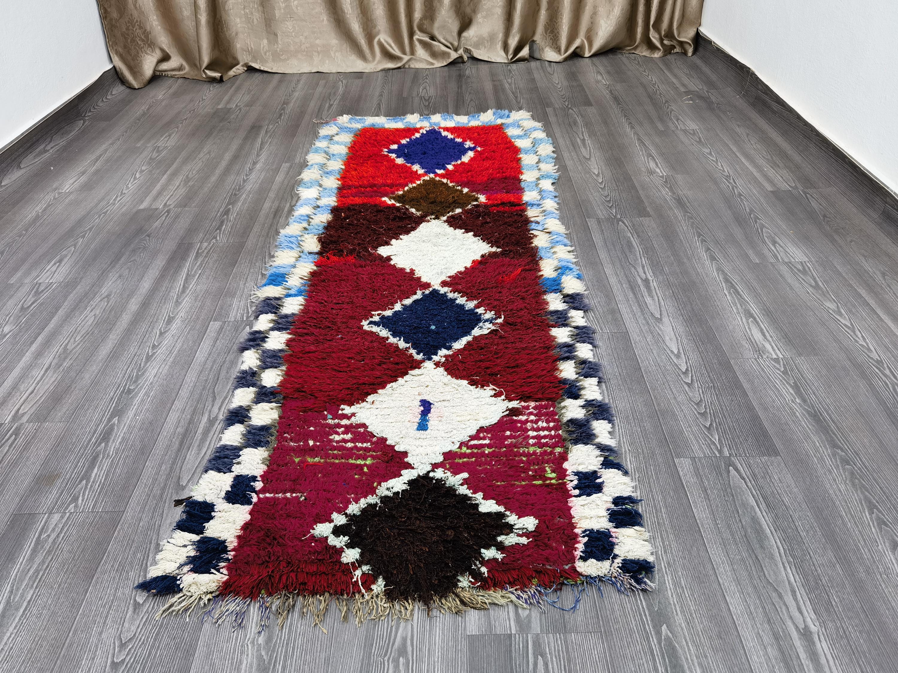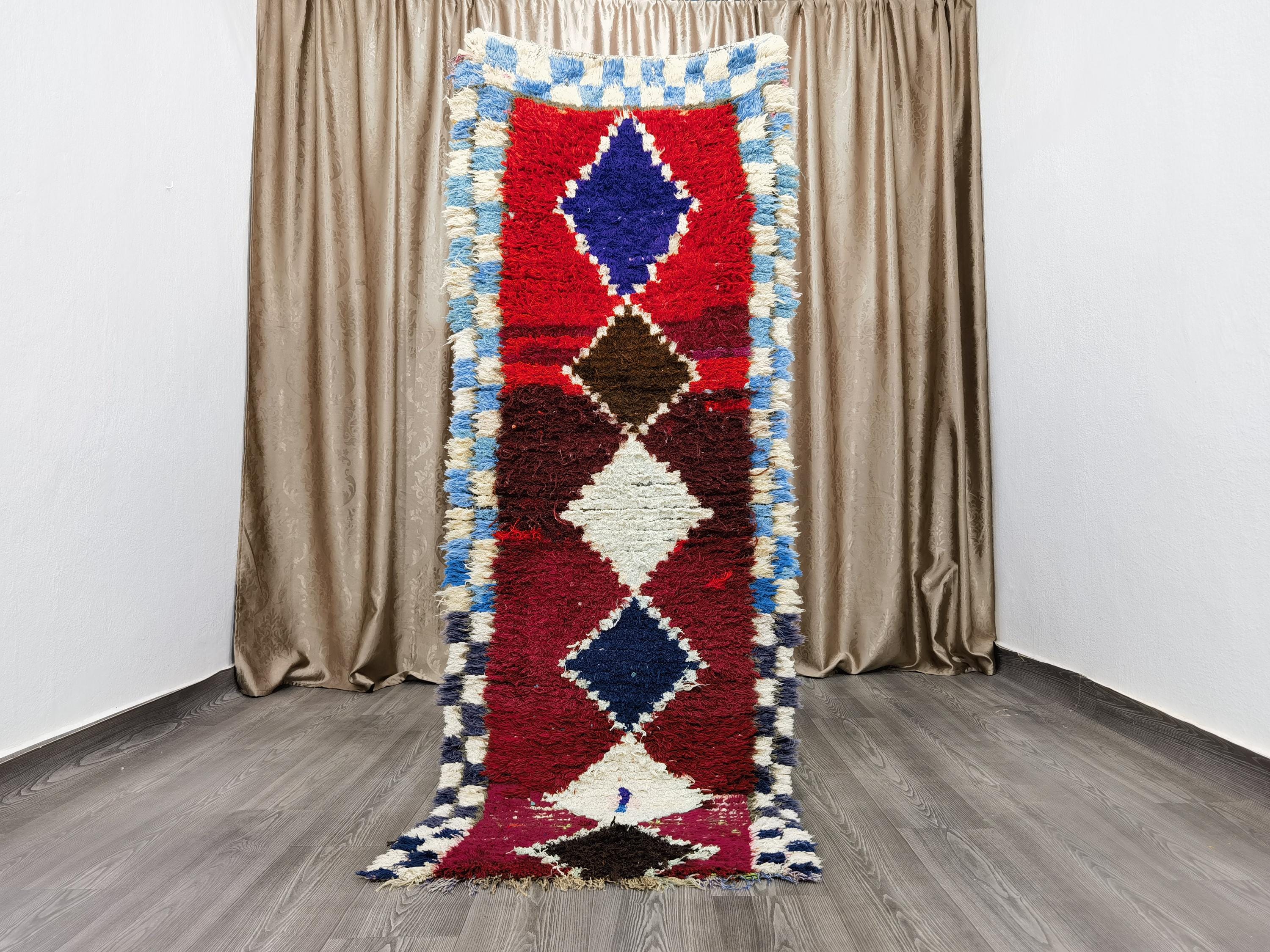 Fantastic Moroccan Runner Rug - Red Runner Rug - Berber Runner Carpet - Authentic boujaad runner rug - Living Room Runner 2.6x7 Ft