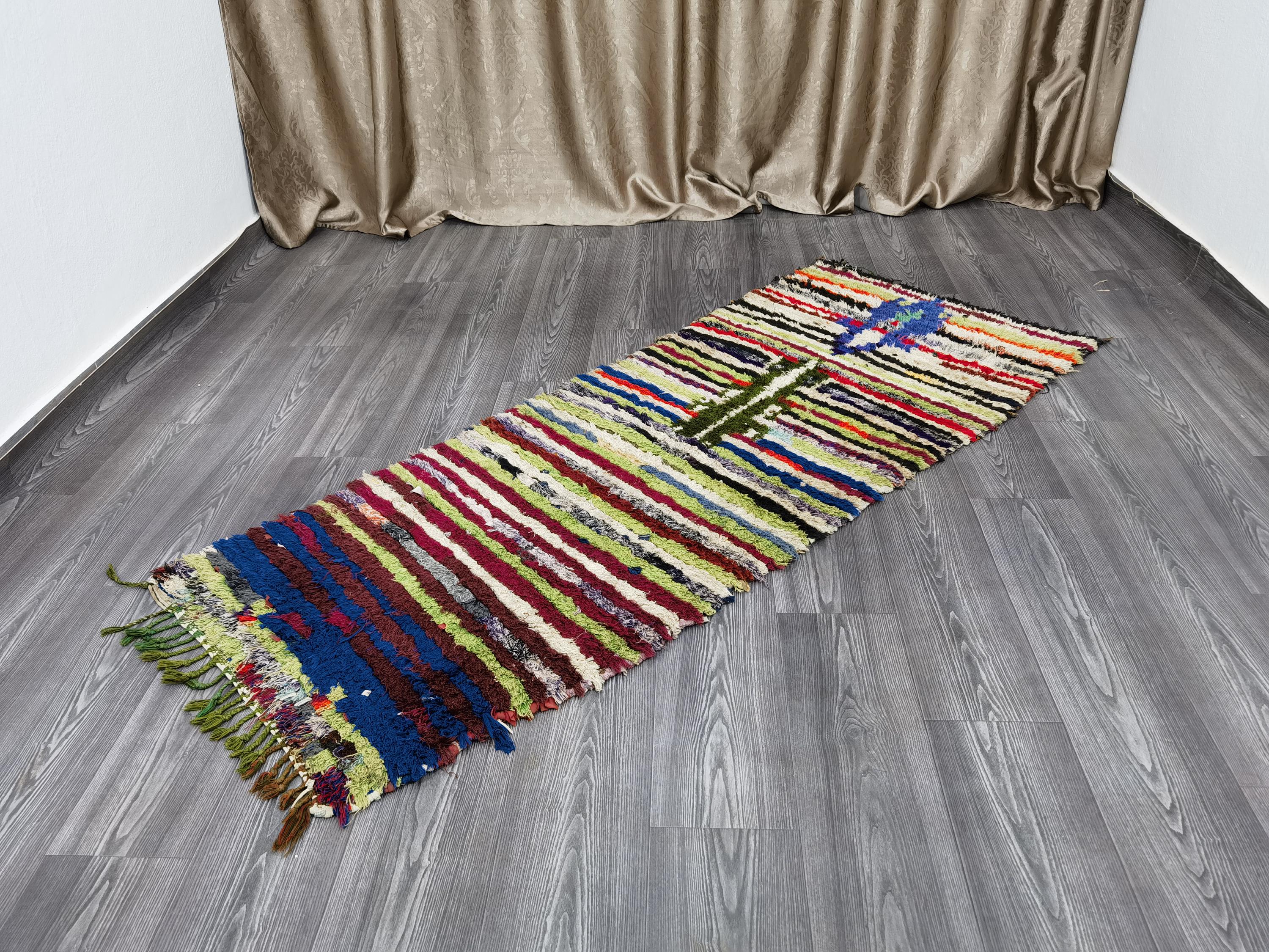 Handmade Moroccan Runner Rug: Colorful Berber Carpet, 2.6x6.7 Ft