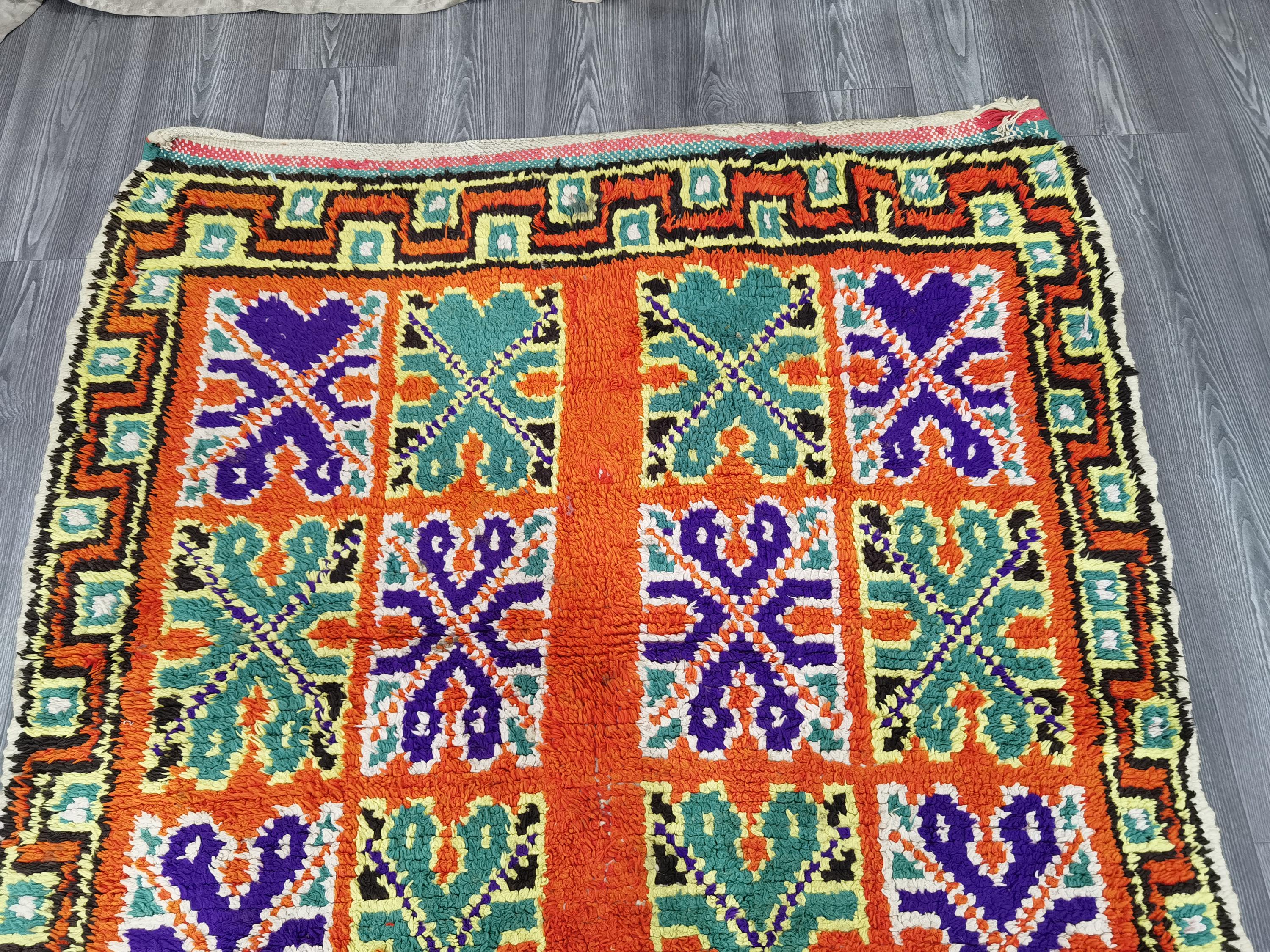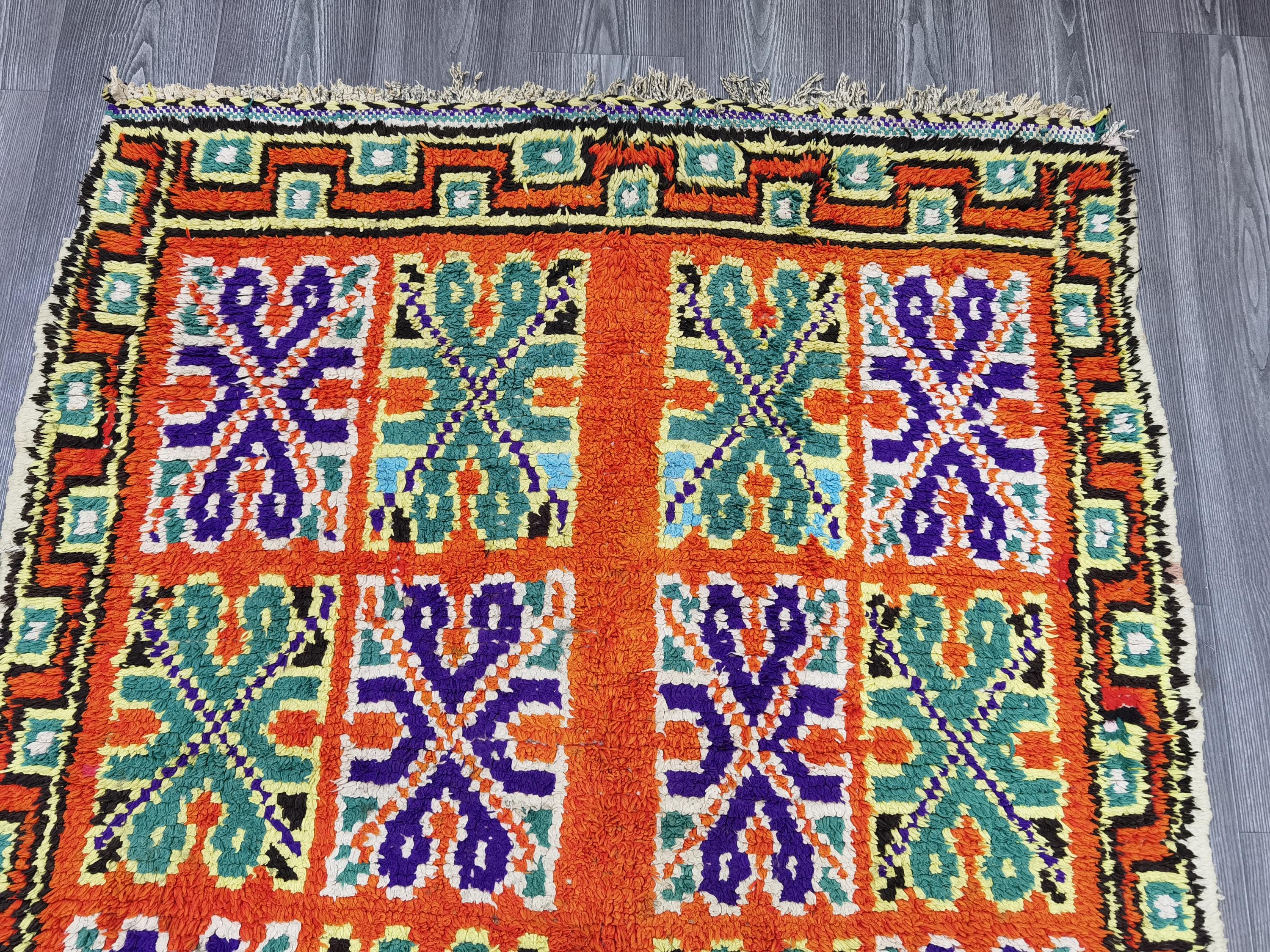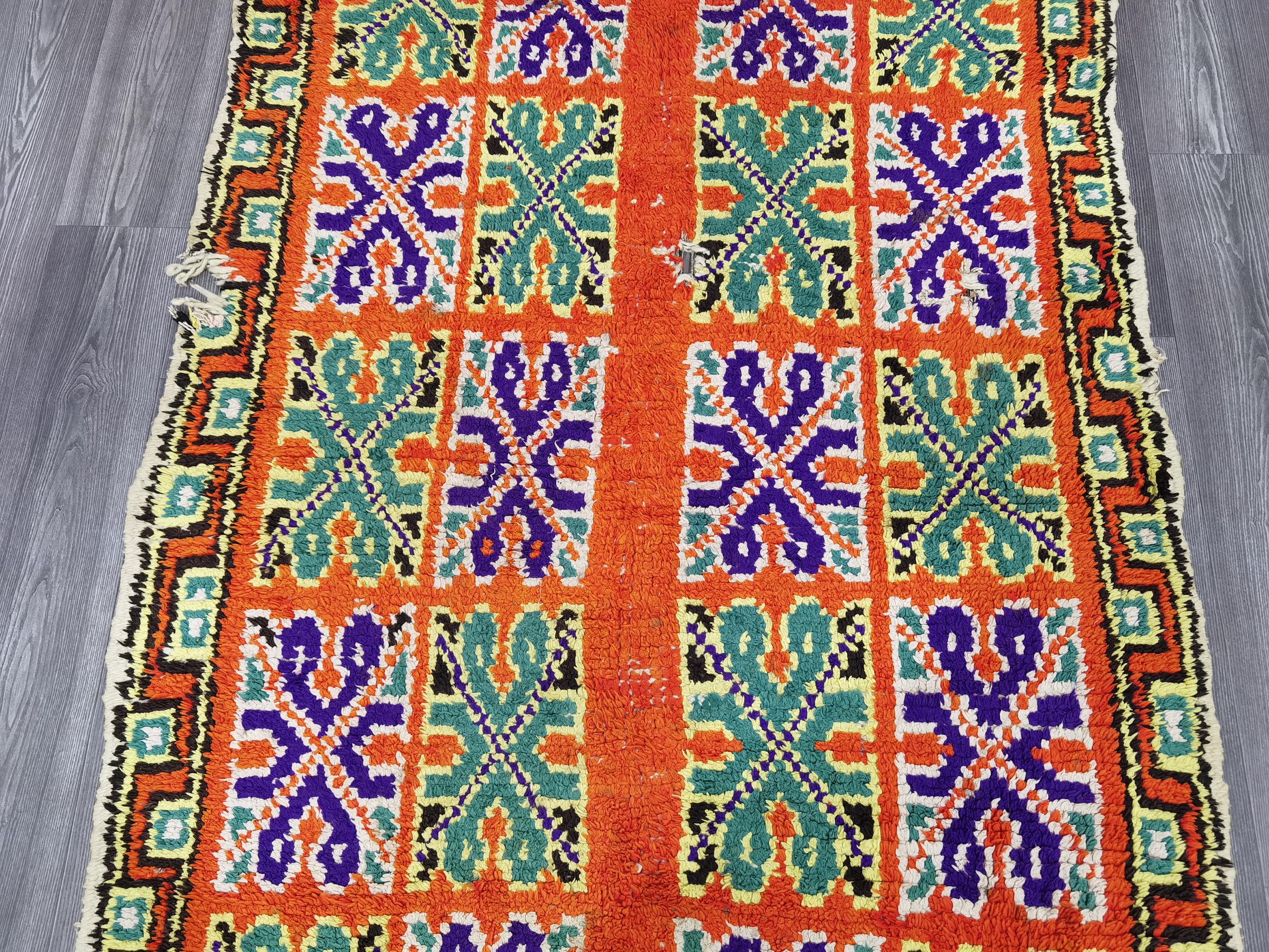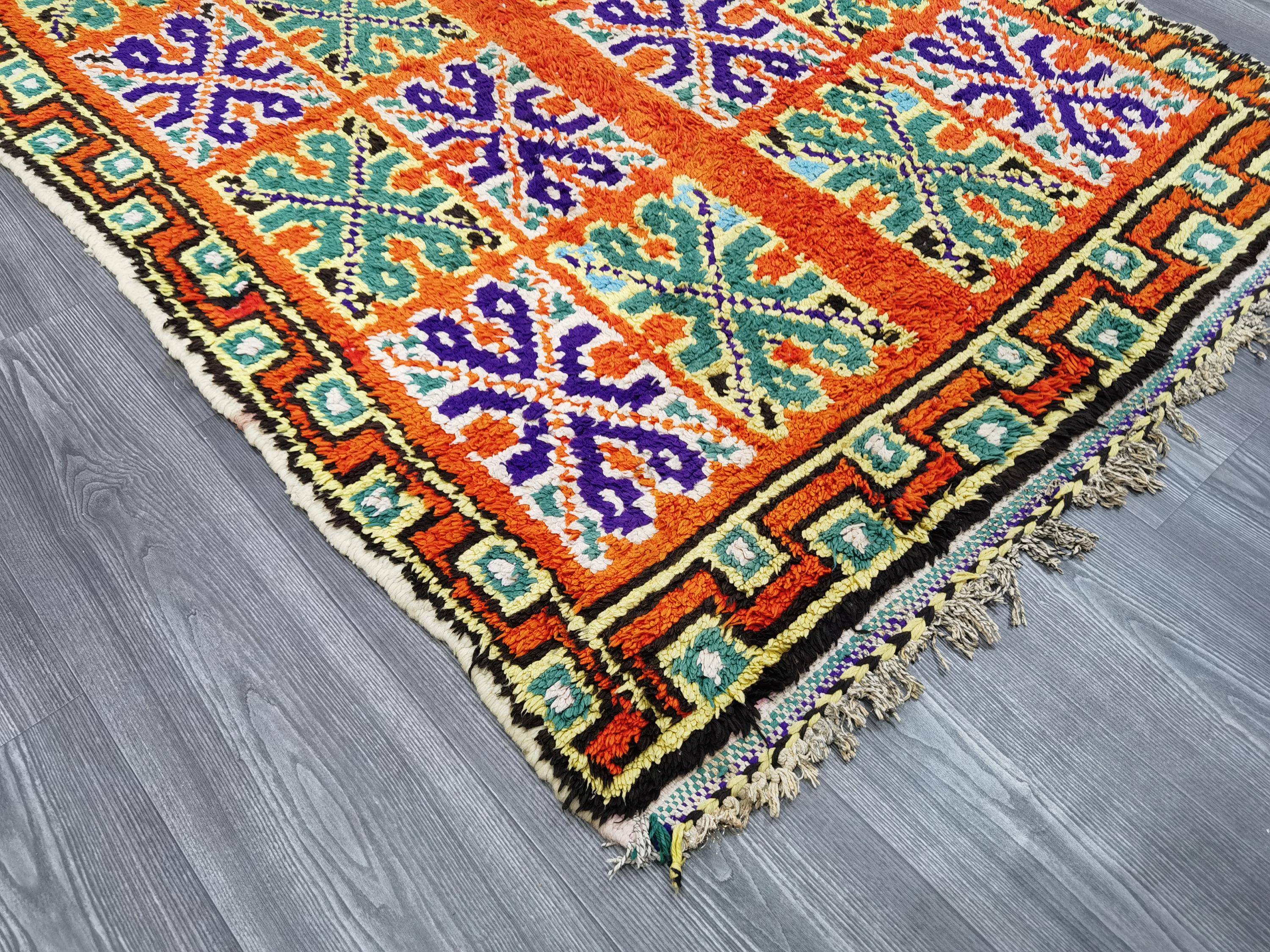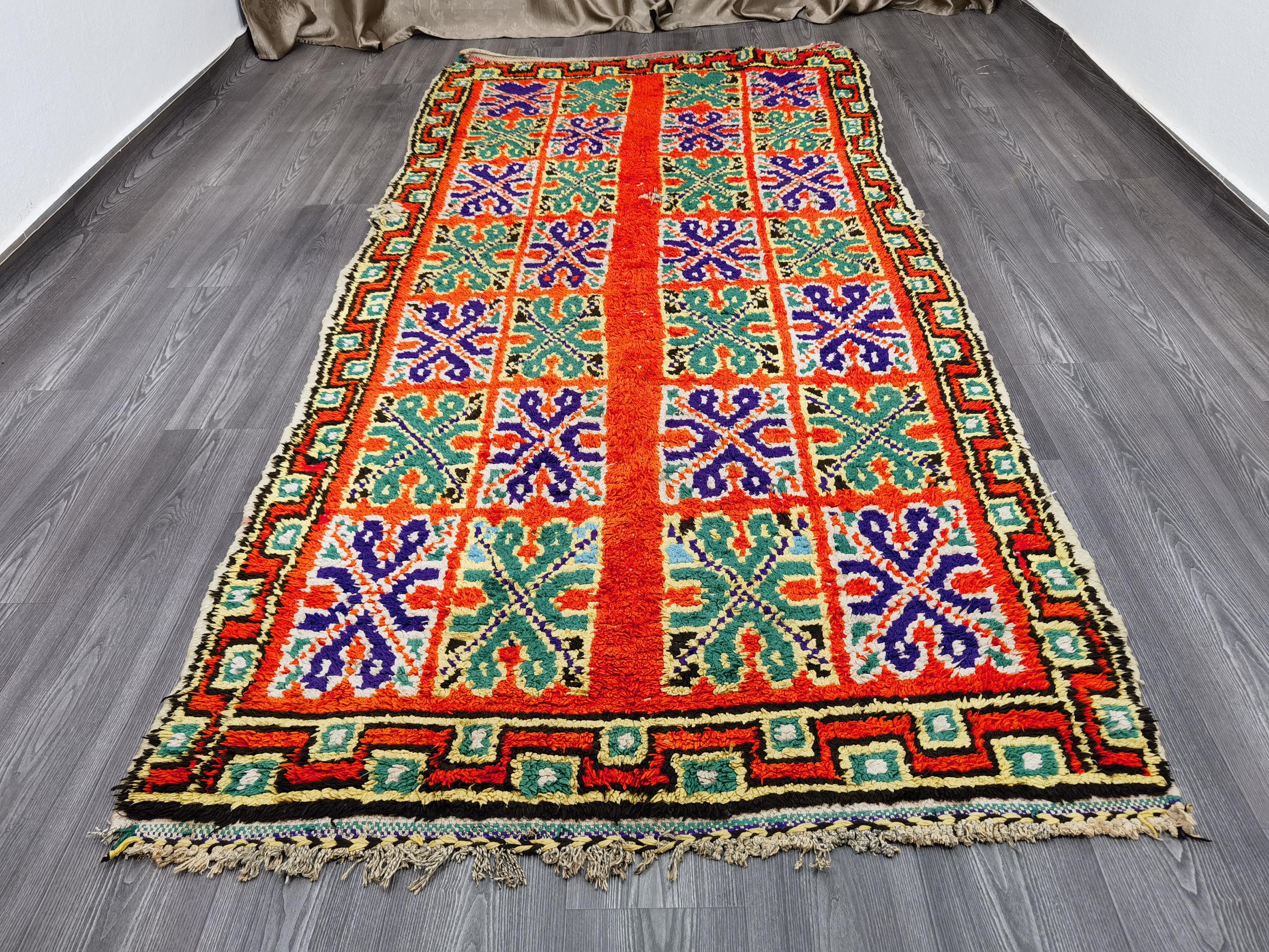 Orange Moroccan Runner Rug, Moroccan Handmade Runner Rug, Authentic Moroccan Rug, Traditional Rug, Boho Rug 4.4x10 Ft 135 X 305 cm .