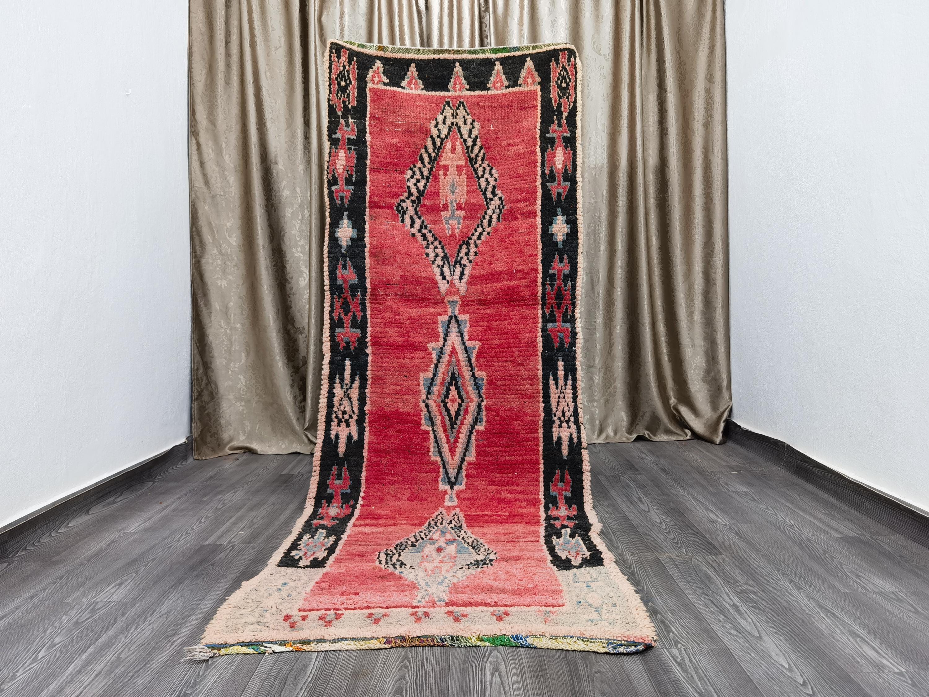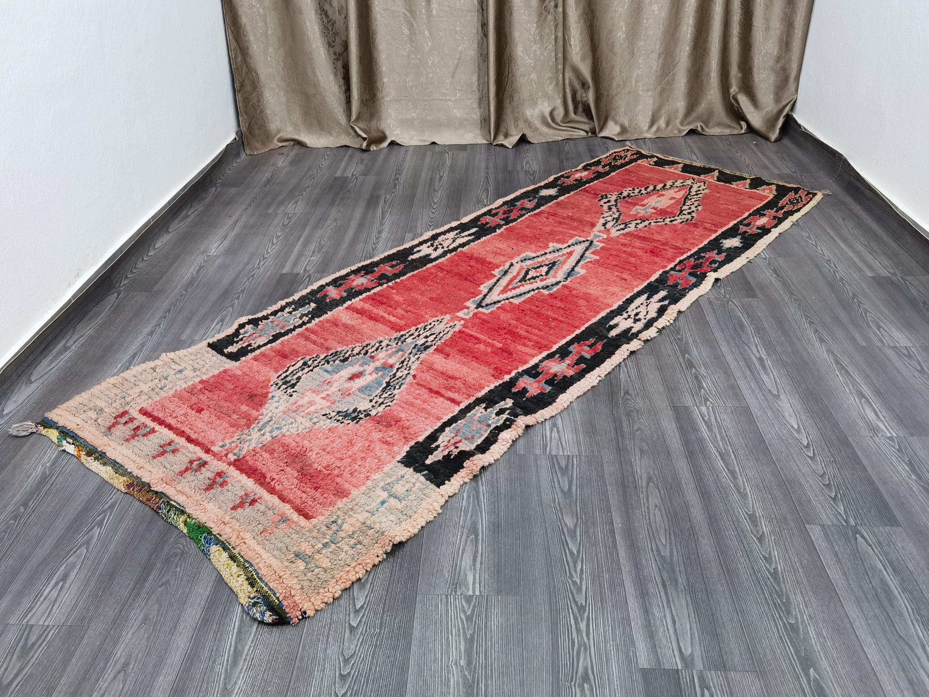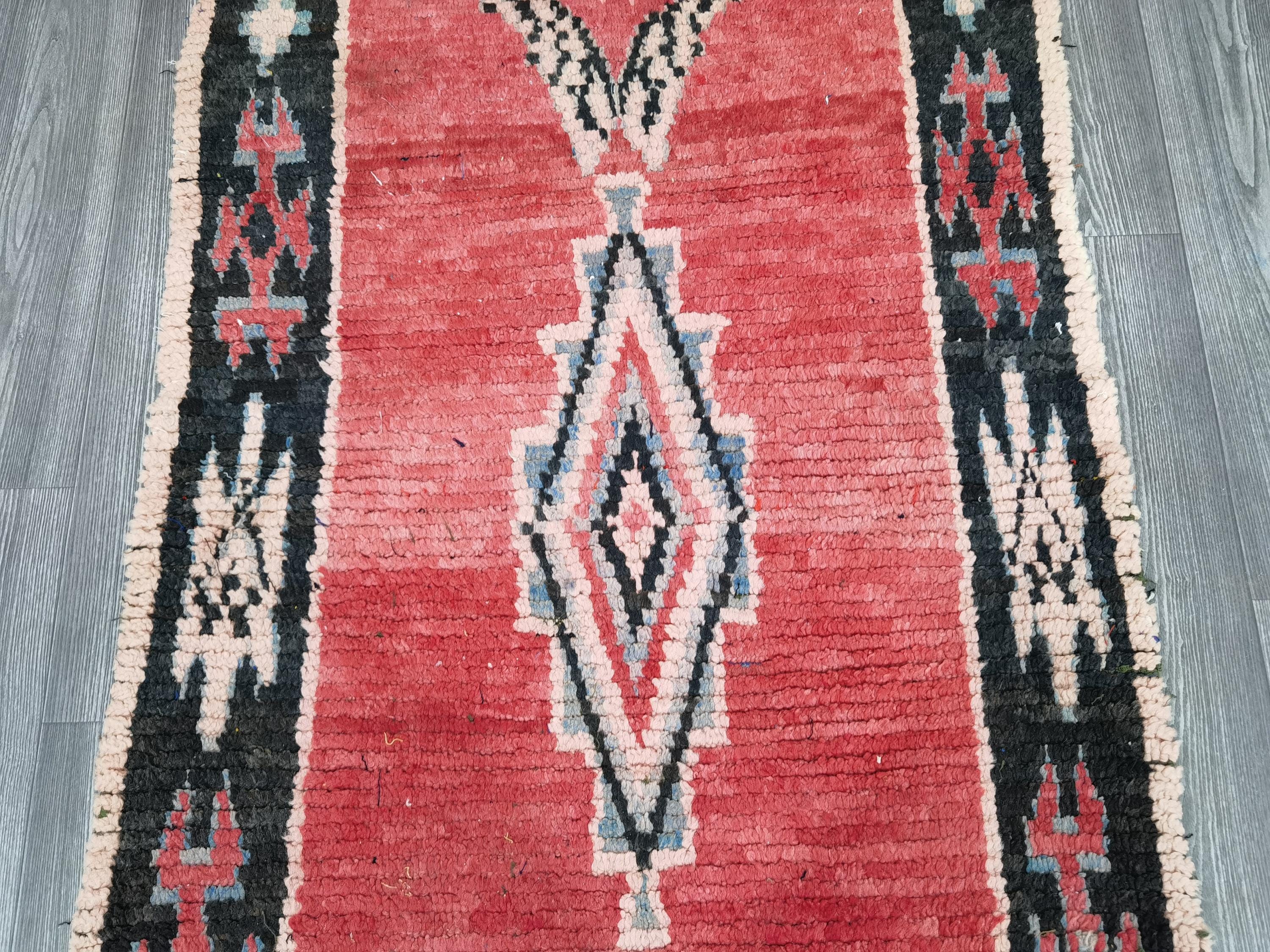 Boujaad Runner 3.3x9.2 Ft - Red Runner Rug - Tribal Runner Rug - Unique Runner Rug - Moroccan Berber Rug - Black Hallway Runner