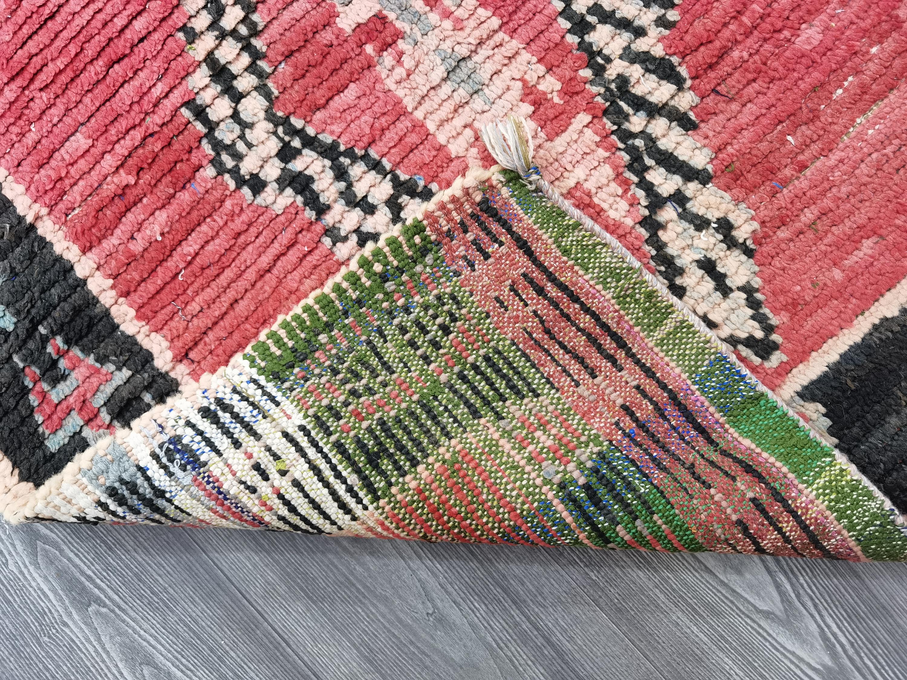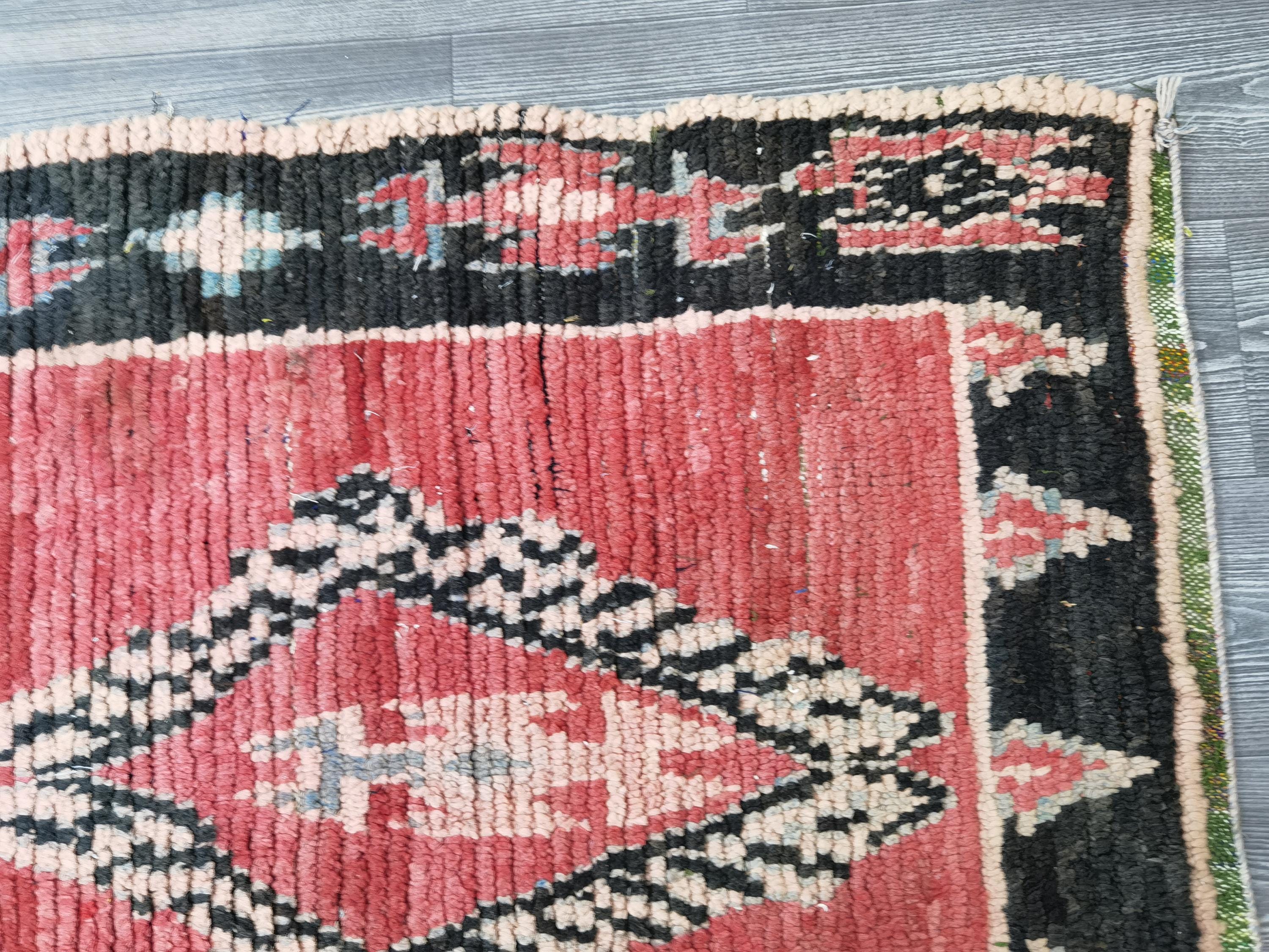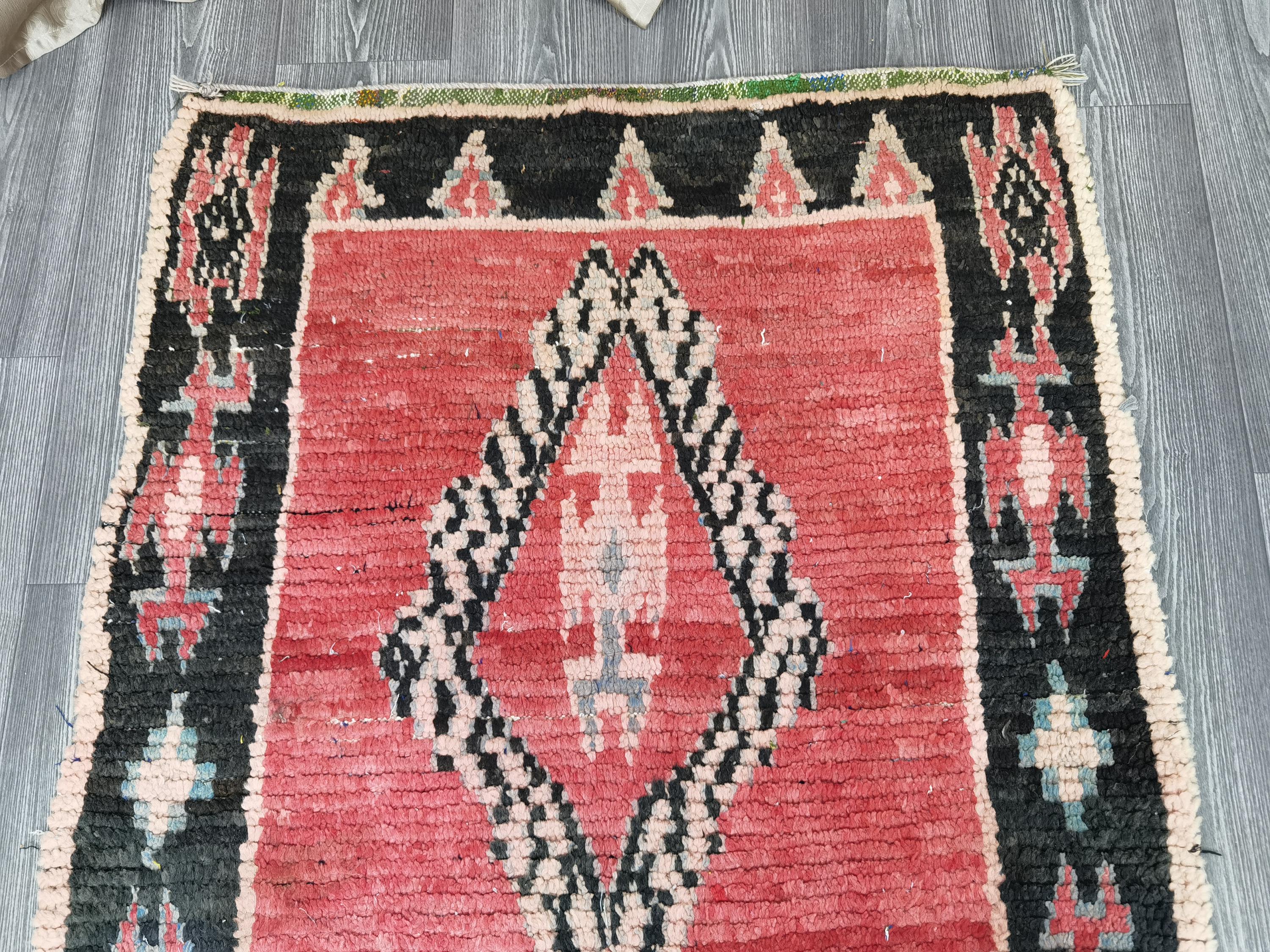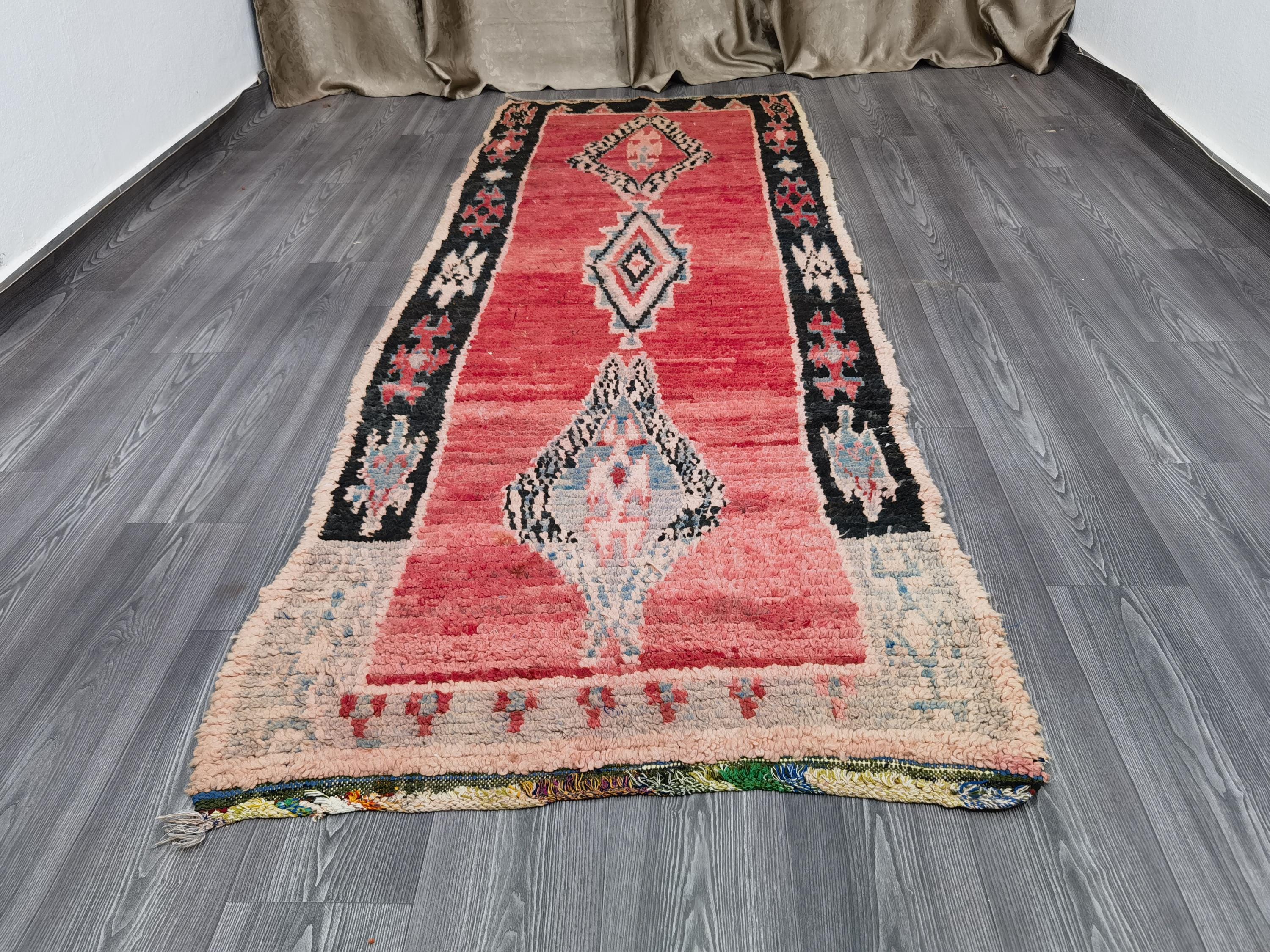 Boujaad Runner 3.3x9.2 Ft - Red Runner Rug - Tribal Runner Rug - Unique Runner Rug - Moroccan Berber Rug - Black Hallway Runner