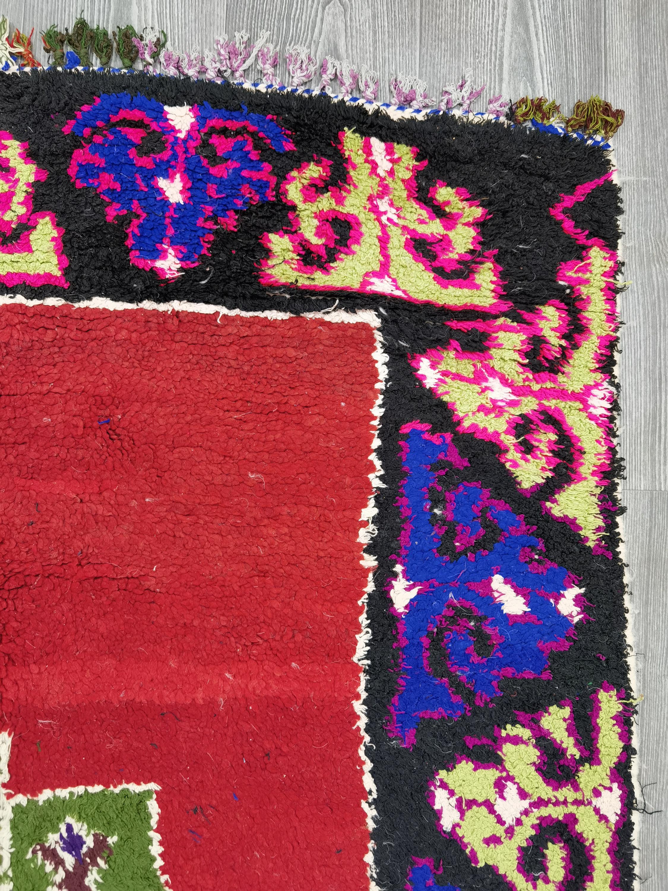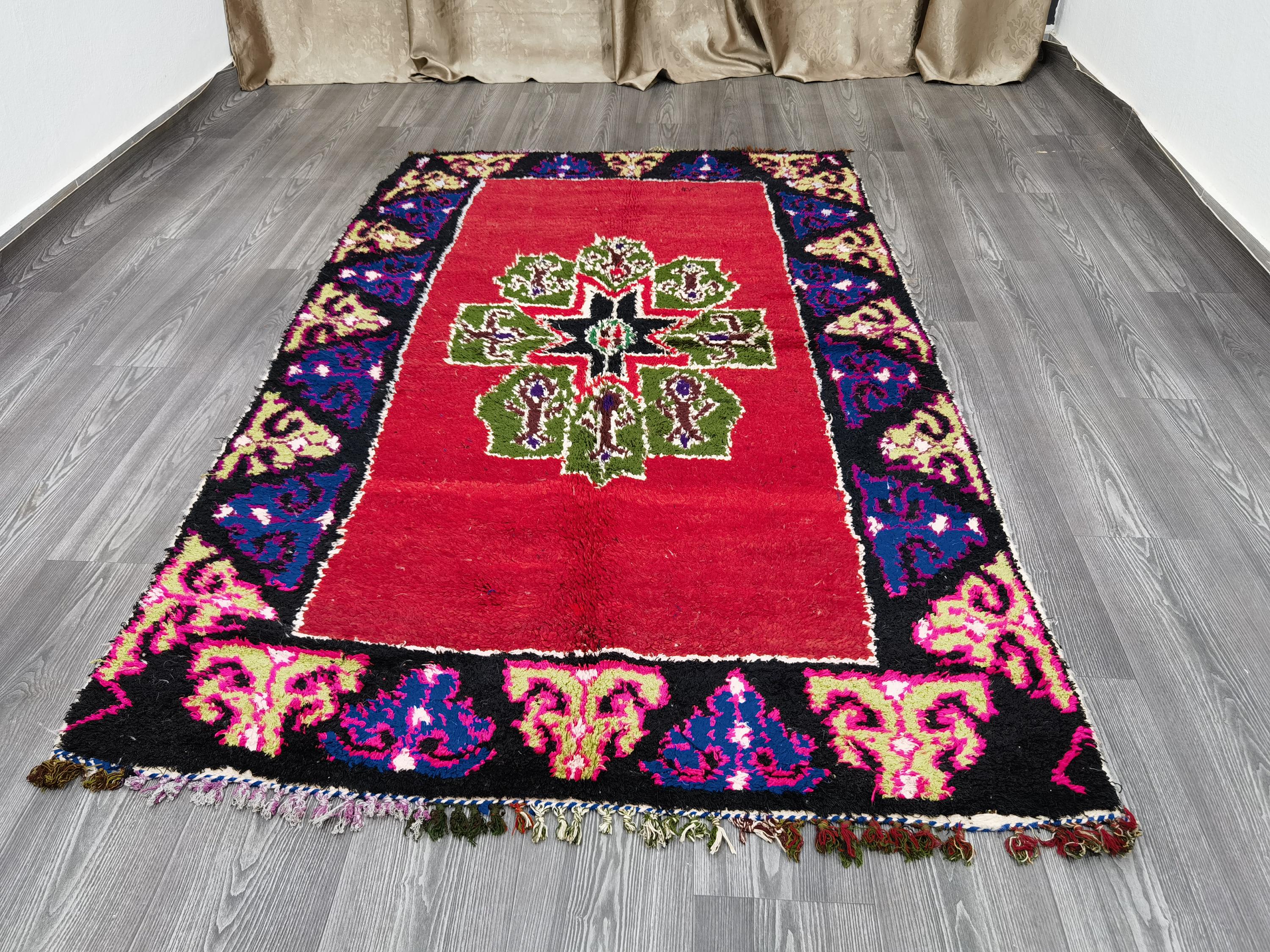 Boujaad is a vibrant and colorful wool rug that will add life to any room in your home. Made from 100% wool, this rug is perfect for use in the living room, bedroom, or anywhere you want to add some beautiful Moroccan flair. The soft and fluffy texture makes it comfortable to walk on, and the vivid colors will brighten up any space. Whether you're looking for a traditional shag rug or something a little more bohemian, Boujaad is sure to be a hit with your guests.