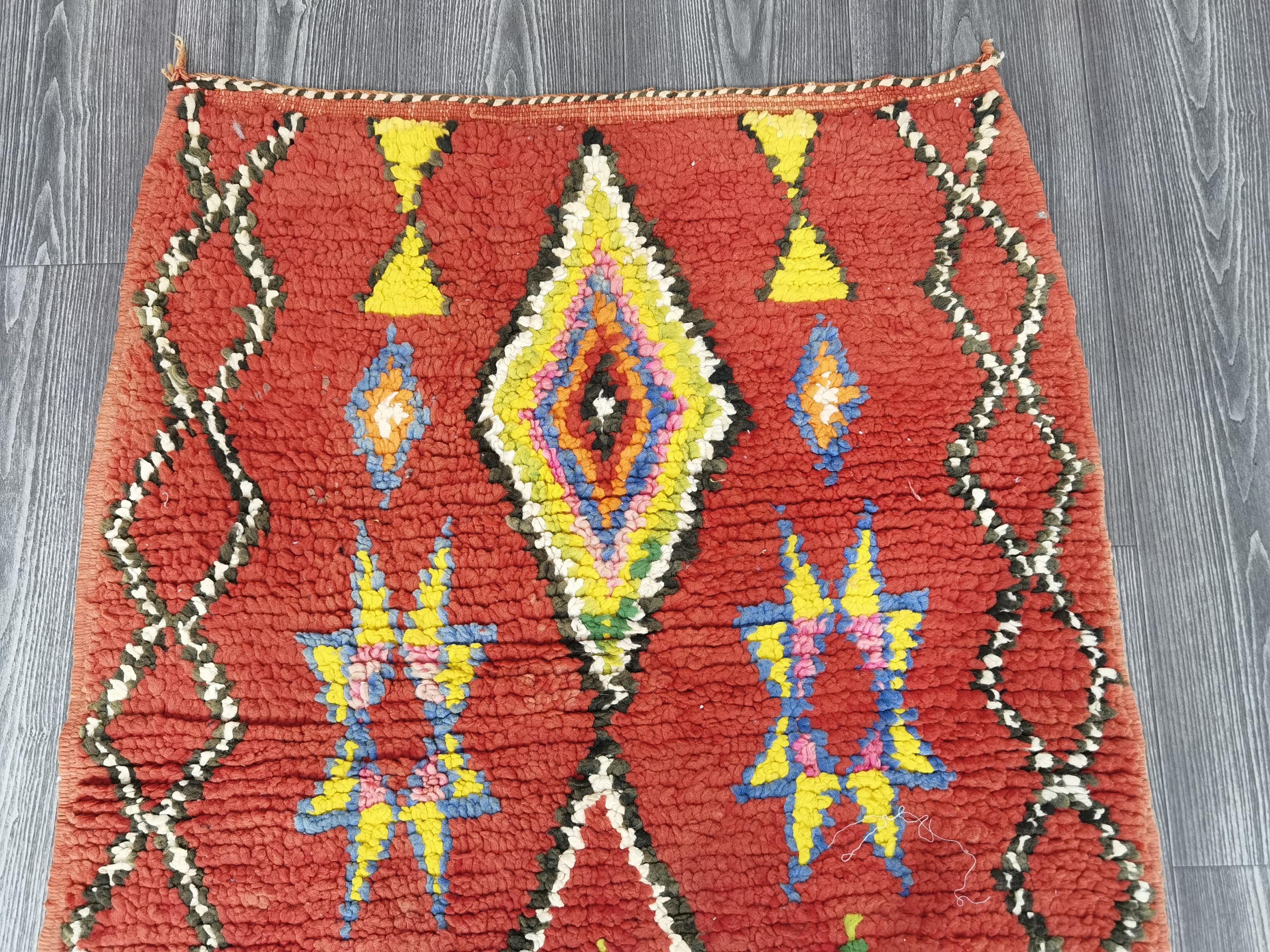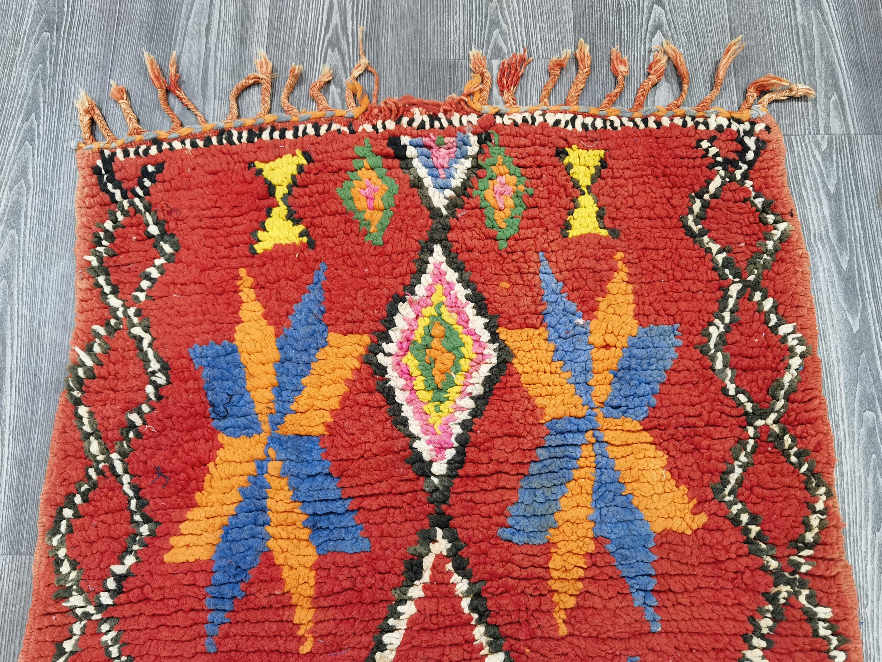 Boujaad is a vibrant and colorful wool runner that will add life to any room in your home. Made from 100% wool, this rug is perfect for use in the living room, bedroom, or anywhere you want to add some beautiful Moroccan flair. The soft and fluffy texture makes it comfortable to walk on, and the vivid colors will brighten up any space. Whether you're looking for a traditional shag rug or something a little more bohemian, Boujaad is sure to be a hit with your guests.